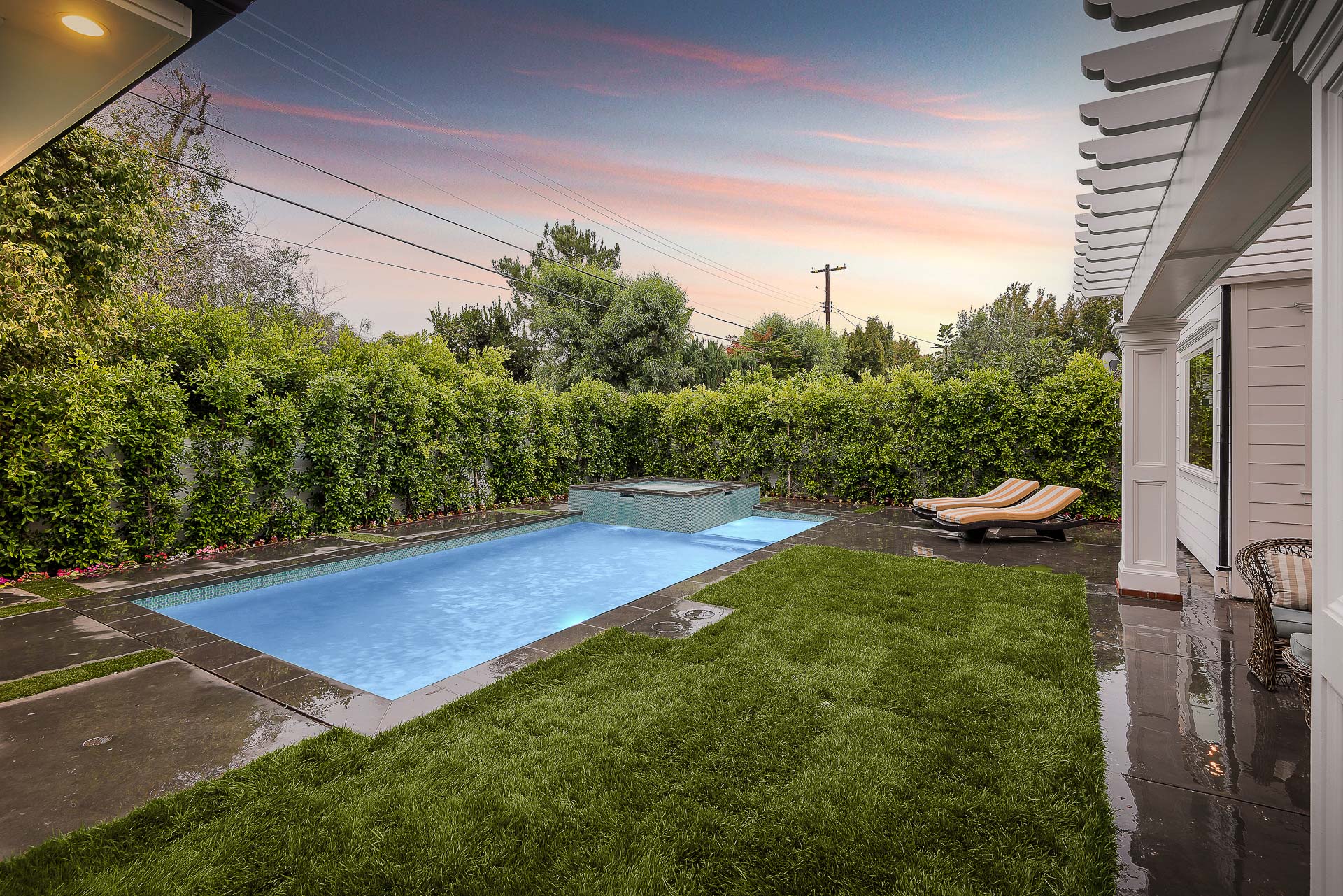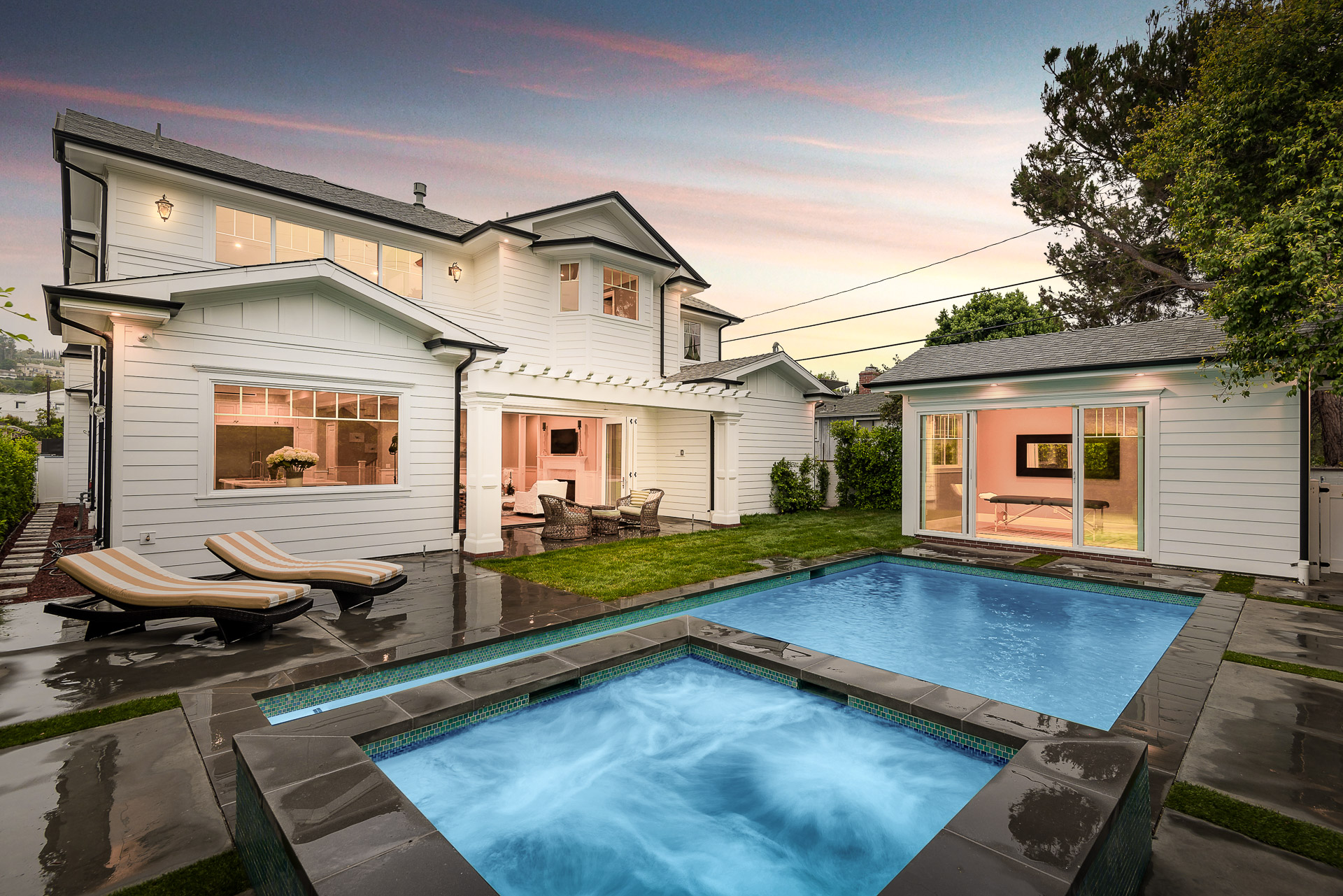 Amazing new built with exceptional design, details, and quality. This expansive home has a little something for every enthusiast. For the entertainer, 3 cozy fireplaces, media/theatre room, smart home w/control 4 system, separate library and/or office. For the chef, gourmet kitchen w/oversized marble center island, custom designed cabinetry and lots of shelves surround high efficiency appliances. For the outdoor avid lush landscaping surround a sparkling pool and spa, a pool house/cabana and trellis. Additional amenities include formal dining and room living room with top of the line light fixtures throughout, a master suite w/walk in closets and separate patio/retreat area. 5 bedrooms total w/7 bathrooms all architecturally fit flawlessly within 5200 sq.ft Contemporary Style and Charm with Modern upgrades and Conveniences that offers great Charter Schools, Shops & Restaurants and still evokes Privacy and Serenity in the heart of the City.