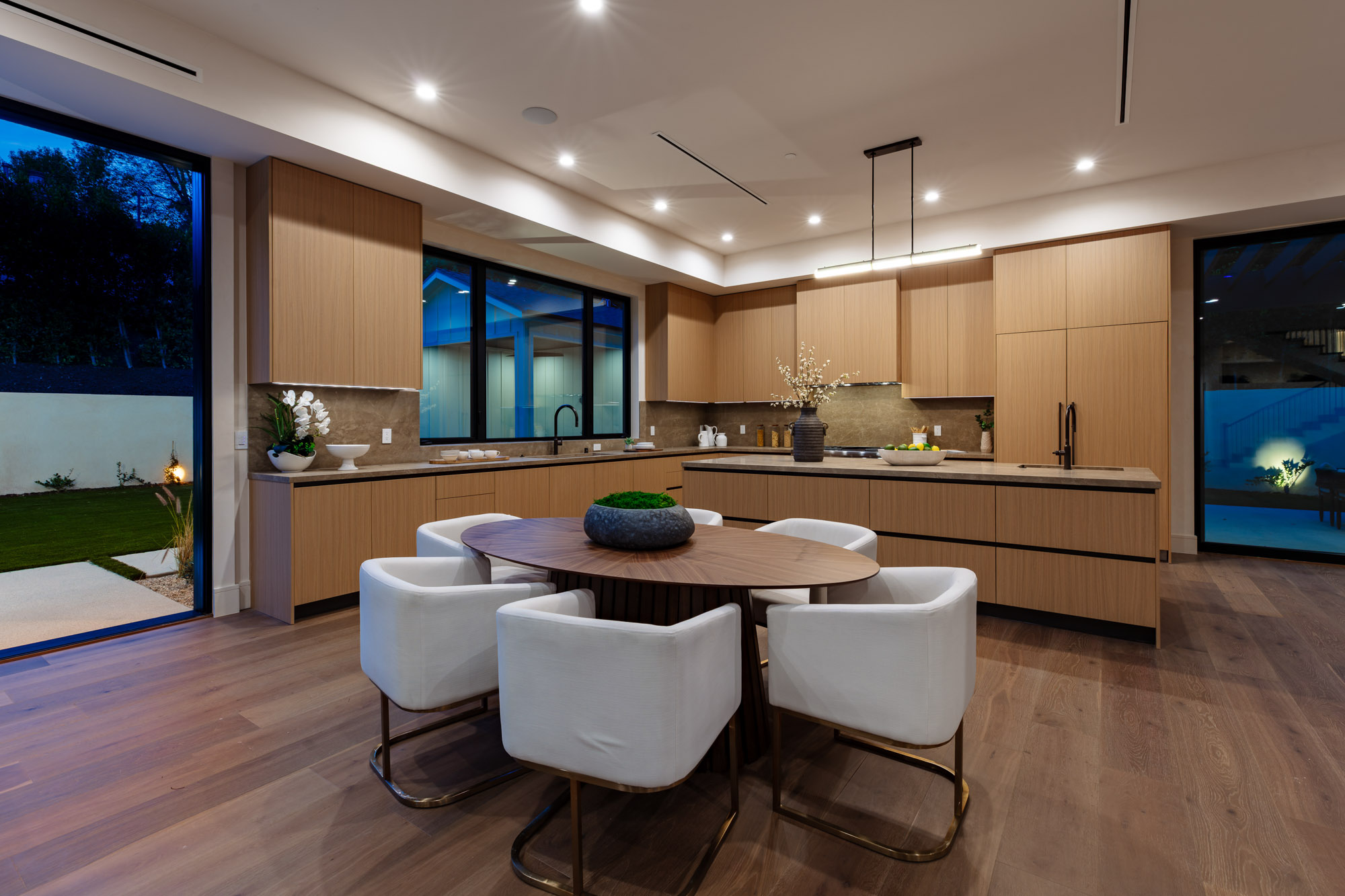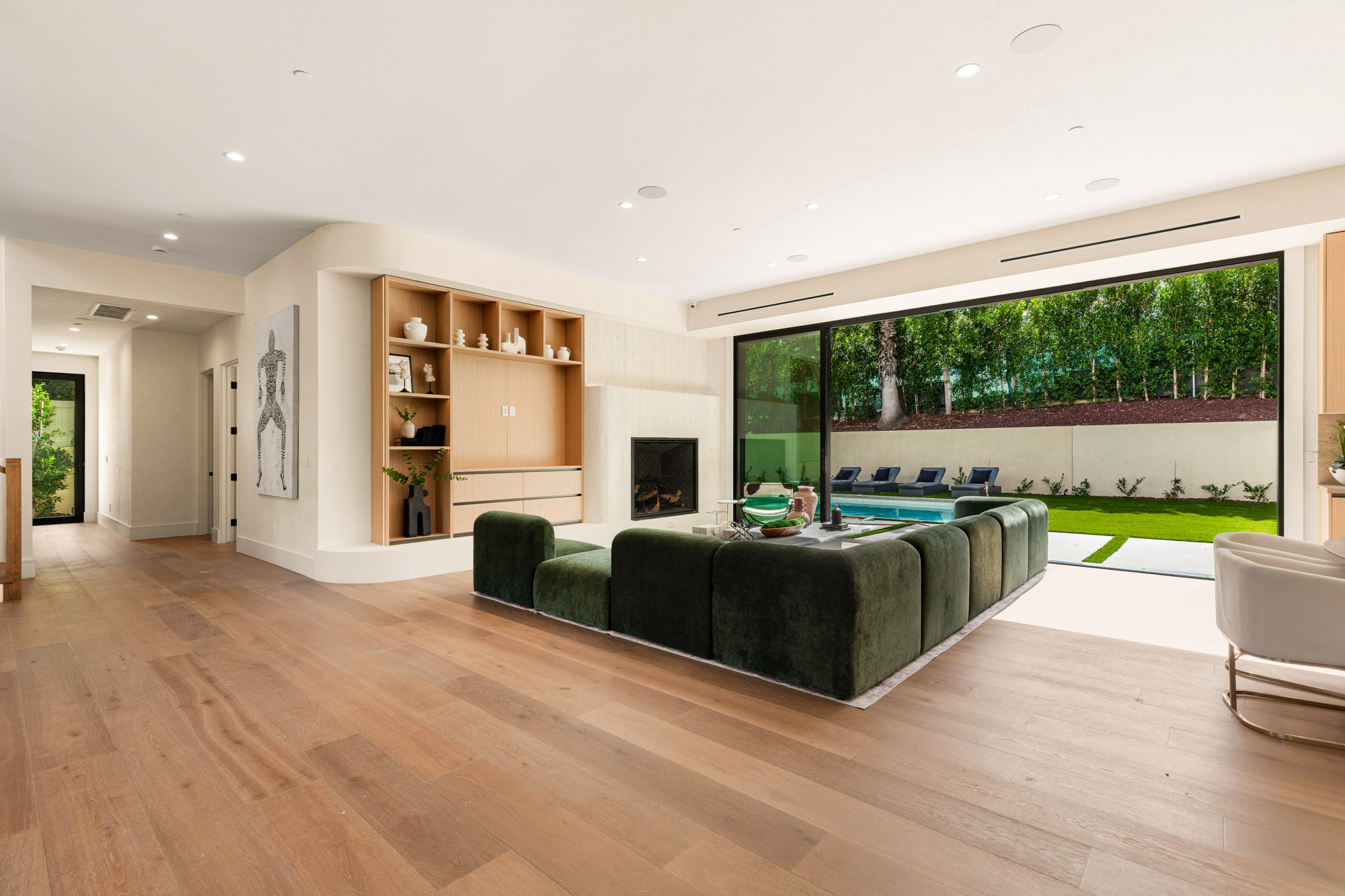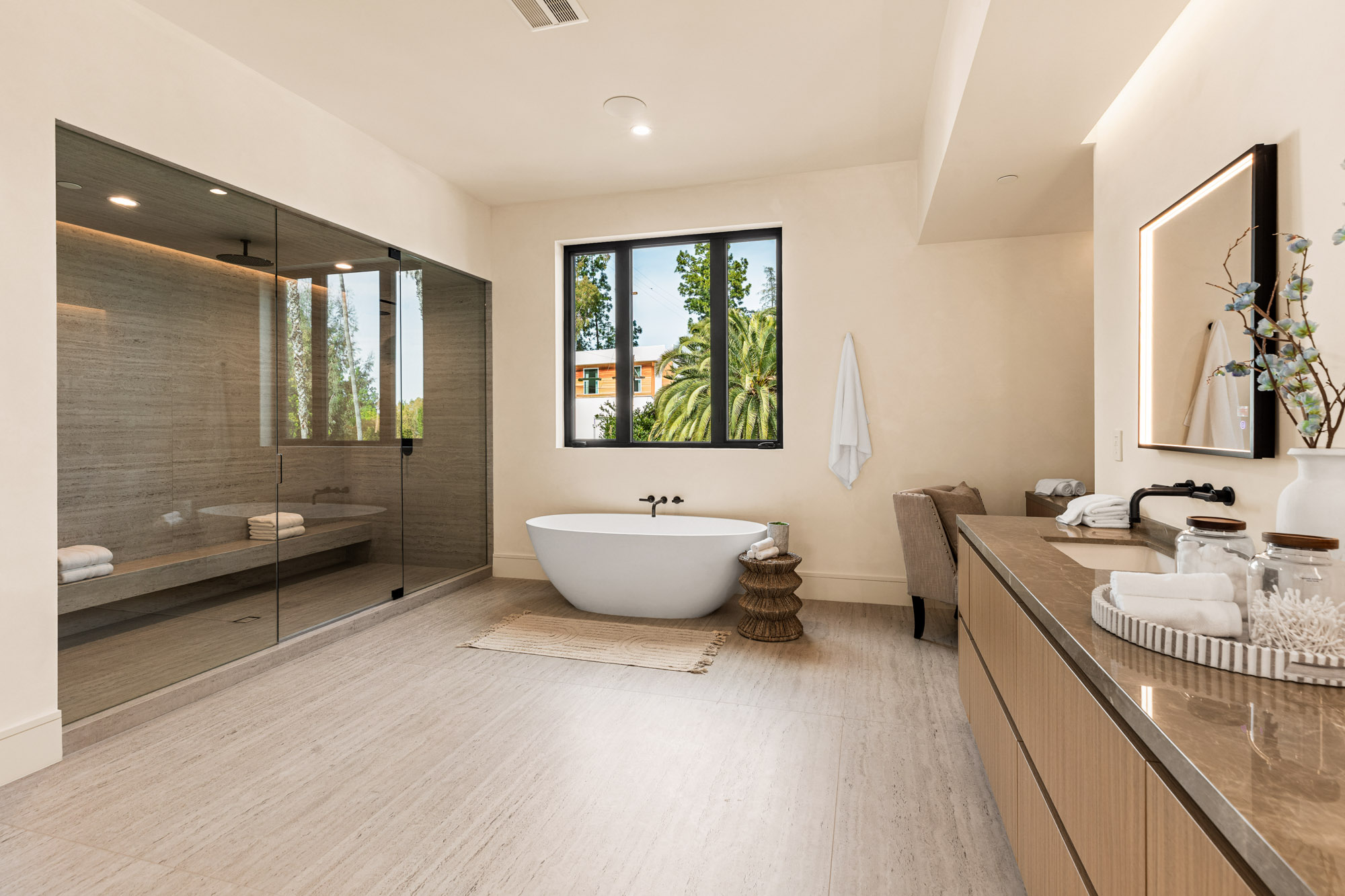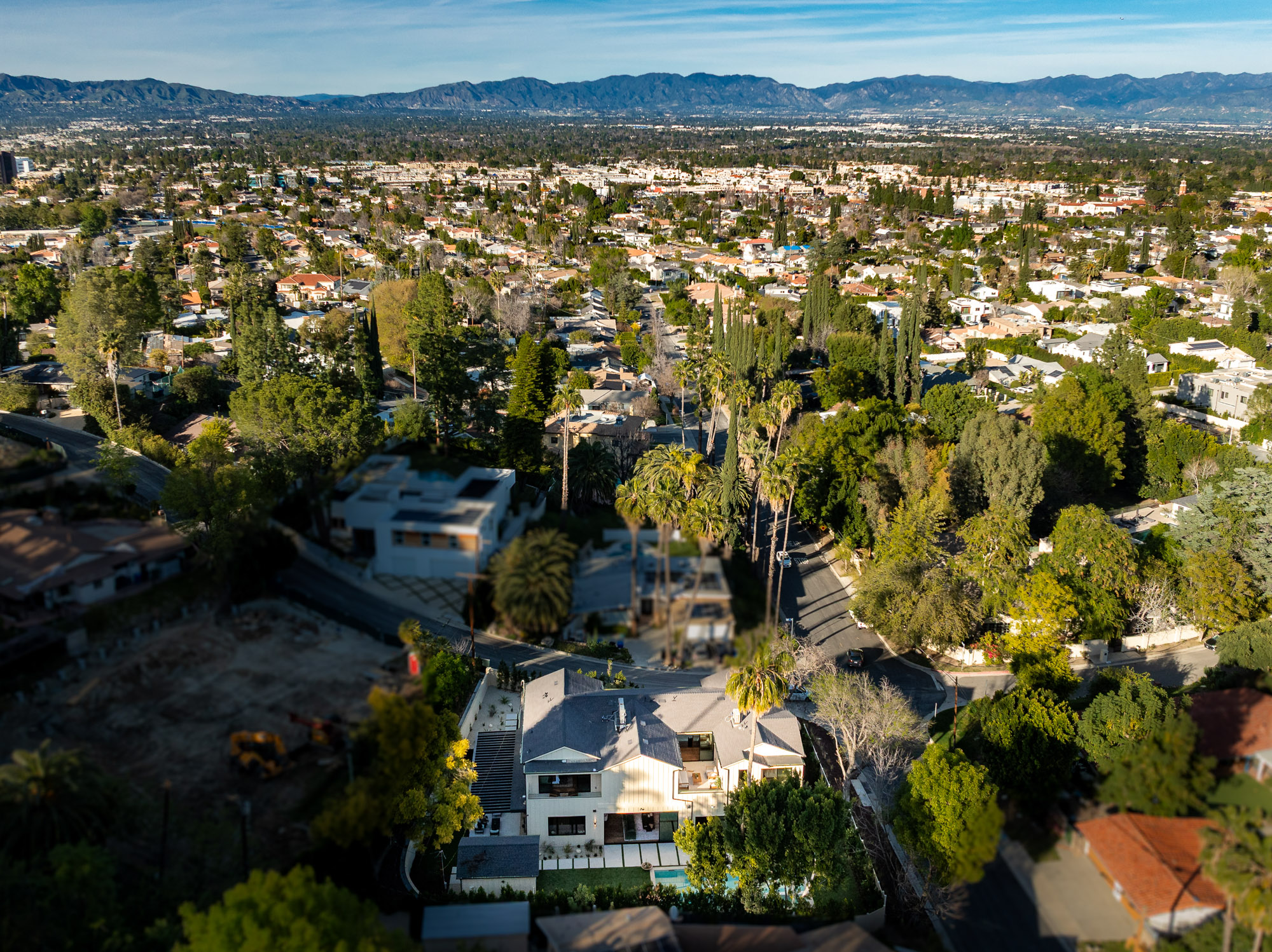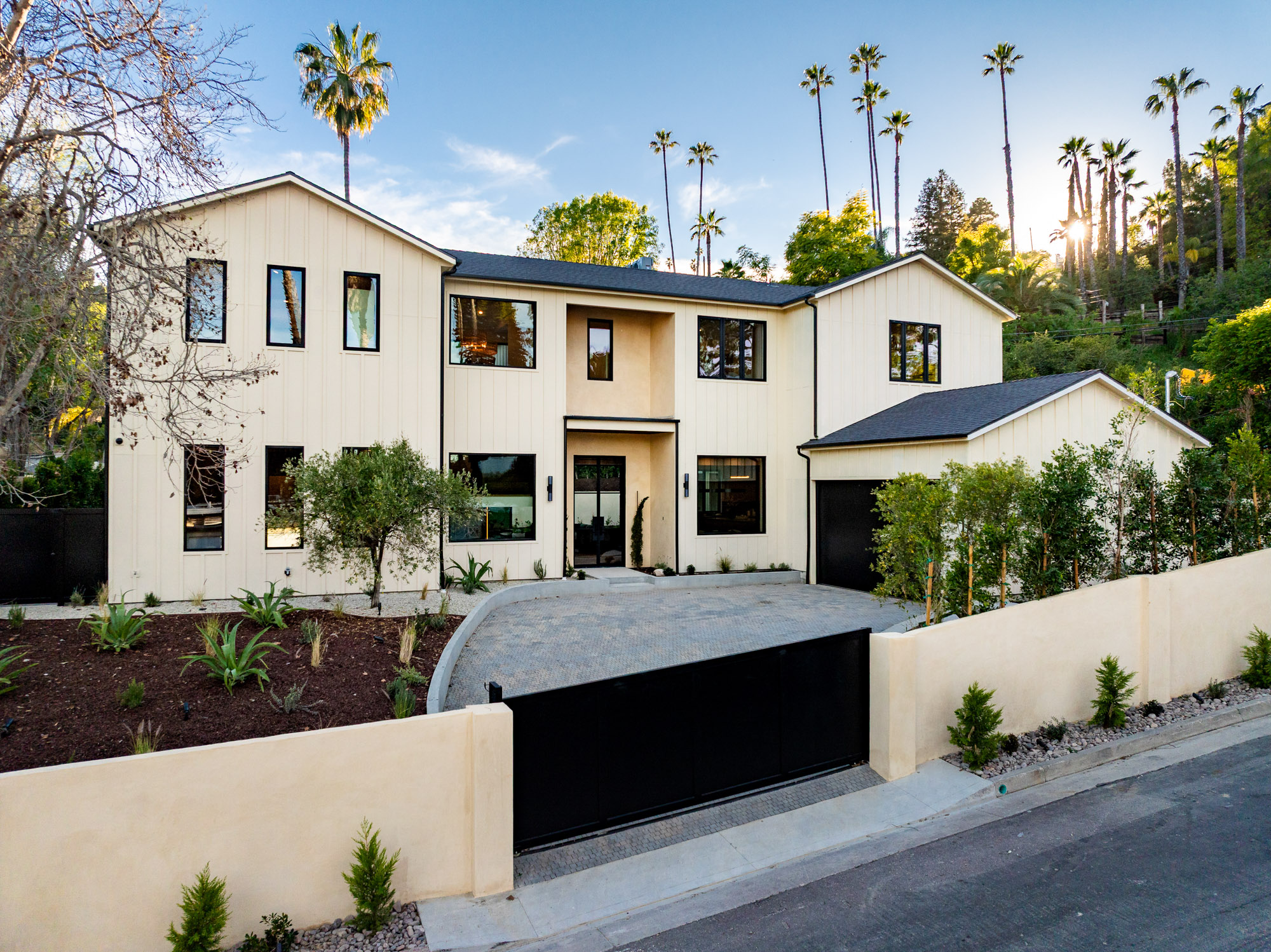 Tucked away in the hills of Tarzana, this newly constructed estate is set behind private gates on an expansive 16,000+ sqft lot.