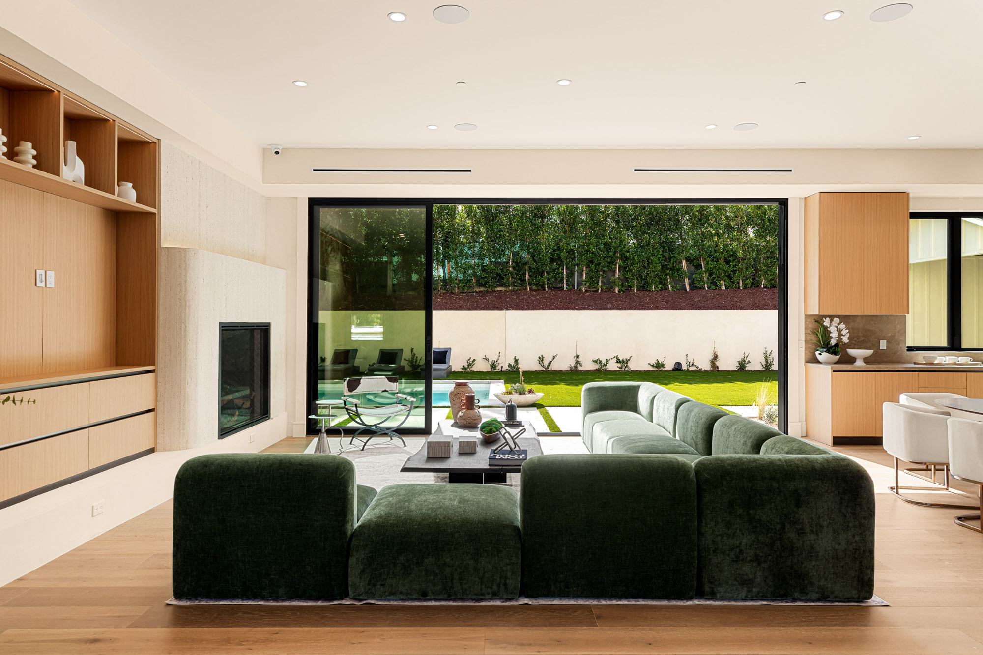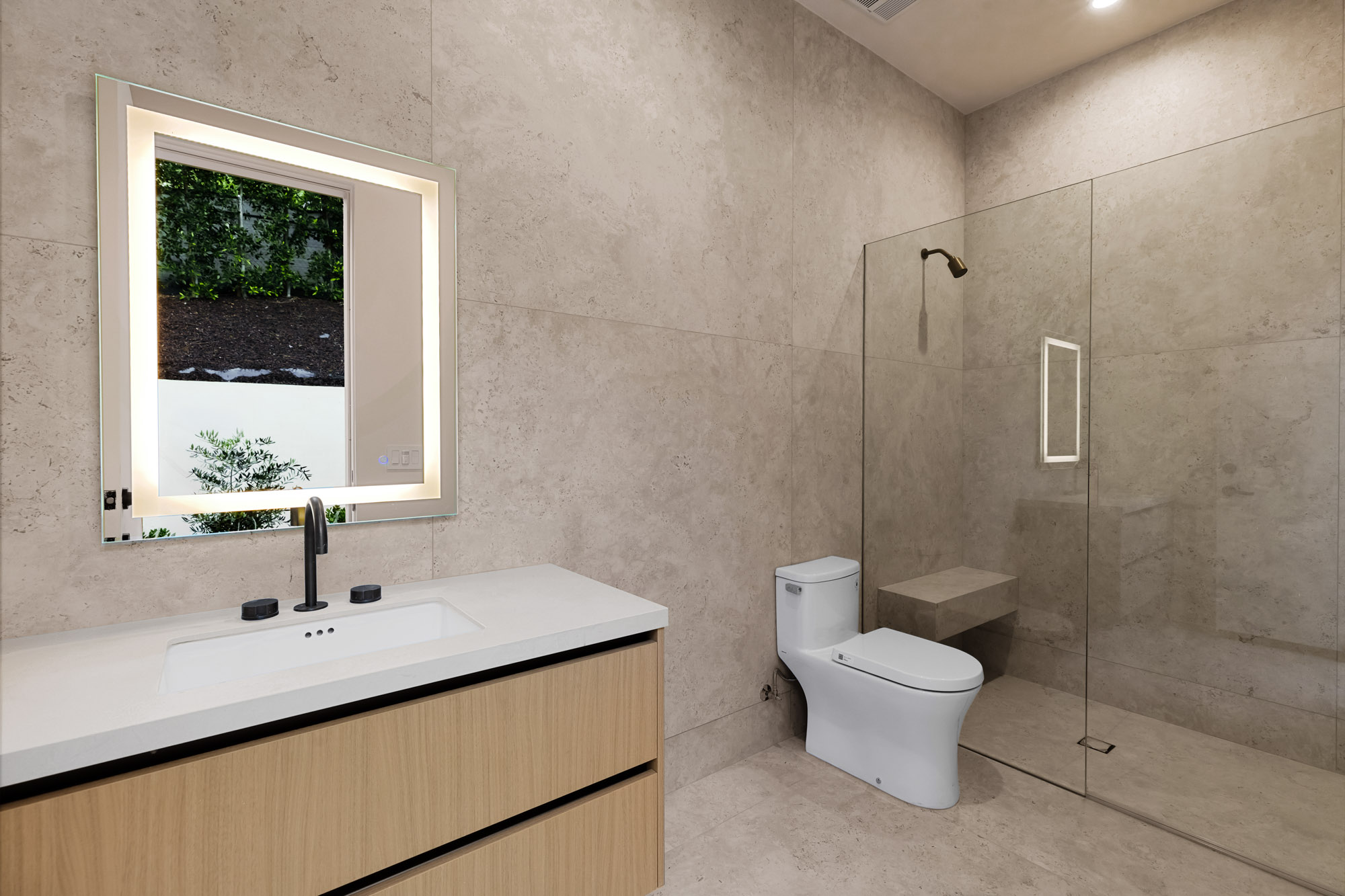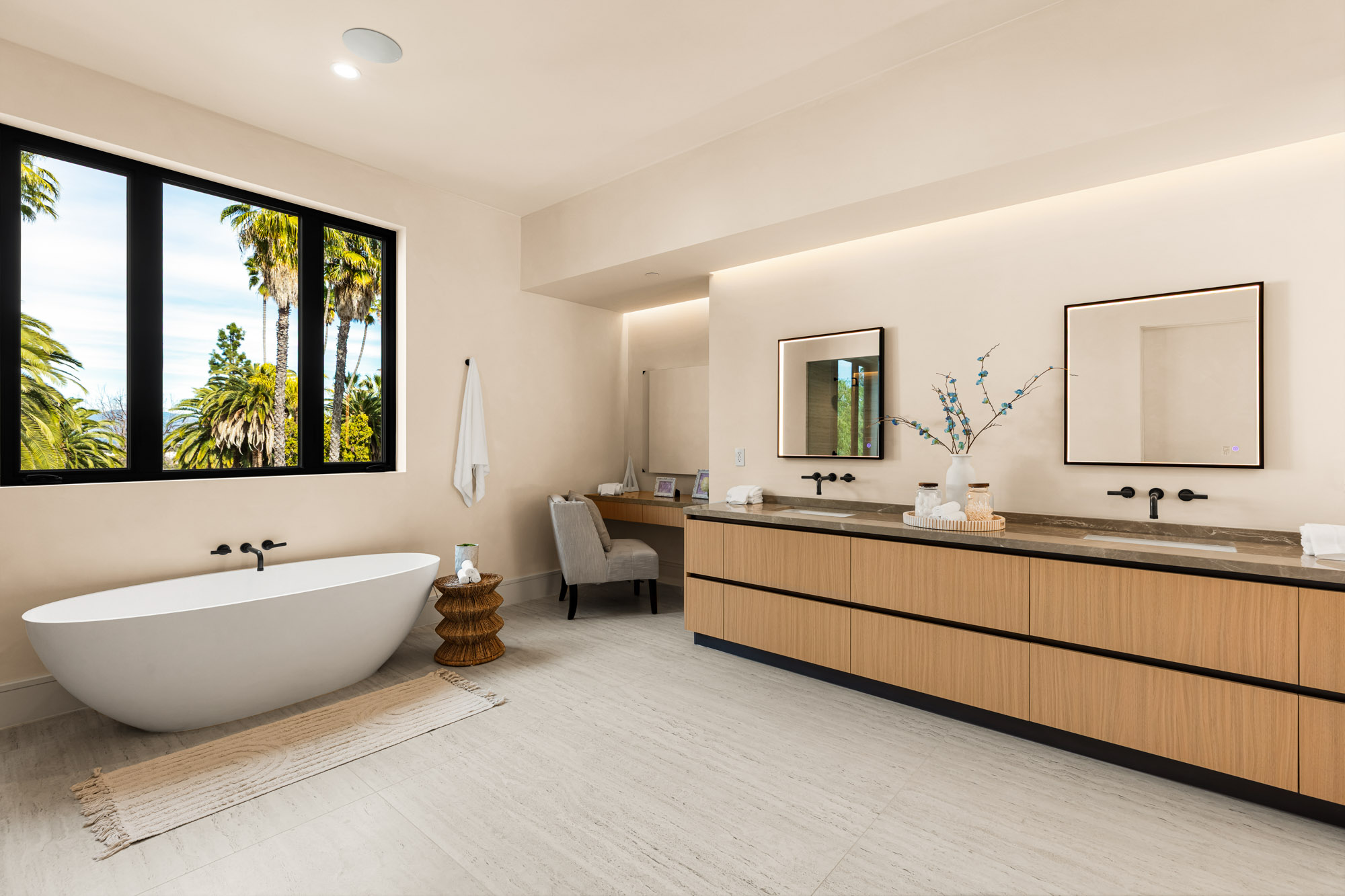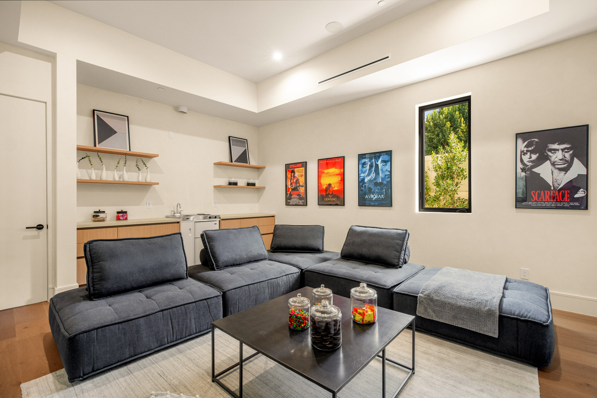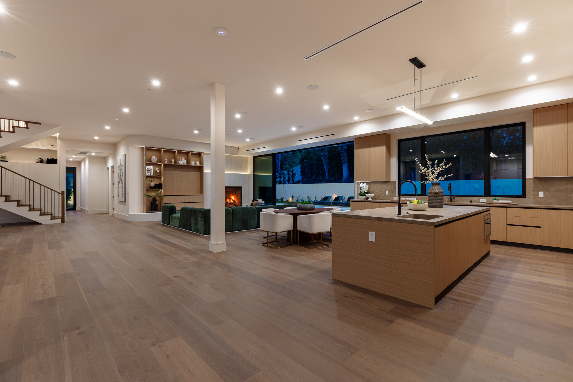 Tucked away in the hills of Tarzana, this newly constructed estate is set behind private gates on an expansive 16,000+ sqft lot.