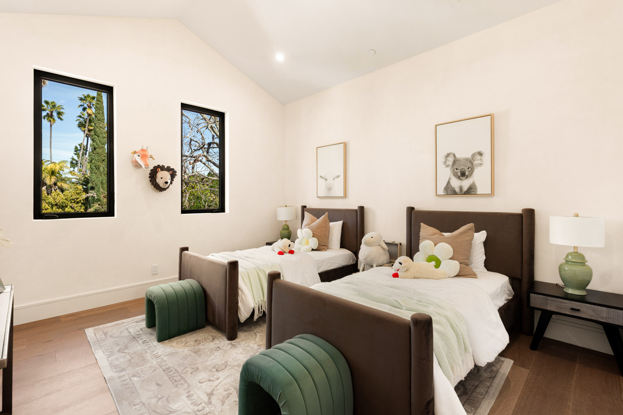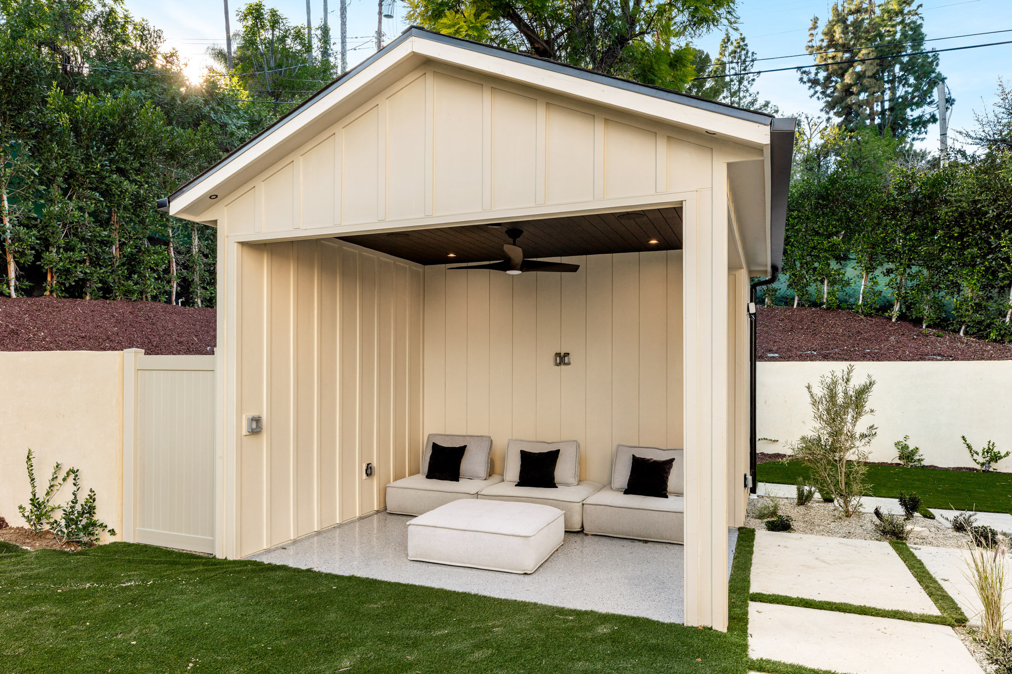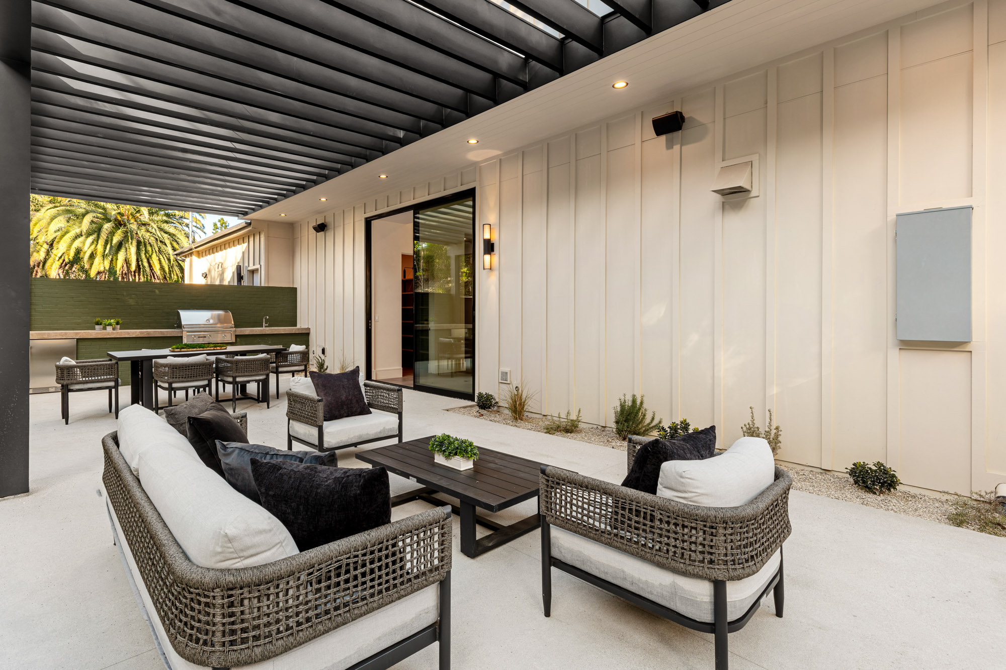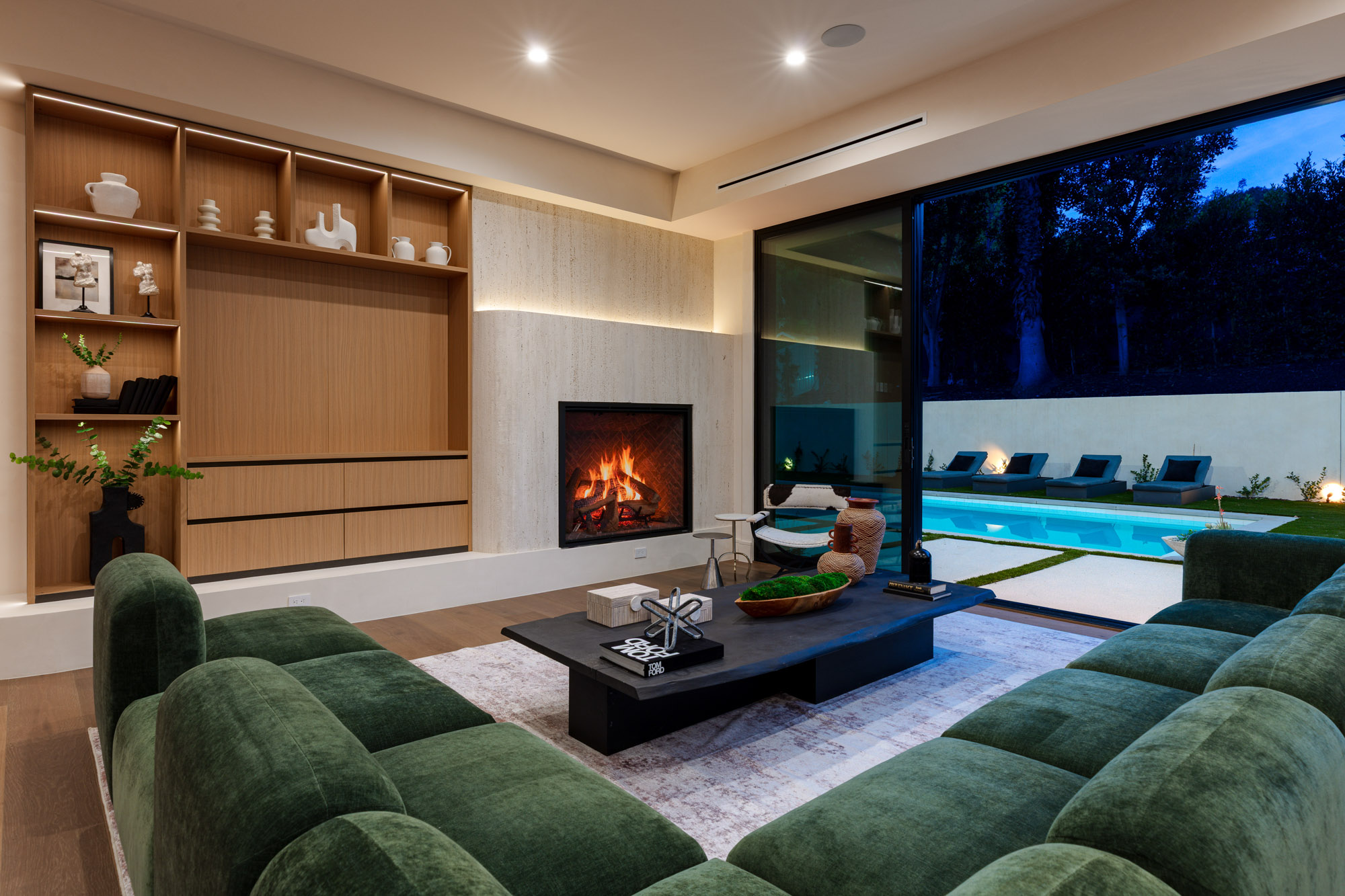 Tucked away in the hills of Tarzana, this newly constructed estate is set behind private gates on an expansive 16,000+ sqft lot, offering a rare sense of seclusion and serenity. From the moment you arrive, there is an unmistakable feeling of having found something truly special. Grand double doors open to an awe-inspiring open-concept interior where soaring ceilings and dramatic walls of glass frame the natural light like living art. Sunlight pours in, illuminating refined finishes and creating an atmosphere that feels both elevated and warmly inviting. Every detail has been thoughtfully curated to balance modern sophistication with effortless comfort. At the heart of the home, the epicurean kitchen is a statement of style and substance. Outfitted with top-tier appliances, an impressive center island, and an expansive walk-in pantry, it is designed as much for gathering as it is for culinary excellence. The formal dining room, complete with a built-in beverage refrigerator, sets the stage for elegant dinner parties and intimate celebrations alike. An oversized sliding glass door disappears to seamlessly unite the living room with the outdoors, transforming everyday living into a resort-like experience. The backyard is a private sanctuary, lush, tranquil, and designed for both indulgence and connection. Lounge beside the shimmering pool and spa, entertain effortlessly in the cabana with its 3/4 bath, or savor evenings under the pergola with a fully appointed outdoor kitchen as the sun sets over the hills. The main level continues to impress with a thoughtfully designed media room, perfect for cinematic evenings and elevated entertaining, alongside a versatile bonus room, a gracious ensuite guest bedroom, a sophisticated powder room, and a mudroom with direct access to the two-car garage. Upstairs, the primary suite unfolds as a retreat of true refinement. A private balcony offers a peaceful vantage point, while the oversized dual walk-in closets provide boutique-inspired luxury. The spa-inspired bath is a haven of relaxation, featuring a sculptural soaking tub, an expansive 2-person rainfall shower, a floating oversized vanity with dual sinks, a dedicated makeup vanity, and a private water closet, an environment designed for restoration and calm. Three additional ensuite bedrooms, a dedicated laundry room, and a sun-drenched balcony complete the upper level with both comfort and elegance. Fully integrated with a Control4 smart home system, the residence offers seamless command of lighting, climate, audio, and a comprehensive security system featuring exterior cameras, bringing modern ease to refined living. Ideally situated South of the Boulevard within an exceptional school district, this extraordinary property offers the rare balance of privacy and proximity to the finest dining, shopping, and lifestyle amenities the valley has to offer, yet worlds away in its peace and exclusivity.