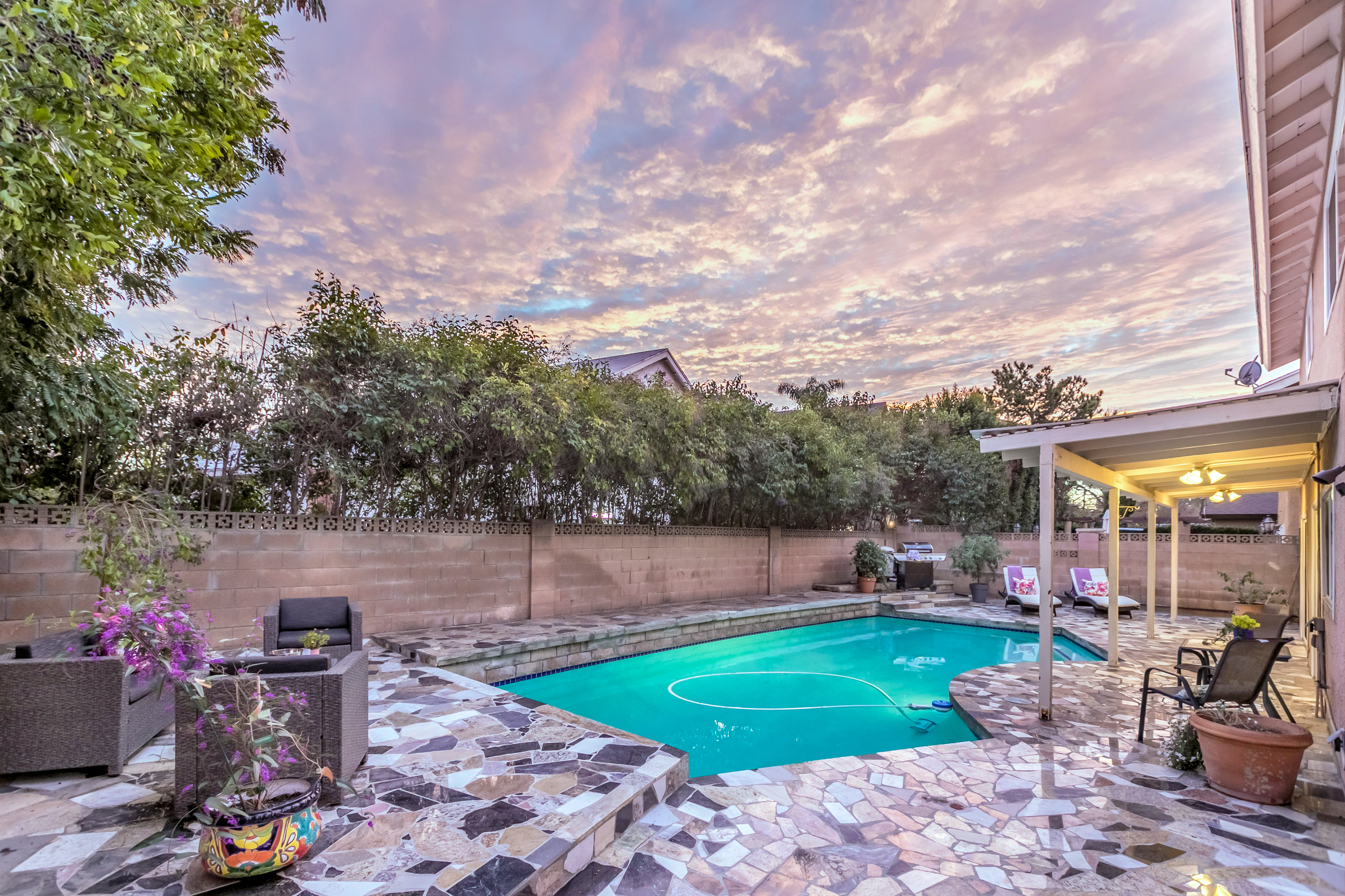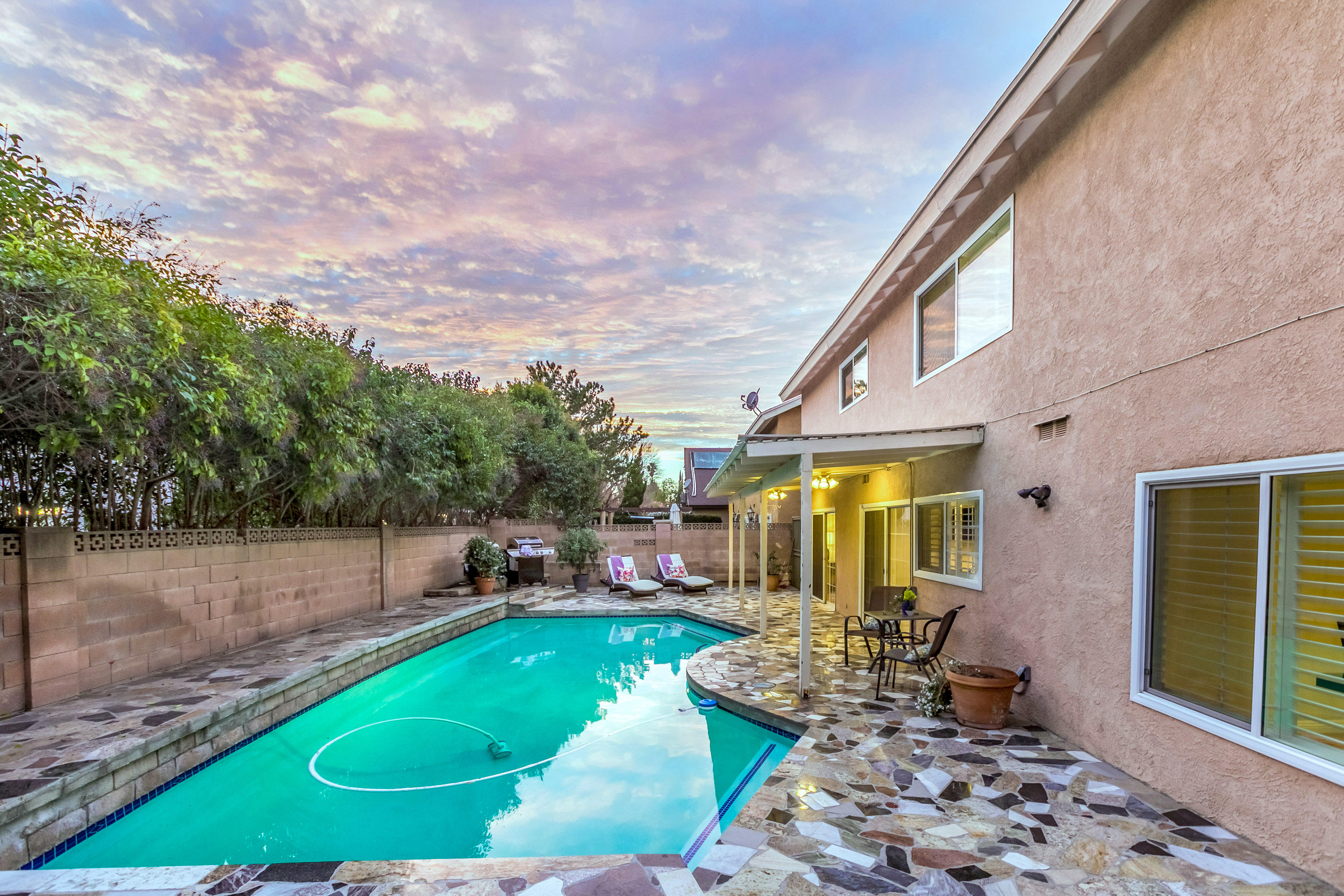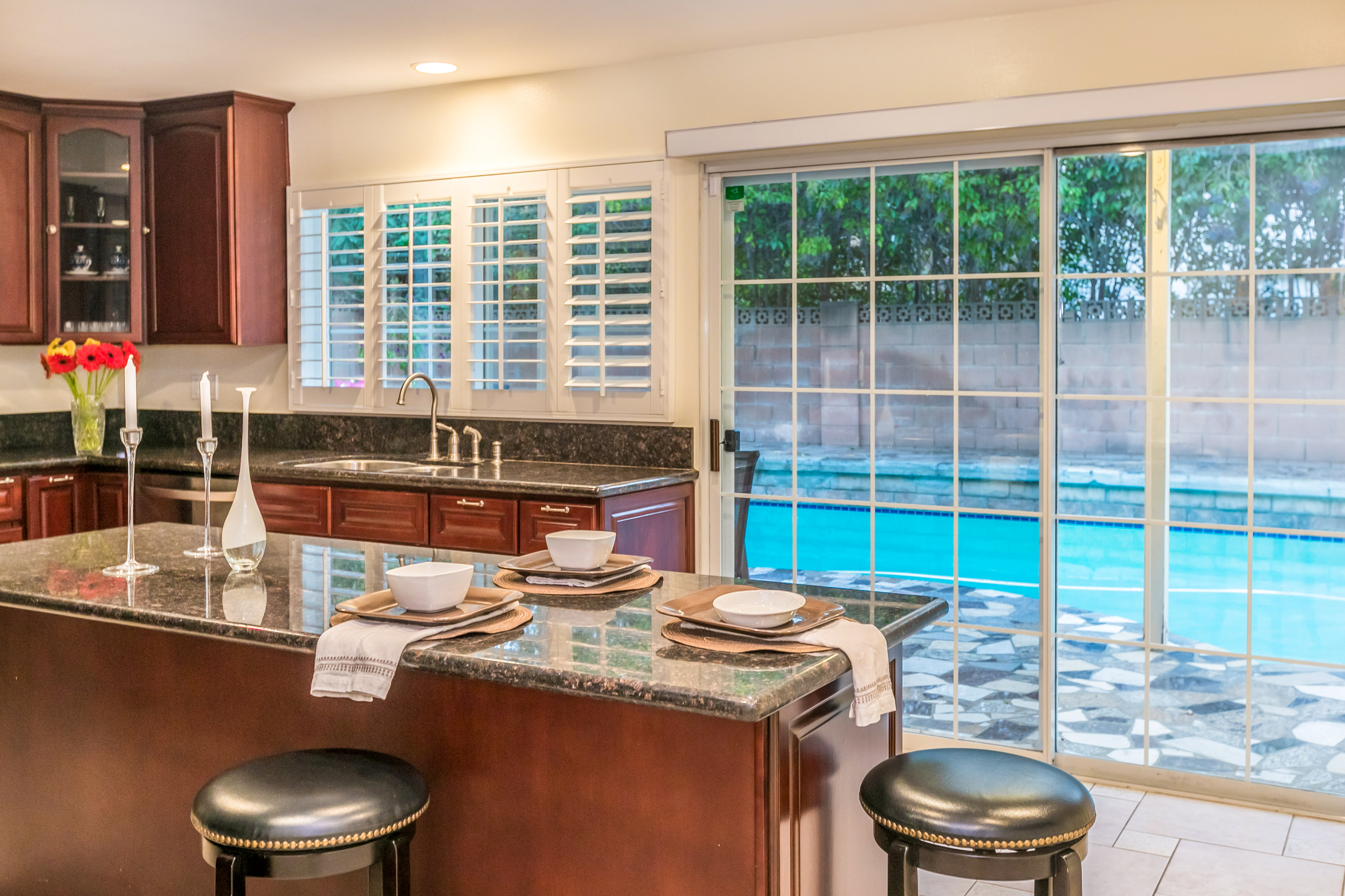 Charming 2-story traditional home in Tarzana. Walk up the front path, through a rose garden, to the private and inviting double door entrance. As you walk in, you are greeted by high ceilings and skylights, creating a grand entrance flooded with an abundance of natural light. The spacious living room opens to the formal dining room, highlighted by a gorgeous chandelier which adds character and elegance. Conveniently located off the dining room is the kitchen, complete with granite countertops, oversized center island, an abundance of cabinets, and stainless steel appliances. The home also features a large family room with an ornate fireplace and extra storage. Both the kitchen and family rooms offer glass sliding doors that open to the backyard with view of the sparkling pool! Upstairs you will find all four generously sized bedrooms, as well as two full bathrooms both with double sinks. The Master bedroom offers plenty of natural light, spacious closets, and in-suite bathroom. Plantation shutters and recessed lighting embellish every room. This home is centrally located to the 101 freeway and the highly desirable Tarzana Safari Walk with shops, restaurants, and so much more, this home is a must see!