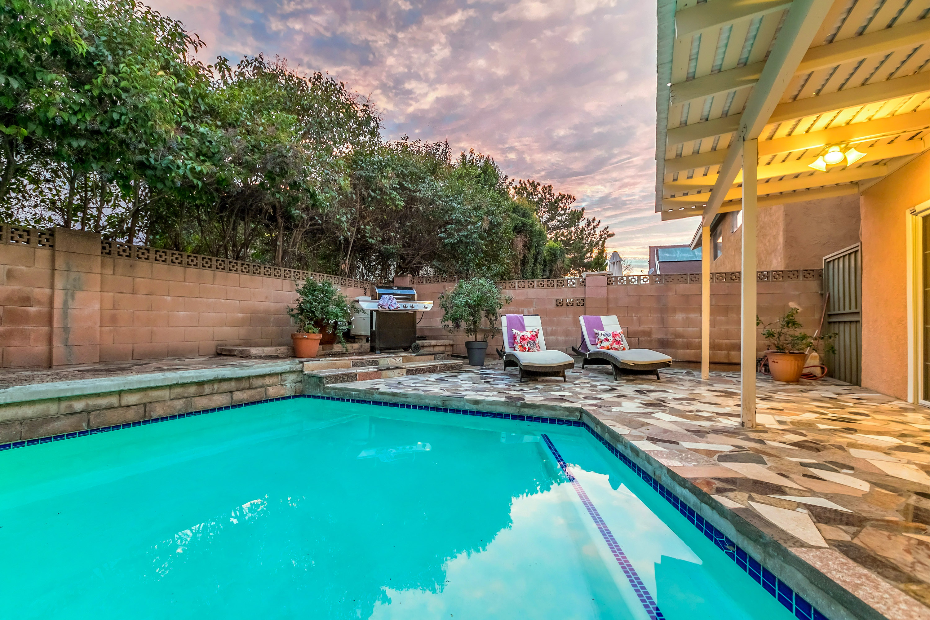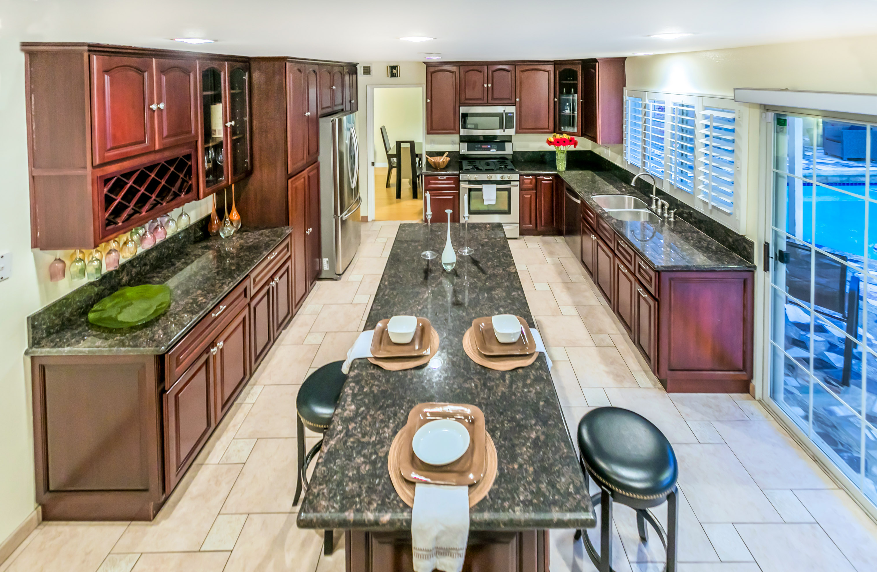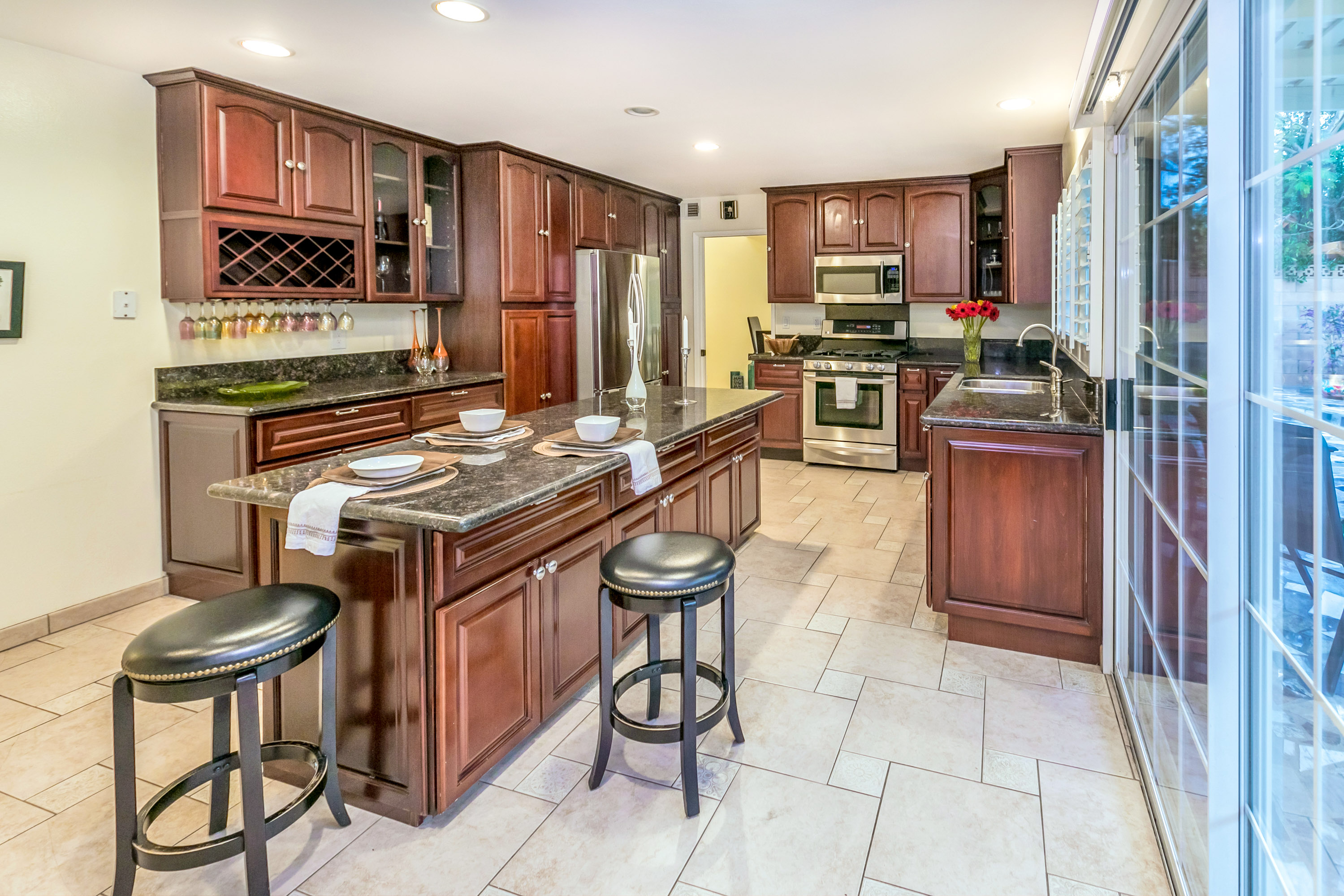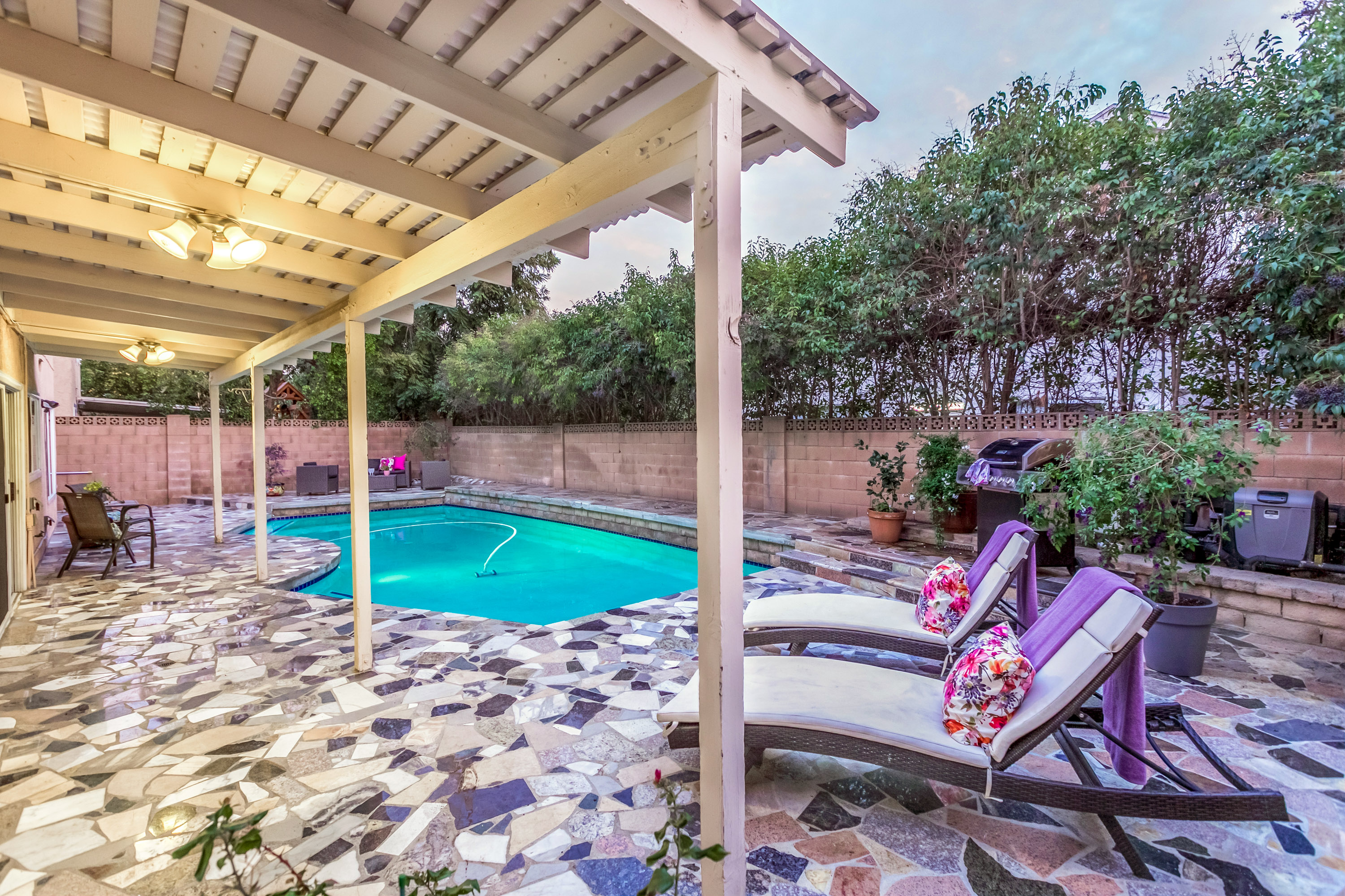 Charming 2-story traditional home in Tarzana. Walk up the front path, through a rose garden, to the private and inviting double door entrance. As you walk in, you are greeted by high ceilings and skylights, creating a grand entrance flooded with an abundance of natural light. The spacious living room opens to the formal dining room, highlighted by a gorgeous chandelier which adds character and elegance. Conveniently located off the dining room is the kitchen, complete with granite countertops, oversized center island, an abundance of cabinets, and stainless steel appliances. The home also features a large family room with an ornate fireplace and extra storage. Both the kitchen and family rooms offer glass sliding doors that open to the backyard with view of the sparkling pool! Upstairs you will find all four generously sized bedrooms, as well as two full bathrooms both with double sinks. The Master bedroom offers plenty of natural light, spacious closets, and in-suite bathroom. Plantation shutters and recessed lighting embellish every room. This home is centrally located to the 101 freeway and the highly desirable Tarzana Safari Walk with shops, restaurants, and so much more, this home is a must see!