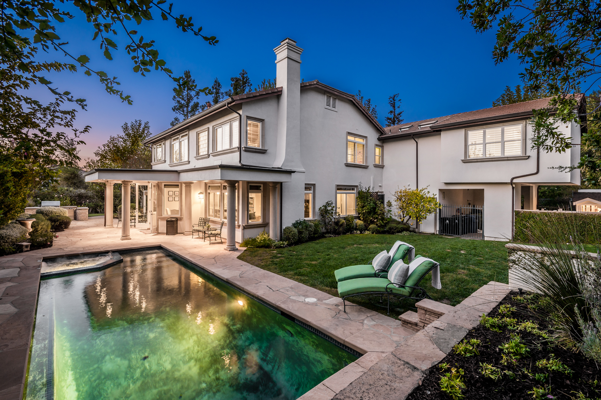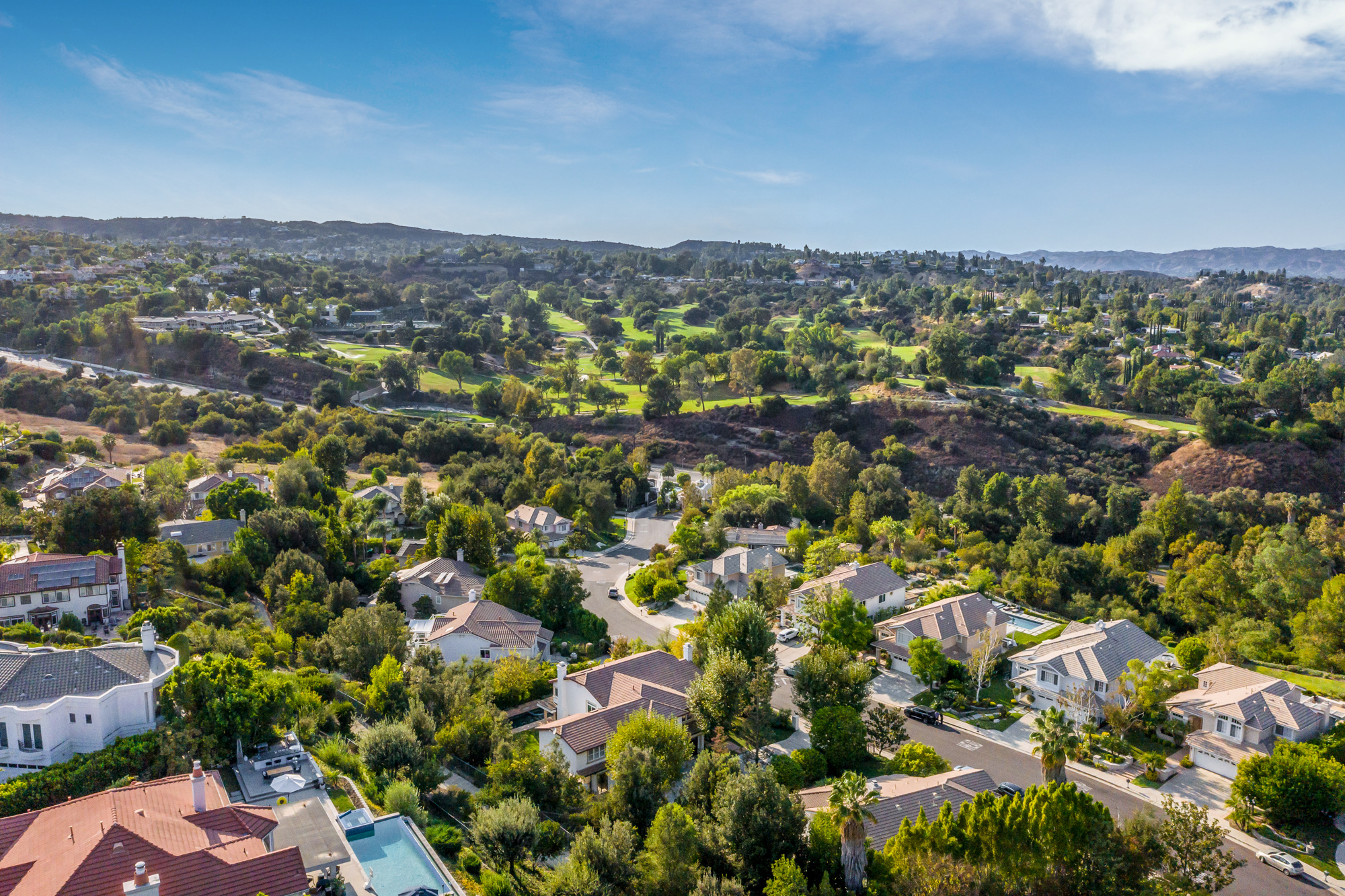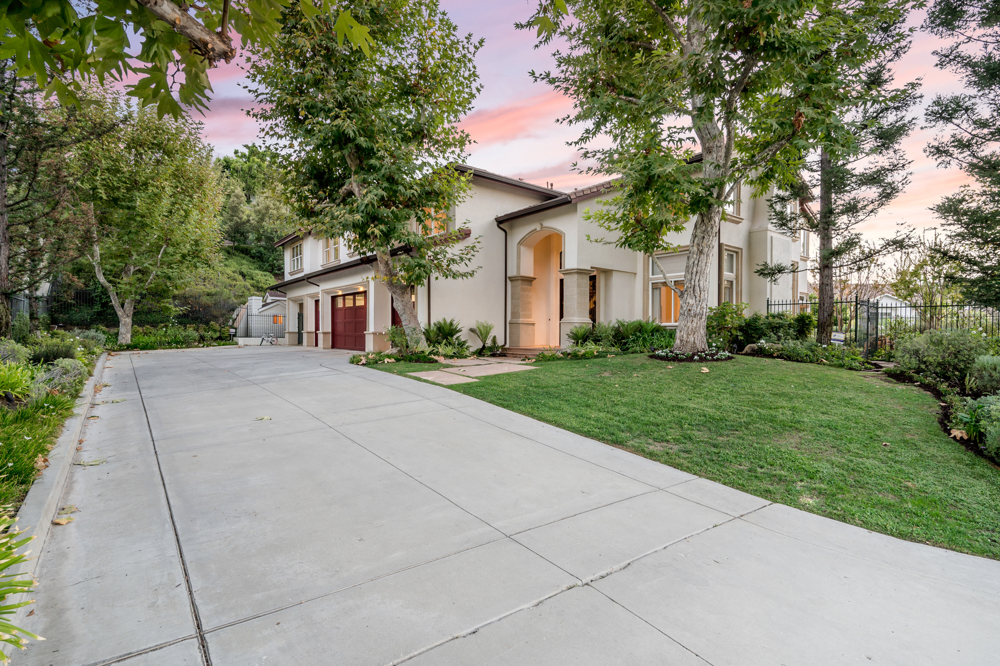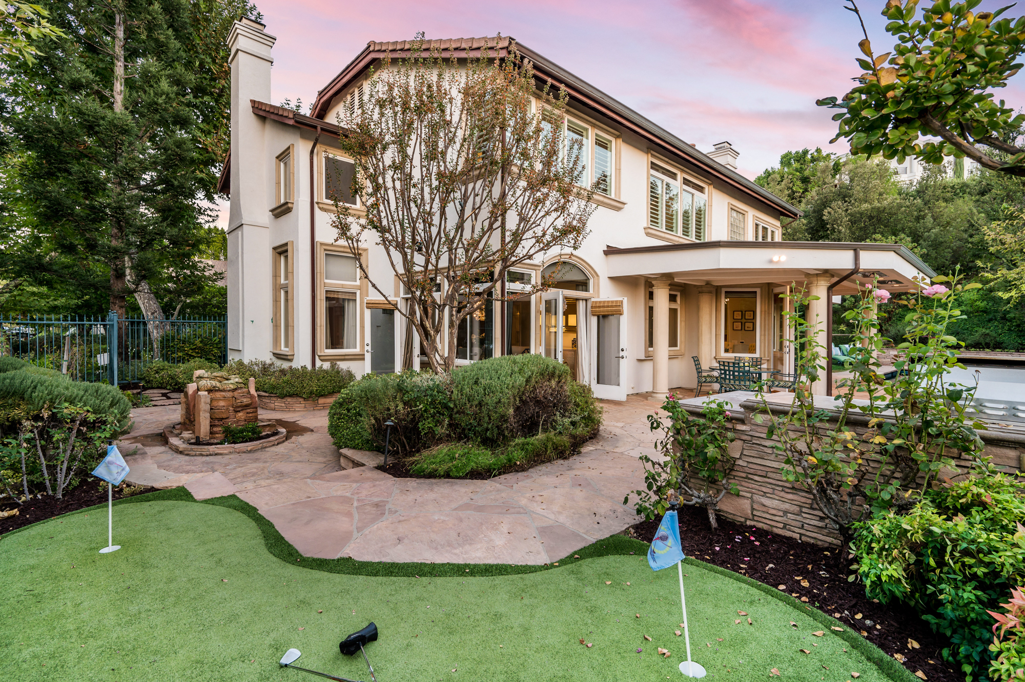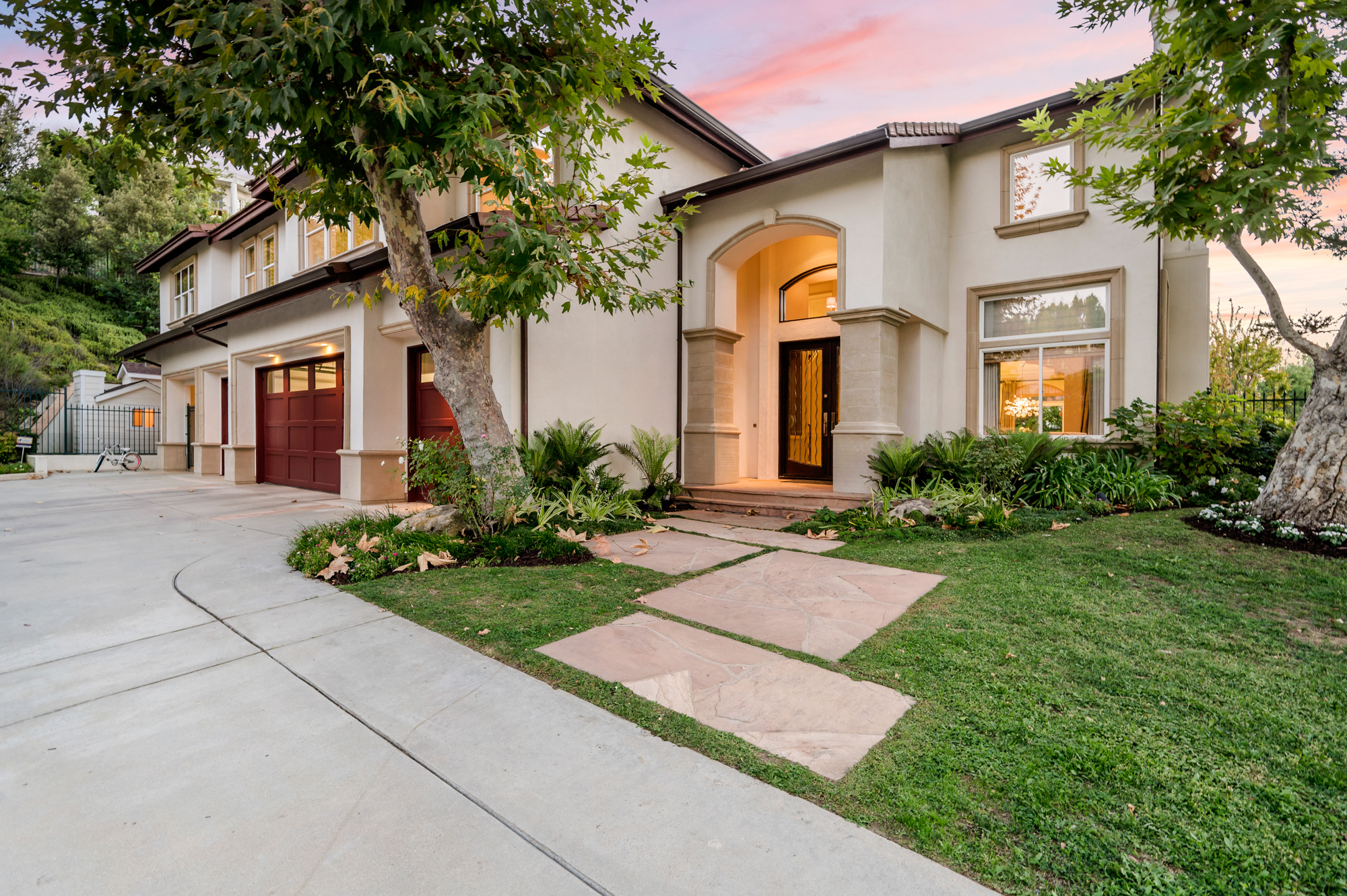 Behind grand fountains and guard gated entrance of the prestigious Silverhawk Community in the hills of Tarzana is this sophisticated and immaculate 6 bedroom home on a sprawling lot of over 22,00sft. As you approach the home, lush towering trees create a sense of serenity and grandeur, while the long driveway sets the home back from the street, creating ultimate privacy. Inside, the home’s grand foyer opens to the airy and bright formal living room with stone fireplace, oak floors, and soaring, two-story ceilings. The dining room boasts dual french doors with views of the verdant garden, where you’ll hear singing birds and bubbling fountains. Off the dining room, a spacious and perfectly configured kitchen features travertine floors, a large center island, plenty of counter space, a breakfast nook, and high end appliances. The kitchen flows into the family room which has the home’s second fireplace and a custom built-in entertainment center. The downstairs bedroom has an en-suite, large closet and high quality built-ins, perfect for an office or guest room. A grand staircase beckons to a spacious master retreat with a large sitting area and sunset views of surrounding hills and Braemar Country Club golf course. The master bathroom is bright with a skylight, and offers dual closets, separate vanities, soaking tub and walk-in shower. Upstairs also holds a junior master suite, 2 secondary bedrooms, and a sixth bedroom currently configured as a giant rec room, but offers endless possibilities. The backyard is an entertainer’s dream; with multiple seating and dining areas, large grassy pad, Twin Eagles built-in BBQ, custom putting green, and sparkling pool & spa. Kids will love the fully outfitted and wired two-story playhouse. Additional features include attached 4 car garage, dual laundry rooms for ultimate convenience, and more! This house, and this community, make the perfect place to call home.