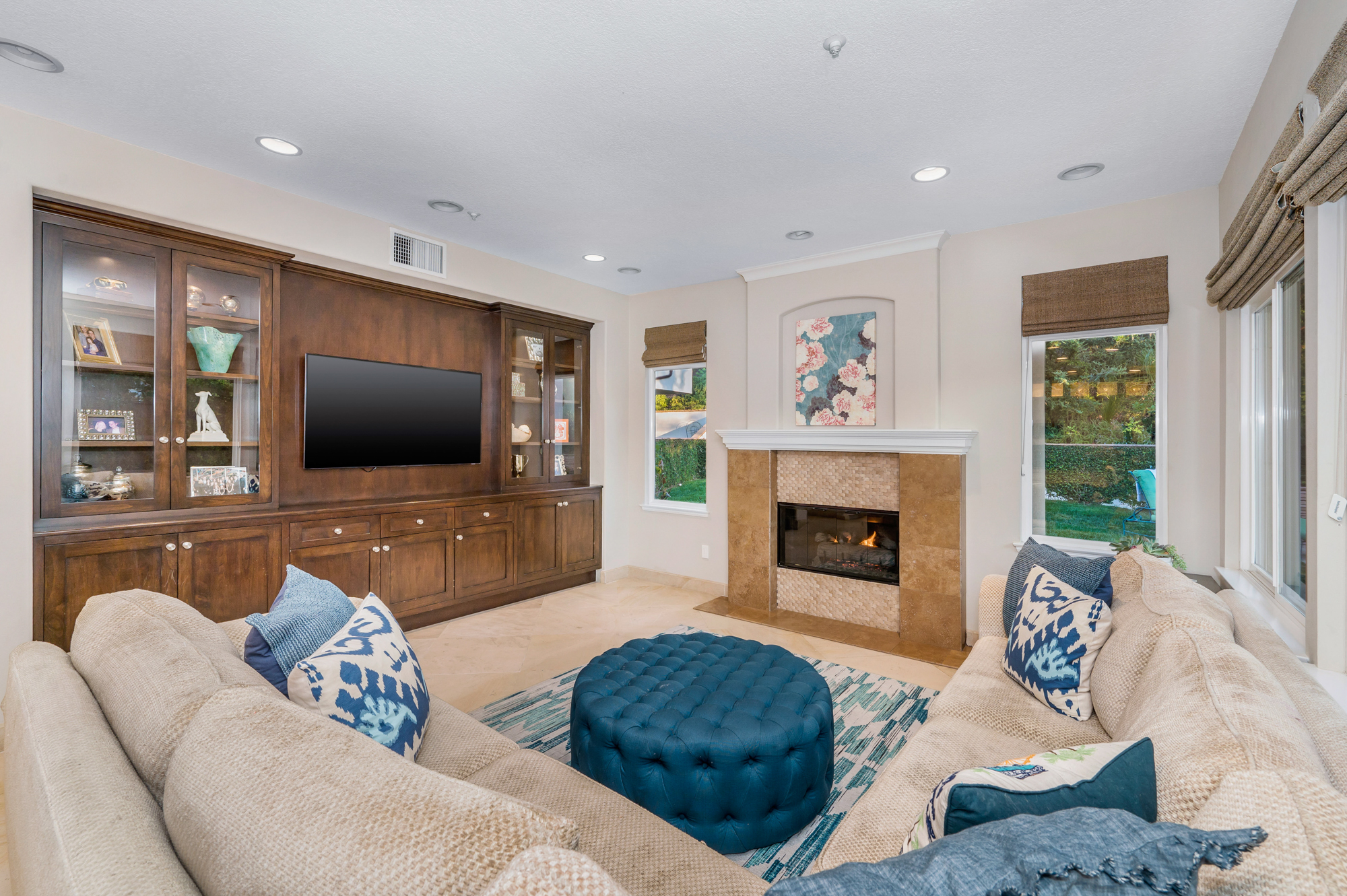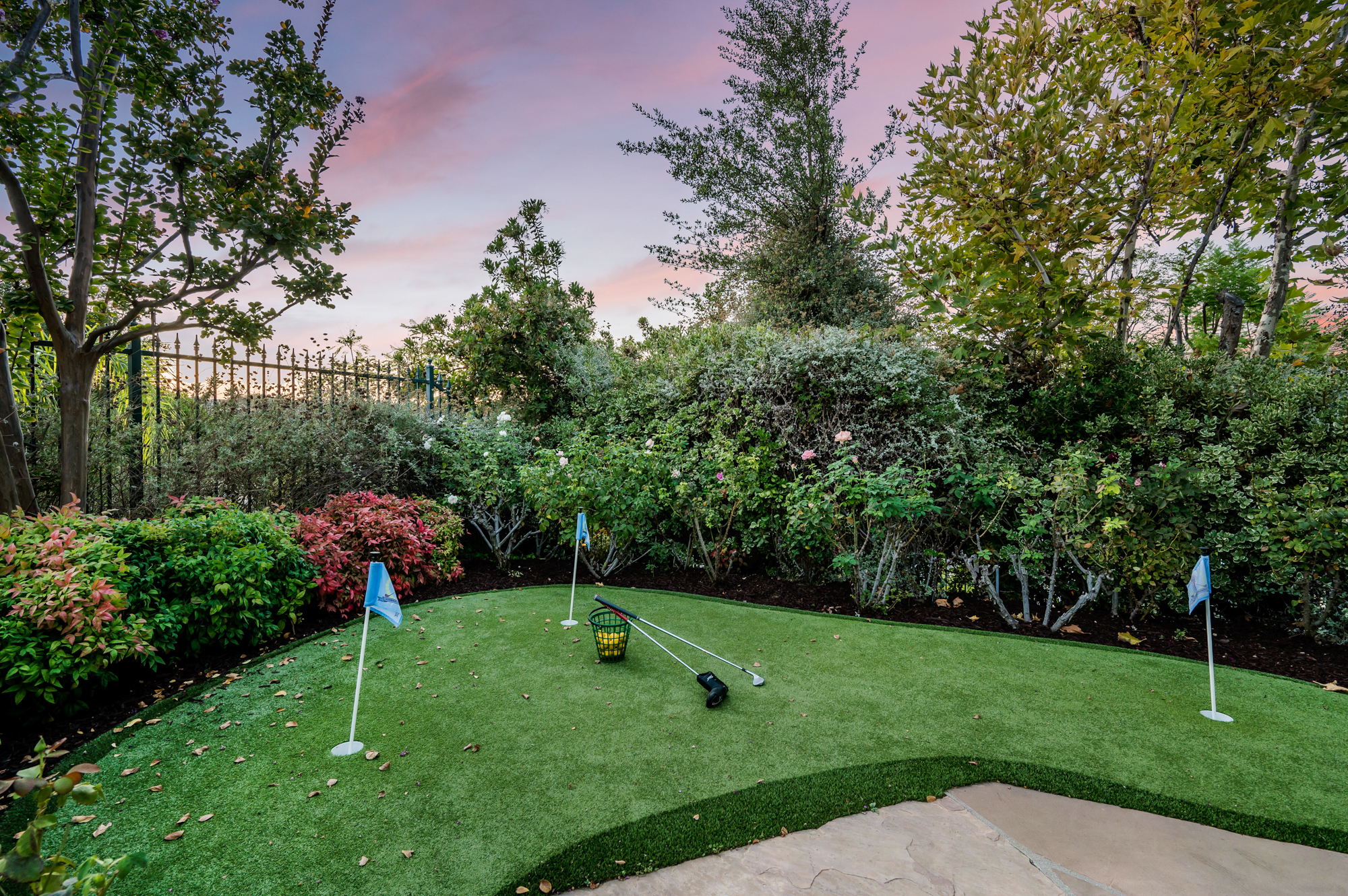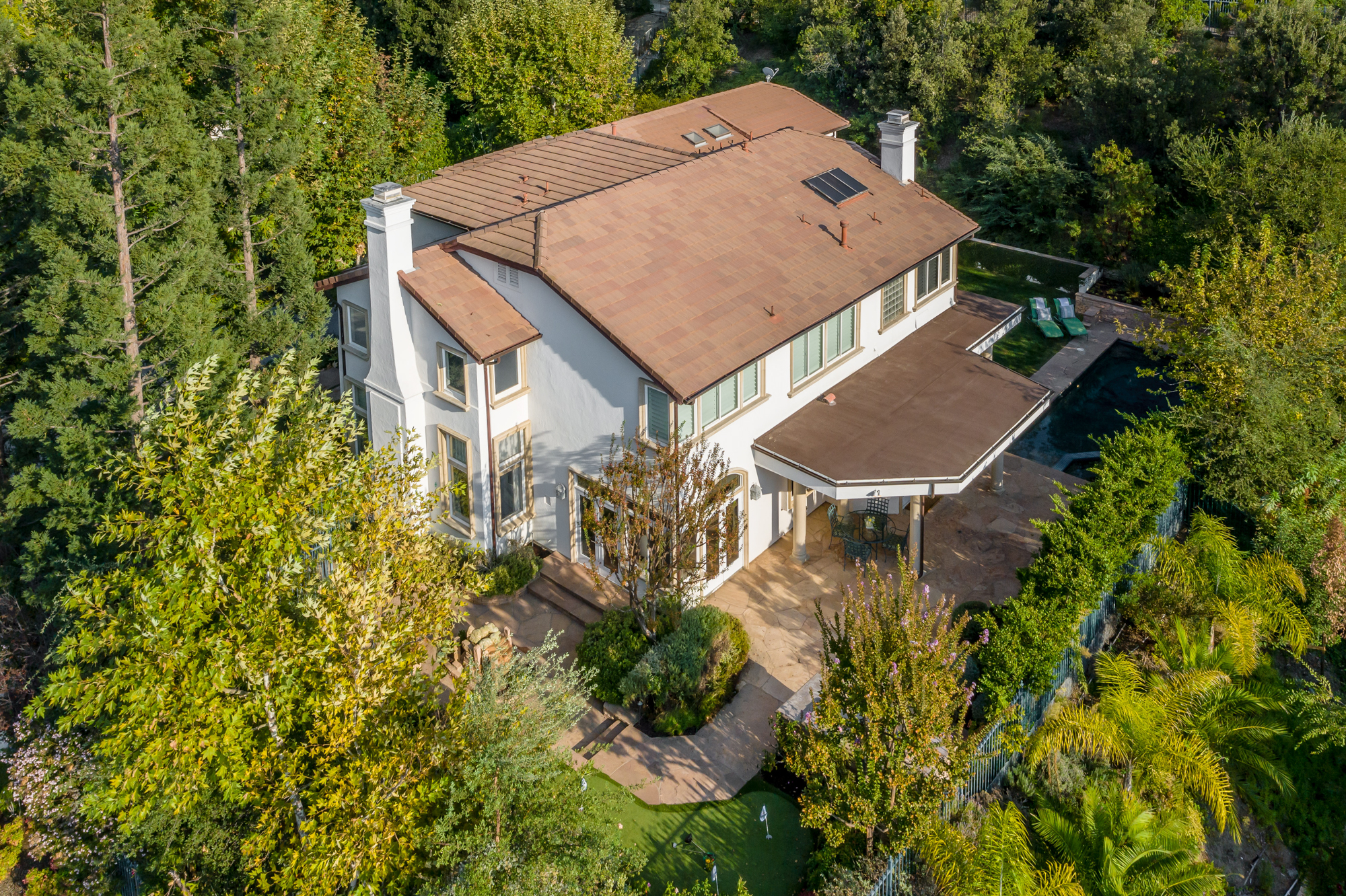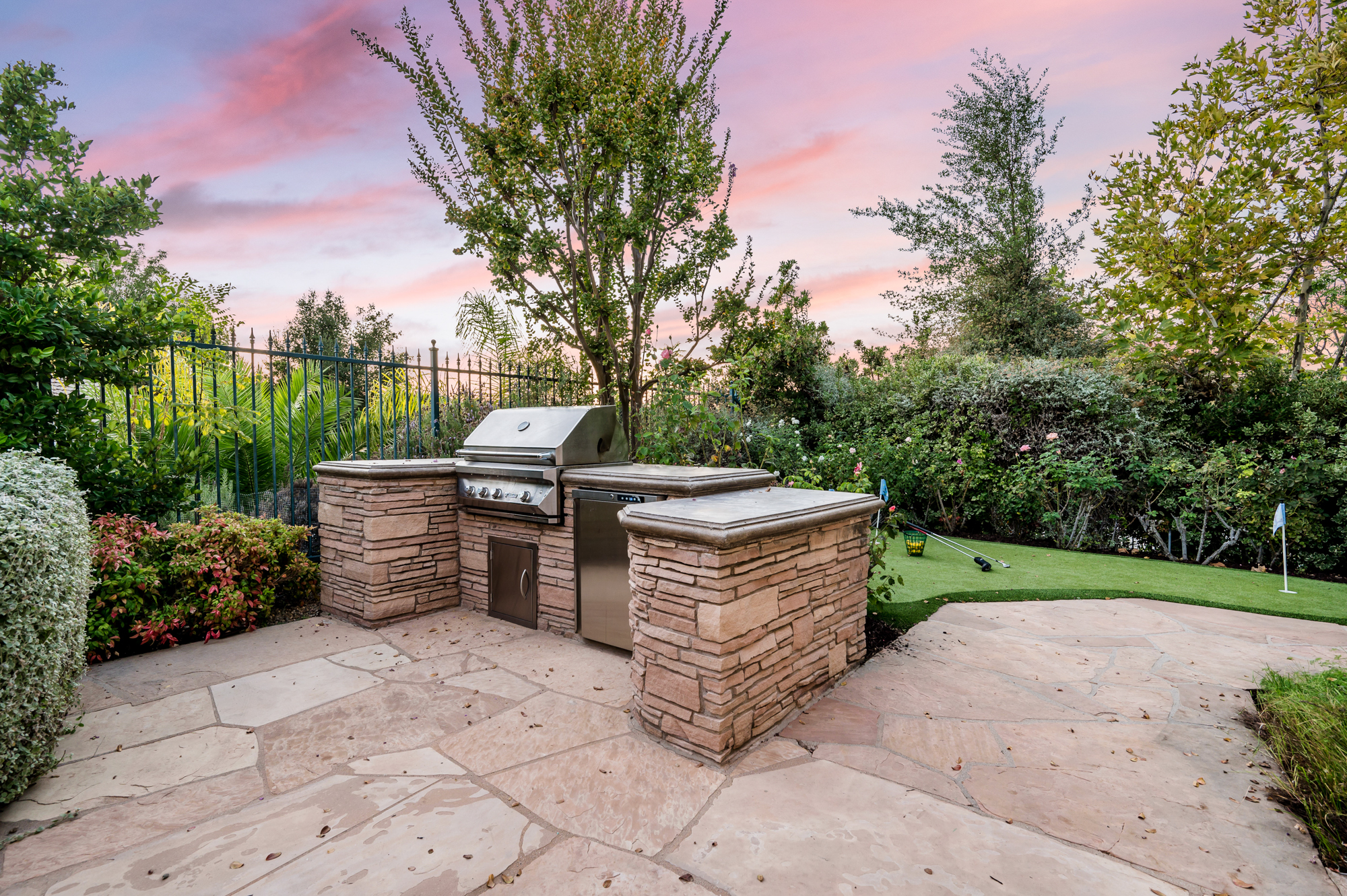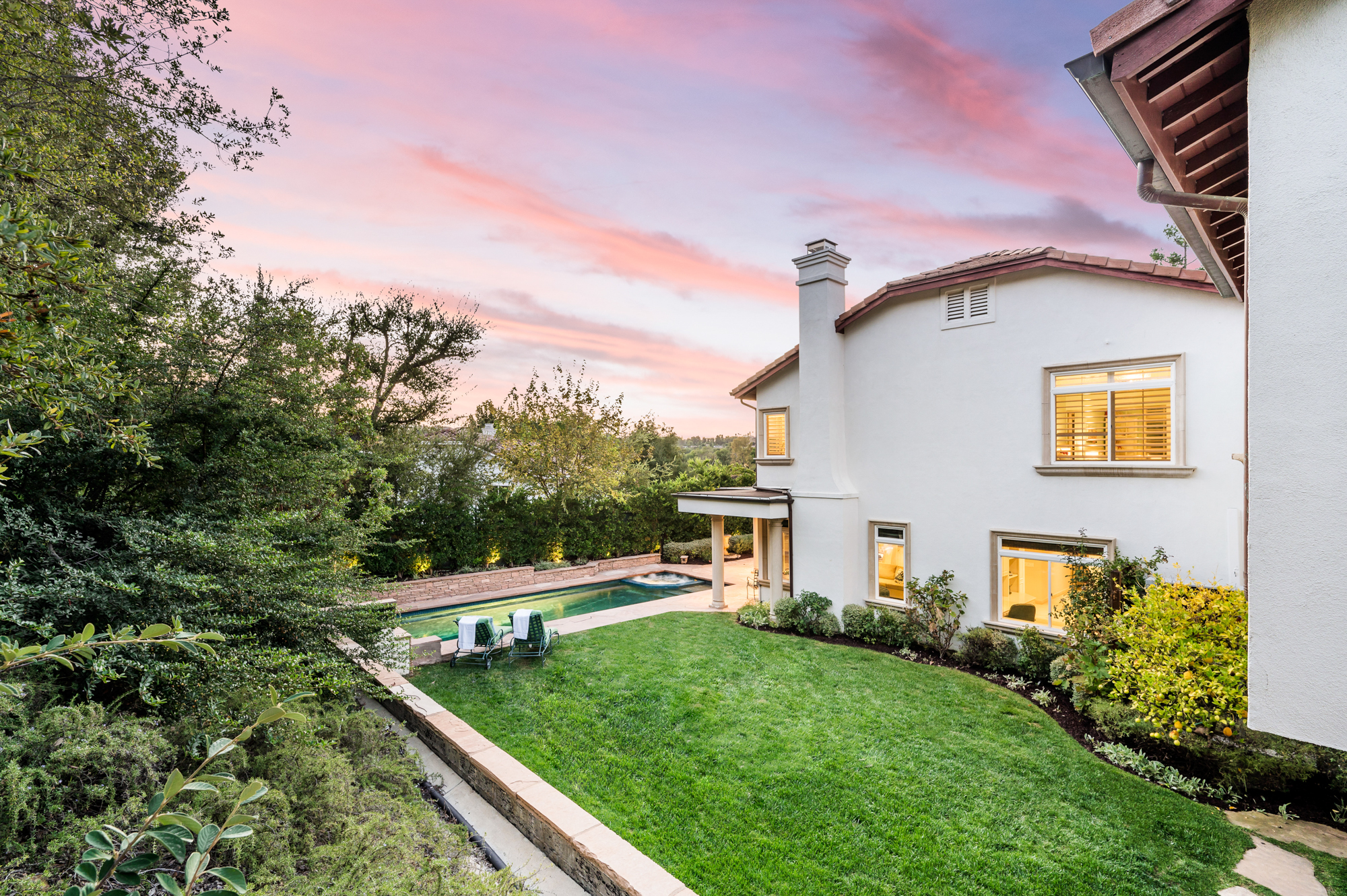 Behind grand fountains and guard gated entrance of the prestigious Silverhawk Community in the hills of Tarzana is this sophisticated and immaculate 6 bedroom home on a sprawling lot of over 22,00sft. As you approach the home, lush towering trees create a sense of serenity and grandeur, while the long driveway sets the home back from the street, creating ultimate privacy. Inside, the home’s grand foyer opens to the airy and bright formal living room with stone fireplace, oak floors, and soaring, two-story ceilings. The dining room boasts dual french doors with views of the verdant garden, where you’ll hear singing birds and bubbling fountains. Off the dining room, a spacious and perfectly configured kitchen features travertine floors, a large center island, plenty of counter space, a breakfast nook, and high end appliances. The kitchen flows into the family room which has the home’s second fireplace and a custom built-in entertainment center. The downstairs bedroom has an en-suite, large closet and high quality built-ins, perfect for an office or guest room. A grand staircase beckons to a spacious master retreat with a large sitting area and sunset views of surrounding hills and Braemar Country Club golf course. The master bathroom is bright with a skylight, and offers dual closets, separate vanities, soaking tub and walk-in shower. Upstairs also holds a junior master suite, 2 secondary bedrooms, and a sixth bedroom currently configured as a giant rec room, but offers endless possibilities. The backyard is an entertainer’s dream; with multiple seating and dining areas, large grassy pad, Twin Eagles built-in BBQ, custom putting green, and sparkling pool & spa. Kids will love the fully outfitted and wired two-story playhouse. Additional features include attached 4 car garage, dual laundry rooms for ultimate convenience, and more! This house, and this community, make the perfect place to call home.