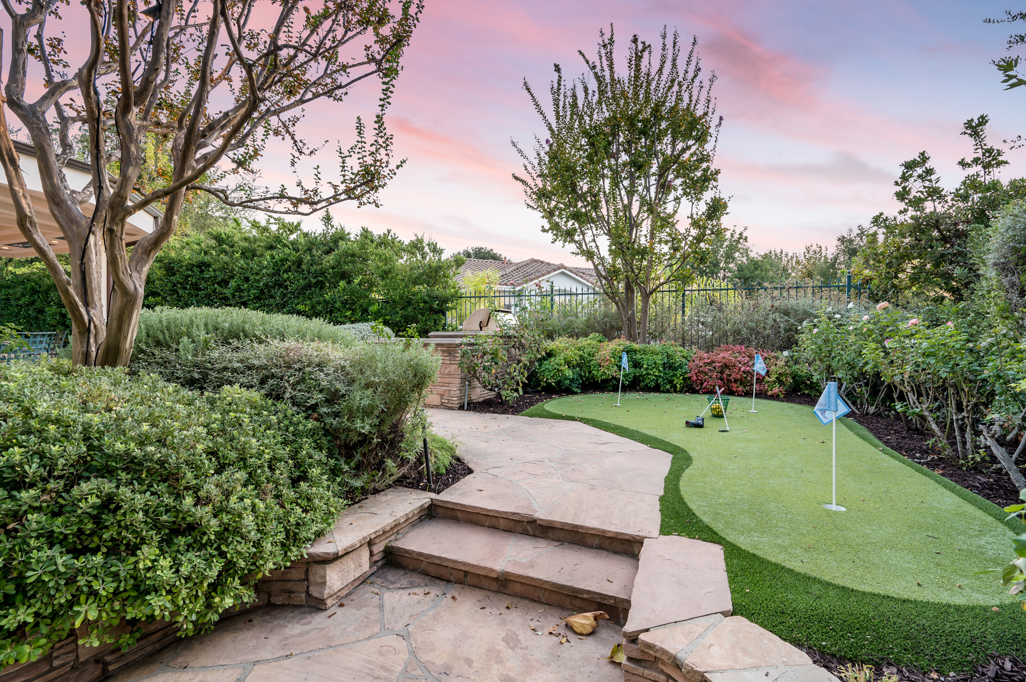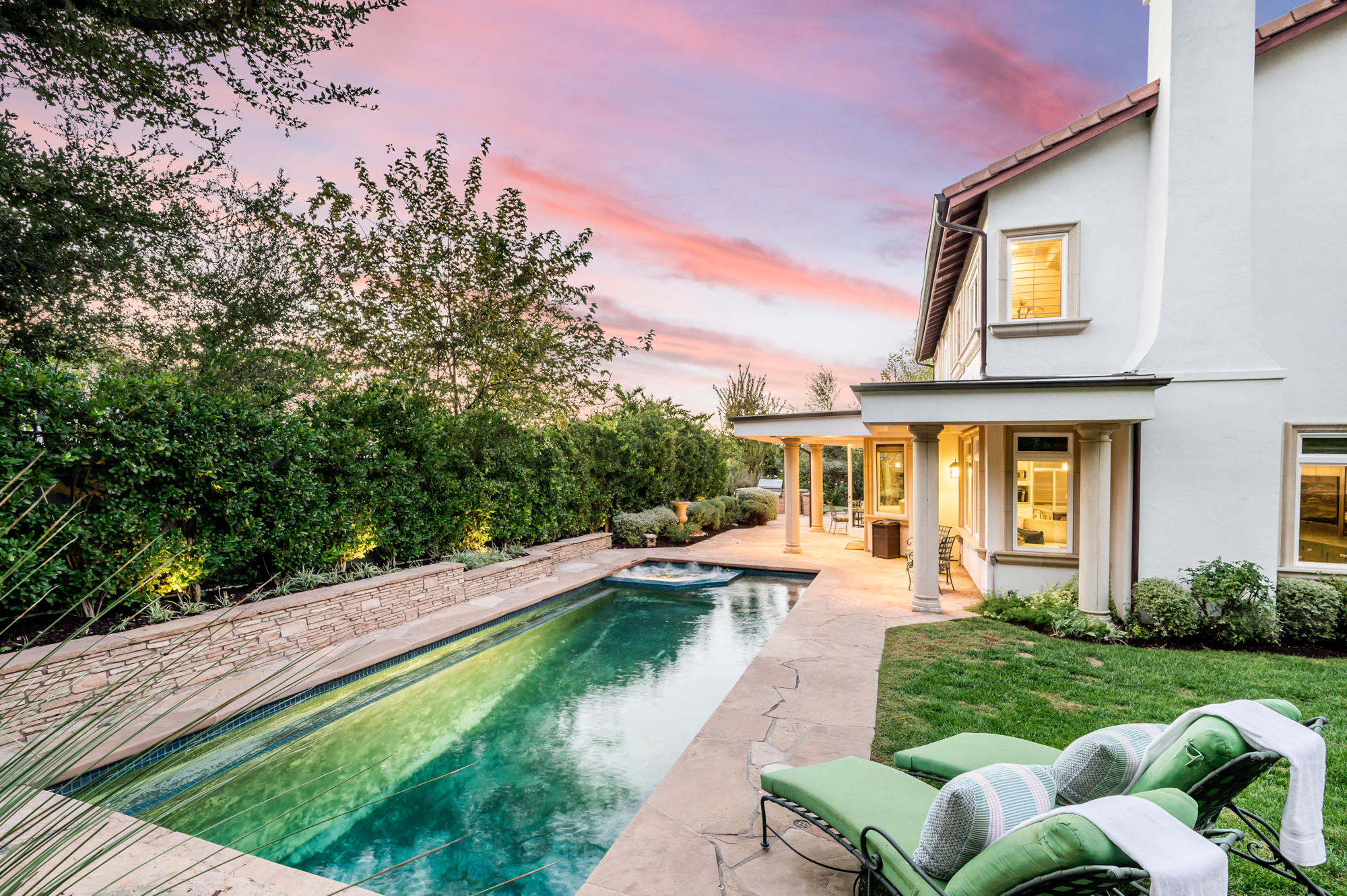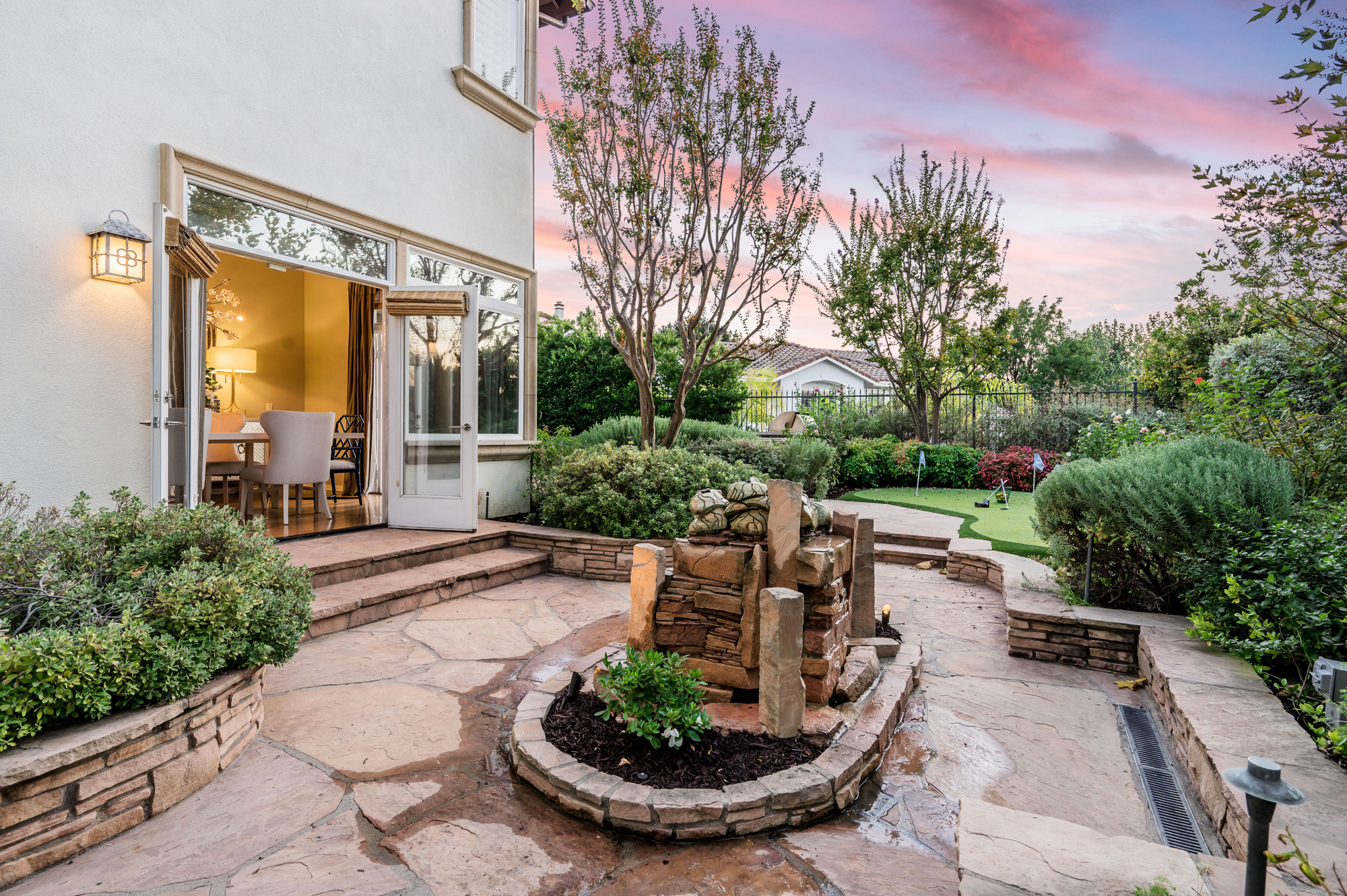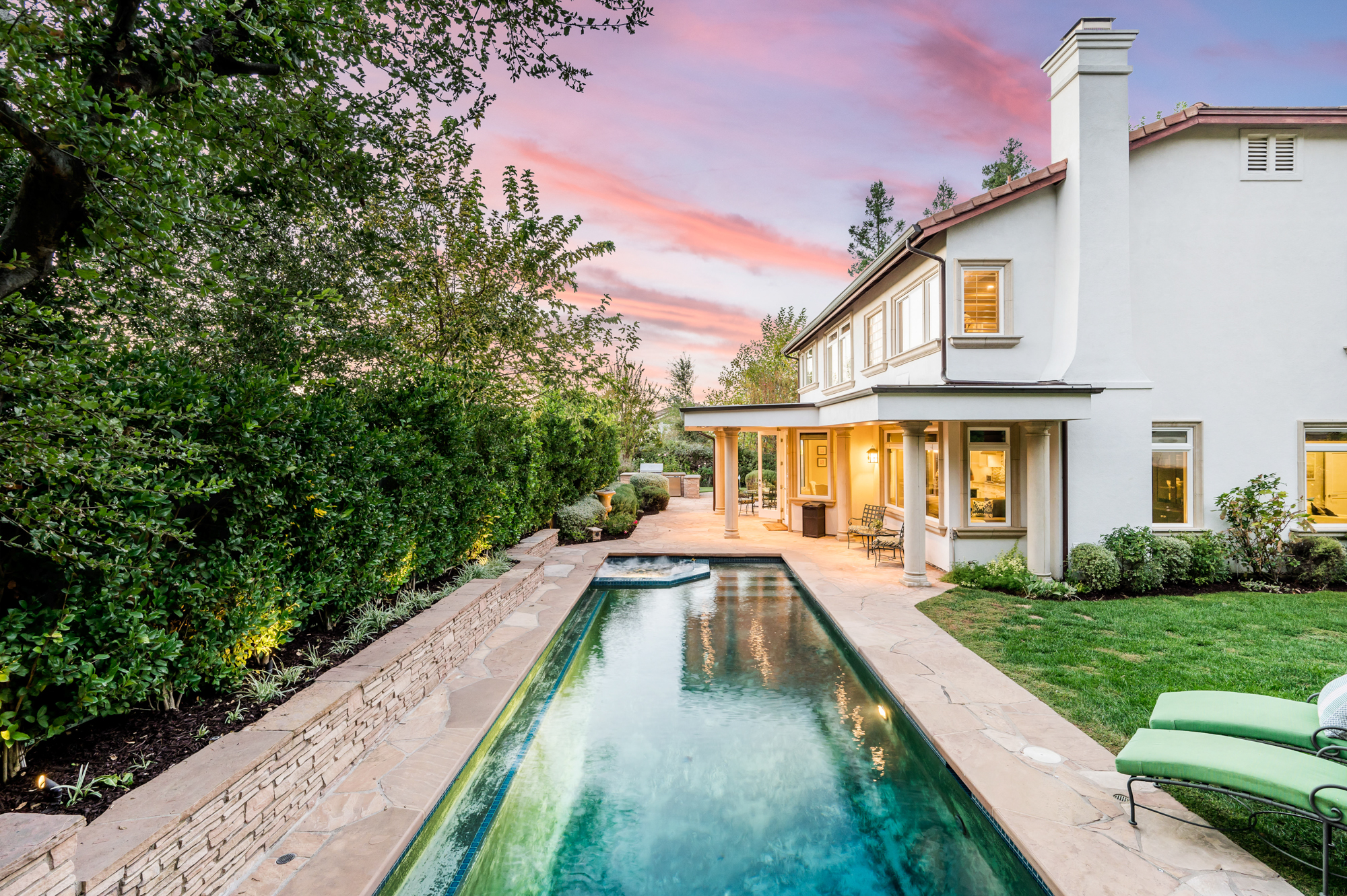 Behind grand fountains and guard gated entrance of the prestigious Silverhawk Community in the hills of Tarzana is this sophisticated and immaculate 6 bedroom home on a sprawling lot of over 22,00sft. As you approach the home, lush towering trees create a sense of serenity and grandeur, while the long driveway sets the home back from the street, creating ultimate privacy. Inside, the home’s grand foyer opens to the airy and bright formal living room with stone fireplace, oak floors, and soaring, two-story ceilings. The dining room boasts dual french doors with views of the verdant garden, where you’ll hear singing birds and bubbling fountains. Off the dining room, a spacious and perfectly configured kitchen features travertine floors, a large center island, plenty of counter space, a breakfast nook, and high end appliances. The kitchen flows into the family room which has the home’s second fireplace and a custom built-in entertainment center. The downstairs bedroom has an en-suite, large closet and high quality built-ins, perfect for an office or guest room. A grand staircase beckons to a spacious master retreat with a large sitting area and sunset views of surrounding hills and Braemar Country Club golf course. The master bathroom is bright with a skylight, and offers dual closets, separate vanities, soaking tub and walk-in shower. Upstairs also holds a junior master suite, 2 secondary bedrooms, and a sixth bedroom currently configured as a giant rec room, but offers endless possibilities. The backyard is an entertainer’s dream; with multiple seating and dining areas, large grassy pad, Twin Eagles built-in BBQ, custom putting green, and sparkling pool & spa. Kids will love the fully outfitted and wired two-story playhouse. Additional features include attached 4 car garage, dual laundry rooms for ultimate convenience, and more! This house, and this community, make the perfect place to call home.