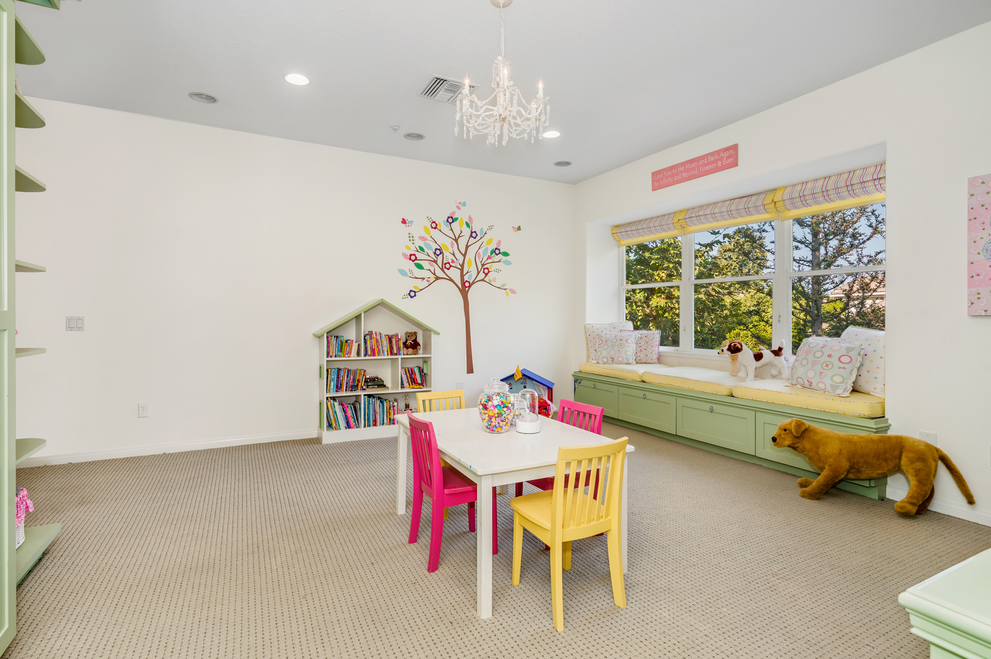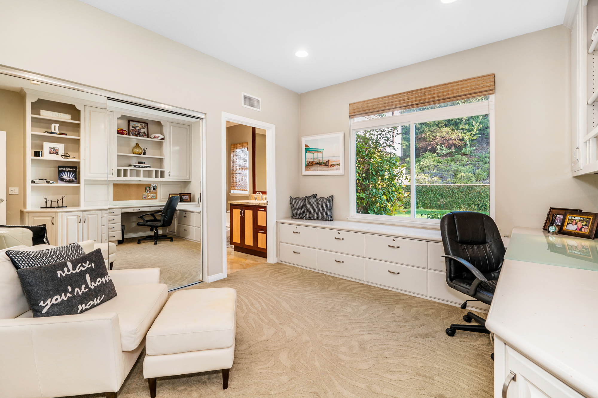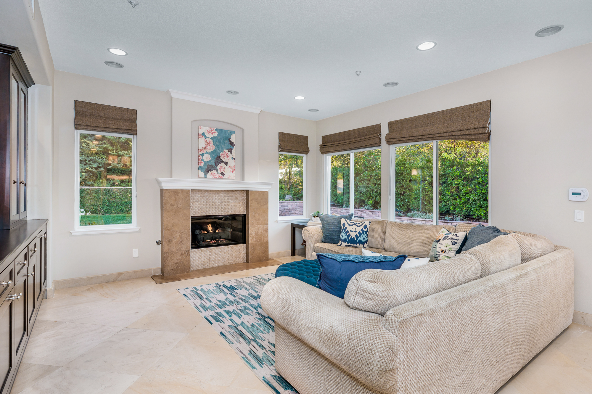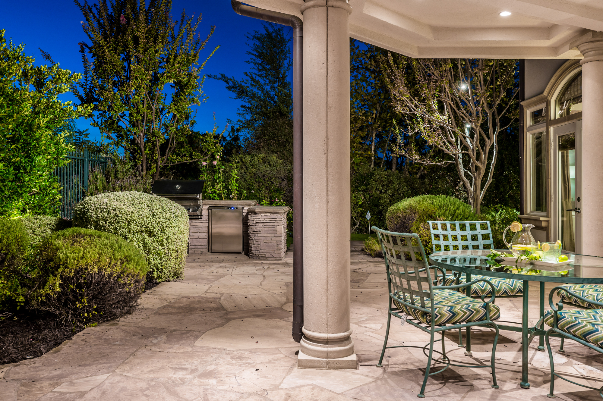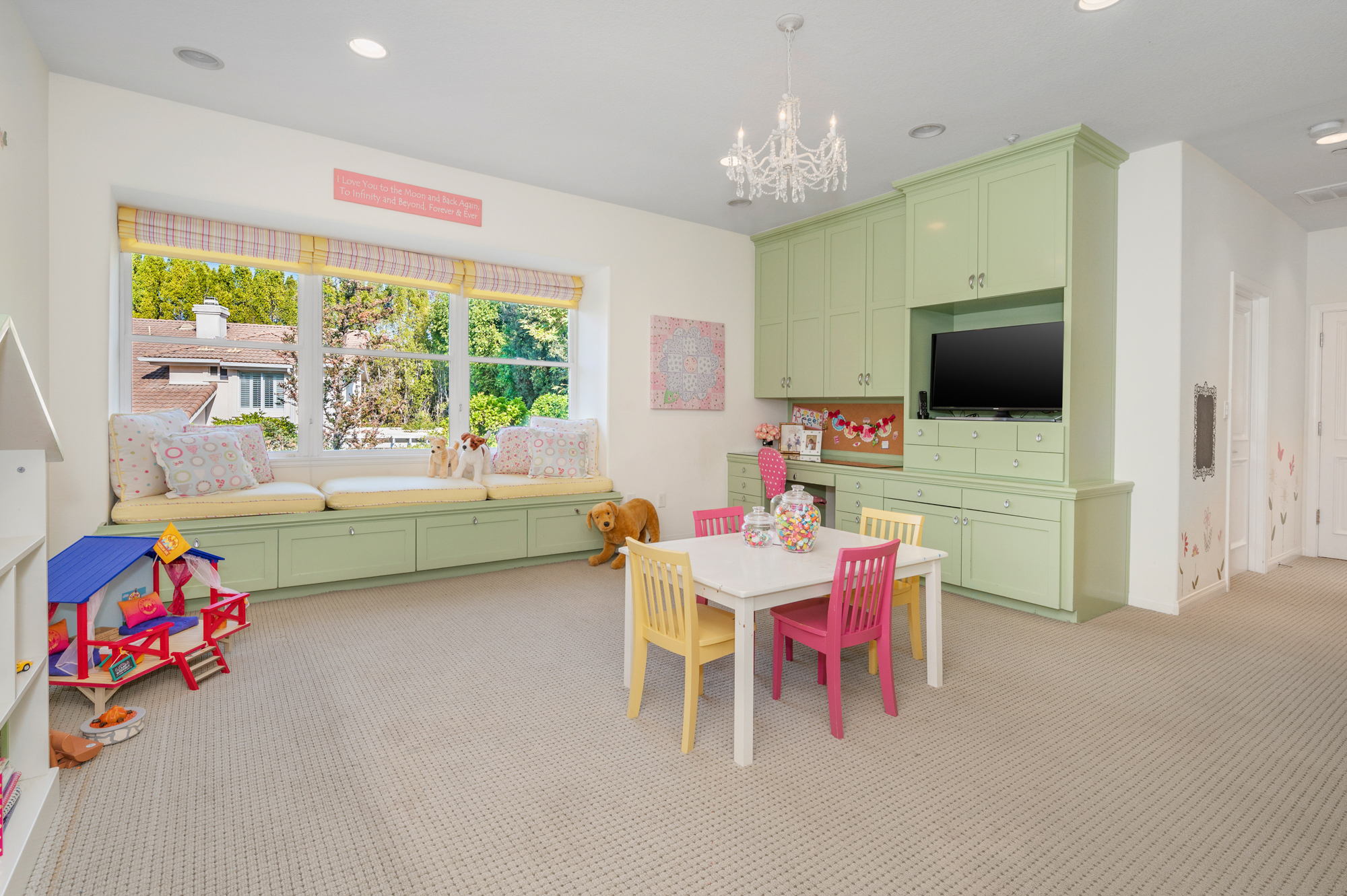 Behind grand fountains and guard gated entrance of the prestigious Silverhawk Community in the hills of Tarzana is this sophisticated and immaculate 6 bedroom home on a sprawling lot of over 22,00sft. As you approach the home, lush towering trees create a sense of serenity and grandeur, while the long driveway sets the home back from the street, creating ultimate privacy. Inside, the home’s grand foyer opens to the airy and bright formal living room with stone fireplace, oak floors, and soaring, two-story ceilings. The dining room boasts dual french doors with views of the verdant garden, where you’ll hear singing birds and bubbling fountains. Off the dining room, a spacious and perfectly configured kitchen features travertine floors, a large center island, plenty of counter space, a breakfast nook, and high end appliances. The kitchen flows into the family room which has the home’s second fireplace and a custom built-in entertainment center. The downstairs bedroom has an en-suite, large closet and high quality built-ins, perfect for an office or guest room. A grand staircase beckons to a spacious master retreat with a large sitting area and sunset views of surrounding hills and Braemar Country Club golf course. The master bathroom is bright with a skylight, and offers dual closets, separate vanities, soaking tub and walk-in shower. Upstairs also holds a junior master suite, 2 secondary bedrooms, and a sixth bedroom currently configured as a giant rec room, but offers endless possibilities. The backyard is an entertainer’s dream; with multiple seating and dining areas, large grassy pad, Twin Eagles built-in BBQ, custom putting green, and sparkling pool & spa. Kids will love the fully outfitted and wired two-story playhouse. Additional features include attached 4 car garage, dual laundry rooms for ultimate convenience, and more! This house, and this community, make the perfect place to call home.