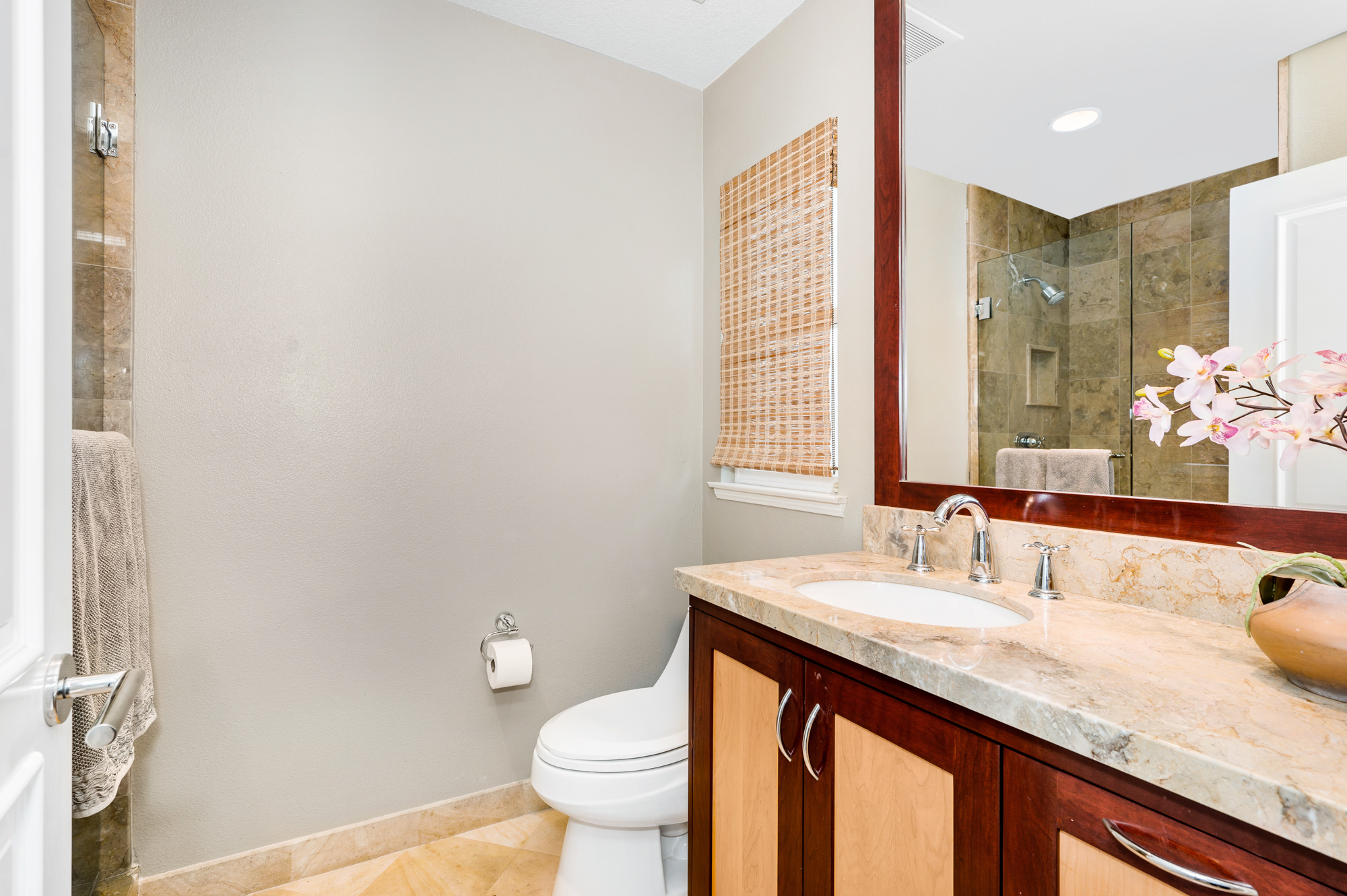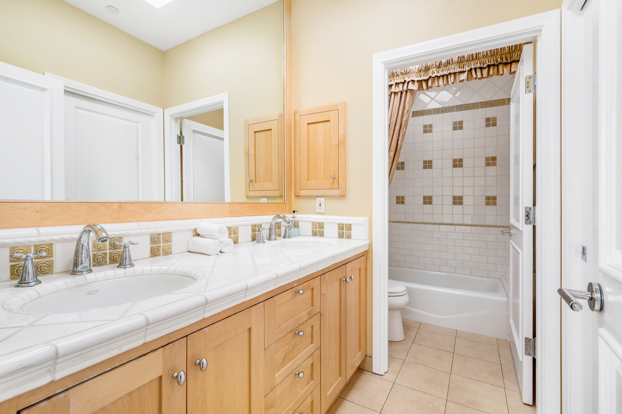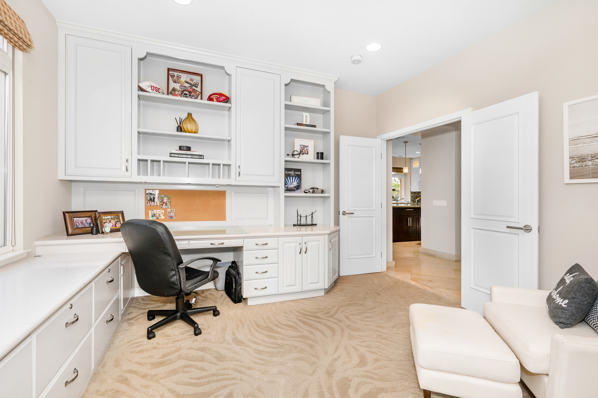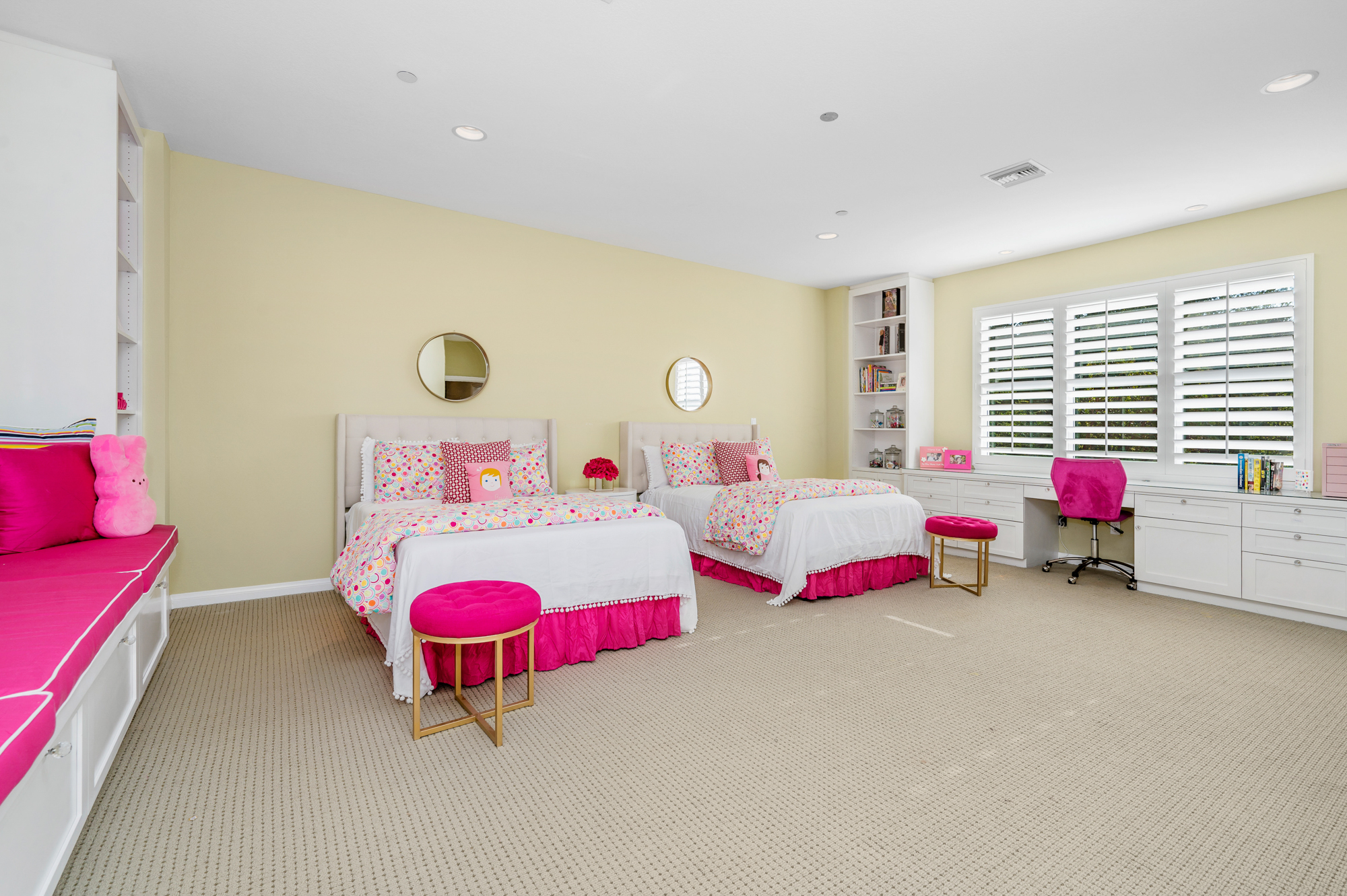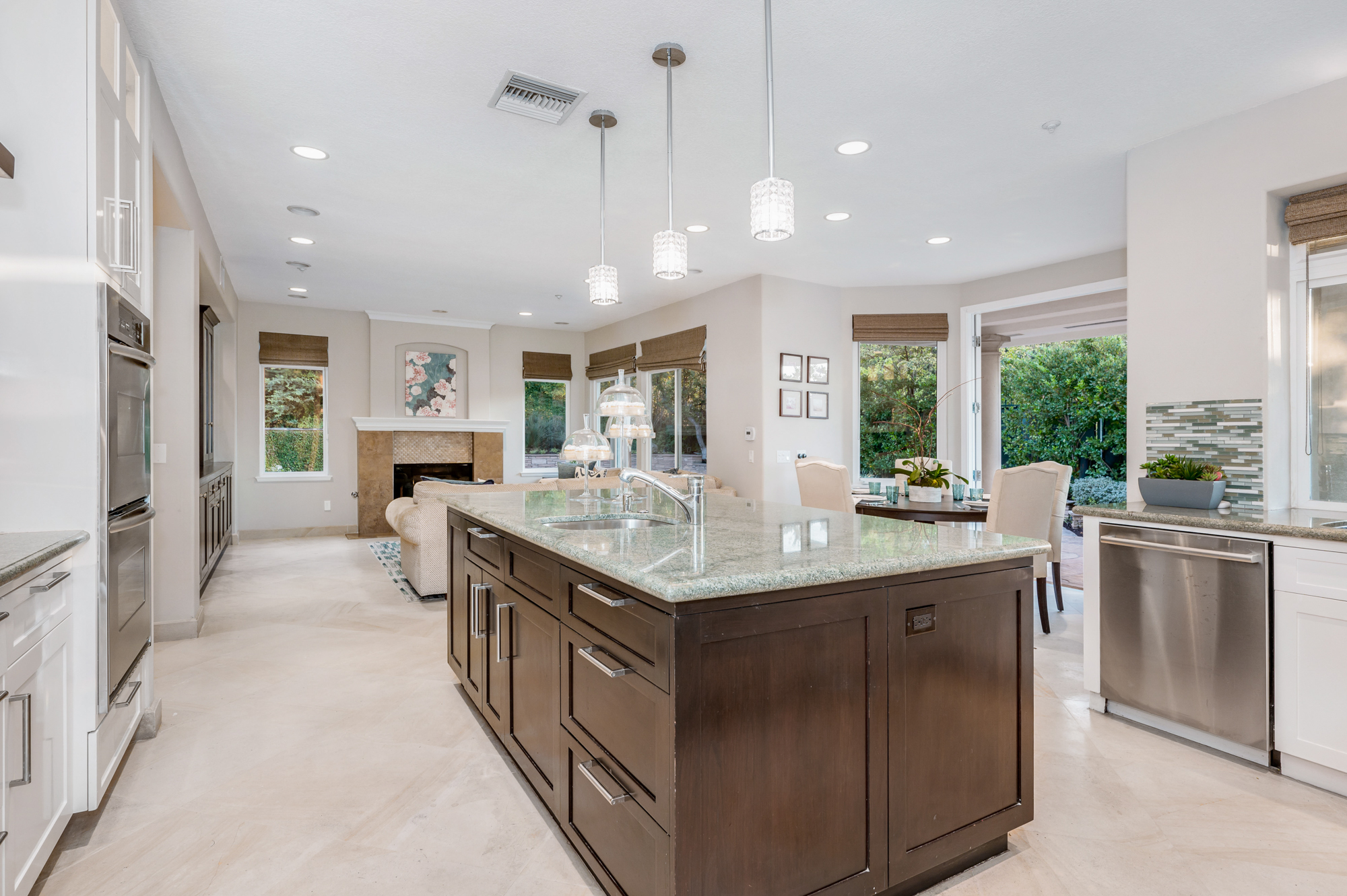 Behind grand fountains and guard gated entrance of the prestigious Silverhawk Community in the hills of Tarzana is this sophisticated and immaculate 6 bedroom home on a sprawling lot of over 22,00sft. As you approach the home, lush towering trees create a sense of serenity and grandeur, while the long driveway sets the home back from the street, creating ultimate privacy. Inside, the home’s grand foyer opens to the airy and bright formal living room with stone fireplace, oak floors, and soaring, two-story ceilings. The dining room boasts dual french doors with views of the verdant garden, where you’ll hear singing birds and bubbling fountains. Off the dining room, a spacious and perfectly configured kitchen features travertine floors, a large center island, plenty of counter space, a breakfast nook, and high end appliances. The kitchen flows into the family room which has the home’s second fireplace and a custom built-in entertainment center. The downstairs bedroom has an en-suite, large closet and high quality built-ins, perfect for an office or guest room. A grand staircase beckons to a spacious master retreat with a large sitting area and sunset views of surrounding hills and Braemar Country Club golf course. The master bathroom is bright with a skylight, and offers dual closets, separate vanities, soaking tub and walk-in shower. Upstairs also holds a junior master suite, 2 secondary bedrooms, and a sixth bedroom currently configured as a giant rec room, but offers endless possibilities. The backyard is an entertainer’s dream; with multiple seating and dining areas, large grassy pad, Twin Eagles built-in BBQ, custom putting green, and sparkling pool & spa. Kids will love the fully outfitted and wired two-story playhouse. Additional features include attached 4 car garage, dual laundry rooms for ultimate convenience, and more! This house, and this community, make the perfect place to call home.