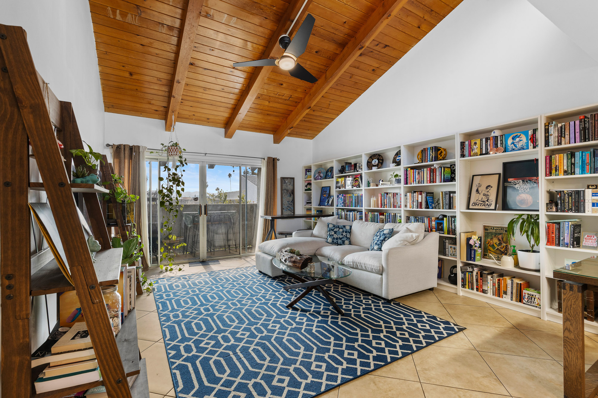 Welcome to this move-in ready top-floor unit located in the heart of Winnetka. Inside, the open-concept floor plan features a remodeled kitchen, inviting dining area and sun-drenched living room with vaulted wood-beamed ceilings and direct access to a private balcony. This unit offers two generously sized bedrooms and two updated bathrooms, including a primary bedroom with an ensuite bath. Residents enjoy a host of community amenities, including 24-hour security, a sparkling pool, multiple spas, a clubhouse, laundry facilities and lushly landscaped grounds. Additional highlights include two tandem parking spaces in the secured community structure and convenient access to nearby shops, restaurants and Runnymede Park.