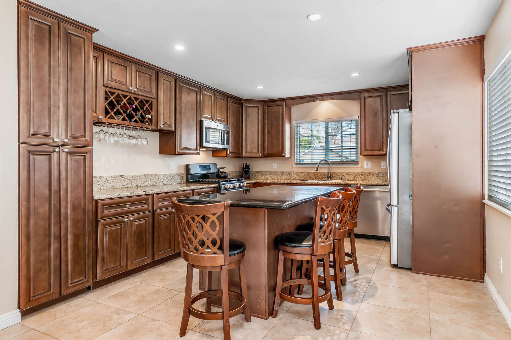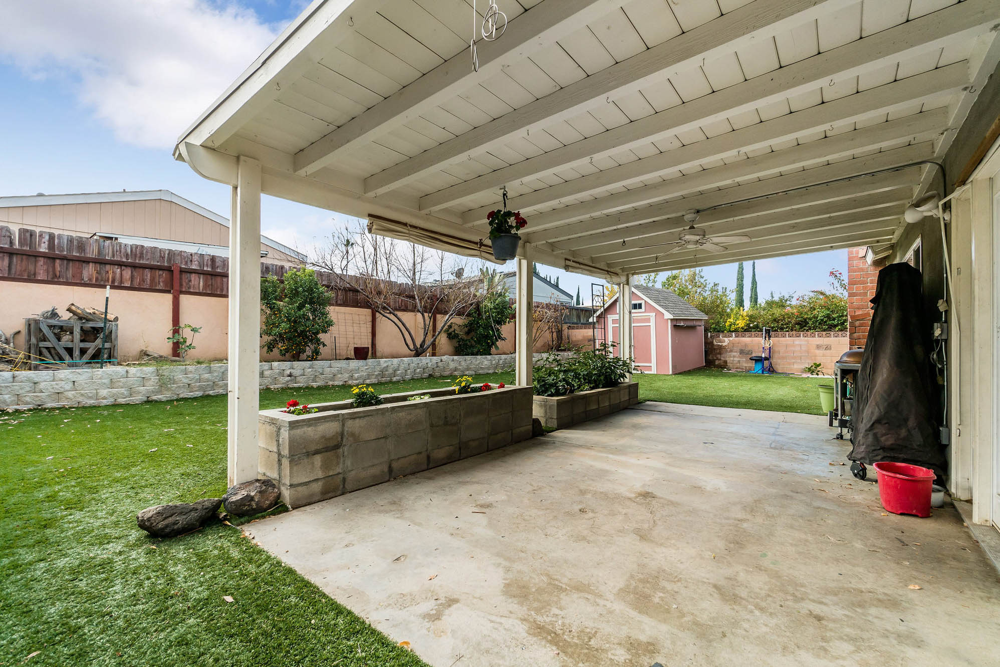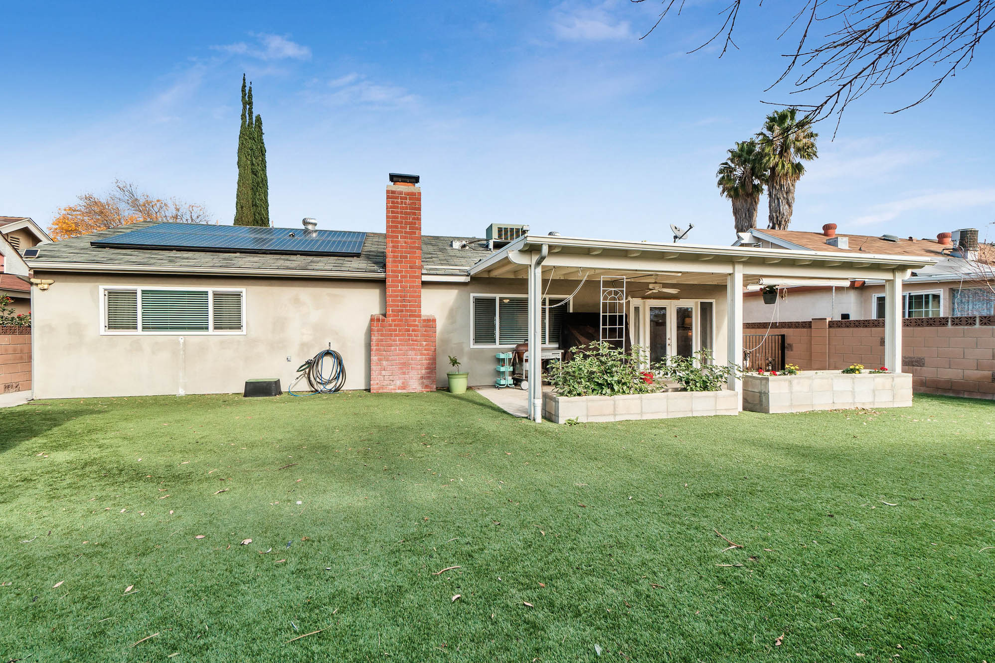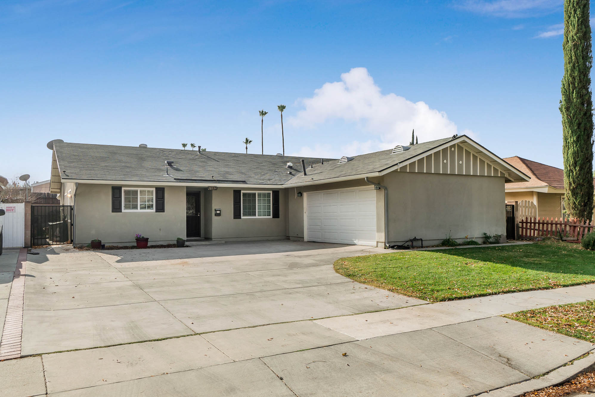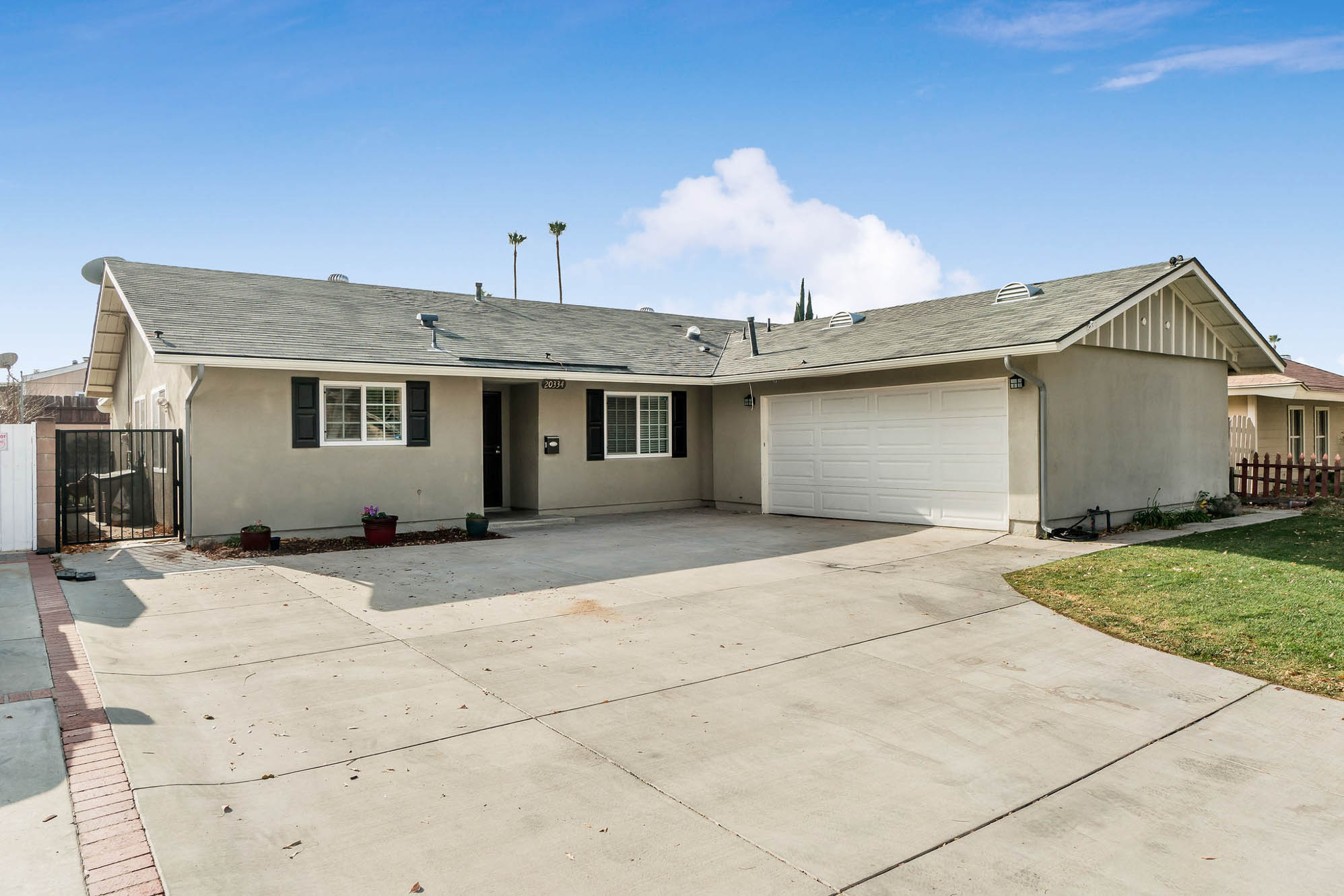 Welcome home to 20334 Delight Street, Santa Clarita! You'll love how comfortable this home feels, with its spacious open floor plan. Here you'll appreciate every detail, including the luxurious kitchen w/ gorgeous cabinetry, stainless steel appliances, island w/dining bar, elegant countertops, and adjacent dining. Ideal for hosting holiday gatherings, or cozying up next to the rustic fireplace, this living room is fitting for any occasion. Double doors in the casual dining room lead you to the backyard, where you'll discover everything you could want and more. Have you been searching for an incredible area to experience the outdoors? This backyard is perfect for all of your four-legged friends, or throwing an al fresco dinner party. Step outside onto the expansive covered patio with plenty of spots for seating, and you'll instantly fall in love with this space. Start up your dream garden w/the multiple garden beds and planter boxes where you'll find fruit trees, a variety of lower maintenance plants, and more. Enjoy monthly savings from the fully paid off solar panels. As you walk back inside, you'll quickly notice how positively wonderful this home is inside and out. With ceiling fans in all three bedrooms, you'll enjoy having an energy efficient home. Enjoy unwinding at the end of a long day in the master suite, where you'll be greeted with warm, natural light, generous closets, and an ensuite bathroom that features dual sinks, classic cabinets, and a large walk-in shower.