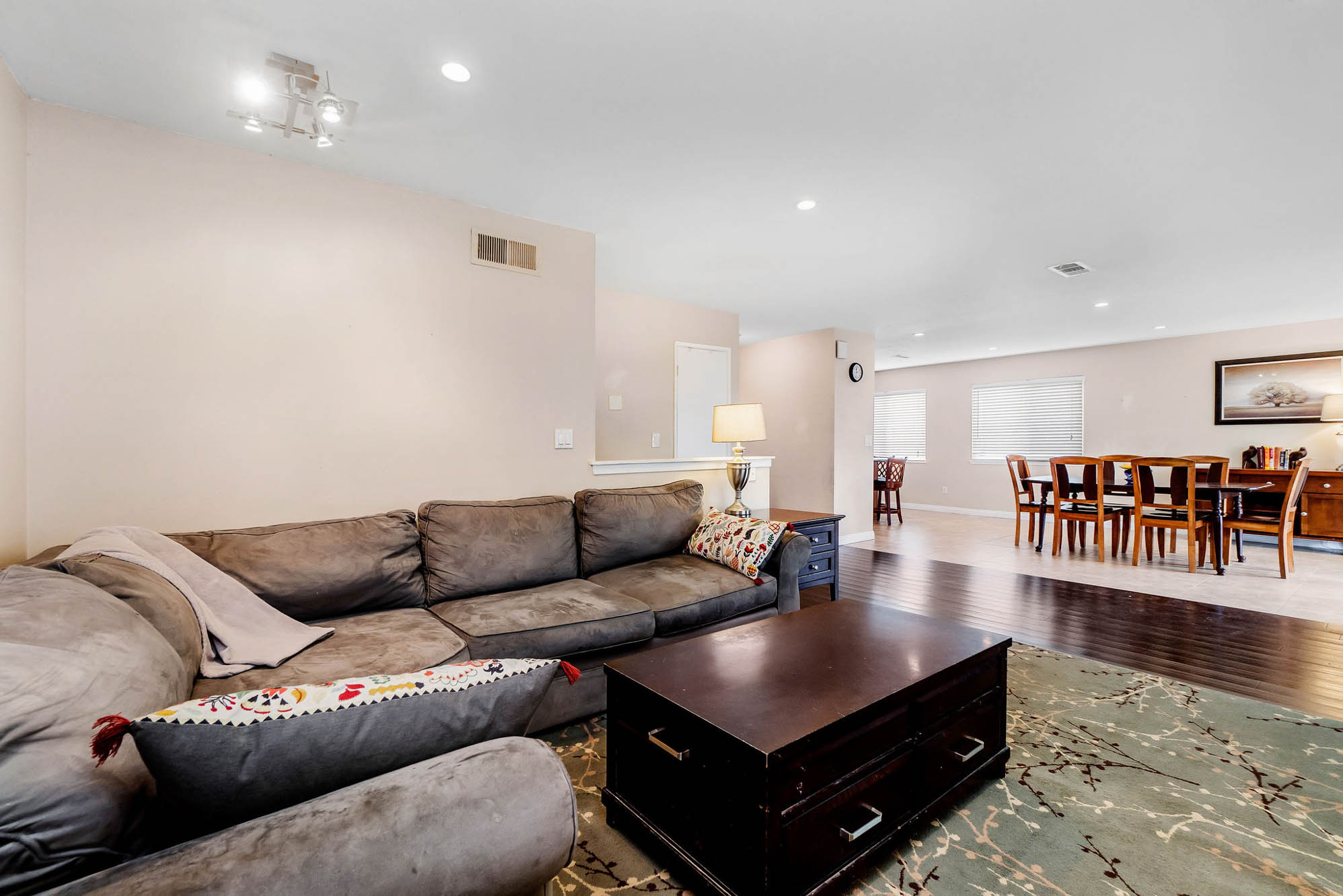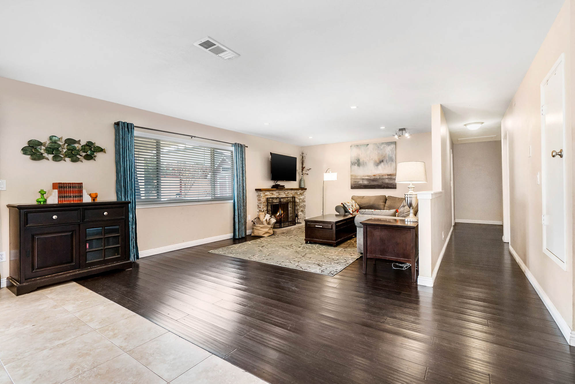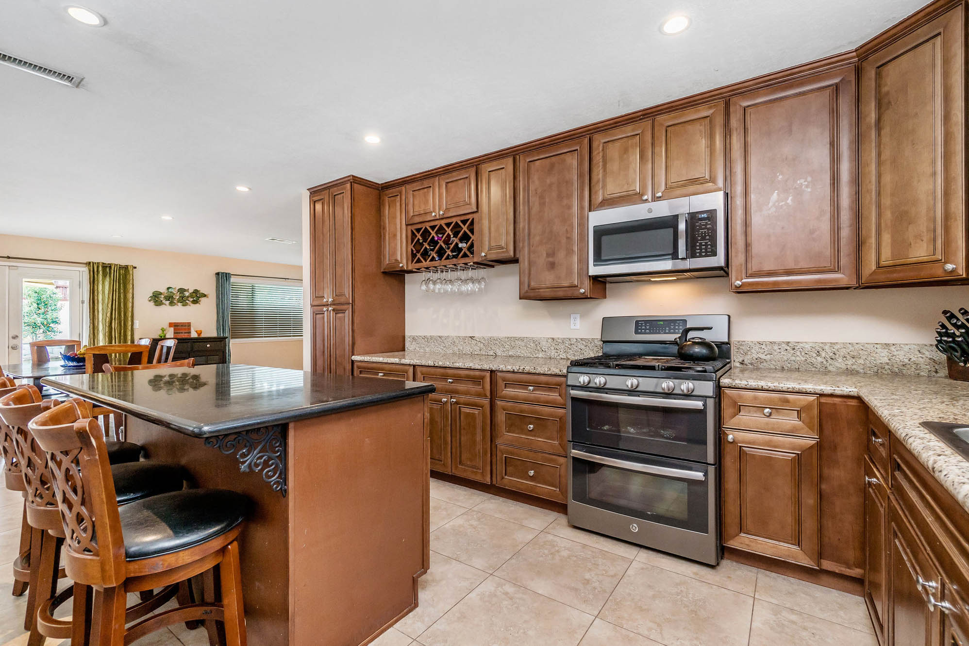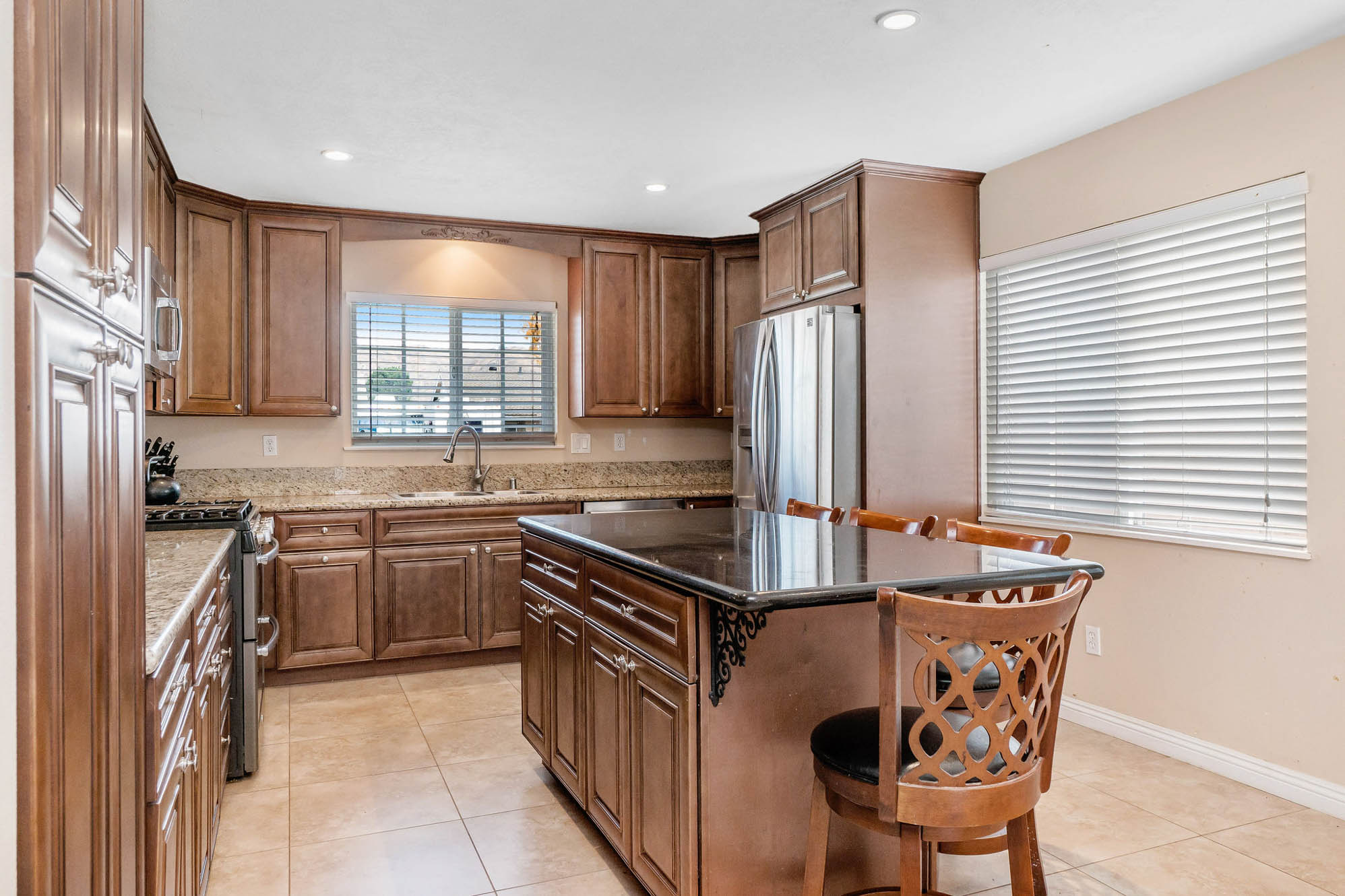 Welcome home to 20334 Delight Street, Santa Clarita! You'll love how comfortable this home feels, with its spacious open floor plan. Here you'll appreciate every detail, including the luxurious kitchen w/ gorgeous cabinetry, stainless steel appliances, island w/dining bar, elegant countertops, and adjacent dining. Ideal for hosting holiday gatherings, or cozying up next to the rustic fireplace, this living room is fitting for any occasion. Double doors in the casual dining room lead you to the backyard, where you'll discover everything you could want and more. Have you been searching for an incredible area to experience the outdoors? This backyard is perfect for all of your four-legged friends, or throwing an al fresco dinner party. Step outside onto the expansive covered patio with plenty of spots for seating, and you'll instantly fall in love with this space. Start up your dream garden w/the multiple garden beds and planter boxes where you'll find fruit trees, a variety of lower maintenance plants, and more. Enjoy monthly savings from the fully paid off solar panels. As you walk back inside, you'll quickly notice how positively wonderful this home is inside and out. With ceiling fans in all three bedrooms, you'll enjoy having an energy efficient home. Enjoy unwinding at the end of a long day in the master suite, where you'll be greeted with warm, natural light, generous closets, and an ensuite bathroom that features dual sinks, classic cabinets, and a large walk-in shower.