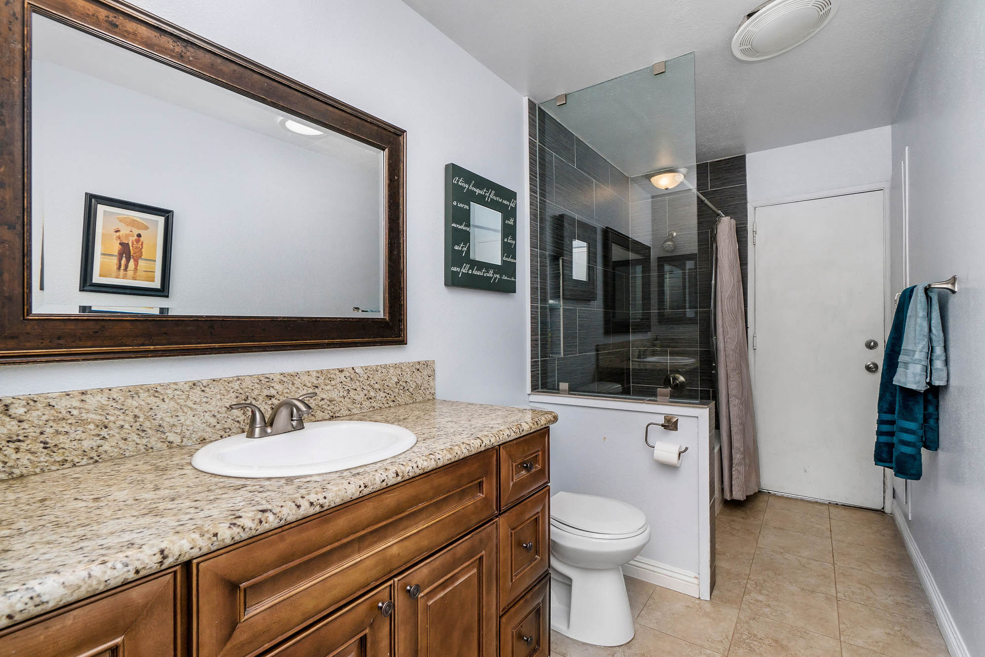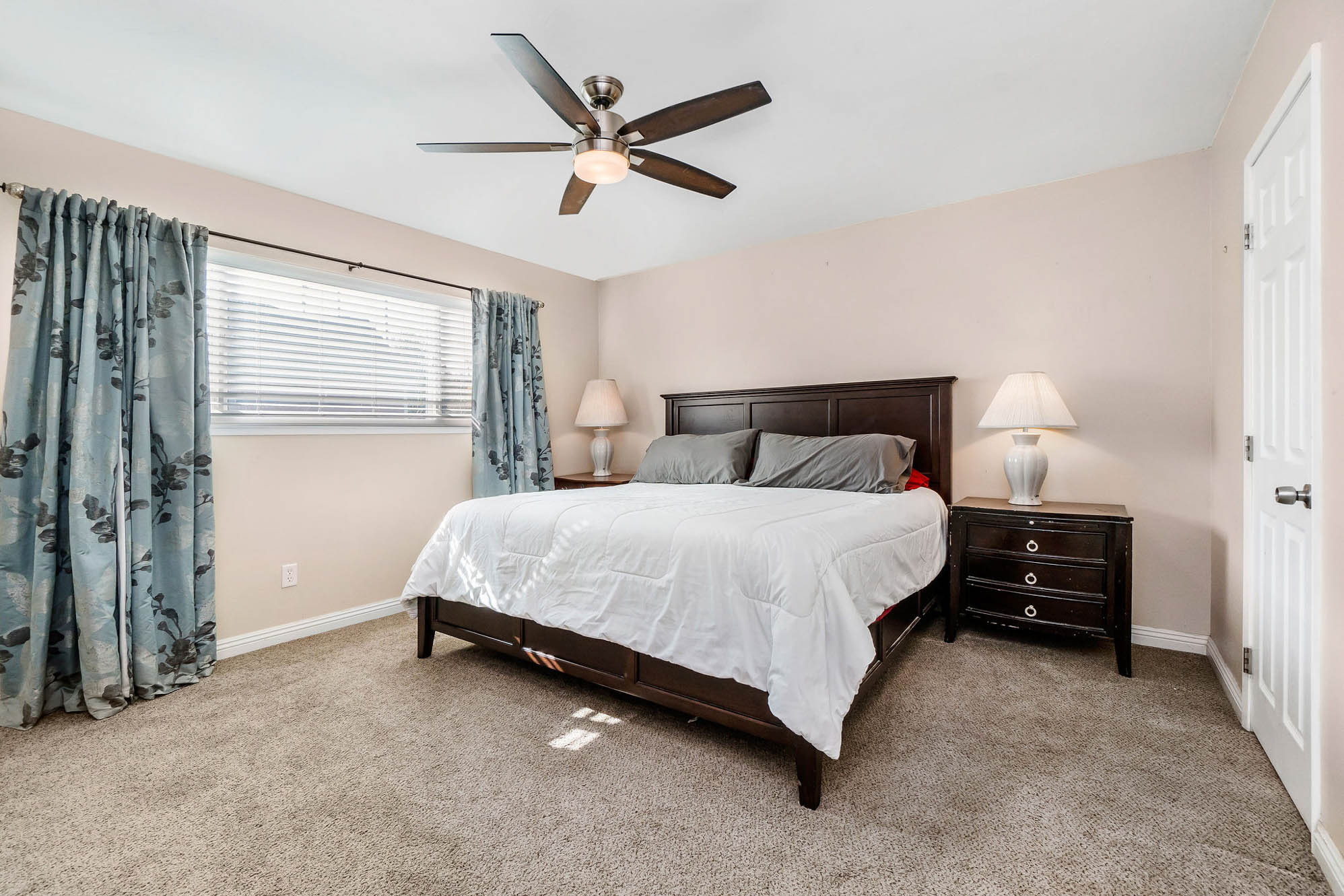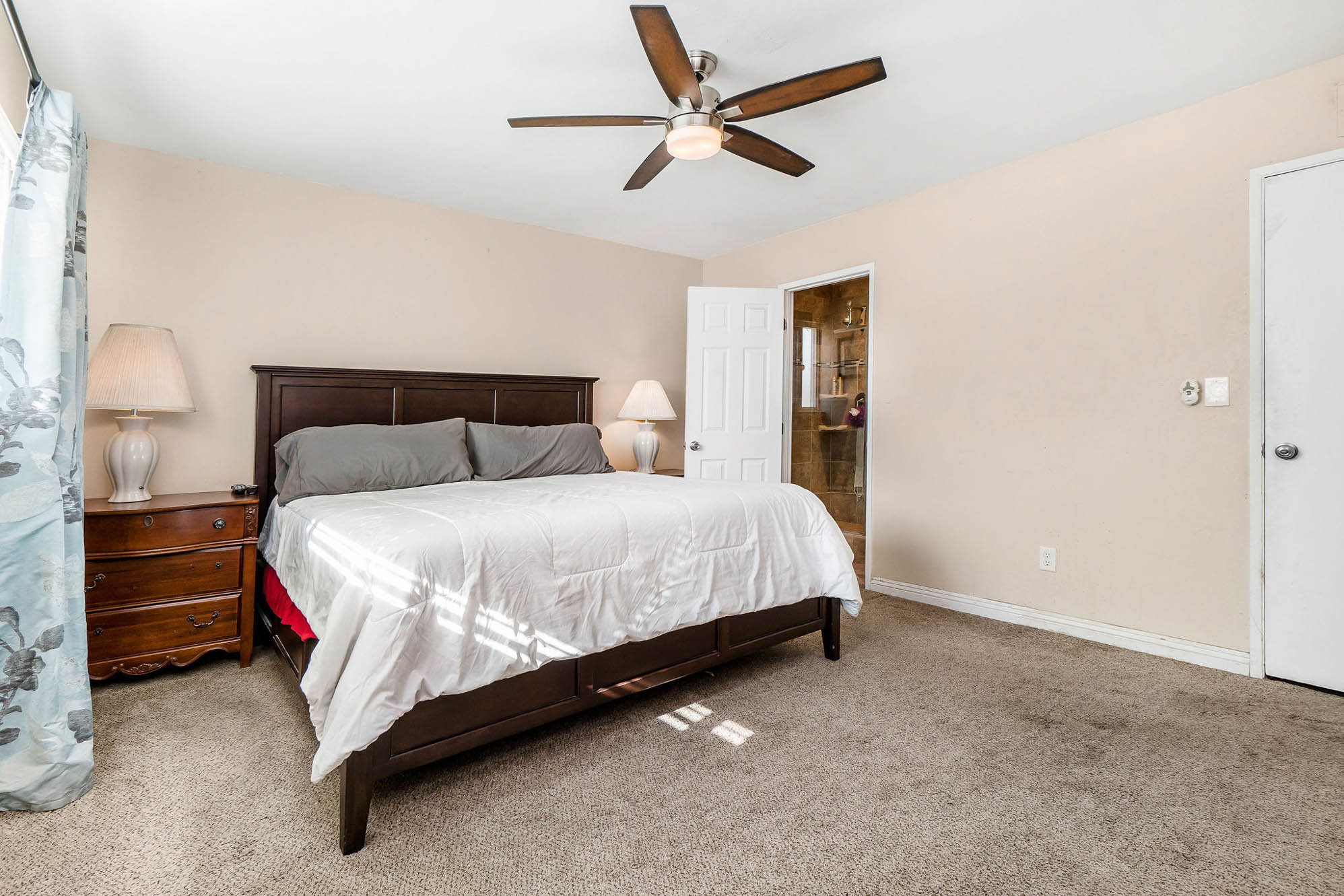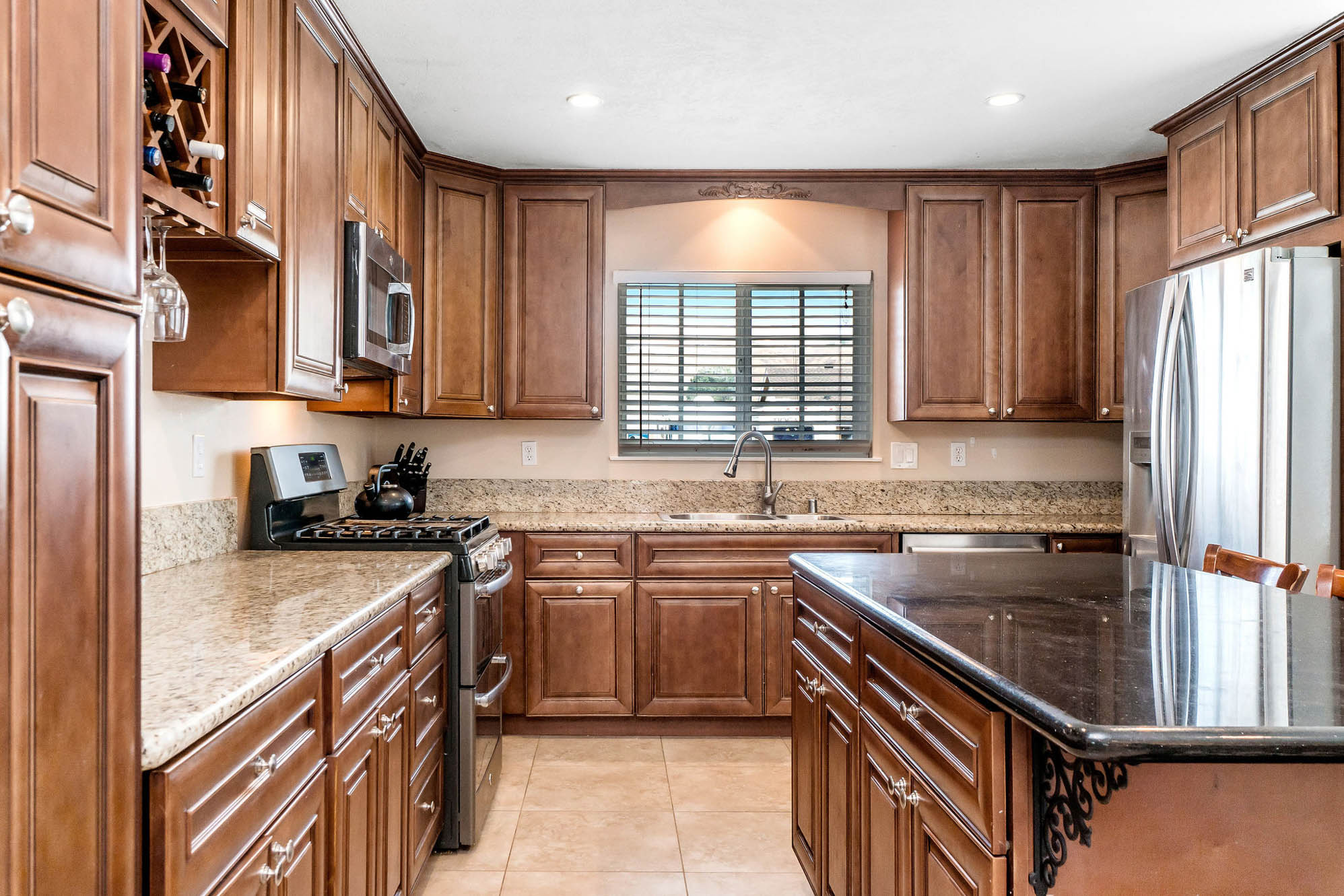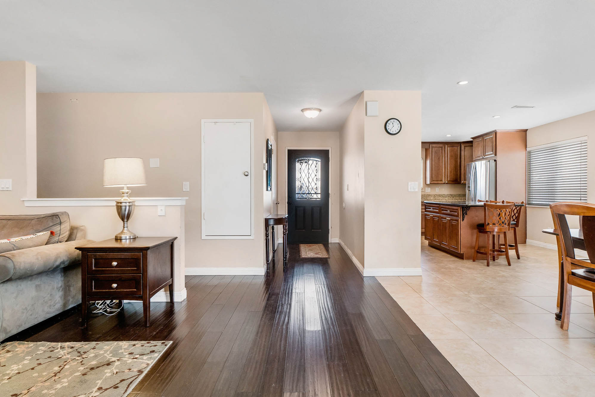 Welcome home to 20334 Delight Street, Santa Clarita! You'll love how comfortable this home feels, with its spacious open floor plan. Here you'll appreciate every detail, including the luxurious kitchen w/ gorgeous cabinetry, stainless steel appliances, island w/dining bar, elegant countertops, and adjacent dining. Ideal for hosting holiday gatherings, or cozying up next to the rustic fireplace, this living room is fitting for any occasion. Double doors in the casual dining room lead you to the backyard, where you'll discover everything you could want and more. Have you been searching for an incredible area to experience the outdoors? This backyard is perfect for all of your four-legged friends, or throwing an al fresco dinner party. Step outside onto the expansive covered patio with plenty of spots for seating, and you'll instantly fall in love with this space. Start up your dream garden w/the multiple garden beds and planter boxes where you'll find fruit trees, a variety of lower maintenance plants, and more. Enjoy monthly savings from the fully paid off solar panels. As you walk back inside, you'll quickly notice how positively wonderful this home is inside and out. With ceiling fans in all three bedrooms, you'll enjoy having an energy efficient home. Enjoy unwinding at the end of a long day in the master suite, where you'll be greeted with warm, natural light, generous closets, and an ensuite bathroom that features dual sinks, classic cabinets, and a large walk-in shower.