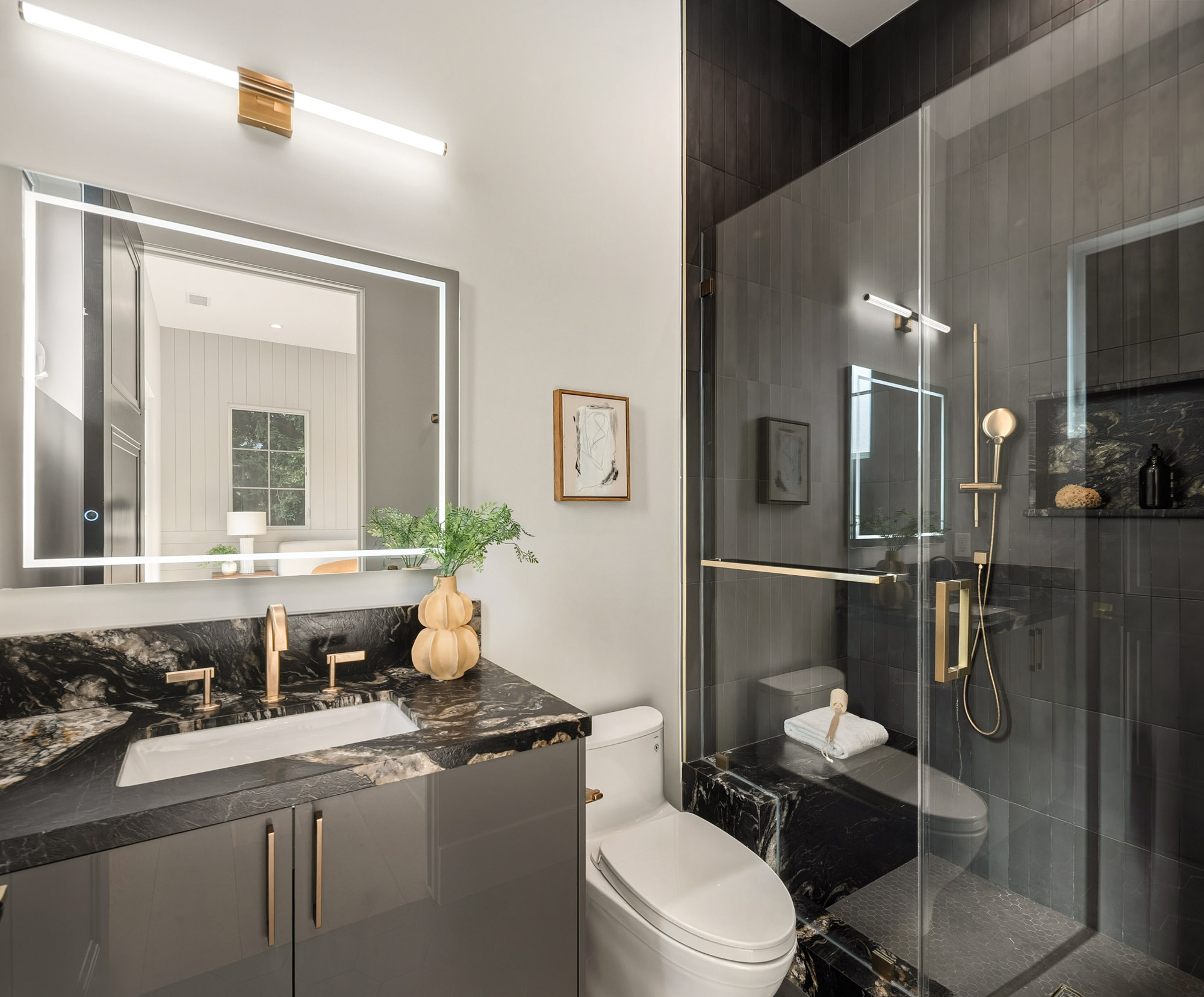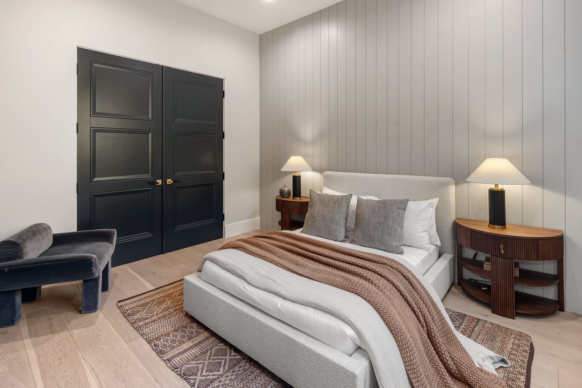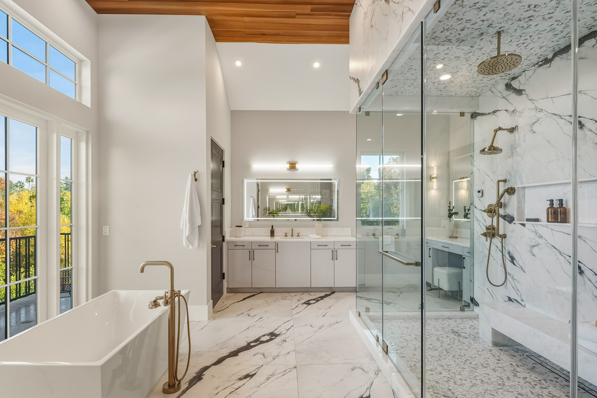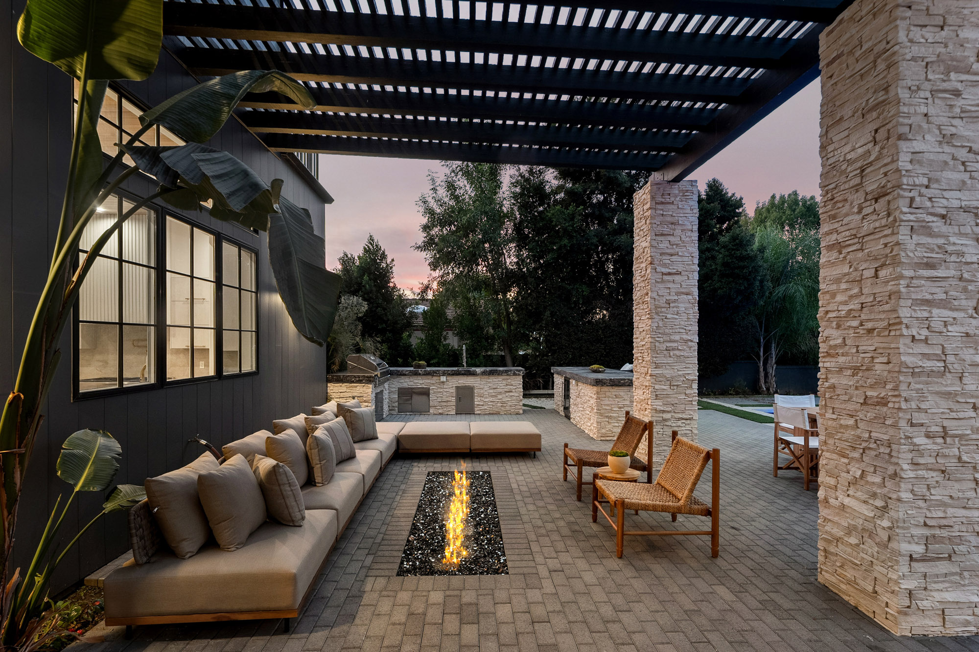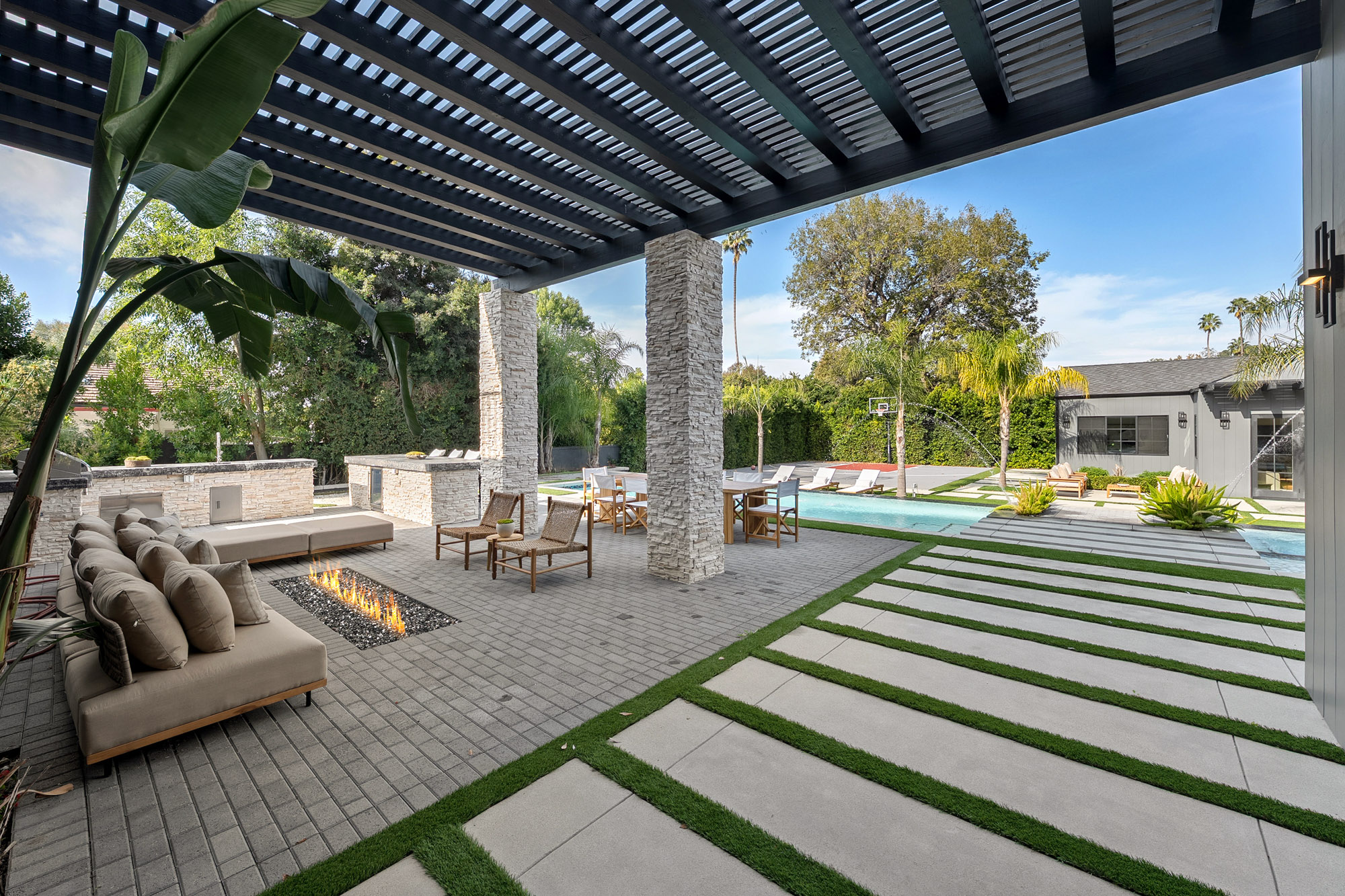 Tucked behind private gates on nearly half an acre in the heart of prime Woodland hills, this newer-construction estate features a 5-bed, 6-bath main residence and 1-bed, 1-bath ADU. Designed for modern living, the bright and airy open-concept floor plan is accentuated by lofty ceilings and wide-plank European floors that carry throughout the home. A culinary enthusiast's dream, the designer kitchen comes equipped with premium Thermador appliances, double islands and a large walk-in pantry. The formal dining room effortlessly connects the kitchen with the spacious family room, creating a seamless flow for entertaining and everyday living, while a floor-to-ceiling sliding glass door opens to extend your living space outside. Completing the main level is an inviting formal living room, state-of-the-art home theater and ensuite bedroom. Head upstairs to find four generously sized ensuite bedrooms and a dedicated laundry room. The luxurious primary suite boasts two private balconies, a custom walk-in closet and spa-inspired bathroom, complete with an oversized steam shower, soaking tub, dual water closets, dual vanities and a separate makeup vanity. Reminiscent of a five-star resort, the expansive backyard retreat is surrounded by mature privacy hedges and features a sparkling infinity-edge pool with a massive spa, a sports court, outdoor kitchen with bar seating and an in-ground fire pit. Perfect for extended family, guests or as additional living space, the versatile ADU has its own address, a living room with a full kitchen, bedroom, bathroom and walk-in closet. Additional highlights include a Control4 smart home system that operates the built-in speakers, lights and thermostat, a security system, wine storage, two-car garage and circular driveway. Located south of the Boulevard, this exceptional property offers convenient access to shops, restaurants, the 101 freeway and so much more.