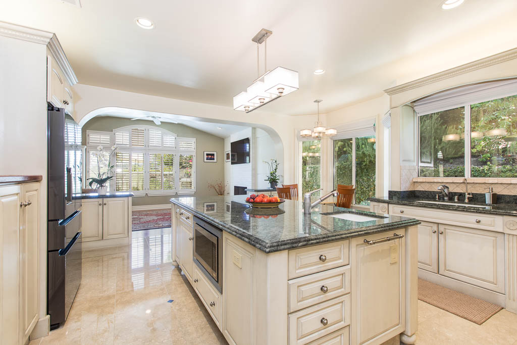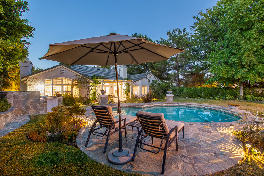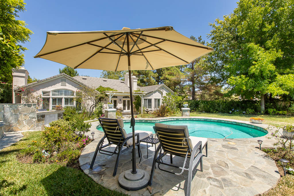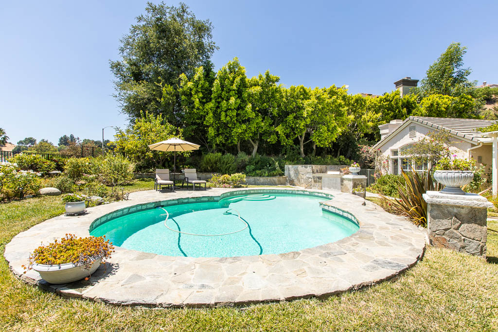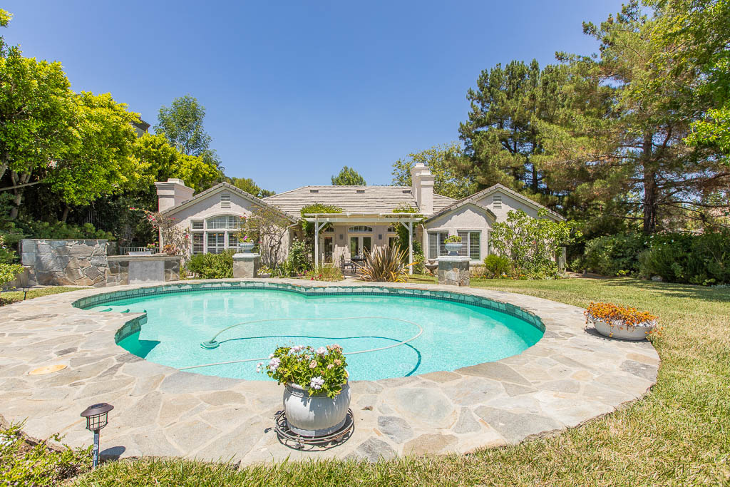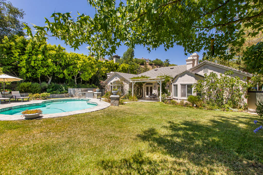 Exquisite single-story home located in the highly desirable gated community of Summit Pointe Estates. The light-filled living space offers an excellent open floor plan with vaulted ceilings. The expansive great room is lined with French doors that afford views of the tranquil backyard and surrounding mountains. The living room features a stunning fireplace and flows effortlessly into the spacious dining room. A beautiful archway leads you into the gorgeous chef’s kitchen with stainless steel appliances, a large center island, and an abundance of cabinet and counter space. The serene master suite includes a fireplace, bay window, large walk-in closet, and private access to the backyard. The stunning master bath has dual sinks, jetted tub, and separate shower with rainforest head. The remaining two bedrooms are well-sized and as a bonus, there is an office that could also make an ideal den, guest room, playroom, or more. The backyard is not to be missed and offers the epitome of indoor/outdoor living and is ideal for entertaining with its large terraced patio, sparkling pool, built-in bbq, and amazing views of the Santa Monica mountains. This 24-hour guard gated community is located within close proximity of the 101 freeway, great hiking trails, and easy access to the beaches of Malibu and Santa Monica.