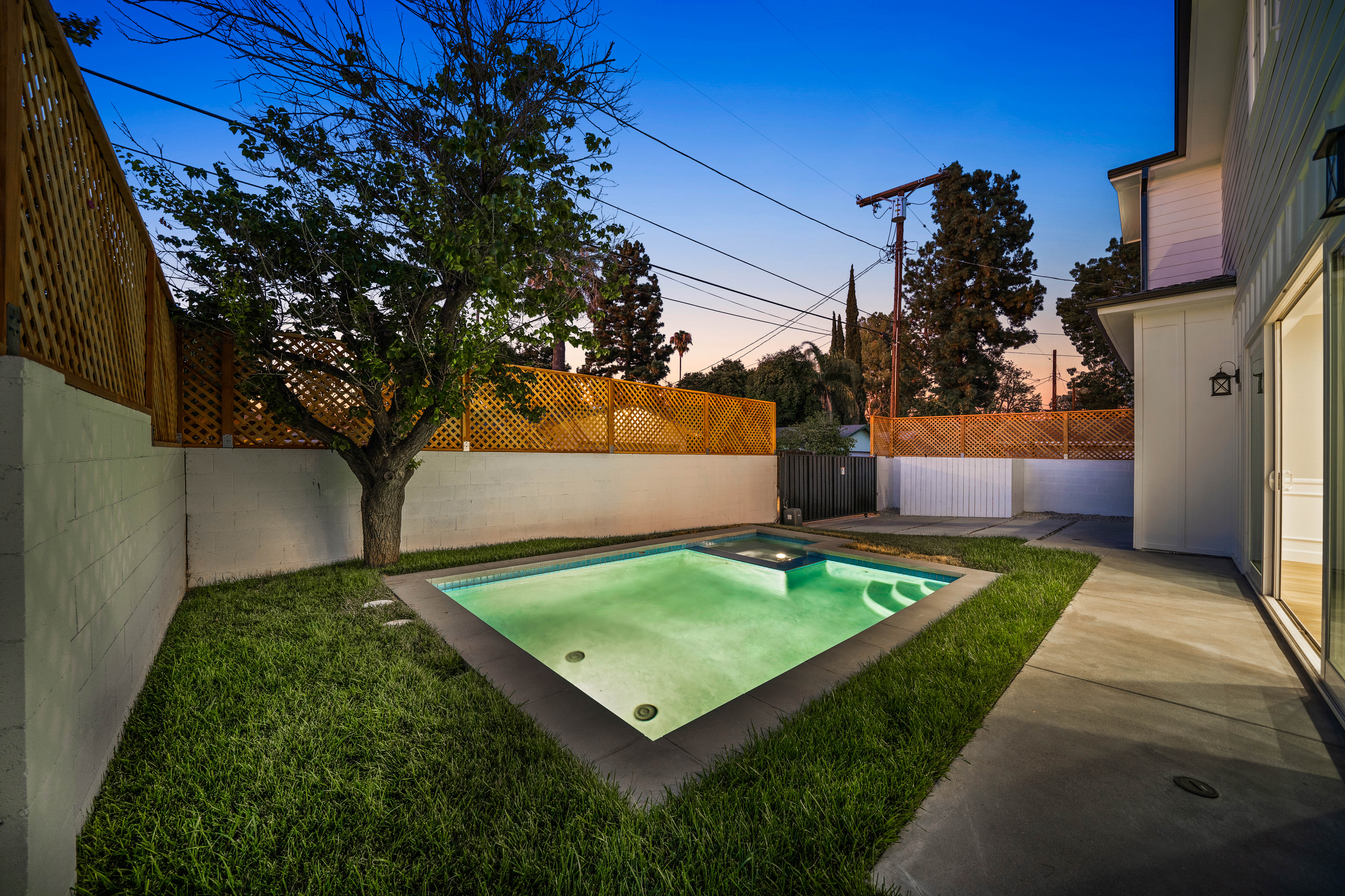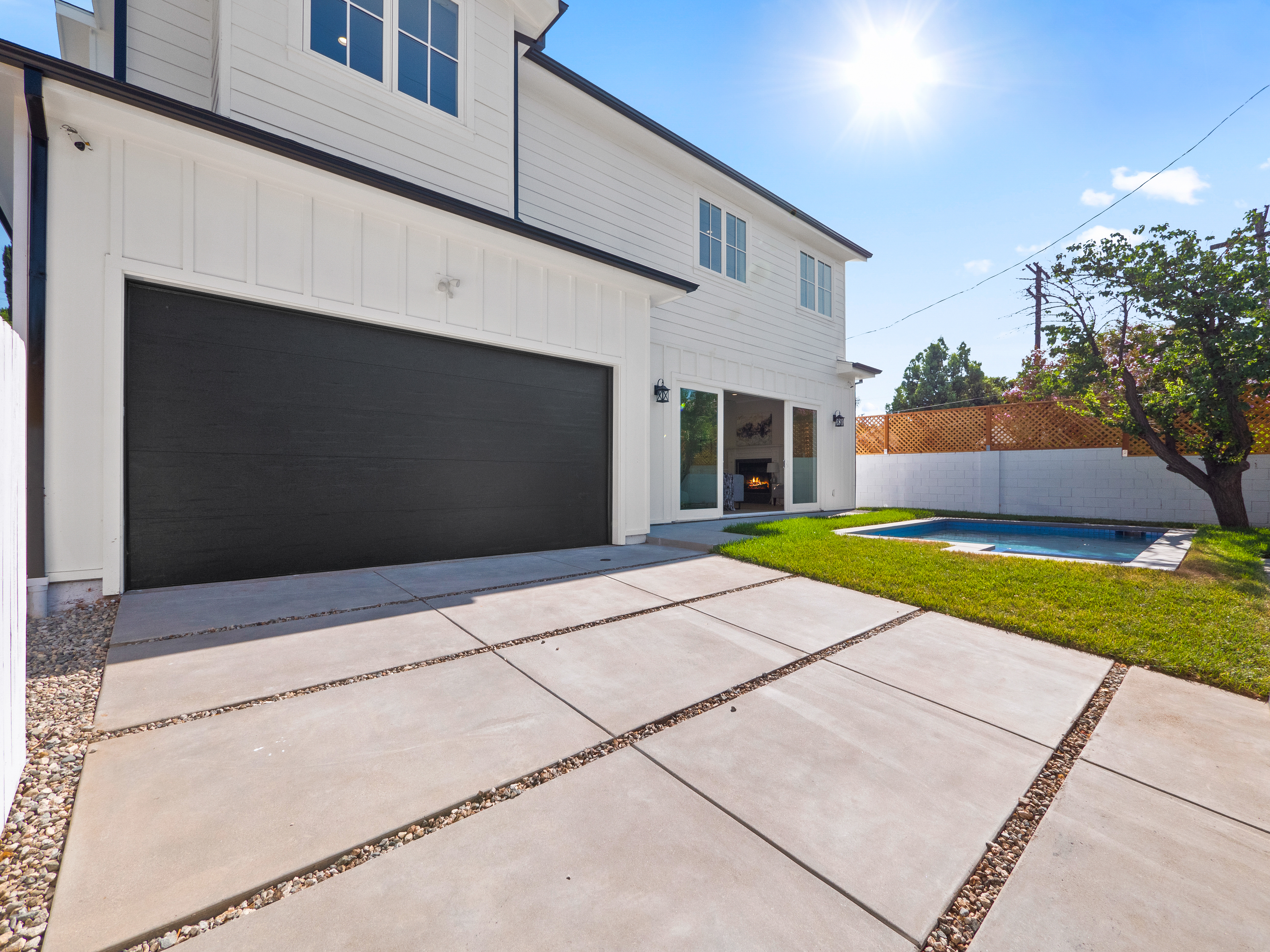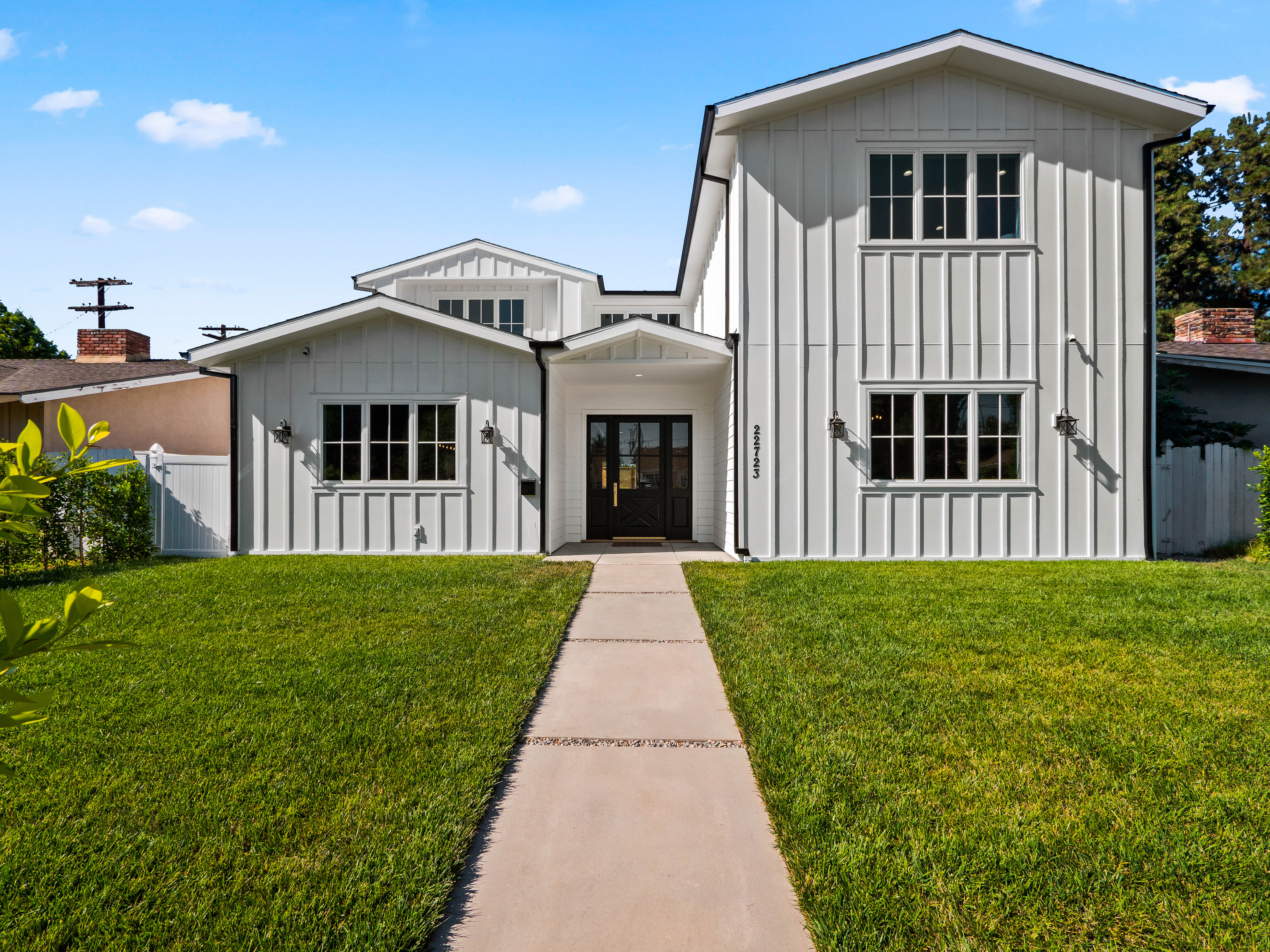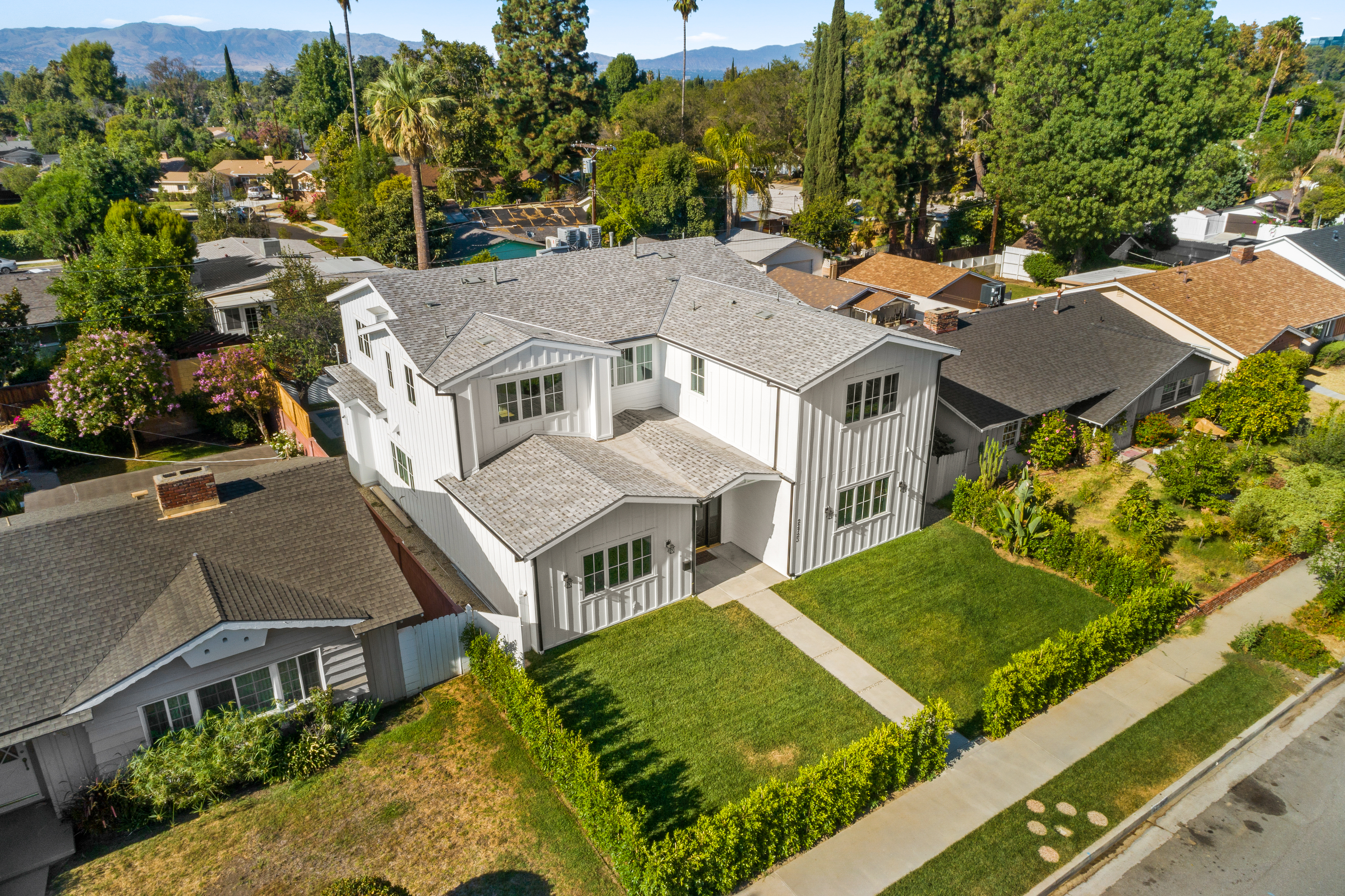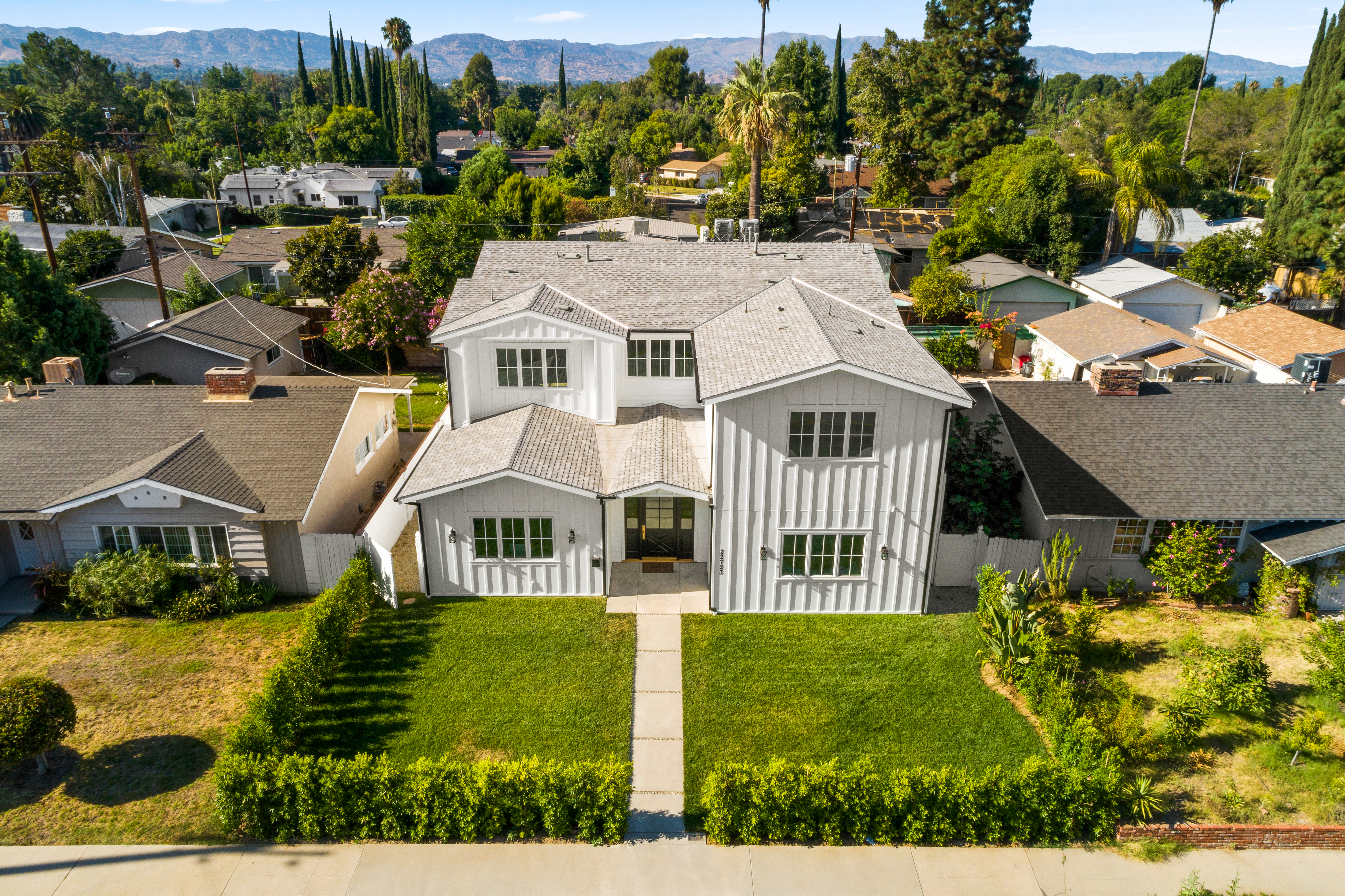 New Construction home in one of the most desirable neighborhoods of Woodland Hills offers over 4,000 sq ft open layout living space embraced with luxury amenities throughout. Two-story, 5 bedroom, 5.5 bathroom home offers immense natural lighting and oak hardwood flooring throughout. Upon entrance, grand staircase greets you for an impressive first impression. Formal dining room with wood-paneled vaulted ceilings lead you through the hallway to unveil a massive chefs kitchen and living room combination. The kitchen offers a six-burner stove, double oven, large island with bar seating, prep sink, custom cabinetry and more. Large glass sliding doors open to a backyard featuring a pool and spa. Just upstairs, the spacious bedrooms reside, along with the laundry room. Vaulted ceilings carry into the master bedroom with his and her closets, and a luxurious master bath. Master bathroom offers a soaking tub, a massive walk-in shower, double sinks, and vanity space. This home carries exquisite tile and woodwork in every room, all illuminated with designer lighting, and functional recessed lighting. Additional amenities include 2 fireplaces, ensuite bedrooms, wine cellar, nest thermostat, two-car garage and so much more! Conveniently located in Woodlake Elementary, Hale Middle & El Camino High School districts.