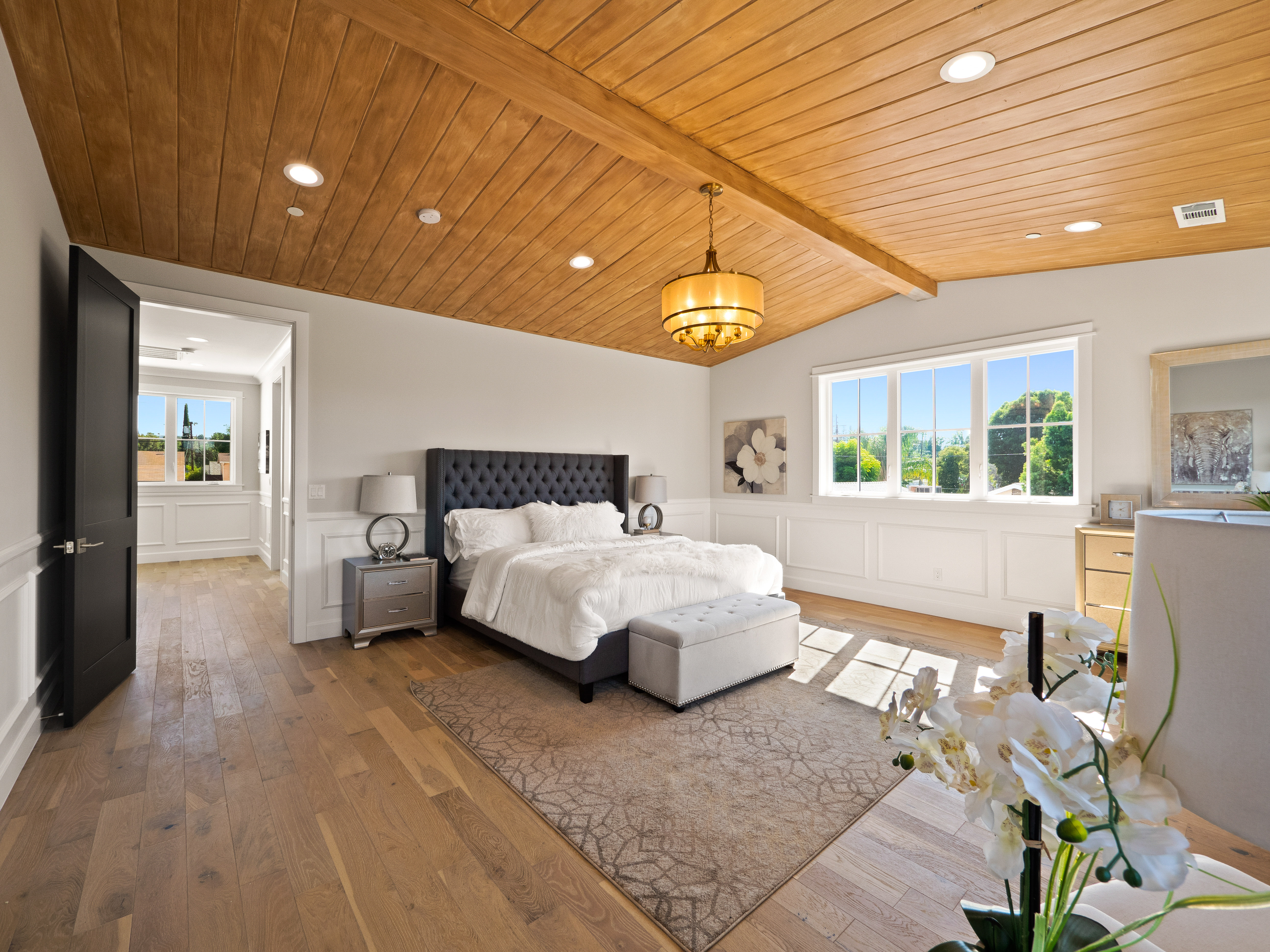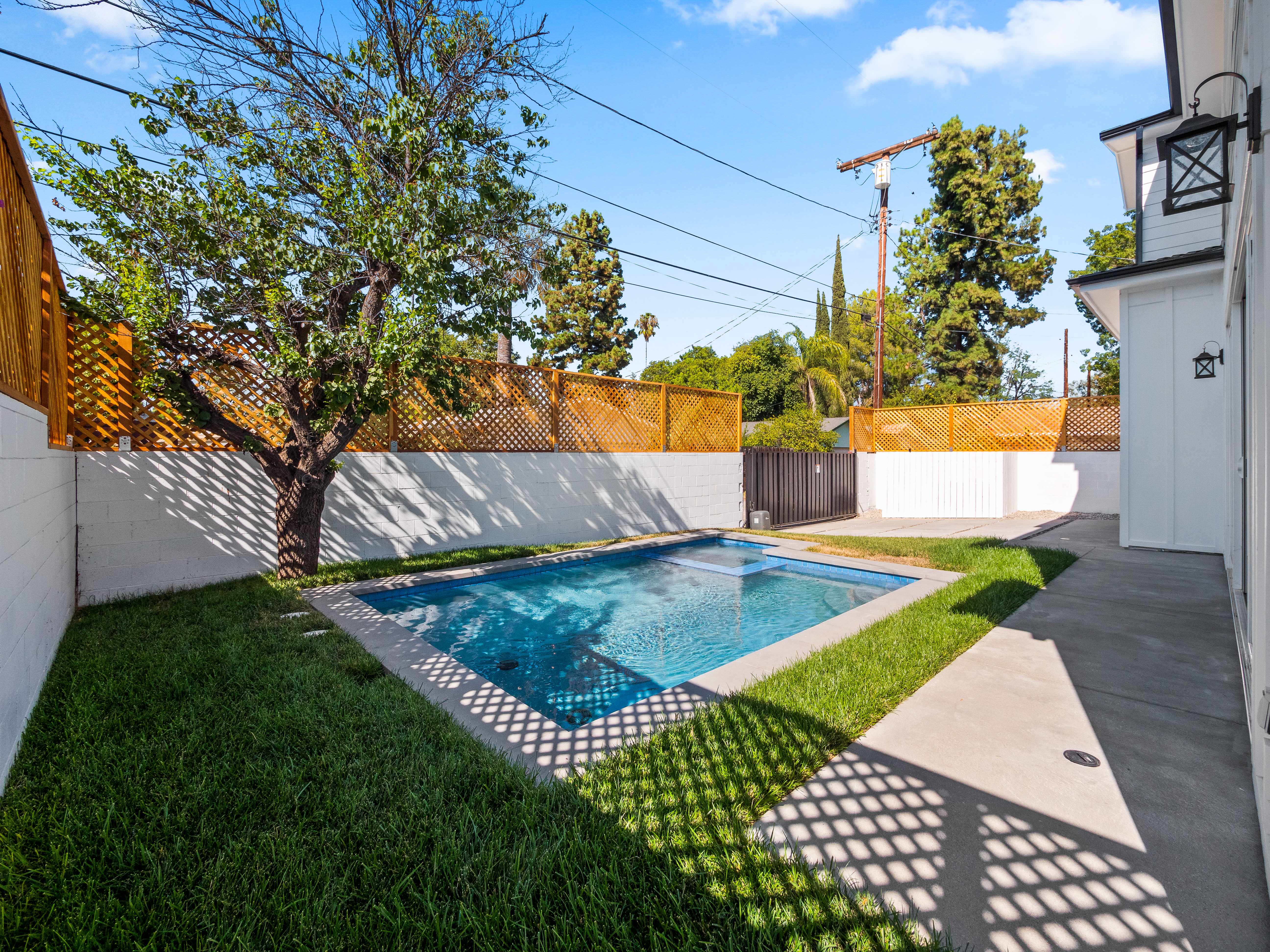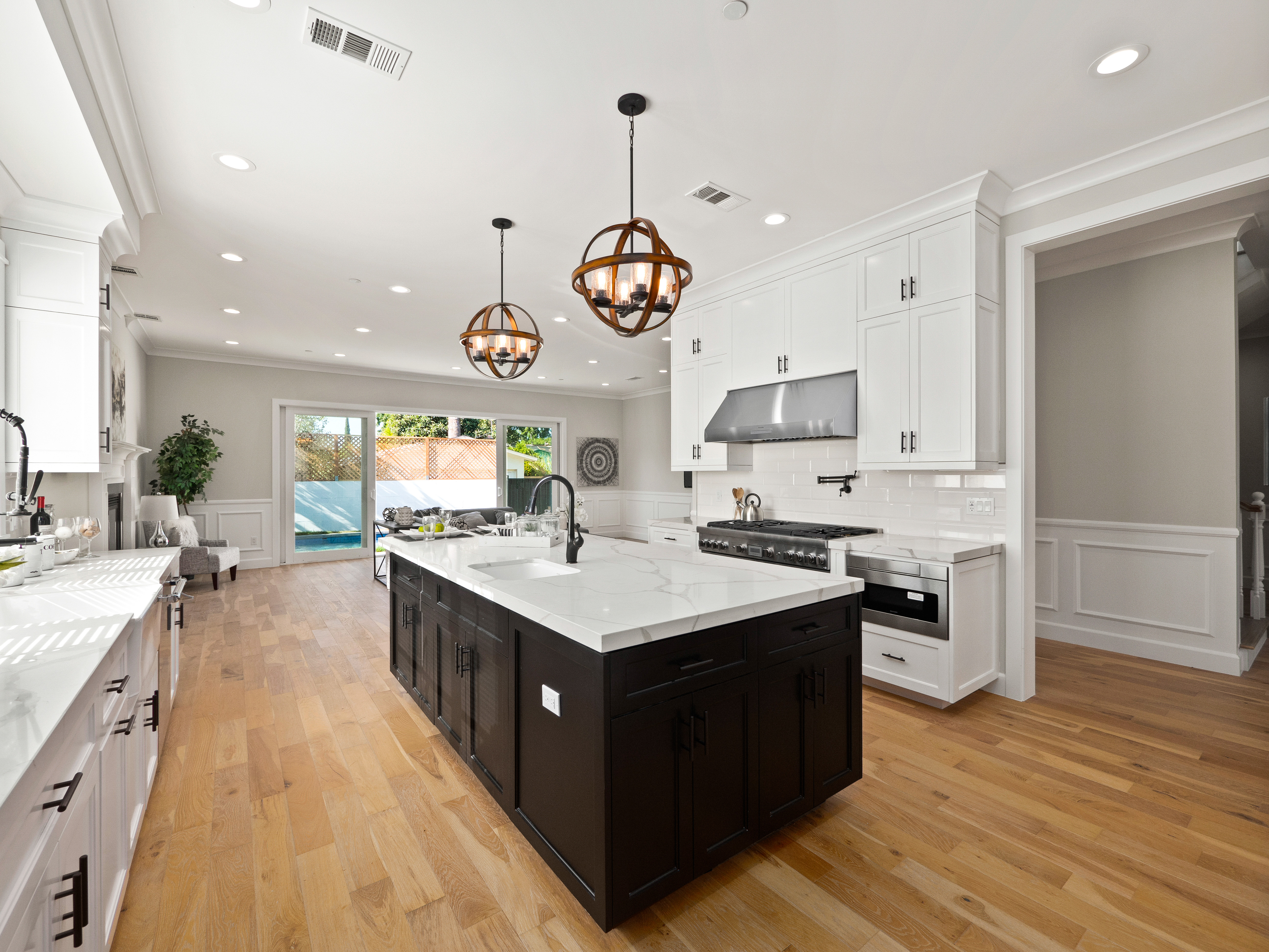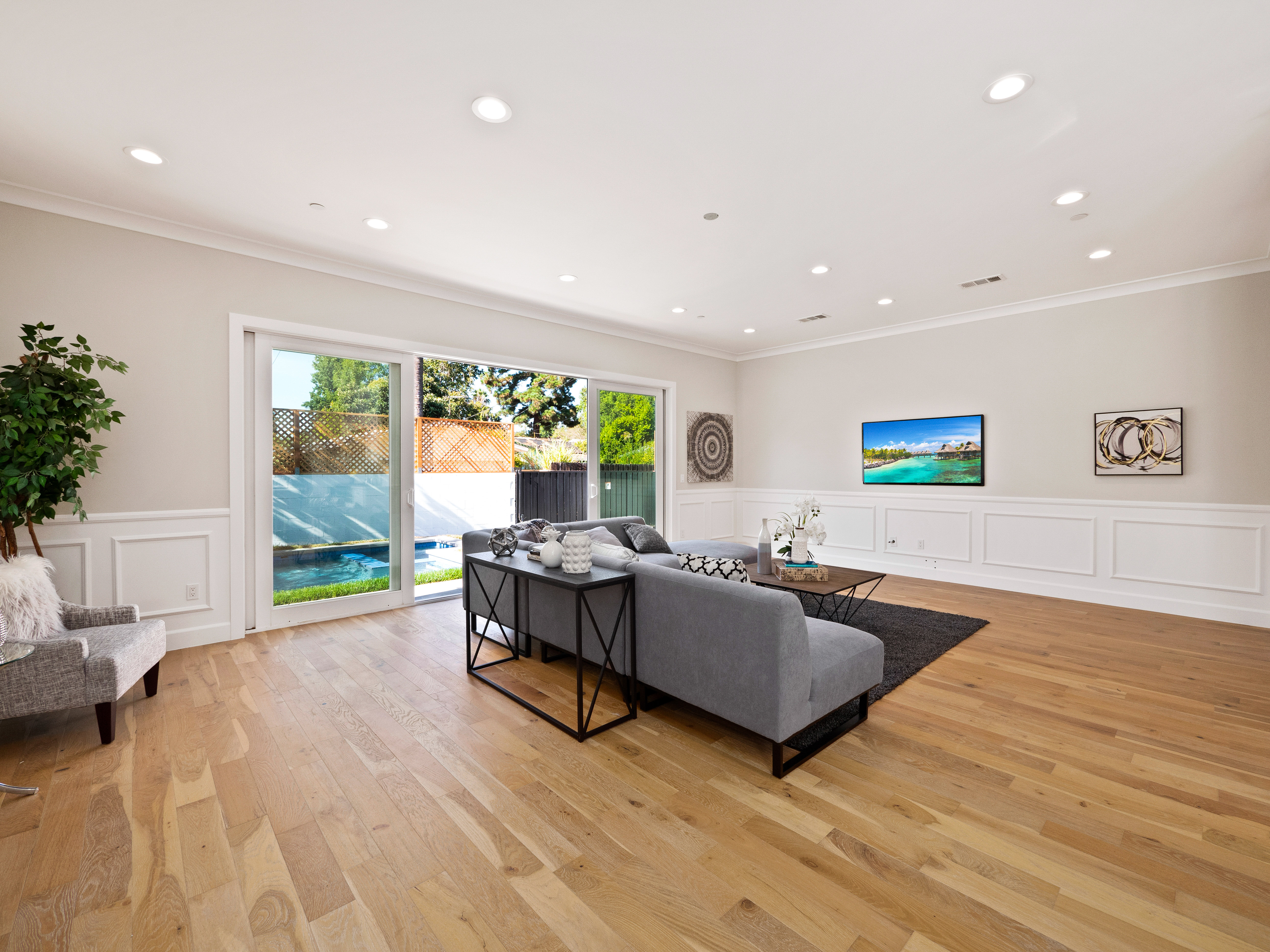 New Construction home in one of the most desirable neighborhoods of Woodland Hills offers over 4,000 sq ft open layout living space embraced with luxury amenities throughout. Two-story, 5 bedroom, 5.5 bathroom home offers immense natural lighting and oak hardwood flooring throughout. Upon entrance, grand staircase greets you for an impressive first impression. Formal dining room with wood-paneled vaulted ceilings lead you through the hallway to unveil a massive chefs kitchen and living room combination. The kitchen offers a six-burner stove, double oven, large island with bar seating, prep sink, custom cabinetry and more. Large glass sliding doors open to a backyard featuring a pool and spa. Just upstairs, the spacious bedrooms reside, along with the laundry room. Vaulted ceilings carry into the master bedroom with his and her closets, and a luxurious master bath. Master bathroom offers a soaking tub, a massive walk-in shower, double sinks, and vanity space. This home carries exquisite tile and woodwork in every room, all illuminated with designer lighting, and functional recessed lighting. Additional amenities include 2 fireplaces, ensuite bedrooms, wine cellar, nest thermostat, two-car garage and so much more! Conveniently located in Woodlake Elementary, Hale Middle & El Camino High School districts.