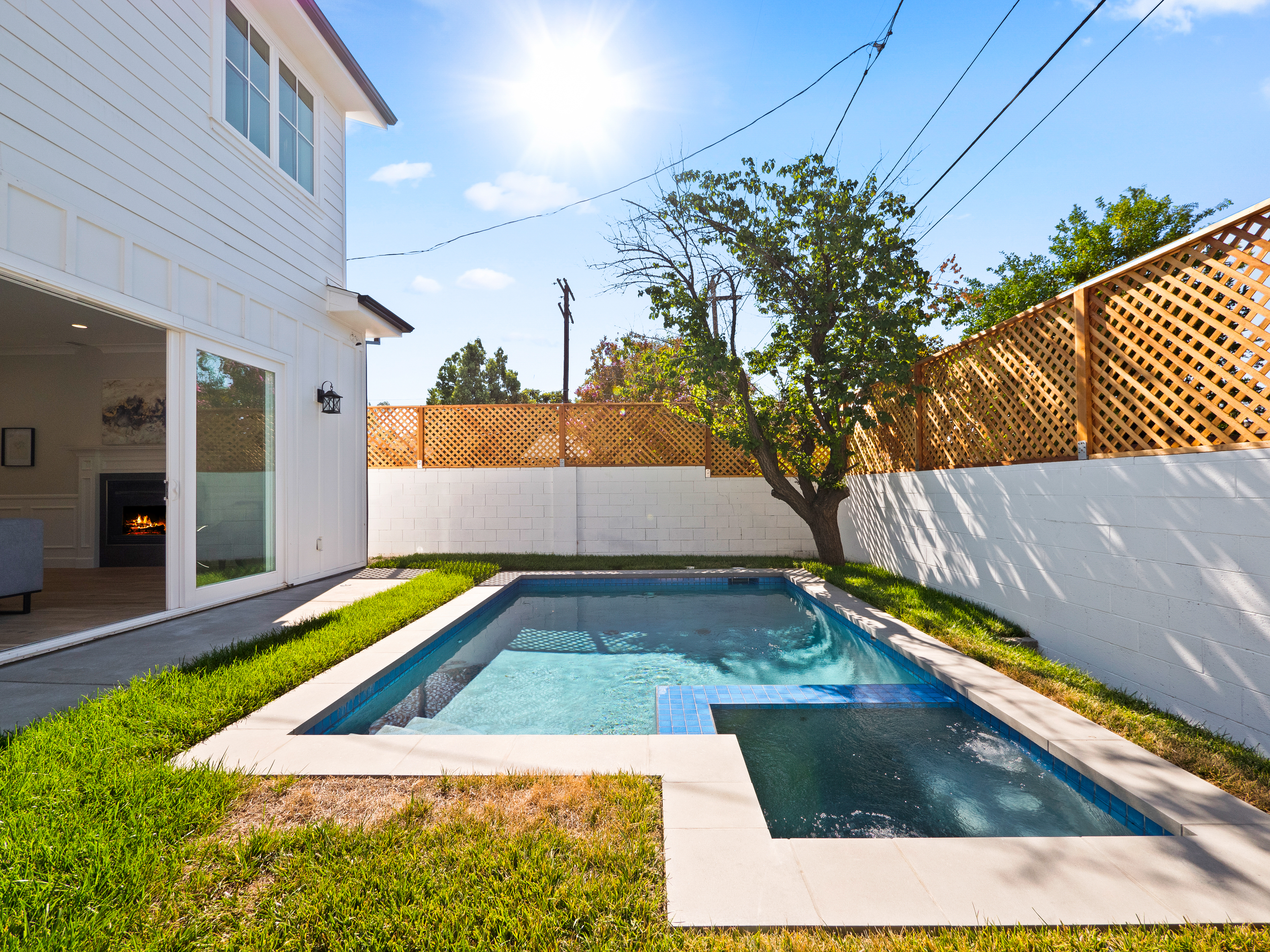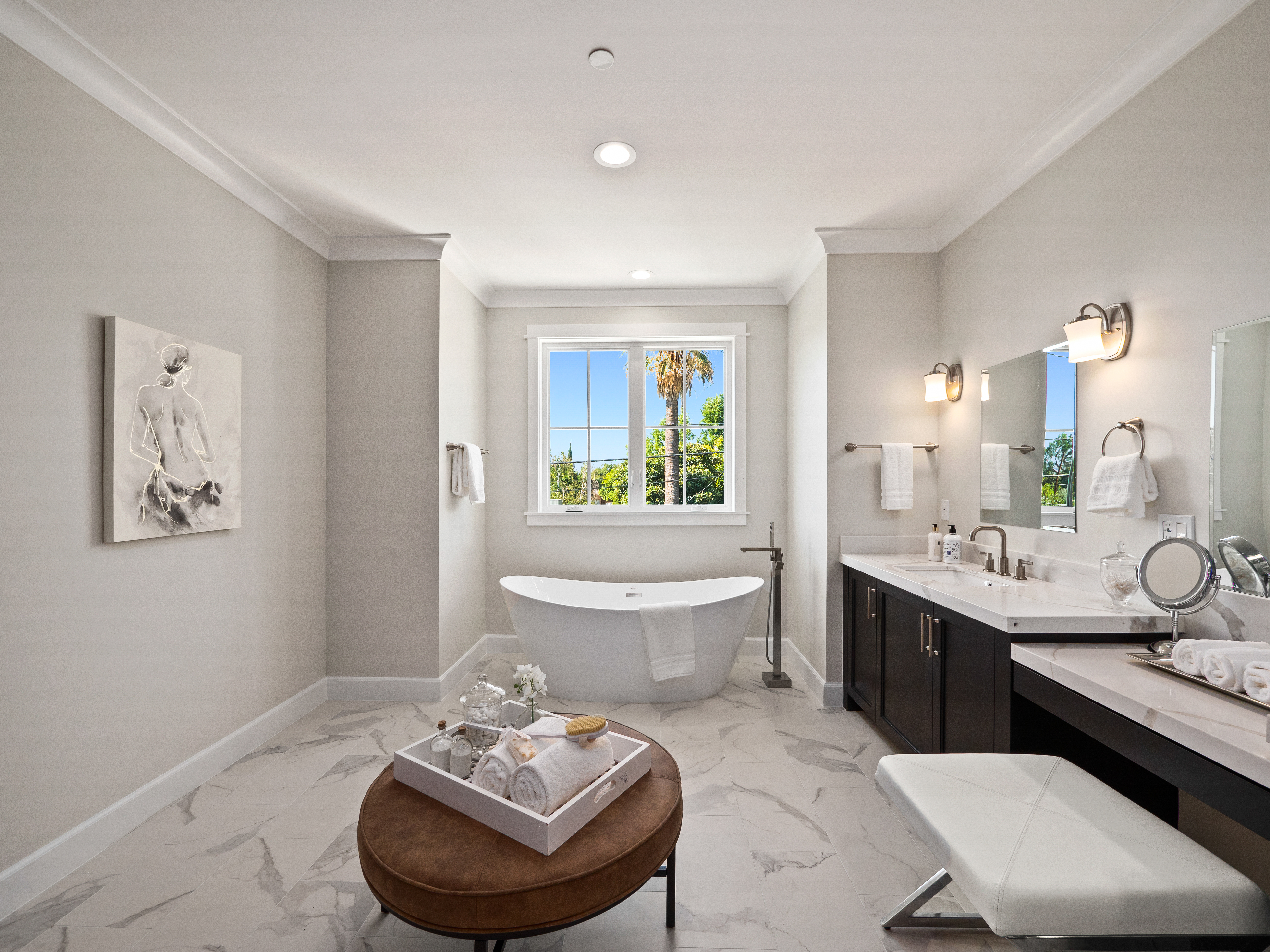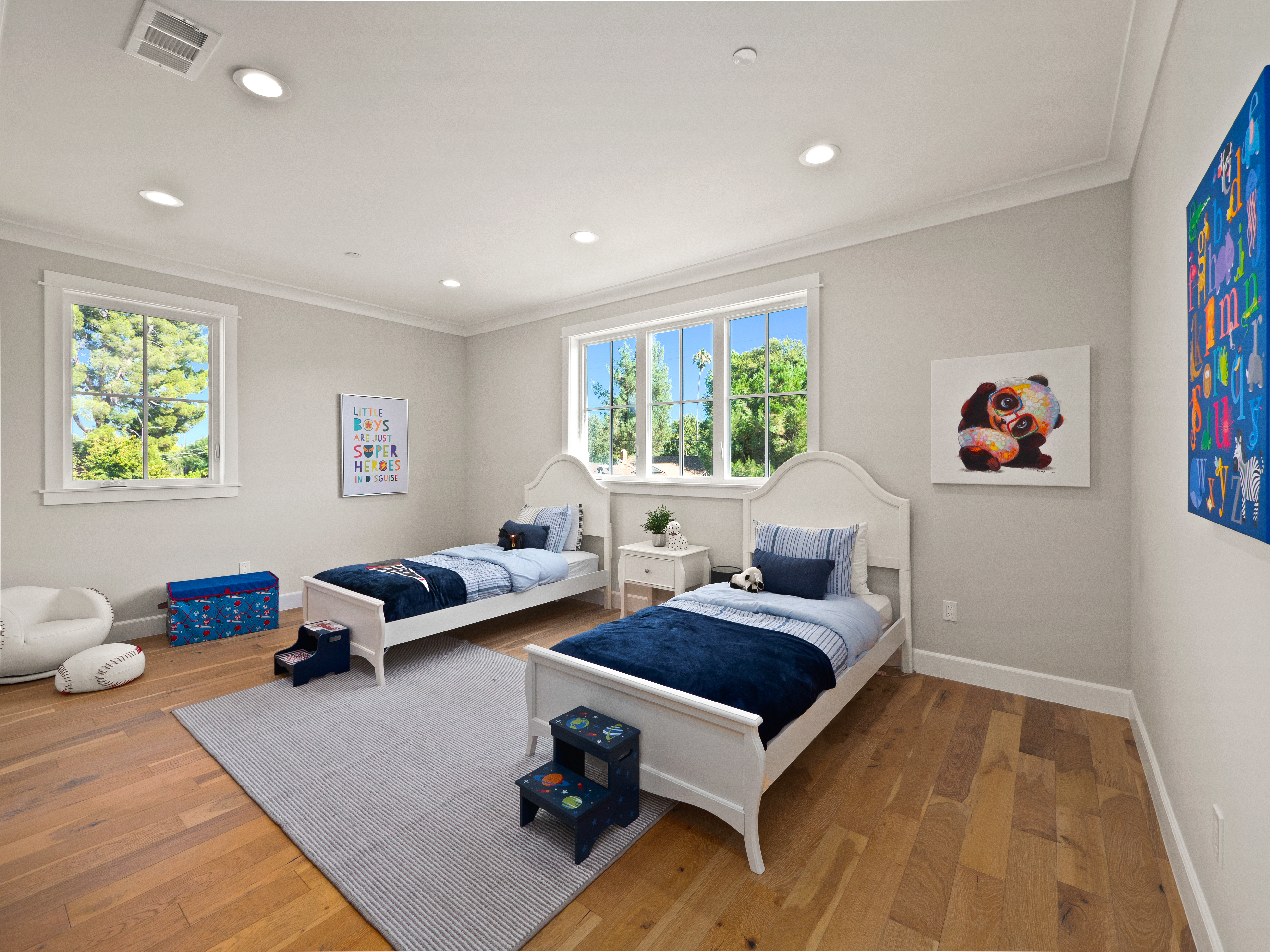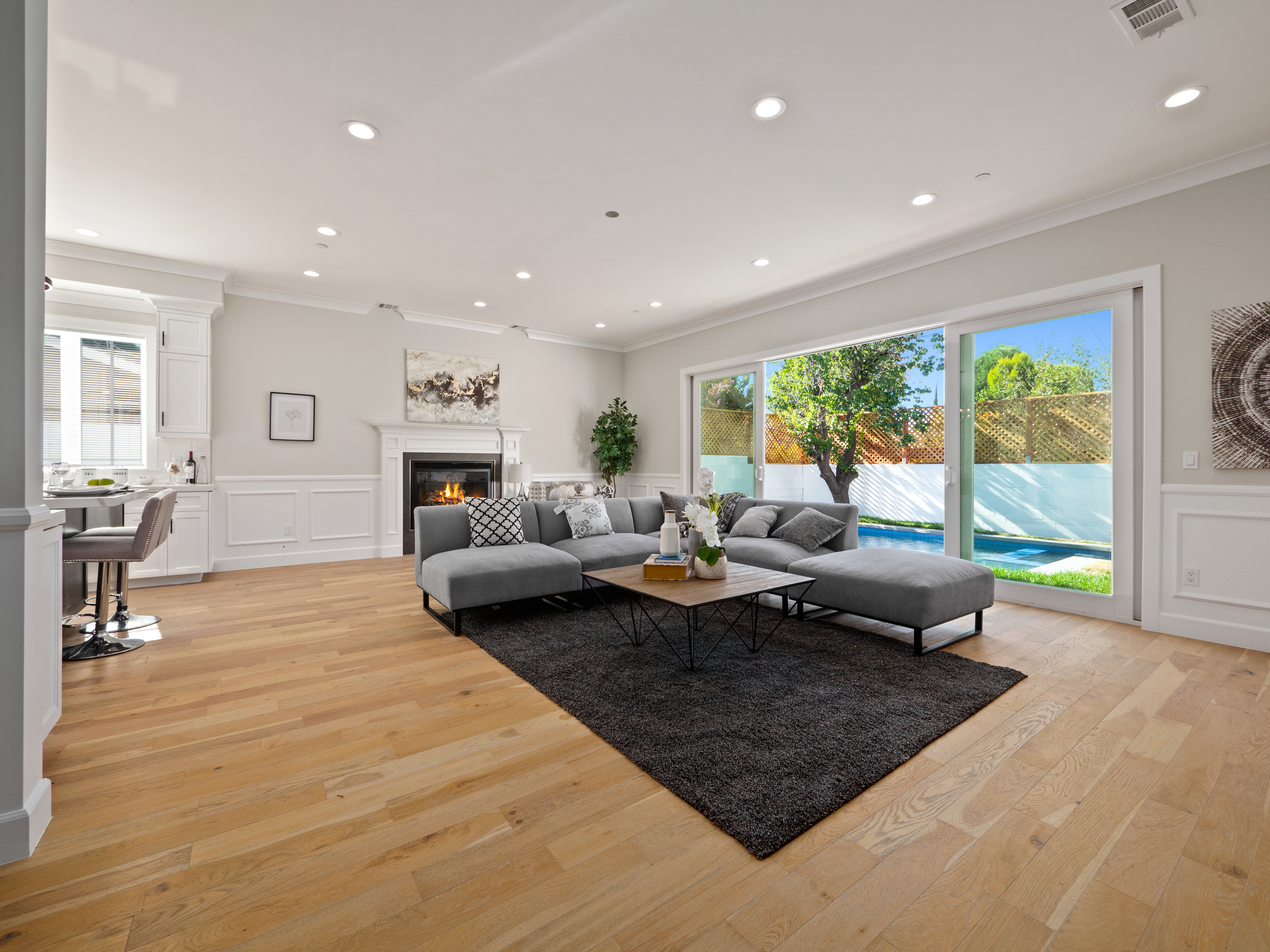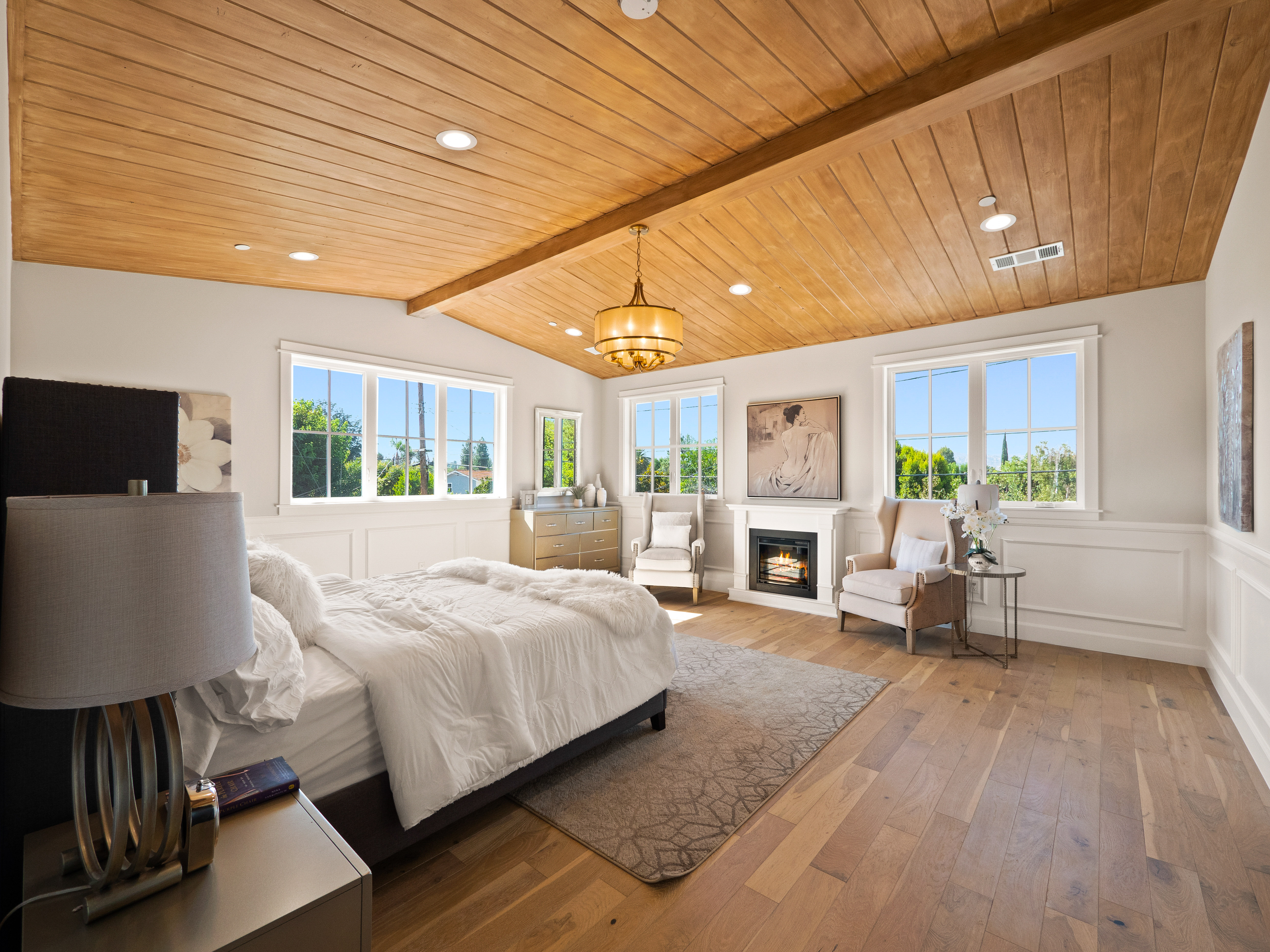 New Construction home in one of the most desirable neighborhoods of Woodland Hills offers over 4,000 sq ft open layout living space embraced with luxury amenities throughout. Two-story, 5 bedroom, 5.5 bathroom home offers immense natural lighting and oak hardwood flooring throughout. Upon entrance, grand staircase greets you for an impressive first impression. Formal dining room with wood-paneled vaulted ceilings lead you through the hallway to unveil a massive chefs kitchen and living room combination. The kitchen offers a six-burner stove, double oven, large island with bar seating, prep sink, custom cabinetry and more. Large glass sliding doors open to a backyard featuring a pool and spa. Just upstairs, the spacious bedrooms reside, along with the laundry room. Vaulted ceilings carry into the master bedroom with his and her closets, and a luxurious master bath. Master bathroom offers a soaking tub, a massive walk-in shower, double sinks, and vanity space. This home carries exquisite tile and woodwork in every room, all illuminated with designer lighting, and functional recessed lighting. Additional amenities include 2 fireplaces, ensuite bedrooms, wine cellar, nest thermostat, two-car garage and so much more! Conveniently located in Woodlake Elementary, Hale Middle & El Camino High School districts.