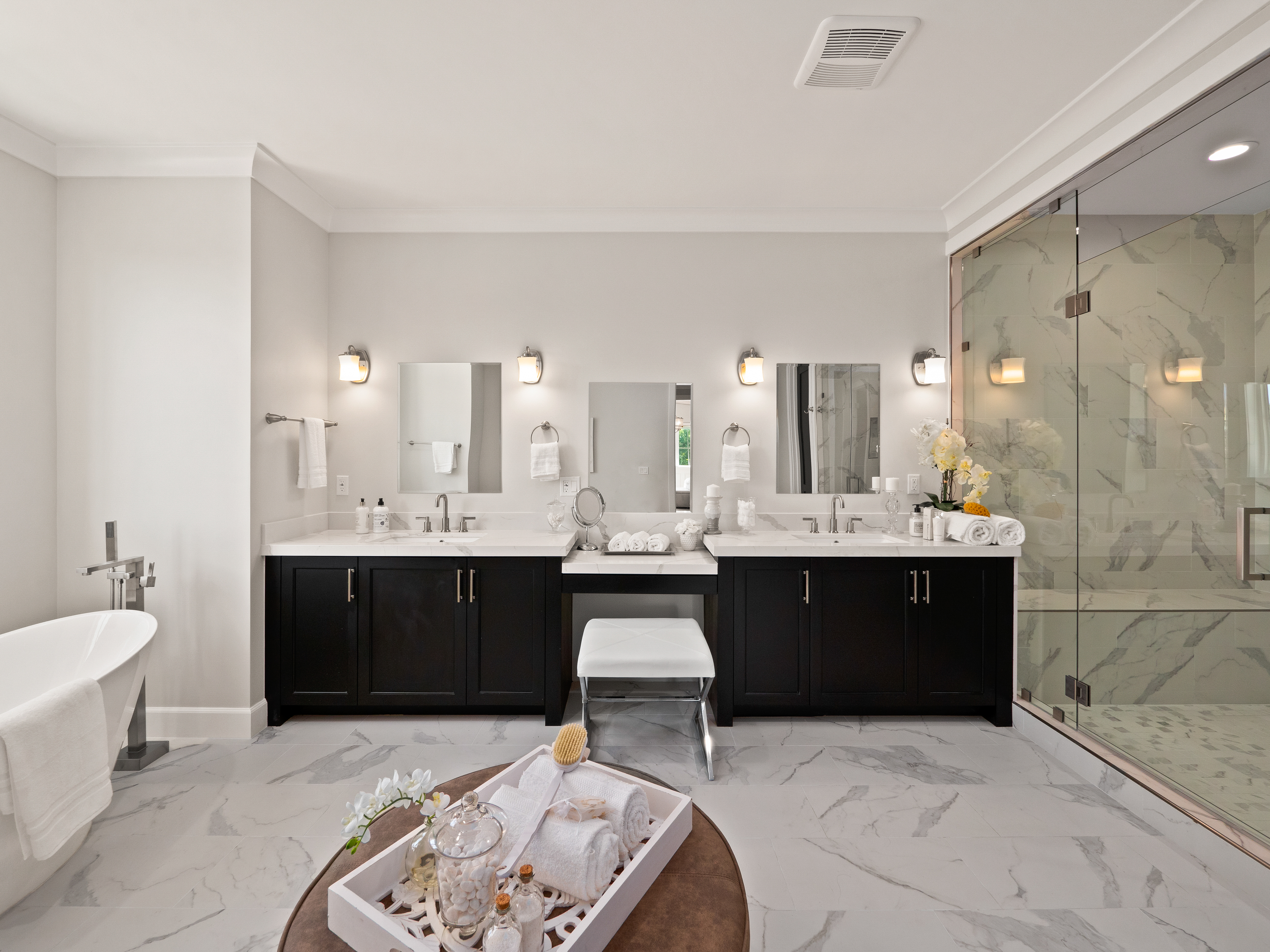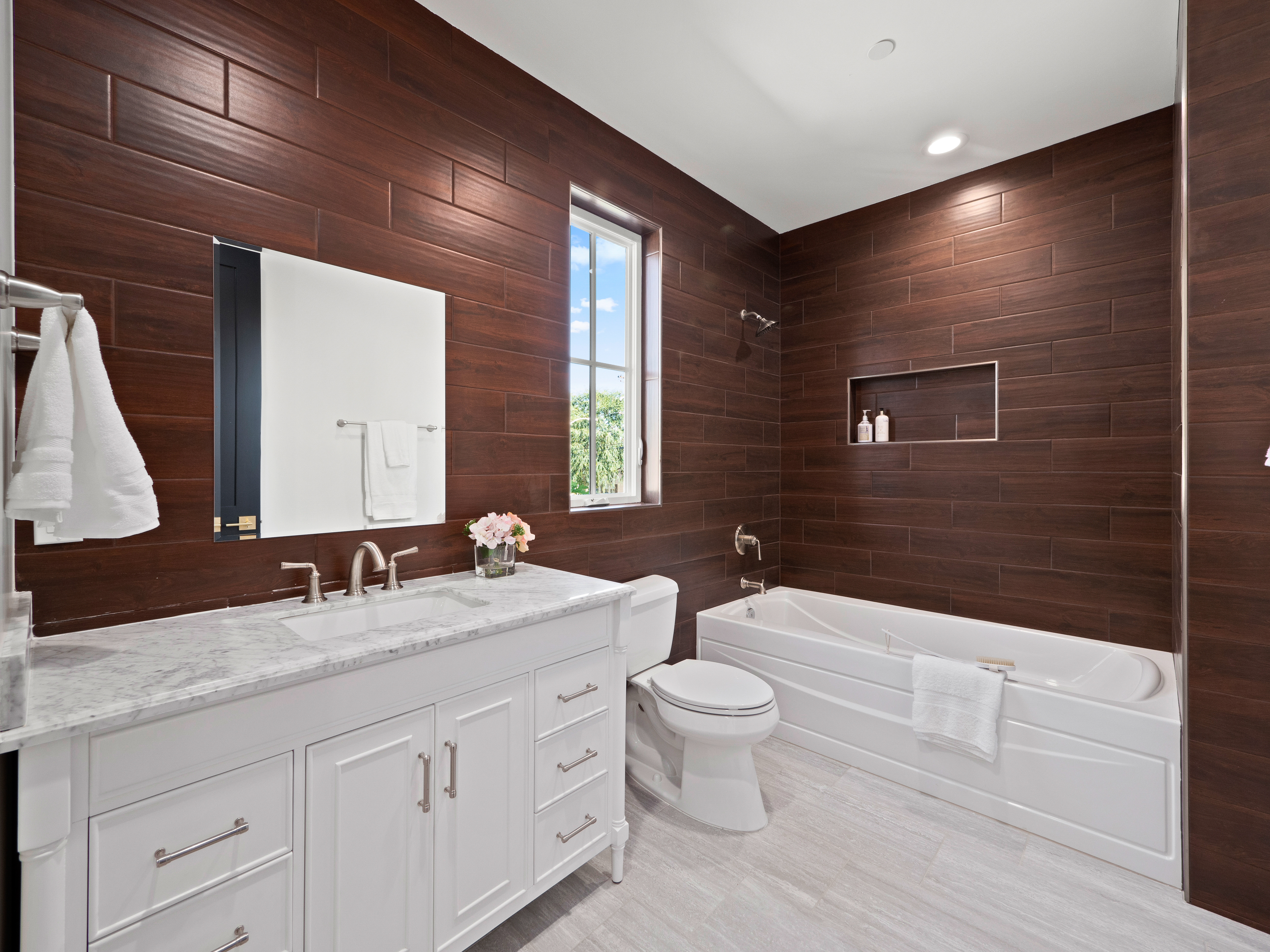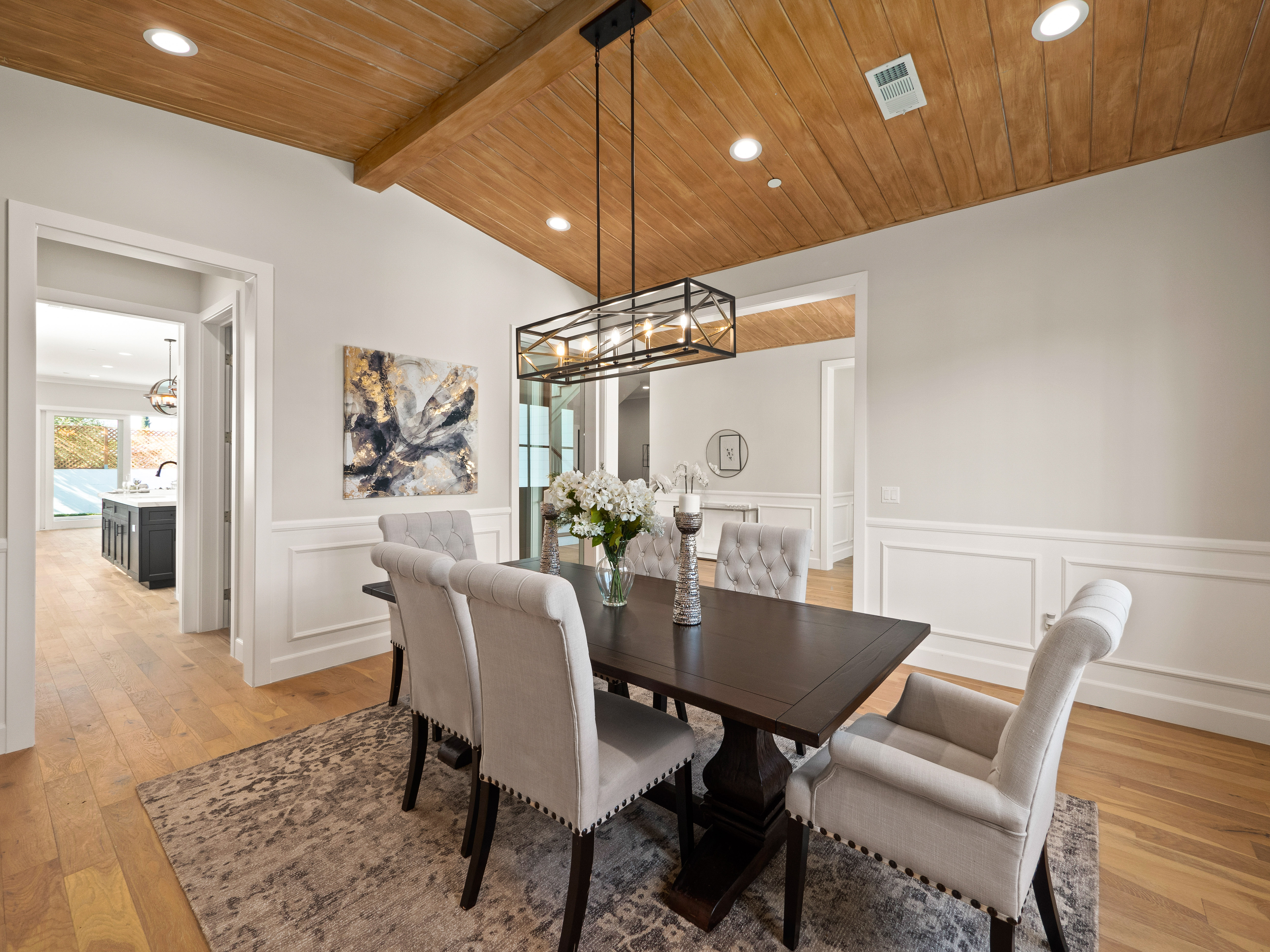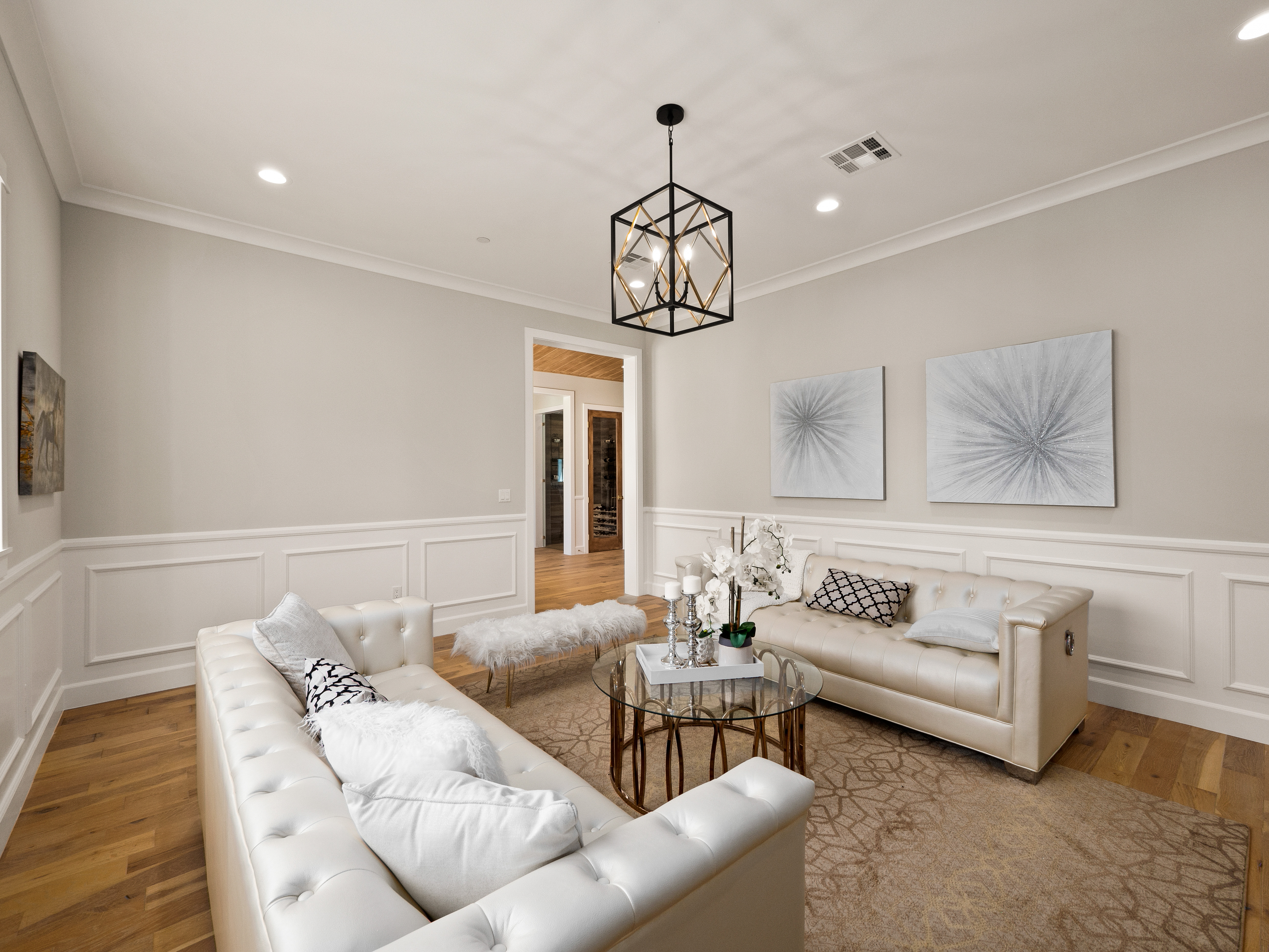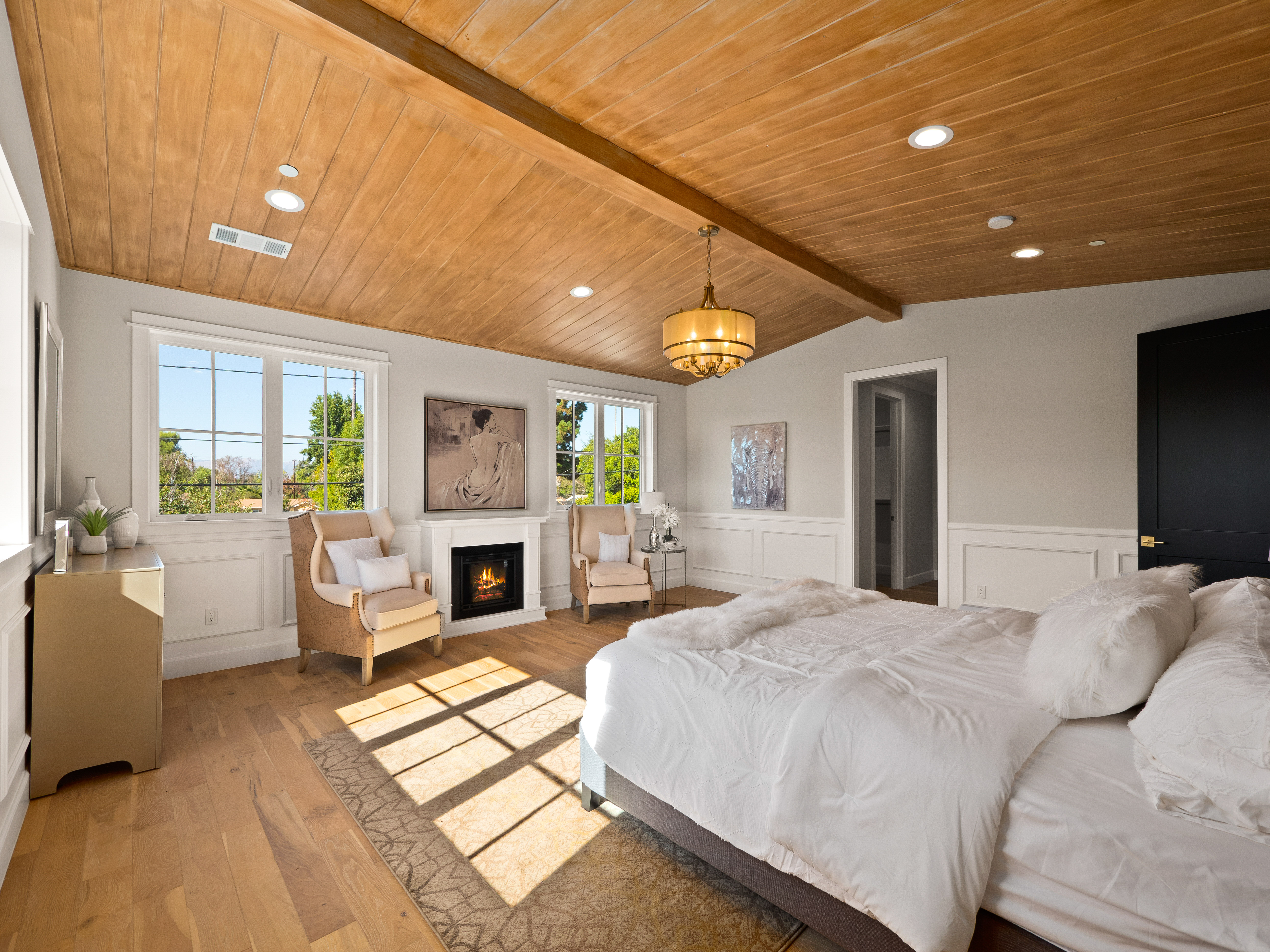New Construction home in one of the most desirable neighborhoods of Woodland Hills offers over 4,000 sq ft open layout living space embraced with luxury amenities throughout. Two-story, 5 bedroom, 5.5 bathroom home offers immense natural lighting and oak hardwood flooring throughout. Upon entrance, grand staircase greets you for an impressive first impression. Formal dining room with wood-paneled vaulted ceilings lead you through the hallway to unveil a massive chefs kitchen and living room combination. The kitchen offers a six-burner stove, double oven, large island with bar seating, prep sink, custom cabinetry and more. Large glass sliding doors open to a backyard featuring a pool and spa. Just upstairs, the spacious bedrooms reside, along with the laundry room. Vaulted ceilings carry into the master bedroom with his and her closets, and a luxurious master bath. Master bathroom offers a soaking tub, a massive walk-in shower, double sinks, and vanity space. This home carries exquisite tile and woodwork in every room, all illuminated with designer lighting, and functional recessed lighting. Additional amenities include 2 fireplaces, ensuite bedrooms, wine cellar, nest thermostat, two-car garage and so much more! Conveniently located in Woodlake Elementary, Hale Middle & El Camino High School districts.