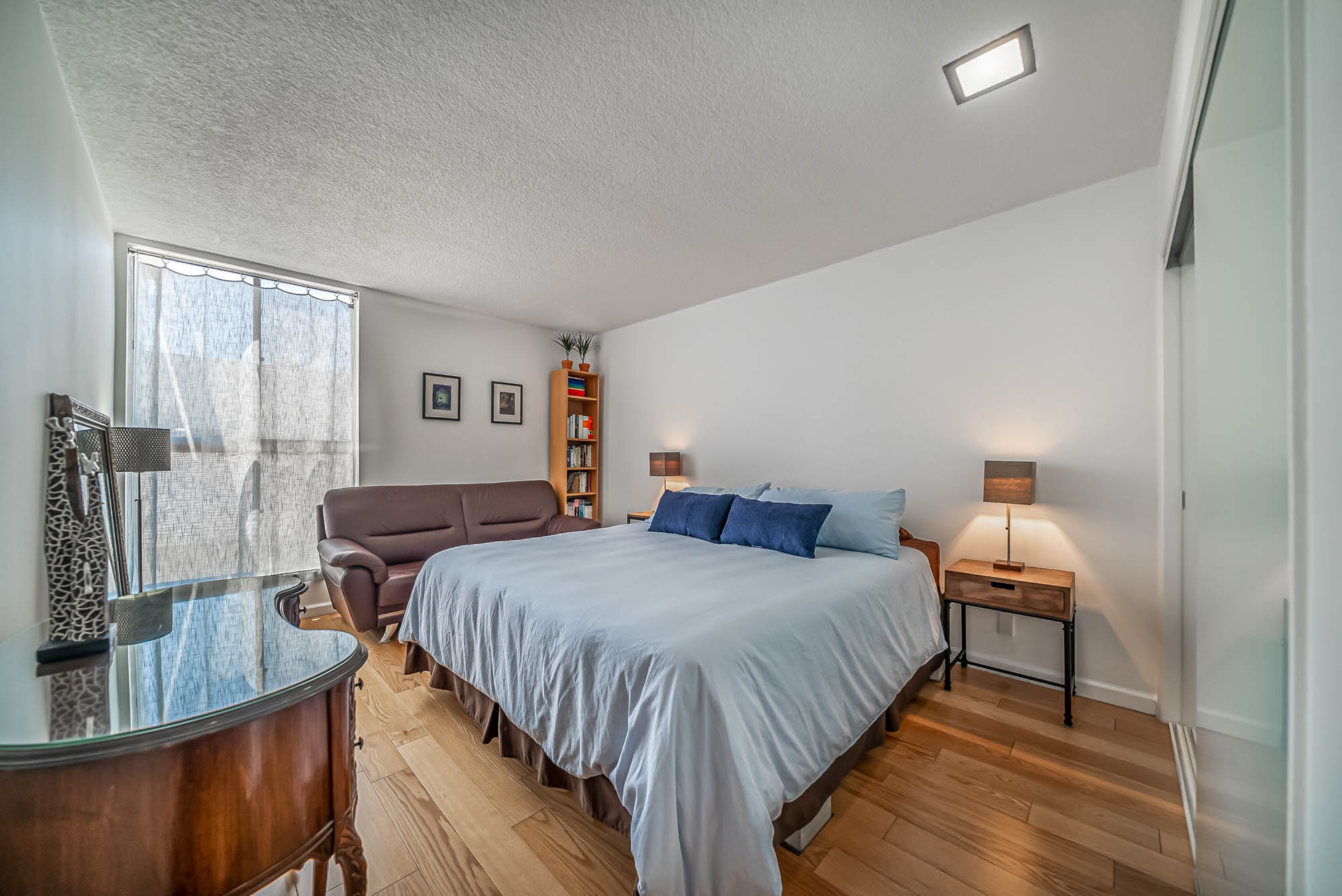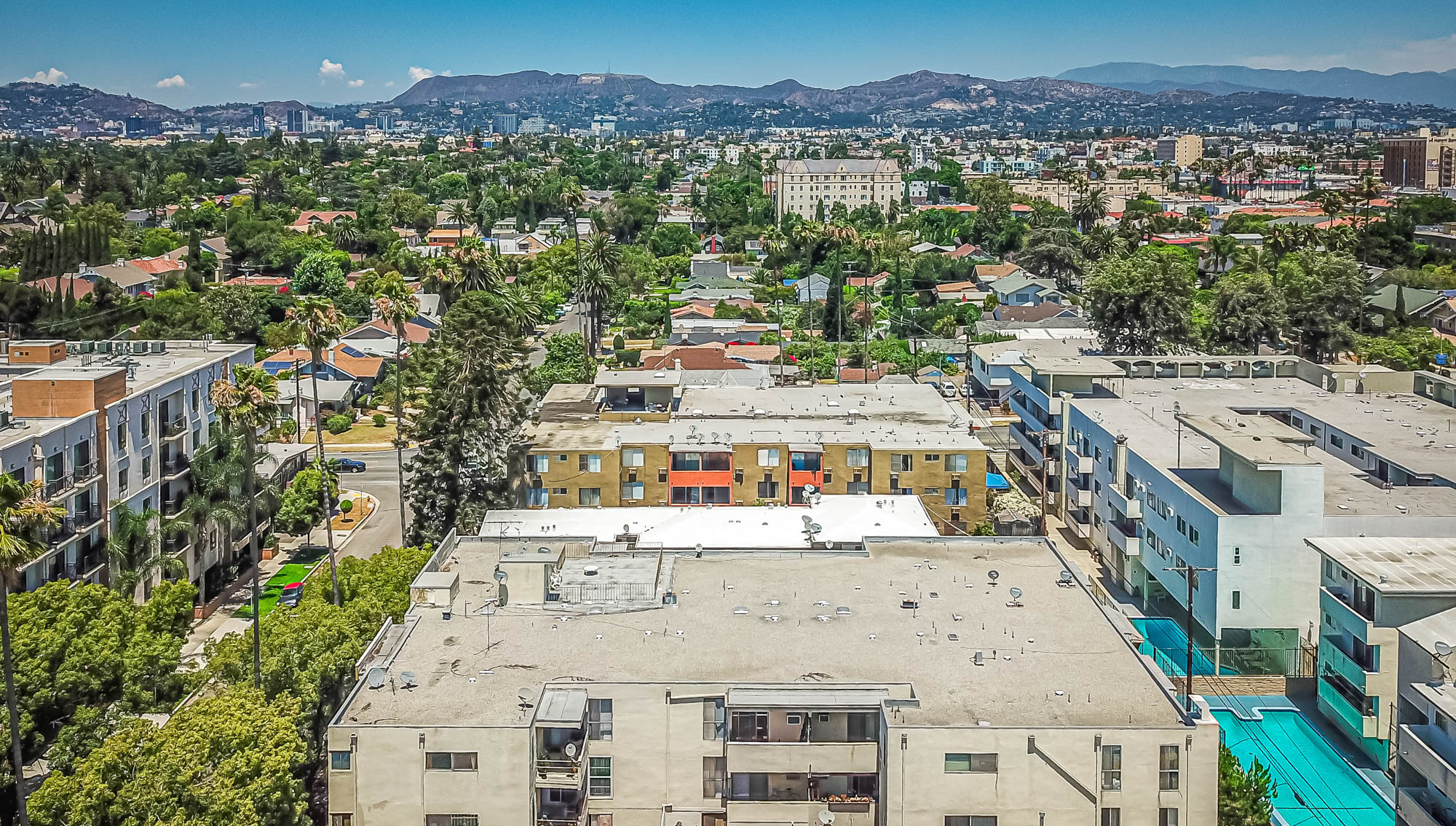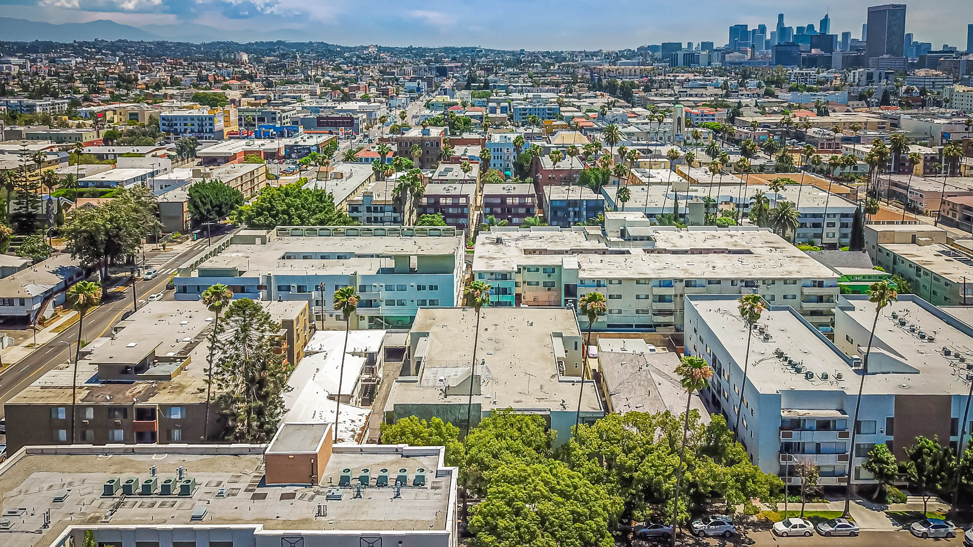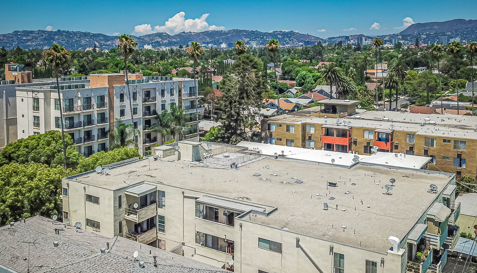 Welcome home to this bright and cheerful one bedroom one bath condo with amazingly cool retro vibes! Prime Hancock Park location close to Larchmont Village shops and restaurants, The Wiltern and Western Avenue. This quiet top floor unit features an open concept floor plan with recently upgraded hardwood flooring throughout. The vintage kitchen features a breakfast bar that opens to the dining area and an abundance of storage. Located off of the living area is a balcony perfect for your morning cup of coffee or to enjoy the evening sunsets. The spacious bedroom has a large window with beautiful treetop views and two closets. The retro theme continues into the pristine bathroom with black and white tile floors, tons of counter space, and a vanity area. Other highlights include a rooftop deck, with views of Griffith Observatory and the Hollywood Sign, newer air conditioning unit, and fresh paint.