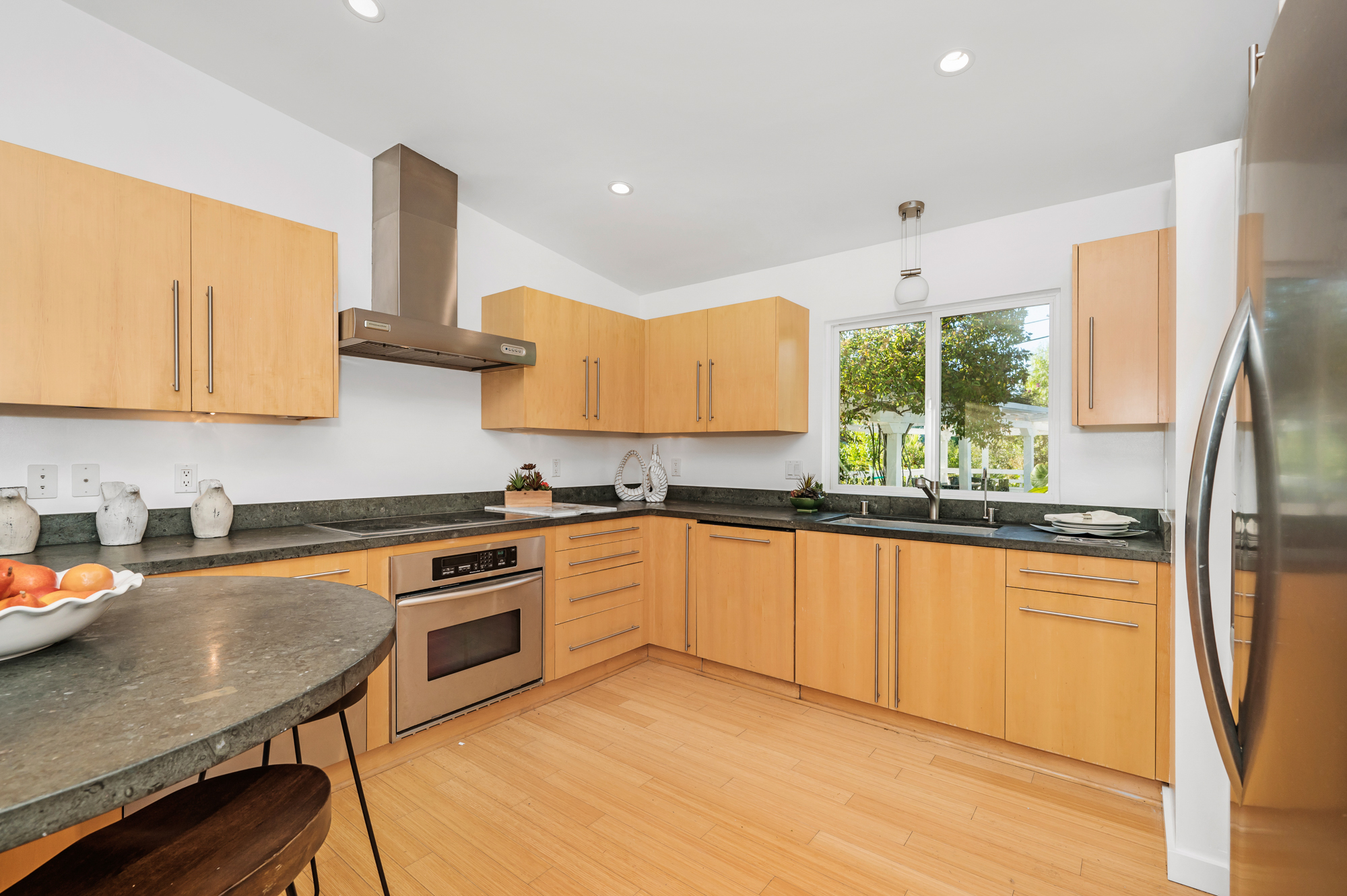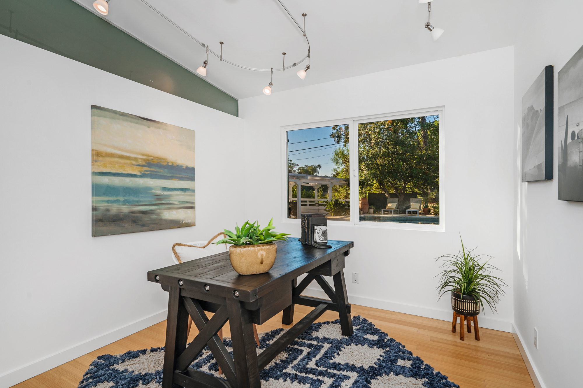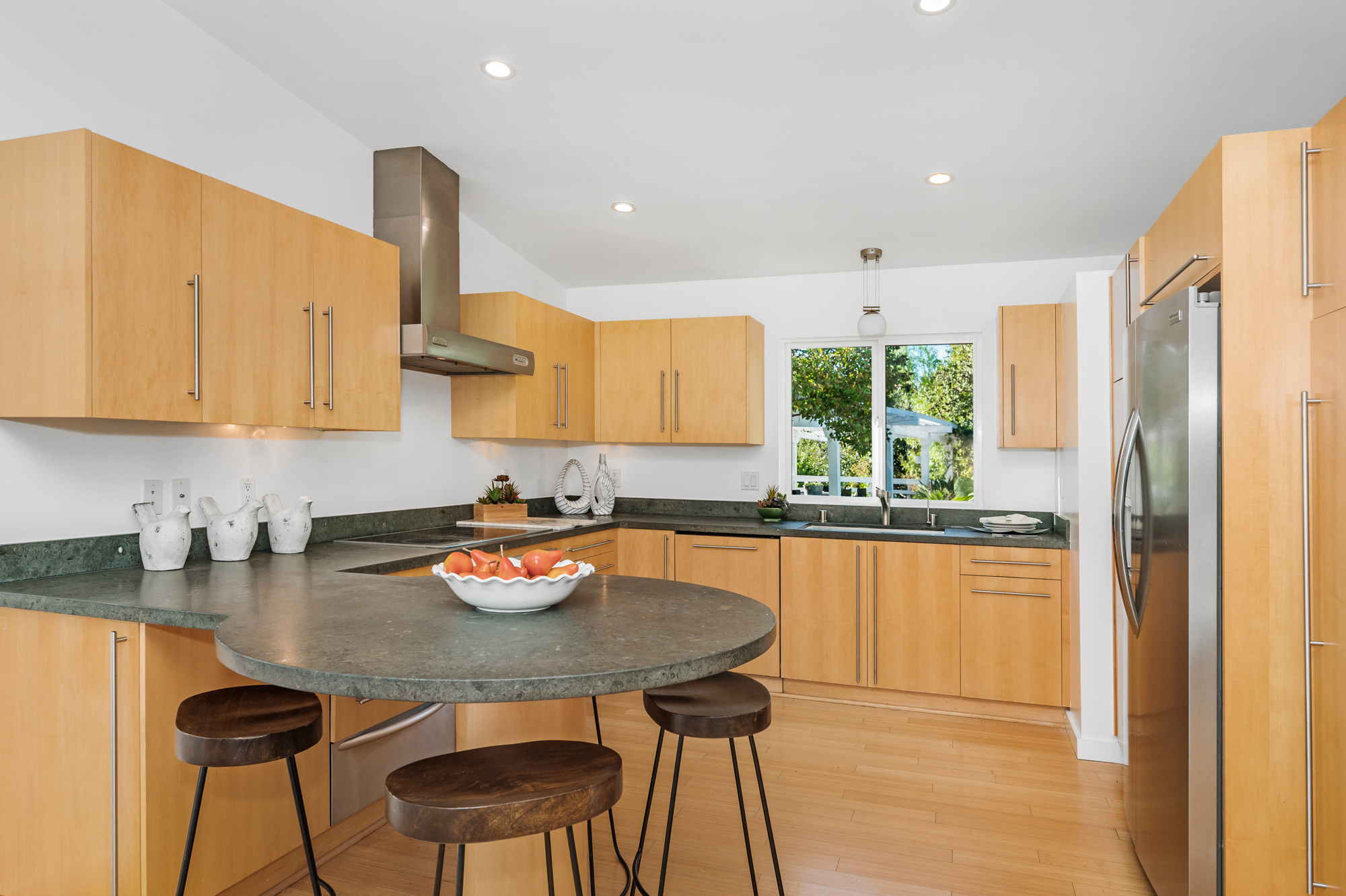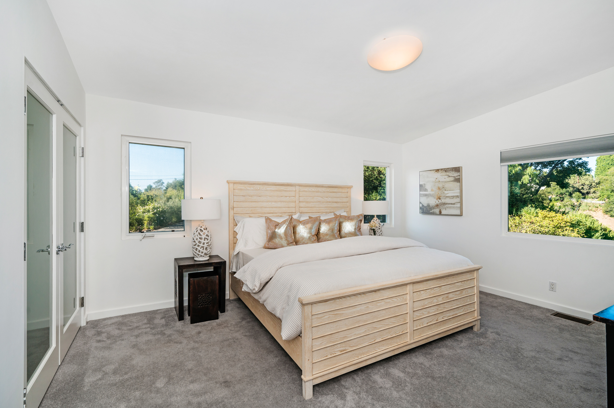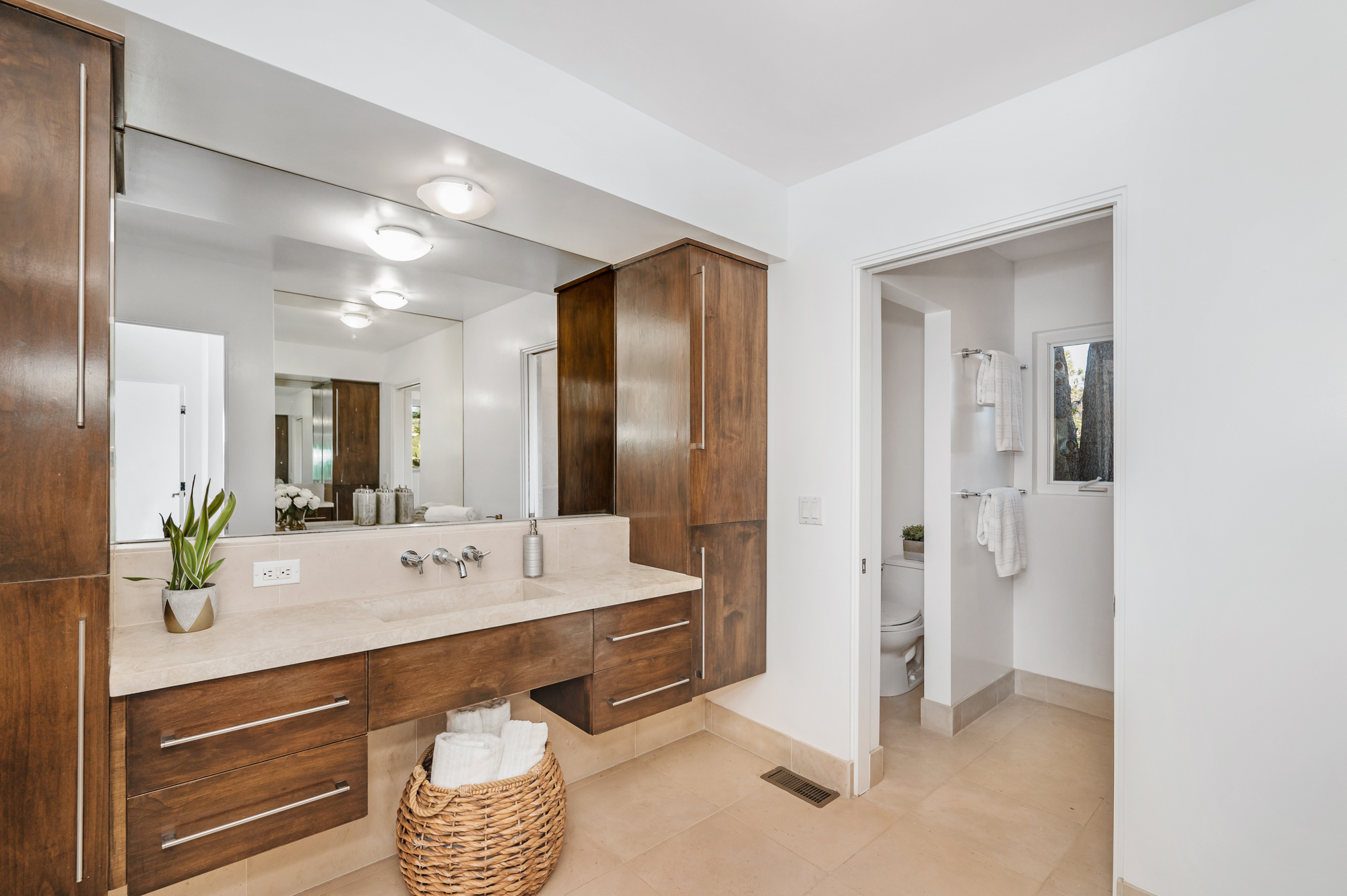 Perched at the end of a quiet cul-de-sac and surrounded by mature trees in the Carpenter School District is this captivating modern view home in the hills of Studio City. Through the front gate, you are met with stunning mountain views, a sparkling pool, and a charming vine-covered pergola. The home’s architecture and many windows perfectly complement the outdoors, infusing the interior with an abundance of natural light. The first floor’s open concept layout has high ceilings and seamlessly connects the updated kitchen, dining room, and living room with walls of sliding glass doors that offer more tranquil views of the surrounding hills. The first floor also offers three bedrooms and an office. Upstairs the spacious master bedroom features a beautifully updated master bath with natural limestone surfaces. The additional upstairs bedroom is ideal as a kid’s bedroom, studio, or 2nd office. Moments from Fryman Canyon hiking trails and conveniently located to the West Side.