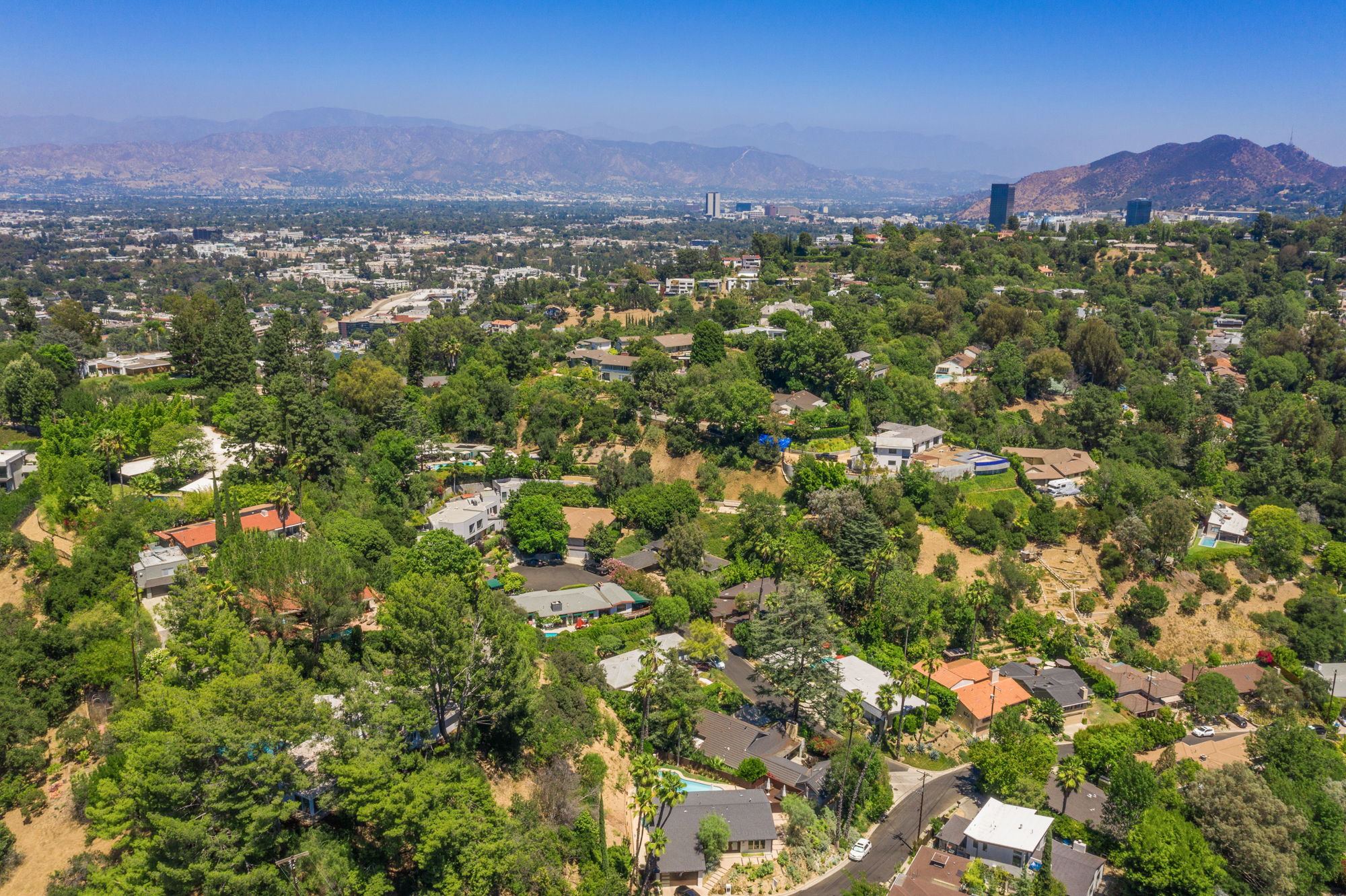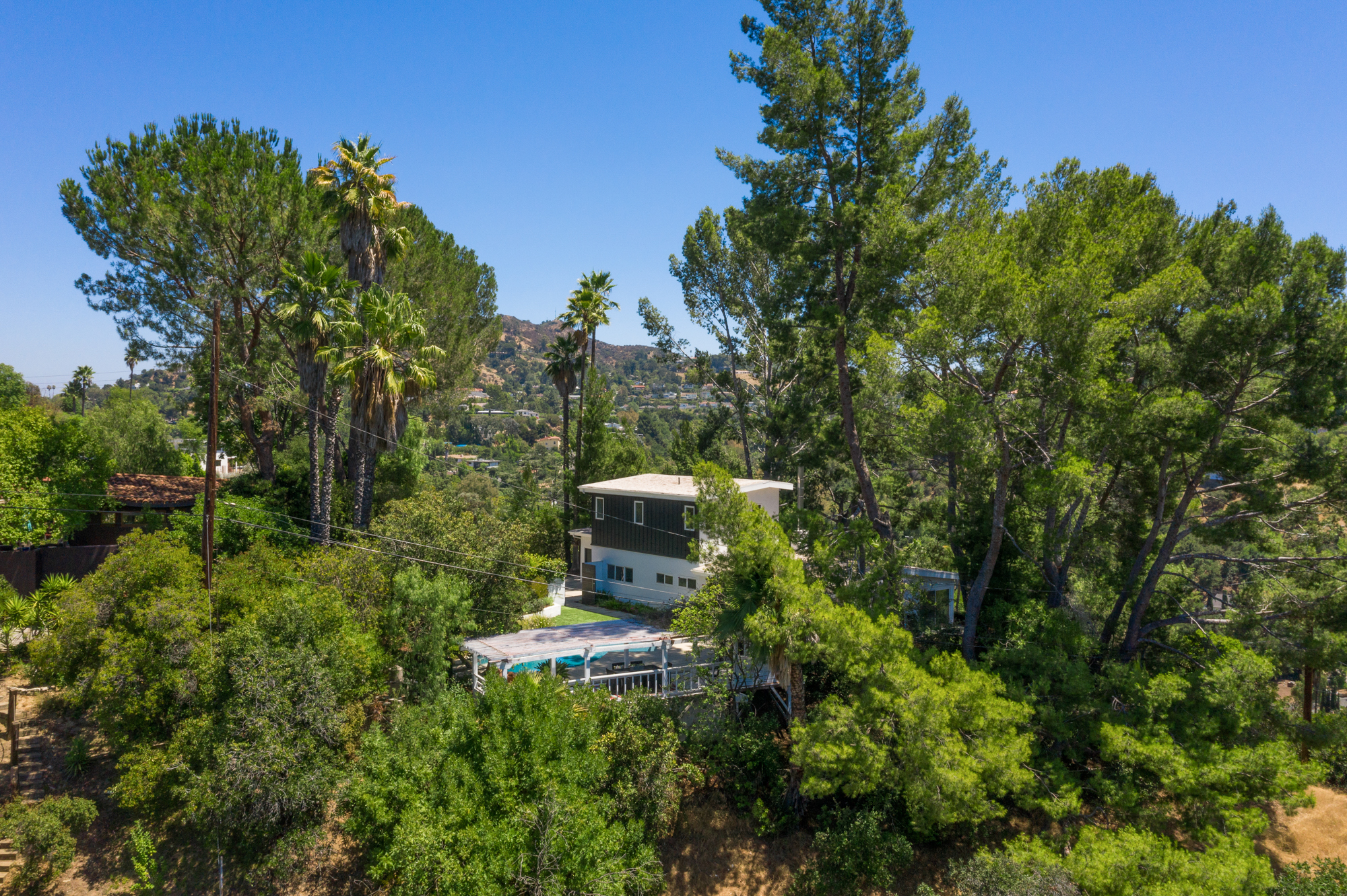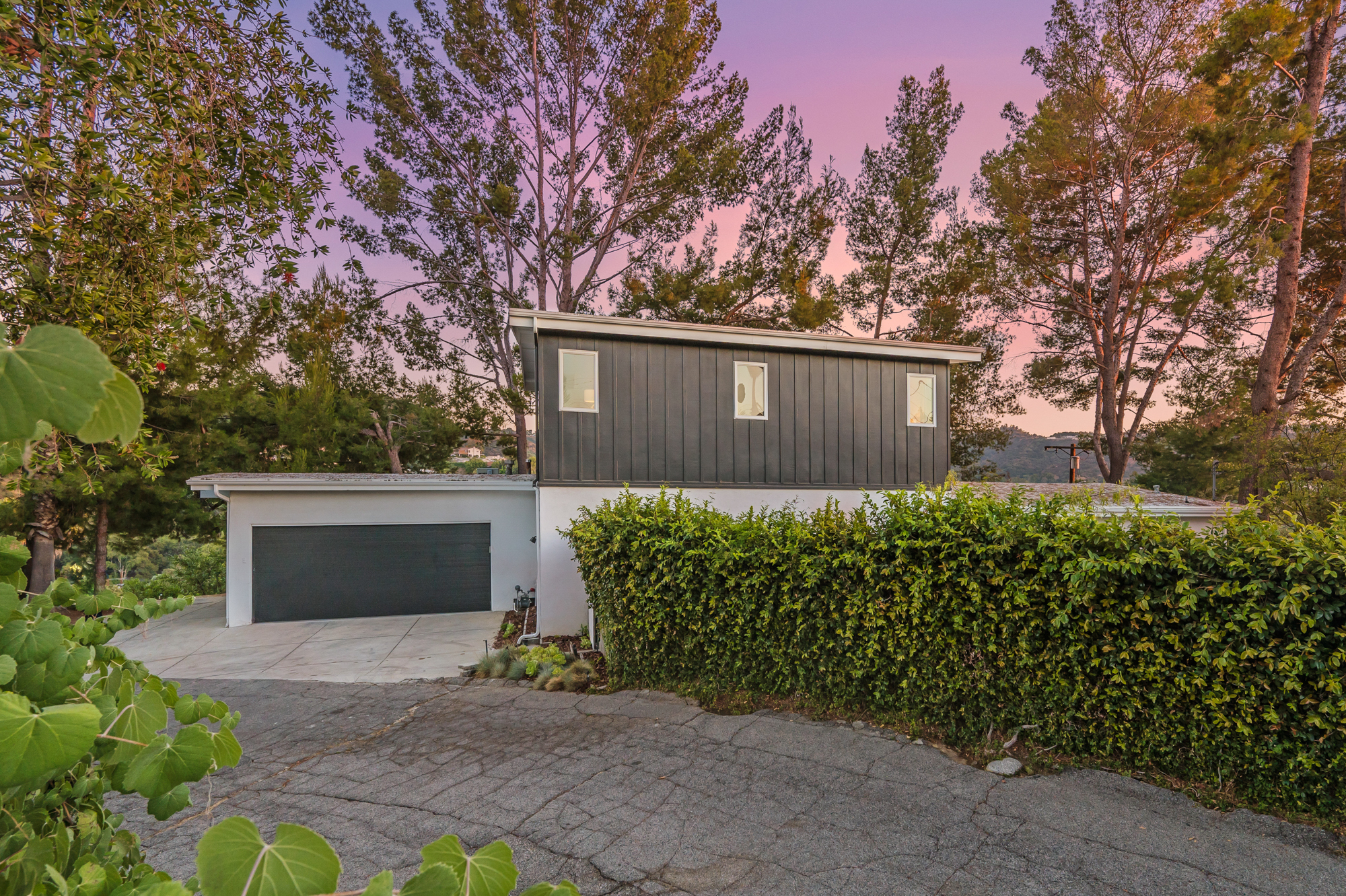 Perched at the end of a quiet cul-de-sac and surrounded by mature trees in the Carpenter School District is this captivating modern view home in the hills of Studio City.