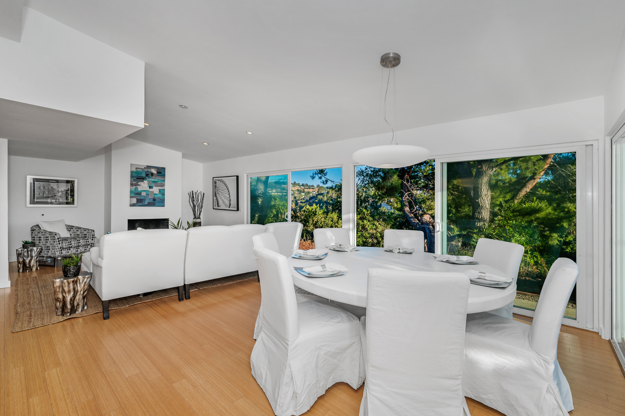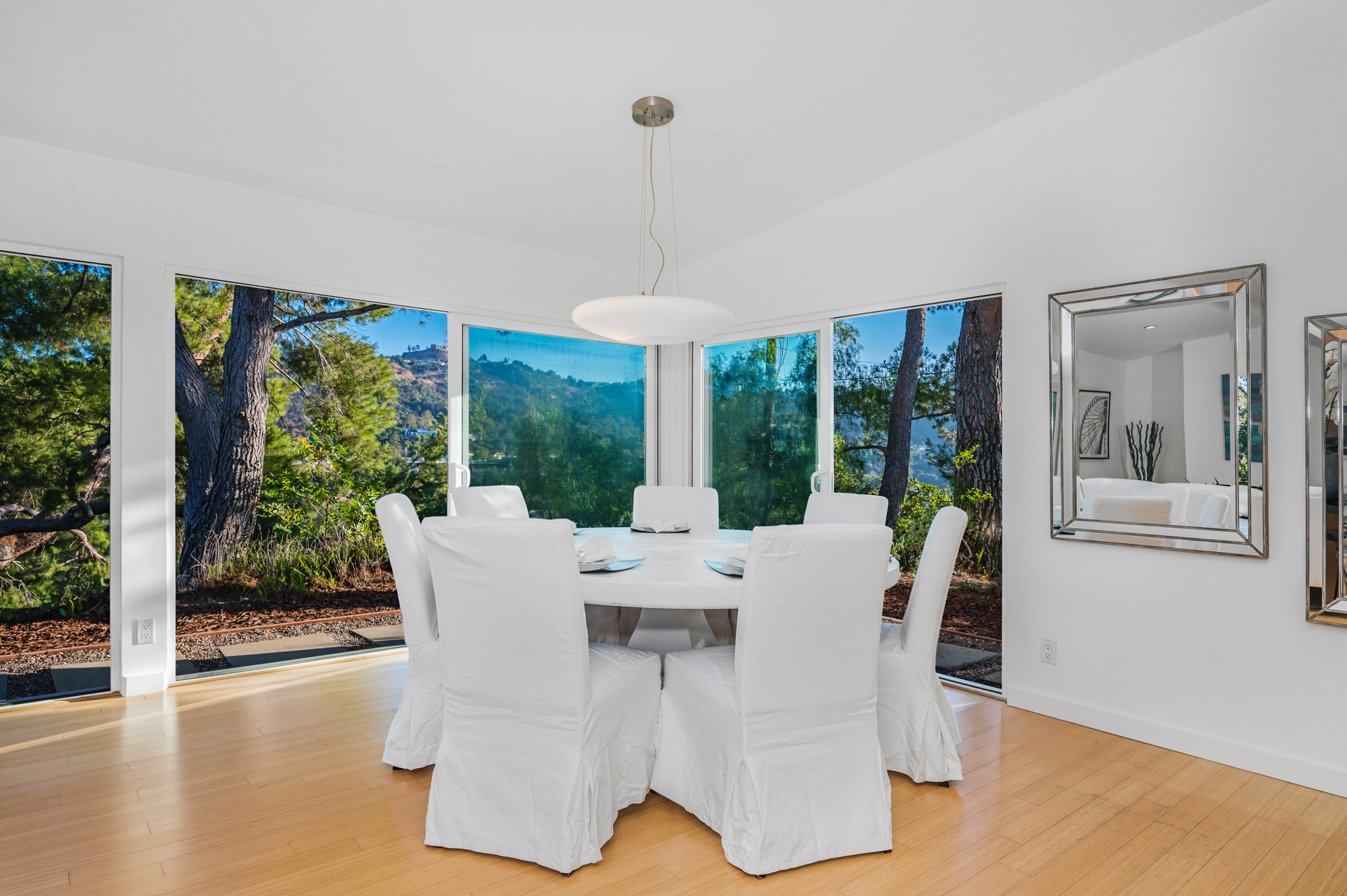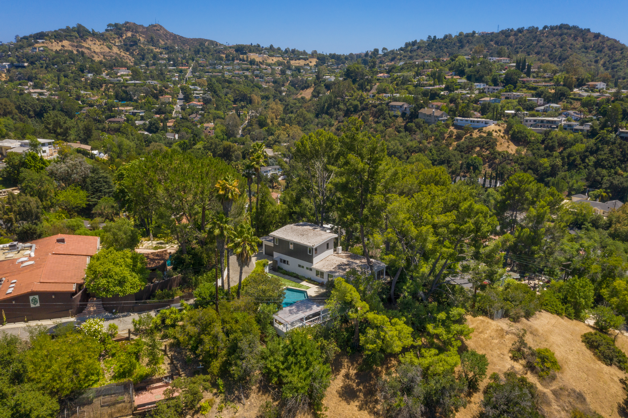 Perched at the end of a quiet cul-de-sac and surrounded by mature trees in the Carpenter School District is this captivating modern view home in the hills of Studio City.