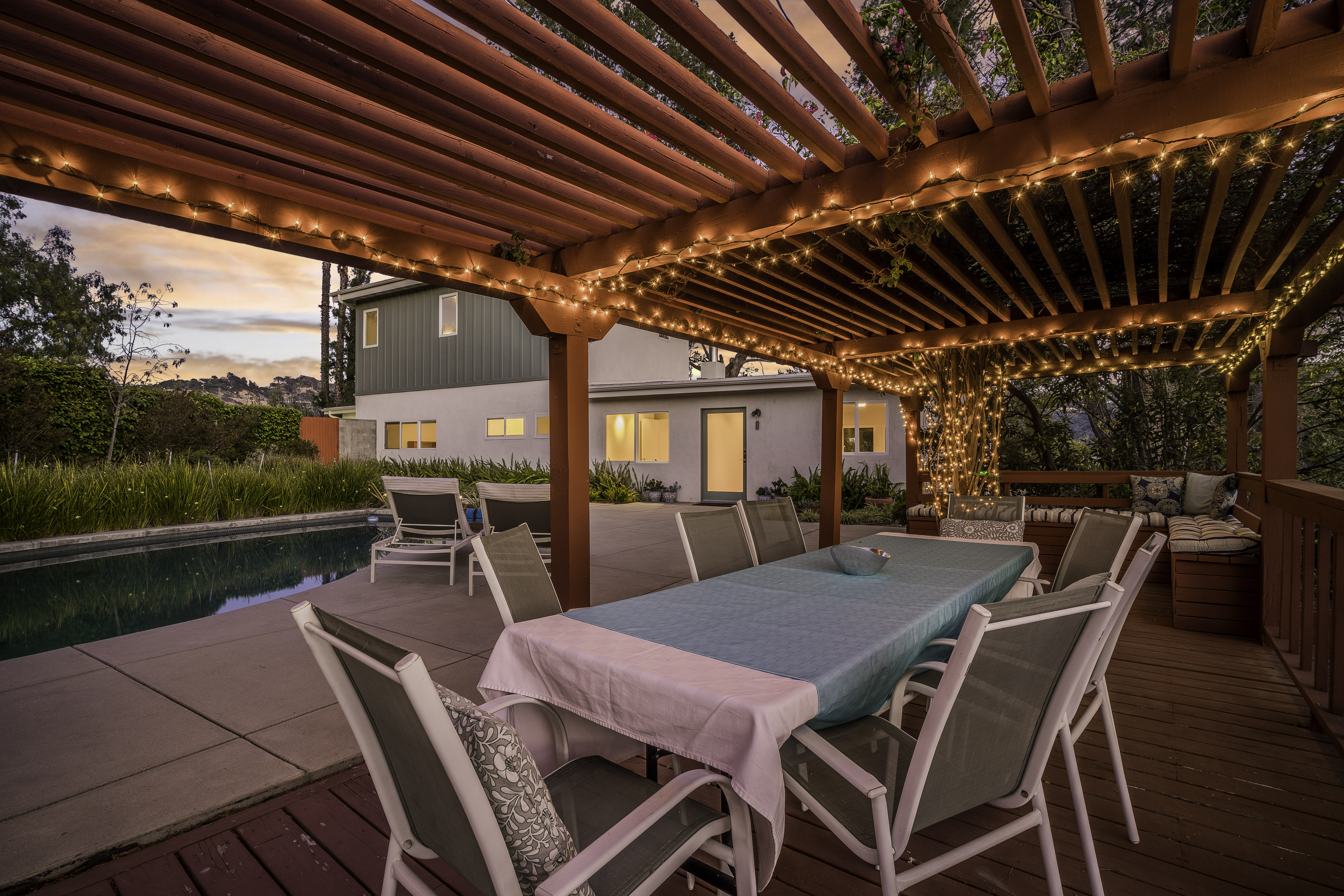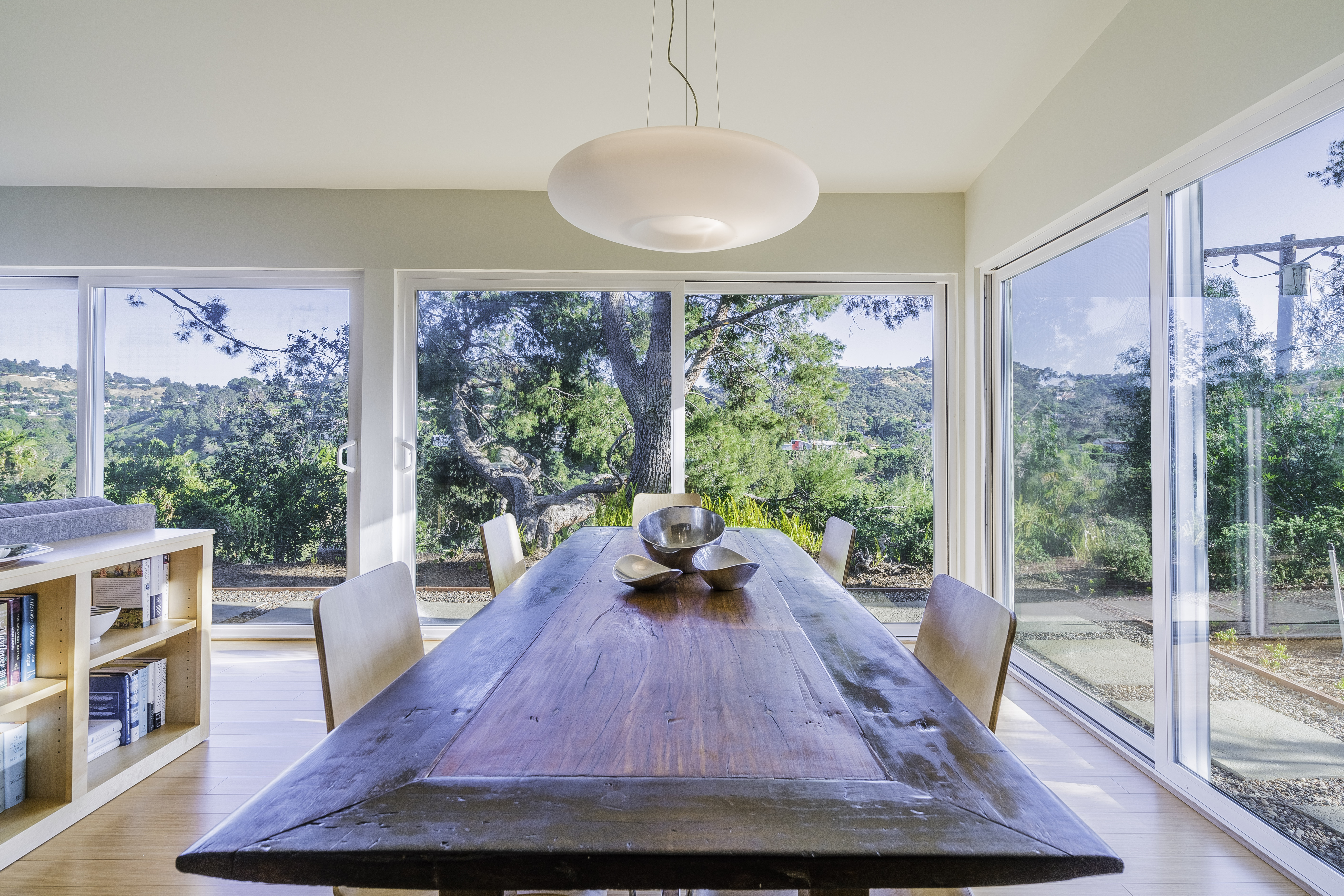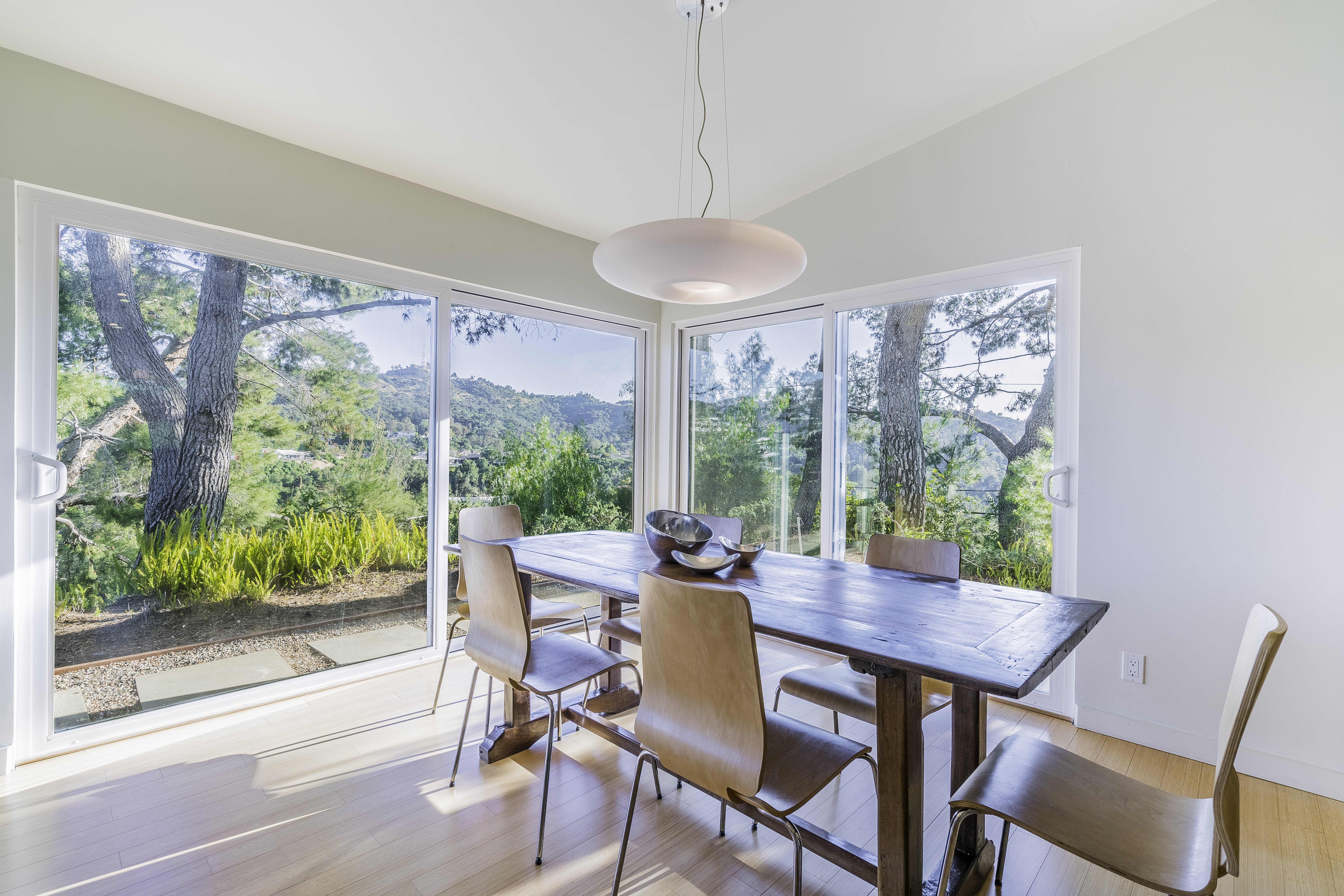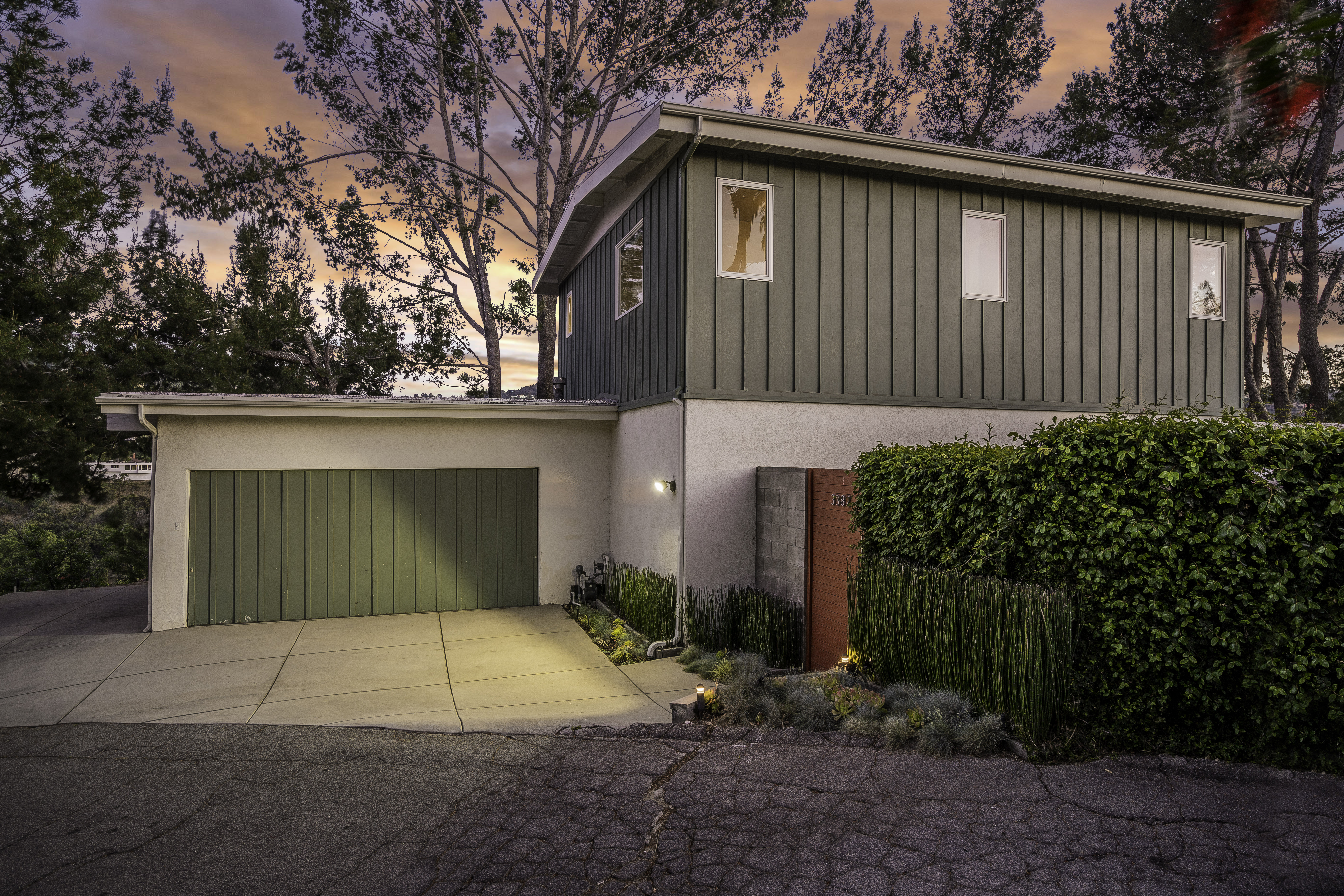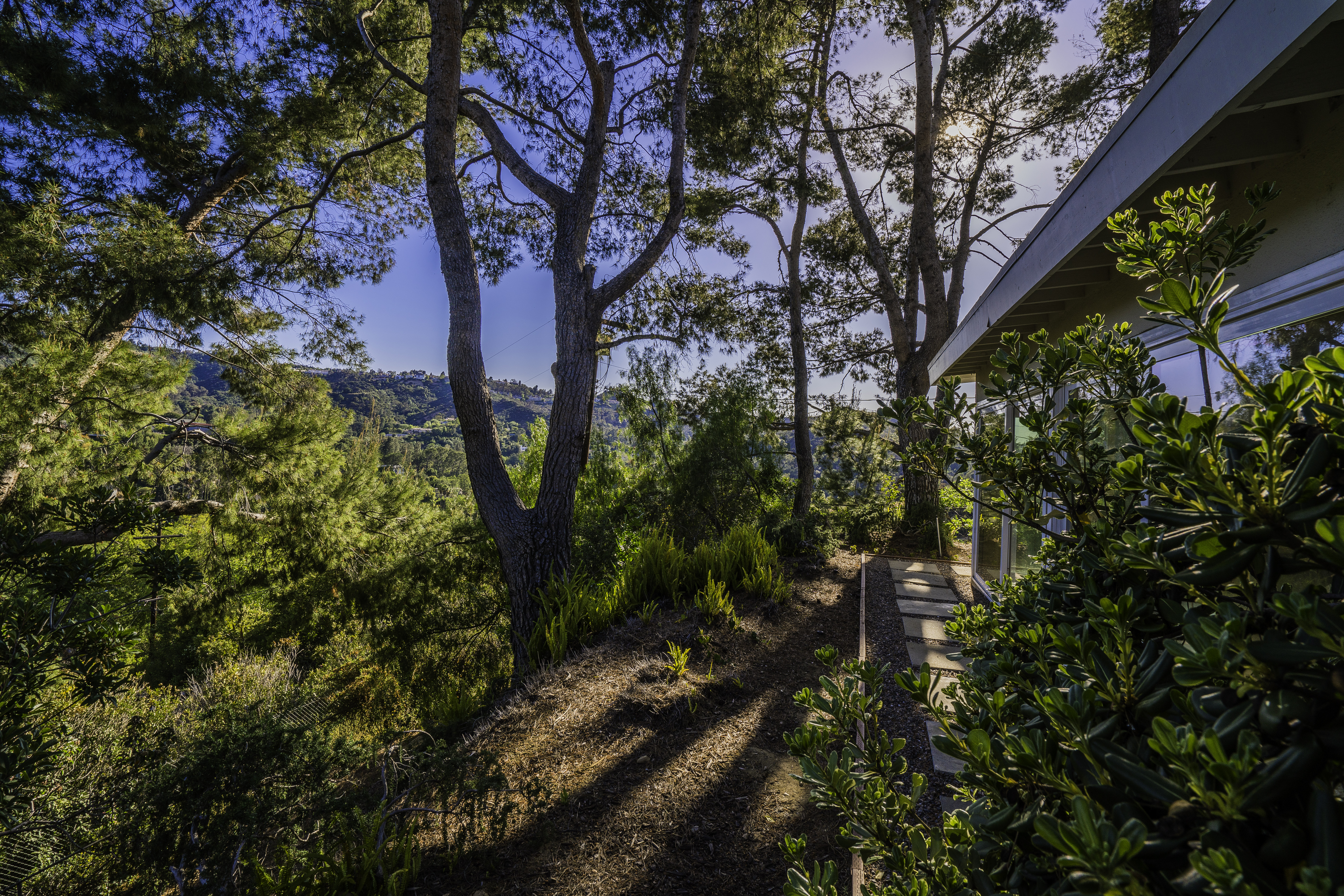 Nestled among the trees, off a serene cul-de-sac, this stunning modern-view home sits in the forest-like hills of Studio City. As you enter the property through the privacy gate, you are greeted by the sparkling pool, designer landscaping, spacious covered patio, and spectacular mountain views. The home's architecture perfectly compliments the outdoors, infusing the interior with an abundance of natural light which highlights the home's sleek styling. The first floor offers high ceilings and open-concept living, seamlessly connecting the updated kitchen, dining room, and living room with walls of sliding glass doors that offer stunning views of the surrounding hills and allow in the cooling, fresh mountain breeze in the afternoon. Downstairs are three bedrooms and an office. Upstairs, the spacious master bedroom features a beautifully updated master bath with natural limestone surfaces. The additional bedroom upstairs is perfect for a child's bedroom, guest room, studio, or office space. The liberal use of glass throughout the home ensures 360-degree views of the entire area. Located in the highly desired Carpenter Avenue School District, and only moments away from all of the Studio City "hot spots," Fryman Canyon hiking trails and the Westside. This unique property won't last long.