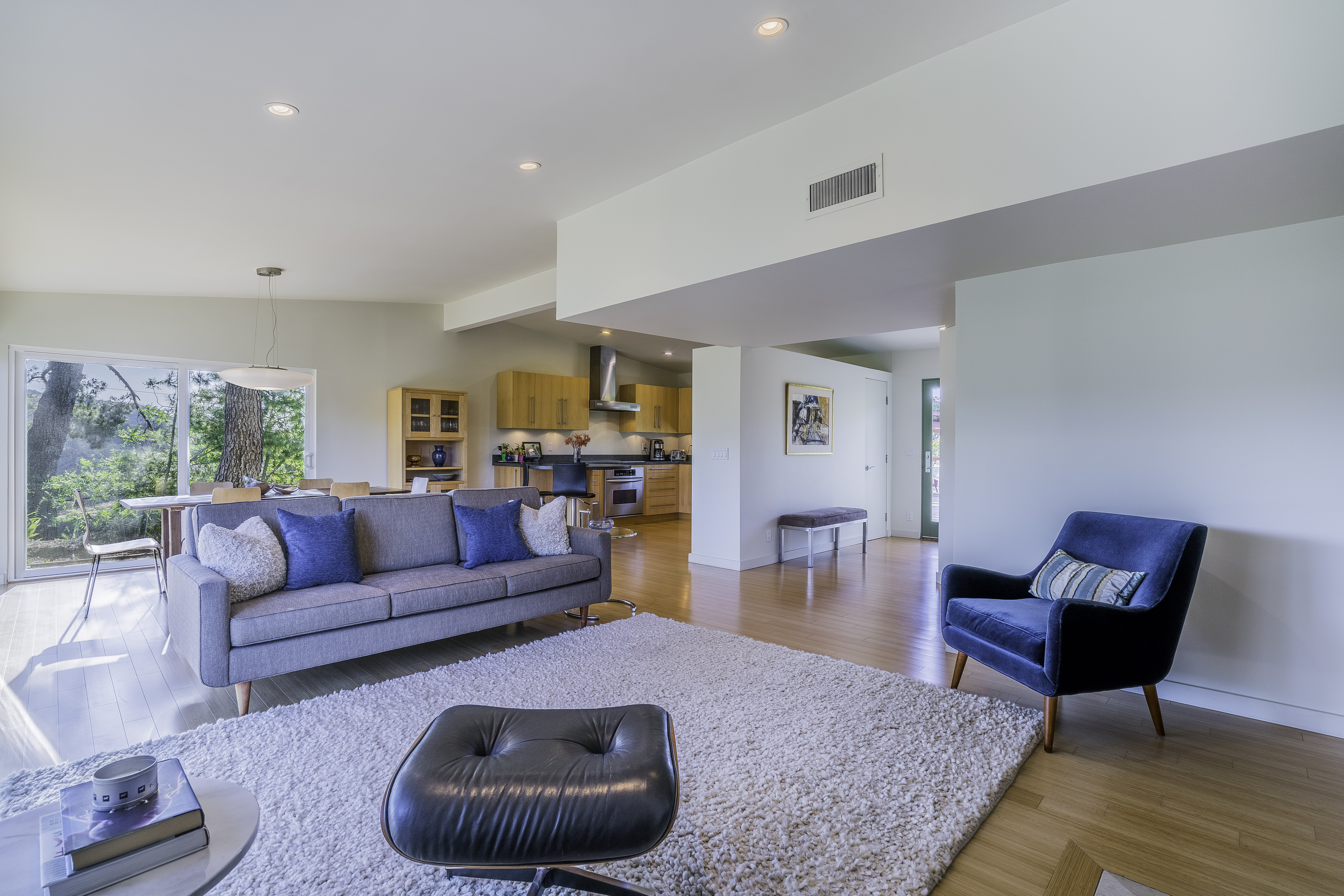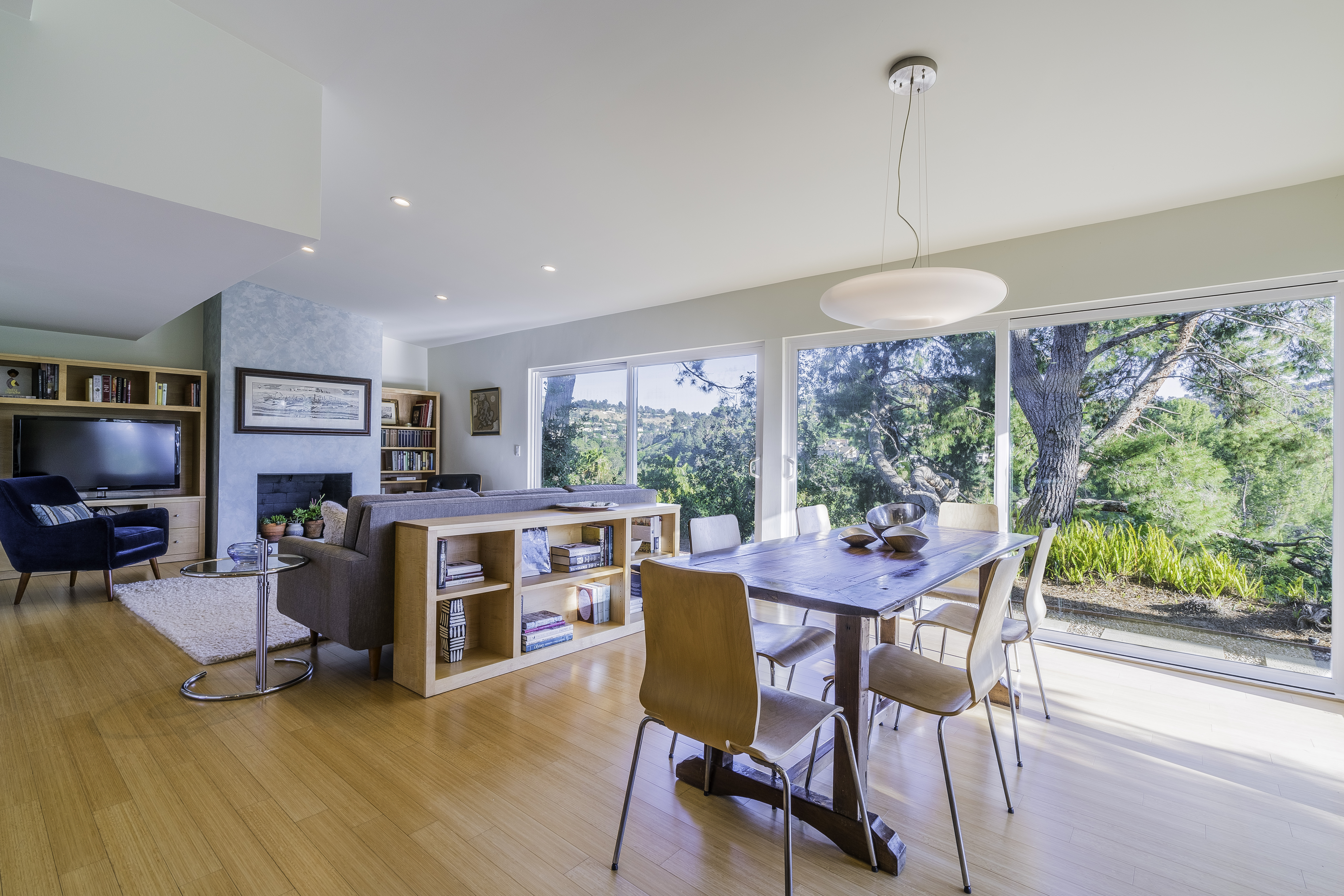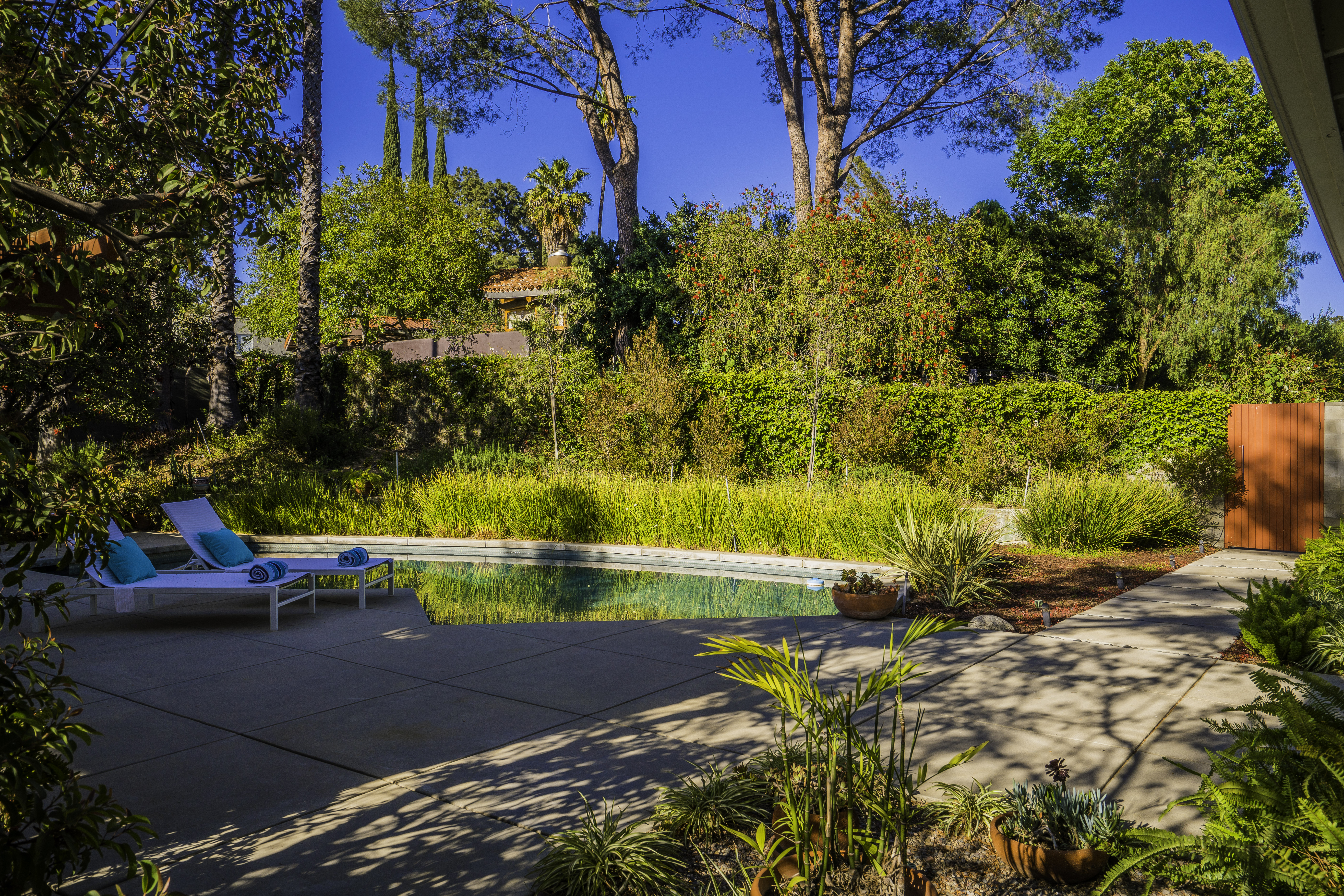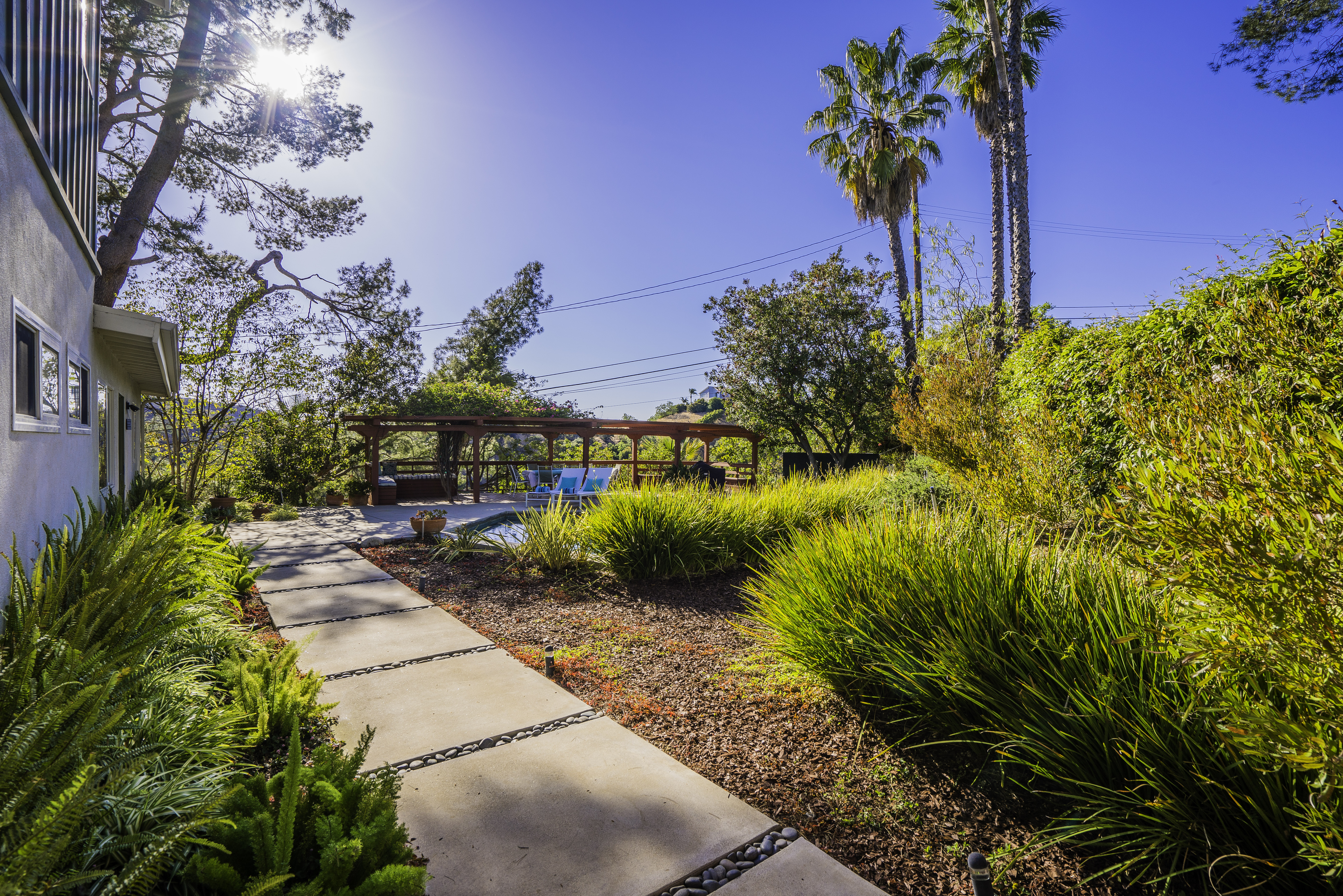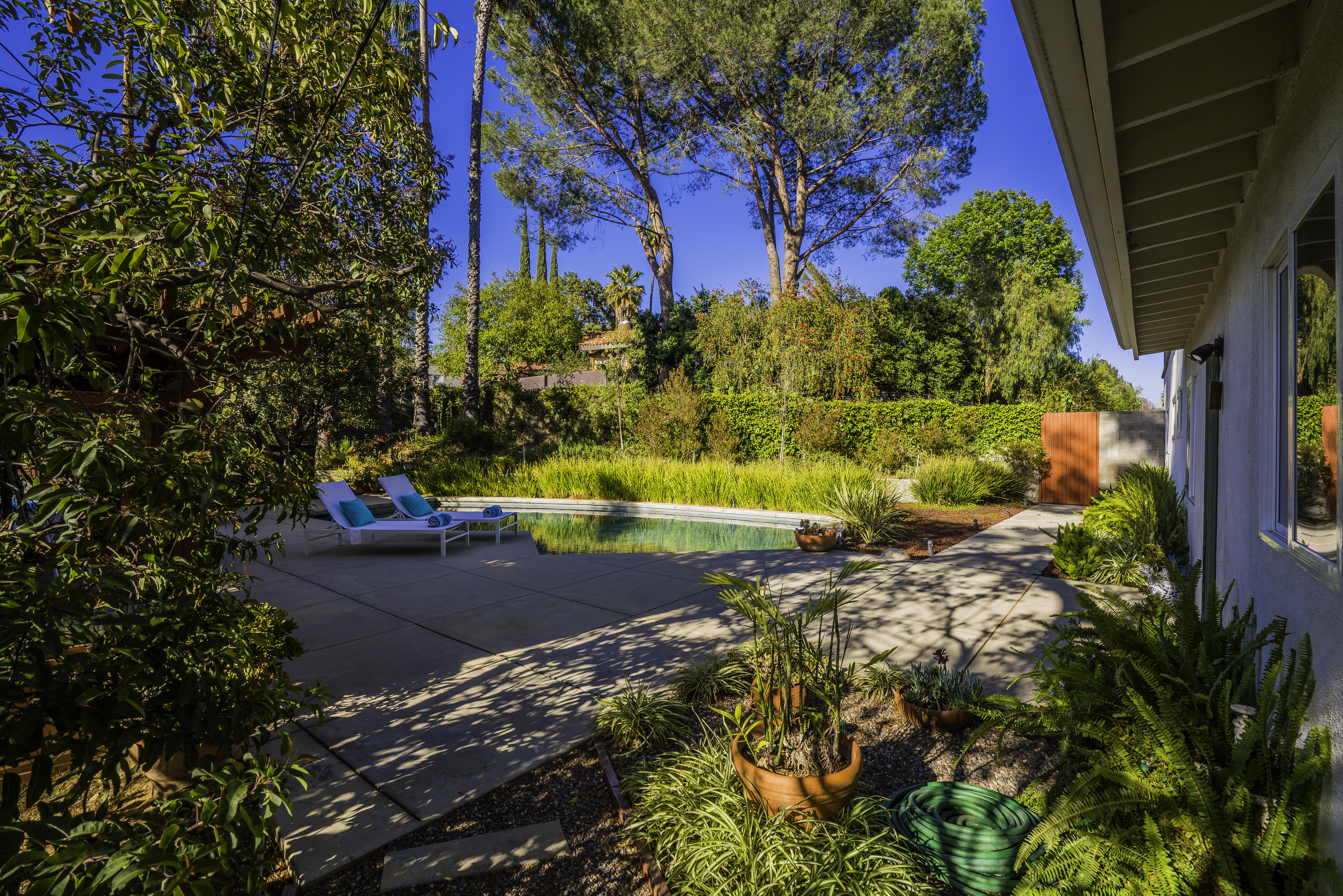 Nestled among the trees, off a serene cul-de-sac, this stunning modern-view home sits in the forest-like hills of Studio City. As you enter the property through the privacy gate, you are greeted by the sparkling pool, designer landscaping, spacious covered patio, and spectacular mountain views. The home's architecture perfectly compliments the outdoors, infusing the interior with an abundance of natural light which highlights the home's sleek styling. The first floor offers high ceilings and open-concept living, seamlessly connecting the updated kitchen, dining room, and living room with walls of sliding glass doors that offer stunning views of the surrounding hills and allow in the cooling, fresh mountain breeze in the afternoon. Downstairs are three bedrooms and an office. Upstairs, the spacious master bedroom features a beautifully updated master bath with natural limestone surfaces. The additional bedroom upstairs is perfect for a child's bedroom, guest room, studio, or office space. The liberal use of glass throughout the home ensures 360-degree views of the entire area. Located in the highly desired Carpenter Avenue School District, and only moments away from all of the Studio City "hot spots," Fryman Canyon hiking trails and the Westside. This unique property won't last long.