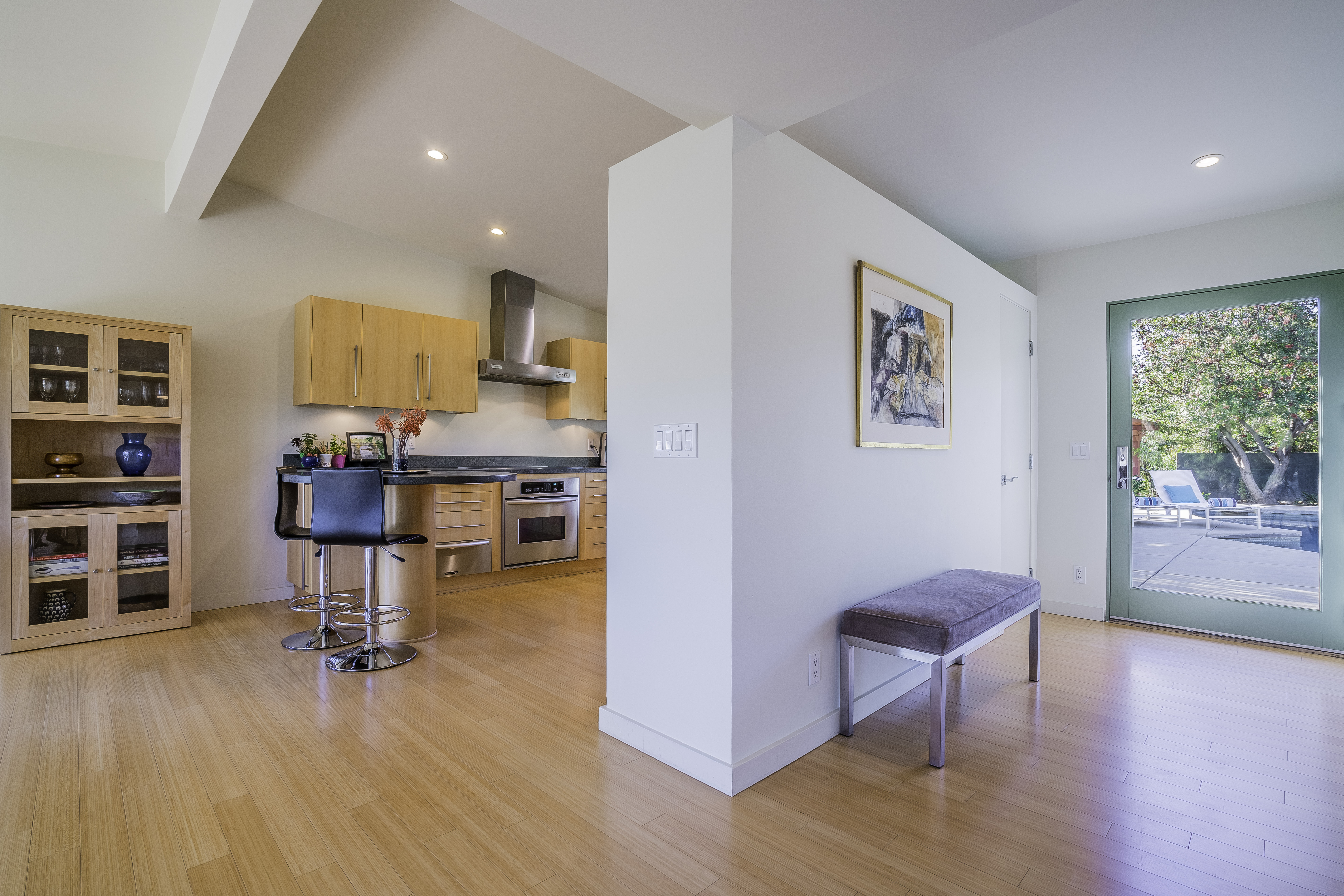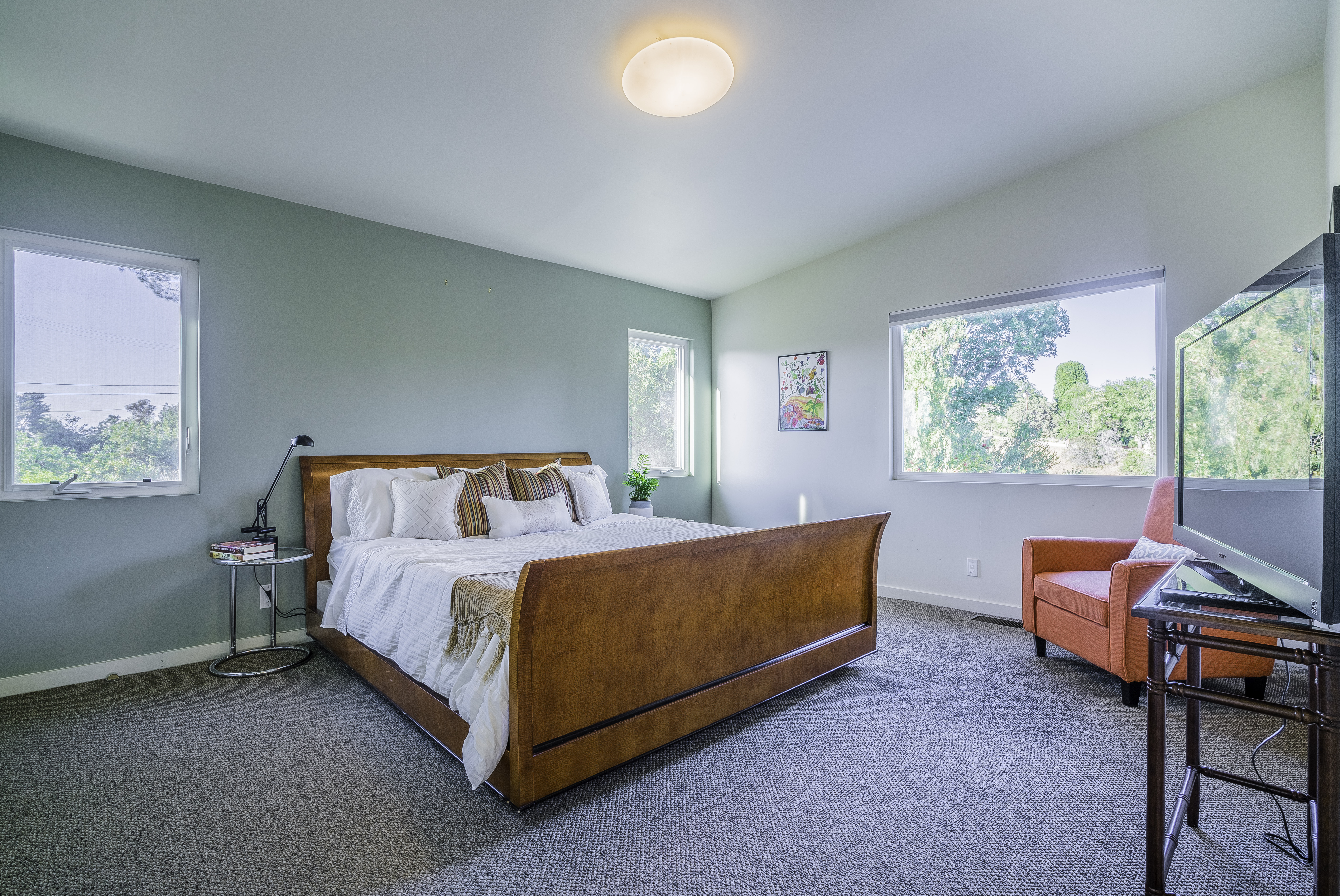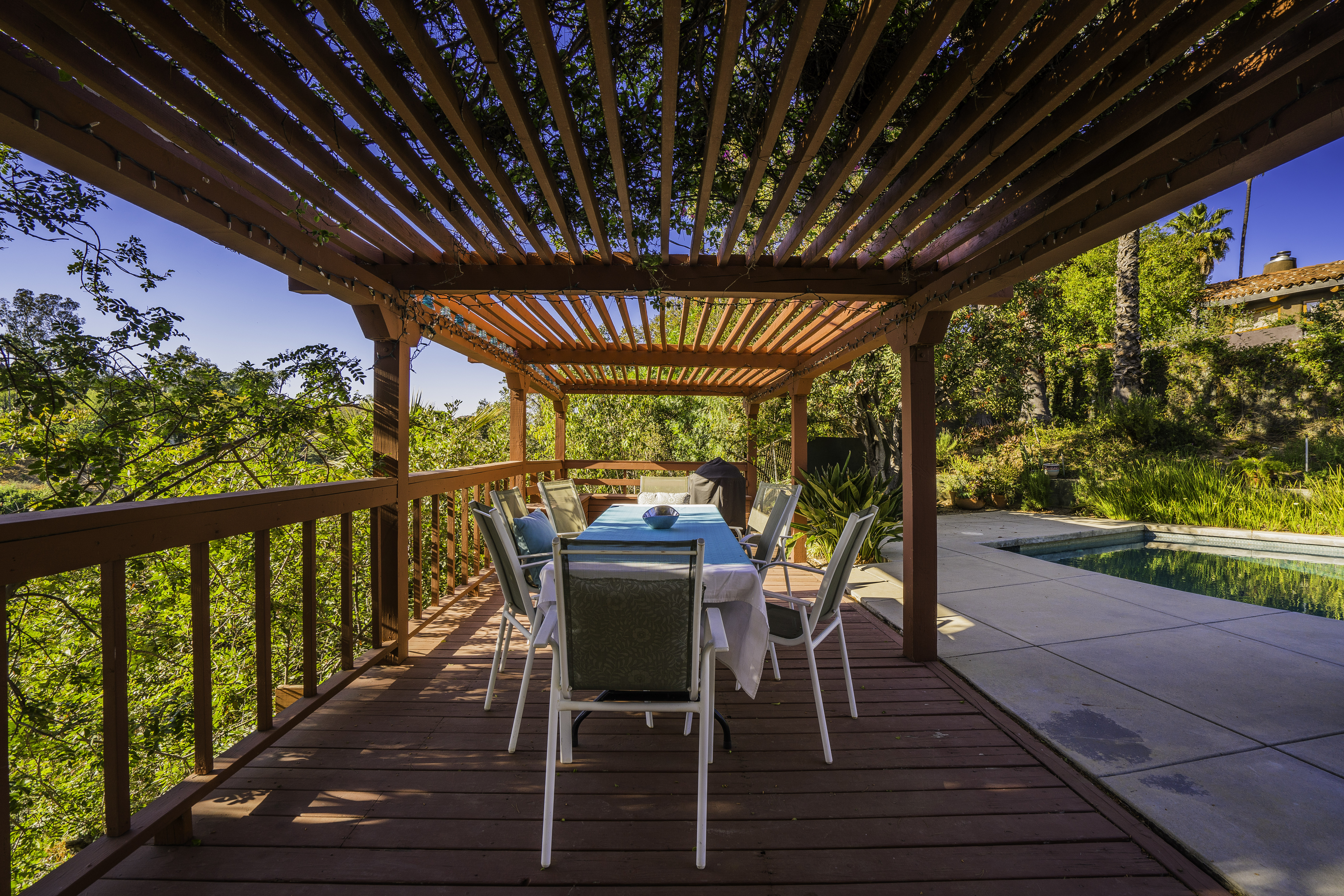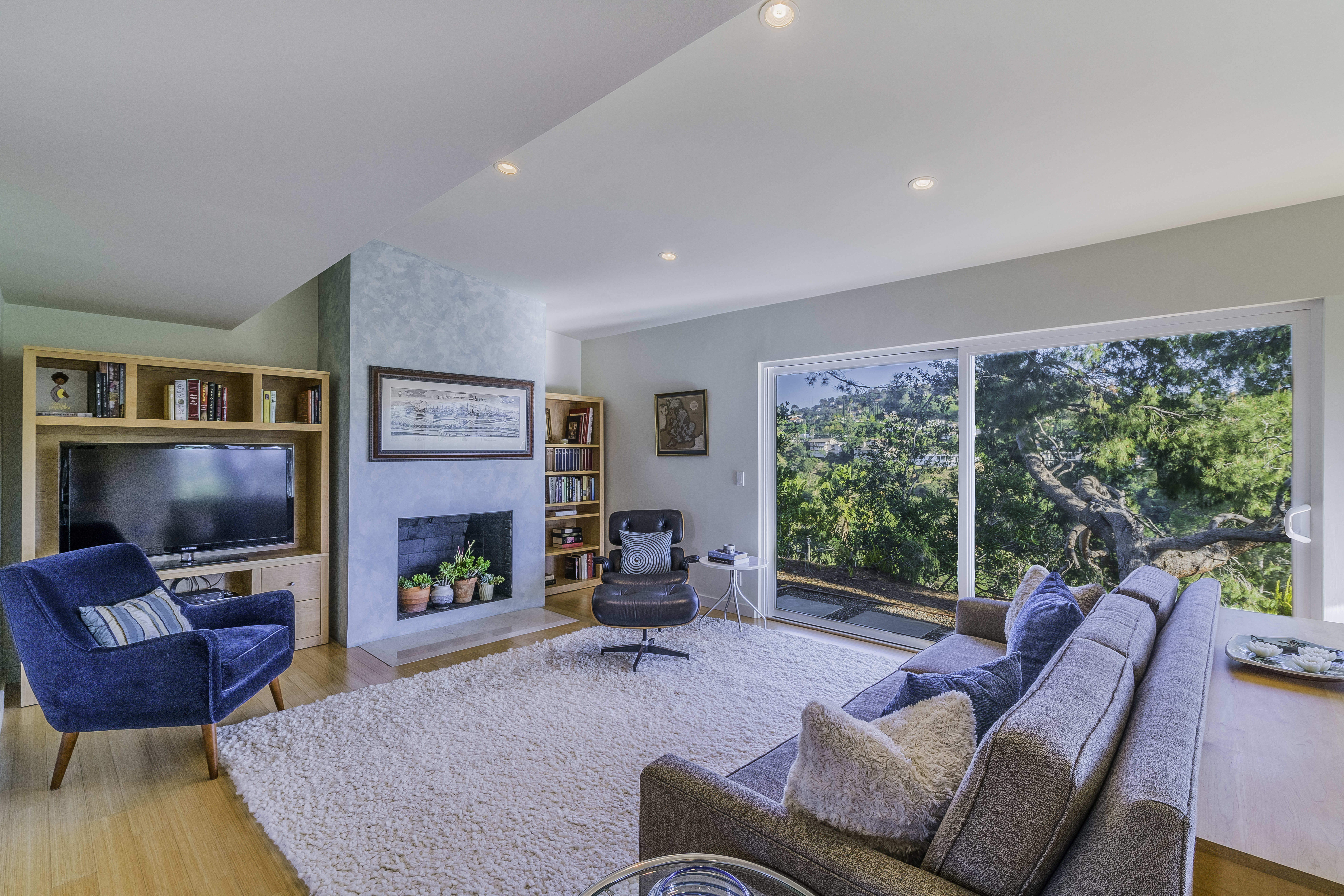 Nestled among the trees, off a serene cul-de-sac, this stunning modern-view home sits in the forest-like hills of Studio City. As you enter the property through the privacy gate, you are greeted by the sparkling pool, designer landscaping, spacious covered patio, and spectacular mountain views. The home's architecture perfectly compliments the outdoors, infusing the interior with an abundance of natural light which highlights the home's sleek styling. The first floor offers high ceilings and open-concept living, seamlessly connecting the updated kitchen, dining room, and living room with walls of sliding glass doors that offer stunning views of the surrounding hills and allow in the cooling, fresh mountain breeze in the afternoon. Downstairs are three bedrooms and an office. Upstairs, the spacious master bedroom features a beautifully updated master bath with natural limestone surfaces. The additional bedroom upstairs is perfect for a child's bedroom, guest room, studio, or office space. The liberal use of glass throughout the home ensures 360-degree views of the entire area. Located in the highly desired Carpenter Avenue School District, and only moments away from all of the Studio City "hot spots," Fryman Canyon hiking trails and the Westside. This unique property won't last long.