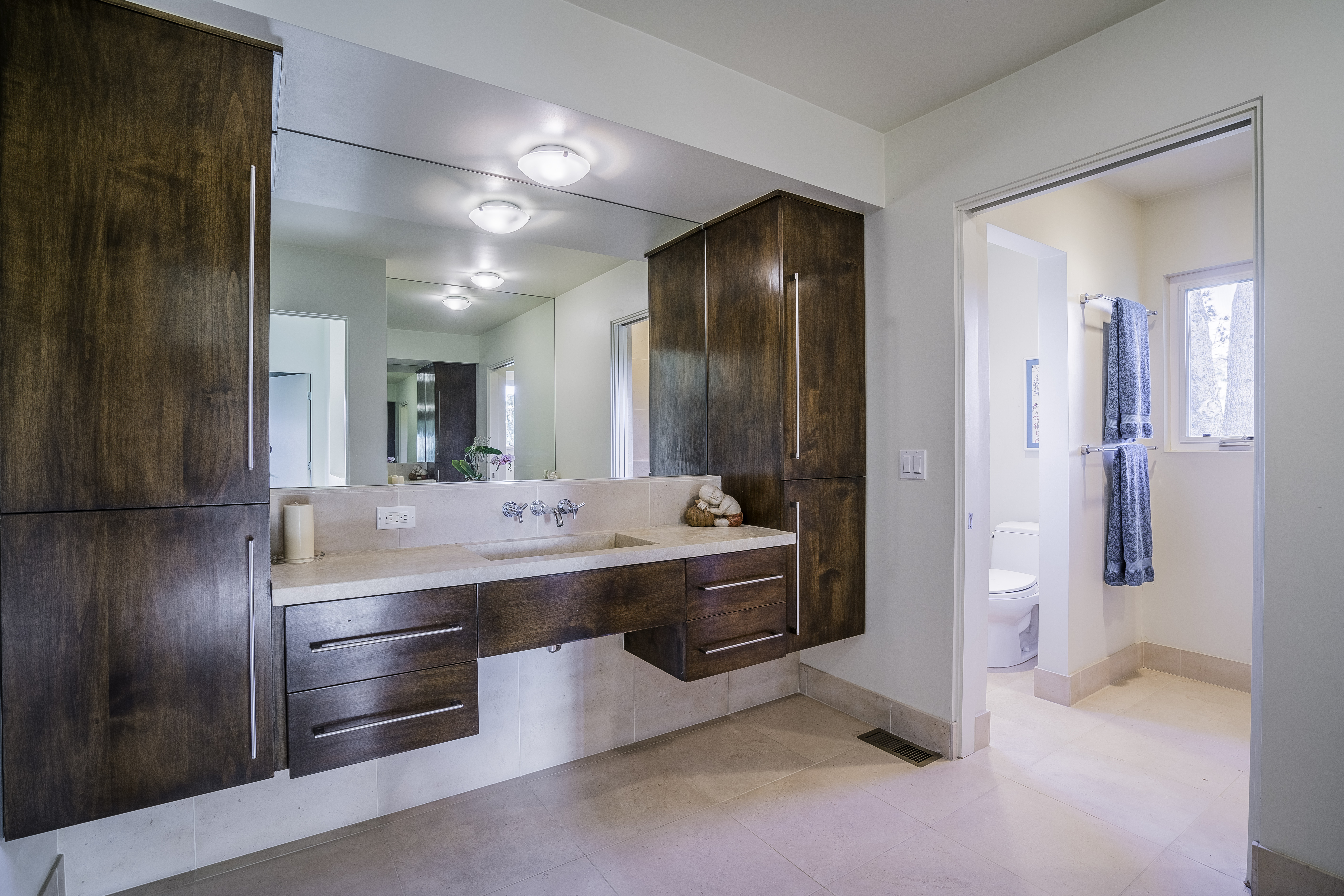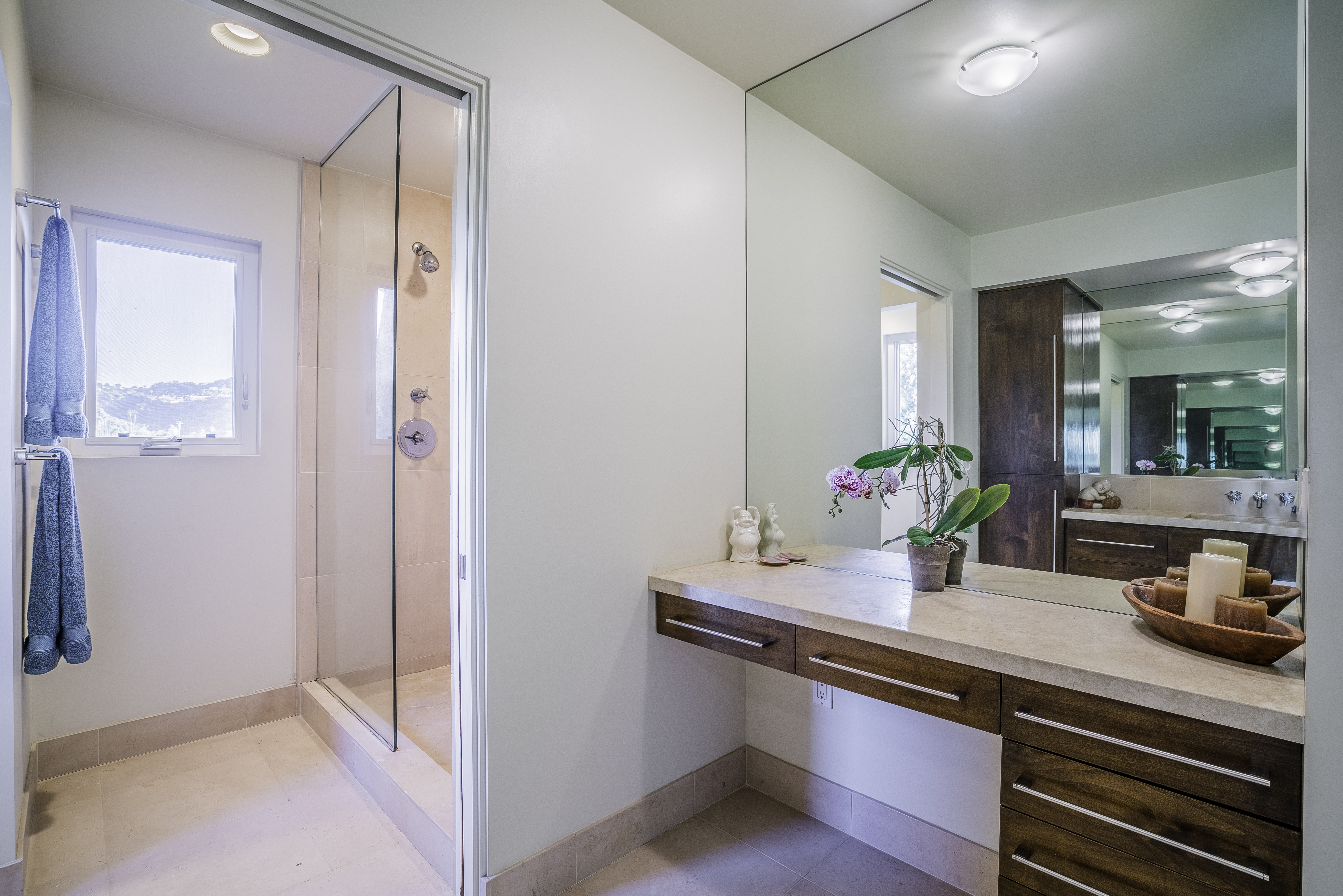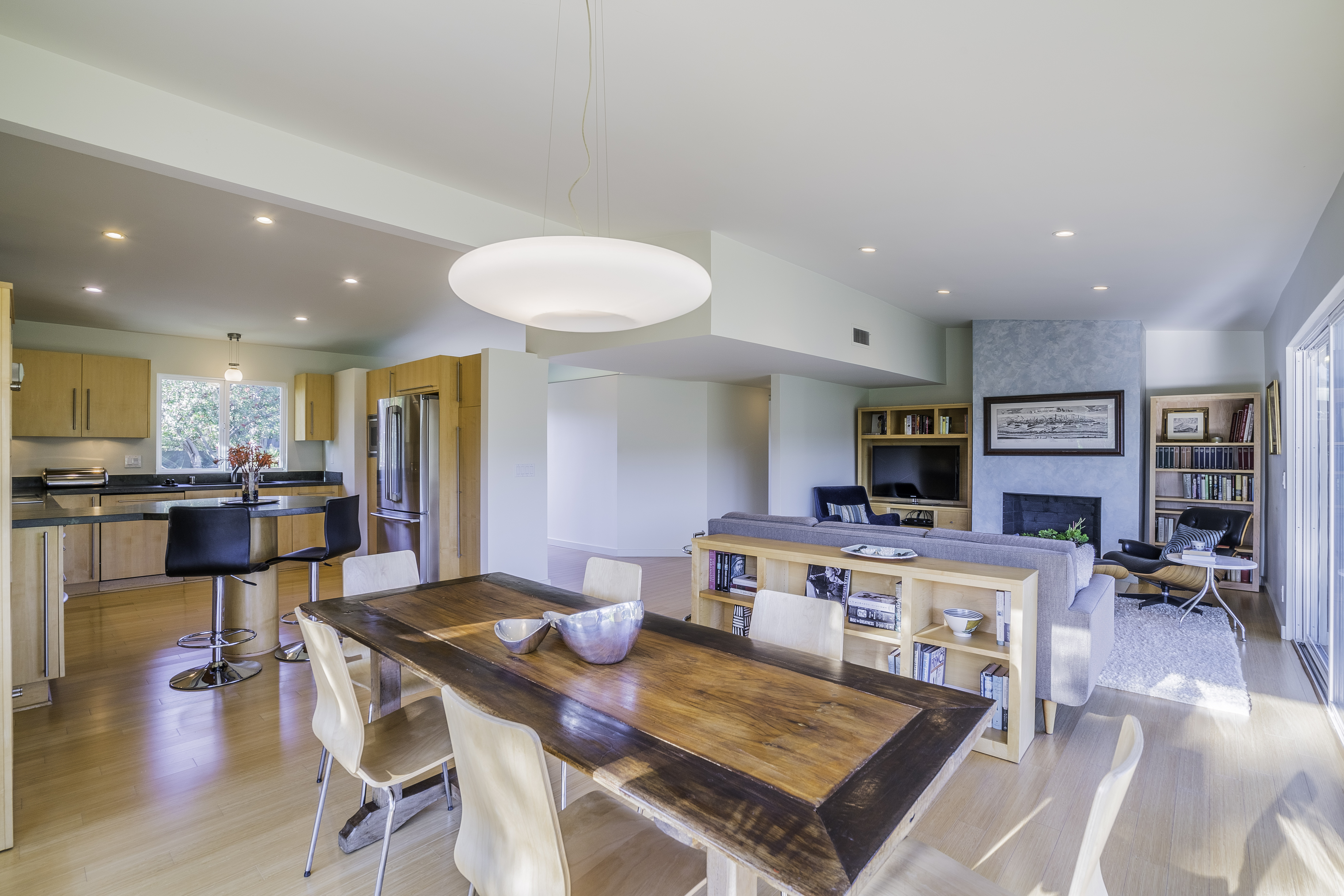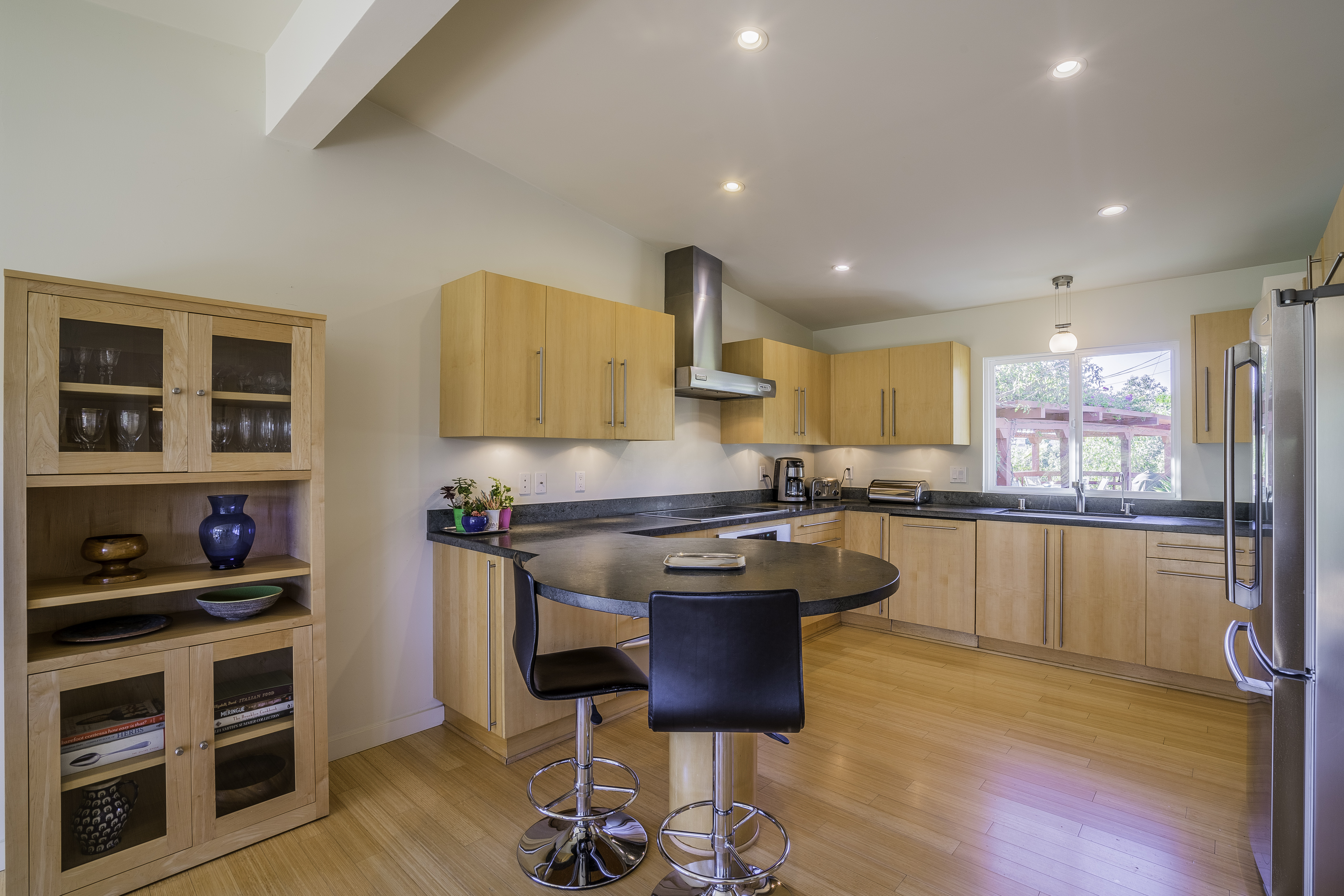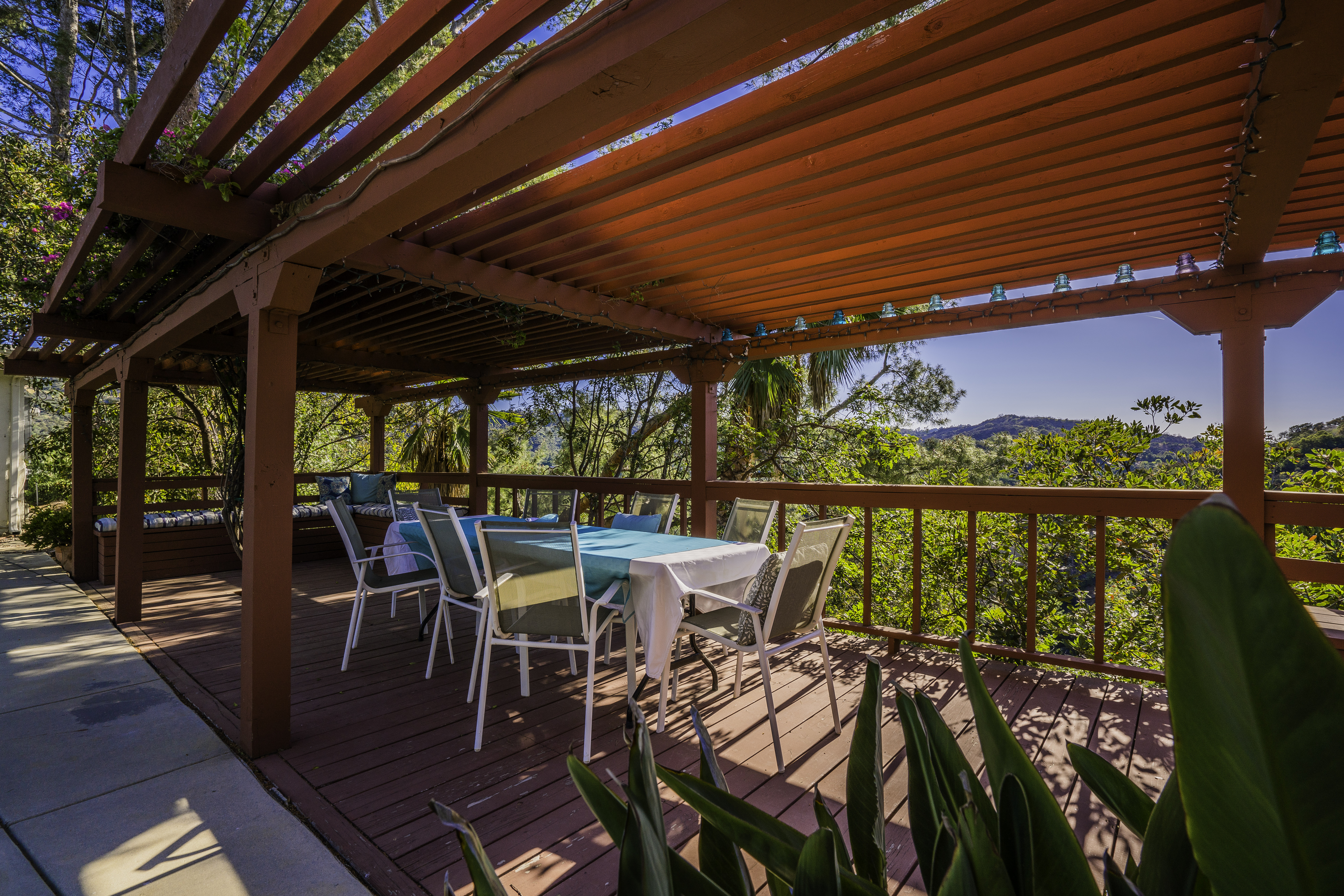 Nestled among the trees, off a serene cul-de-sac, this stunning modern-view home sits in the forest-like hills of Studio City. As you enter the property through the privacy gate, you are greeted by the sparkling pool, designer landscaping, spacious covered patio, and spectacular mountain views. The home's architecture perfectly compliments the outdoors, infusing the interior with an abundance of natural light which highlights the home's sleek styling. The first floor offers high ceilings and open-concept living, seamlessly connecting the updated kitchen, dining room, and living room with walls of sliding glass doors that offer stunning views of the surrounding hills and allow in the cooling, fresh mountain breeze in the afternoon. Downstairs are three bedrooms and an office. Upstairs, the spacious master bedroom features a beautifully updated master bath with natural limestone surfaces. The additional bedroom upstairs is perfect for a child's bedroom, guest room, studio, or office space. The liberal use of glass throughout the home ensures 360-degree views of the entire area. Located in the highly desired Carpenter Avenue School District, and only moments away from all of the Studio City "hot spots," Fryman Canyon hiking trails and the Westside. This unique property won't last long.