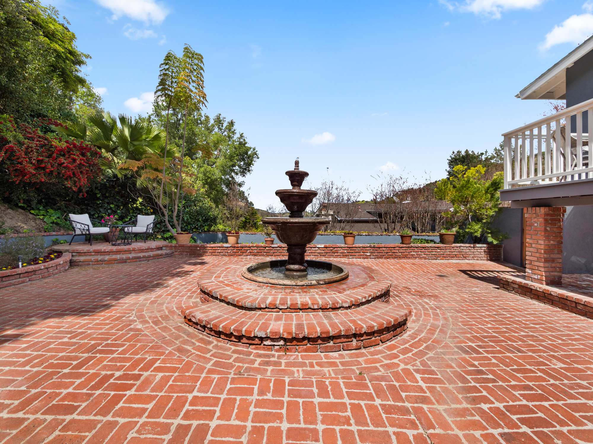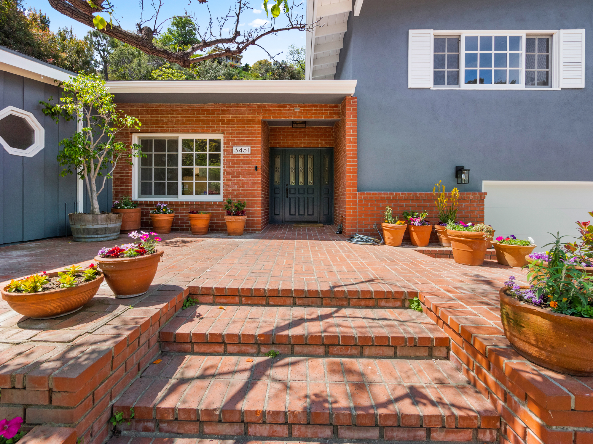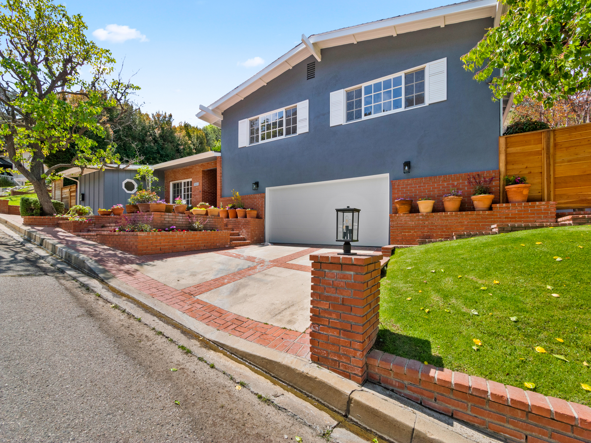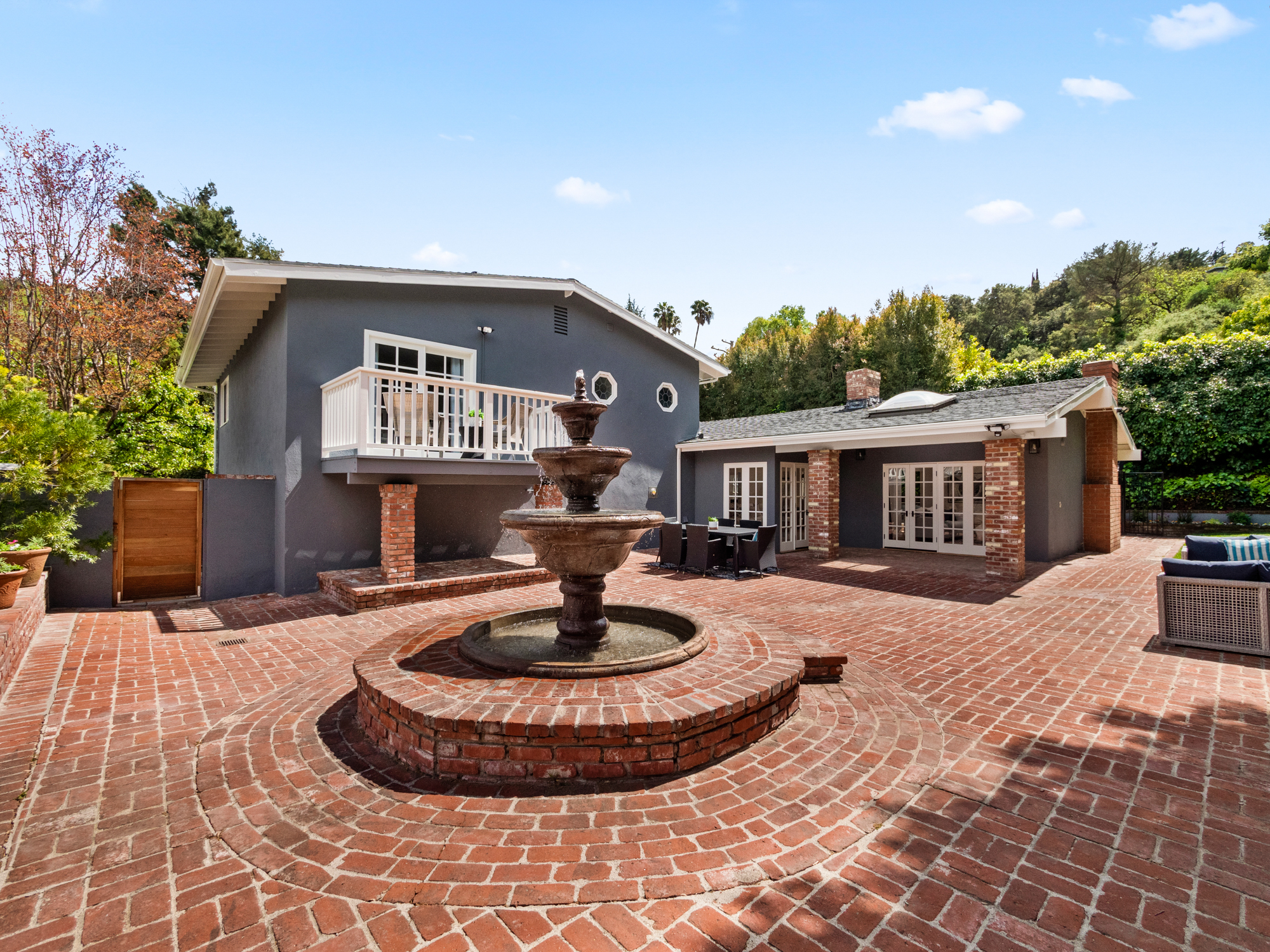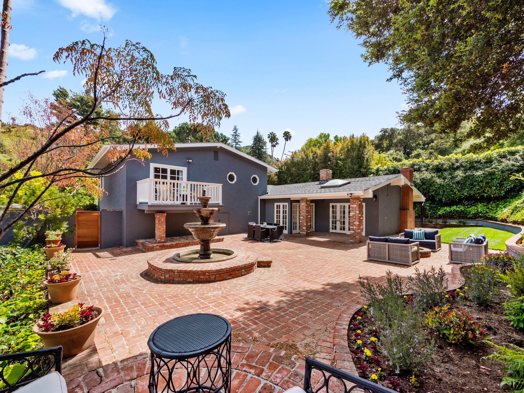Lying on a quiet cul-de-sac in the hills of Sherman Oaks, this recently remodeled home is your refuge from the noise and traffic of LA. Upon entering, you are greeted by an expansive great room with vaulted ceilings, hardwood floors, and a beautiful tiled fireplace. The room is wired for surround sound for entertaining and can double as a home theater. The dining area is illuminated by large windows and a modern chandelier, with enough room to host large dinner parties and family meals. The chef’s kitchen features vaulted ceilings, quartz countertops, Carrara marble backsplash, top-of-the line appliances, and a breakfast nook with doors that open to a secluded patio. A large family room with high ceilings and skylights features a wood-burning fireplace and direct access to the backyard. An additional room on the first floor could be used as an office, guest room, or playroom. Upstairs, the master suite features a spacious balcony offering wonderful views of the mountains and lush backyard. Two additional upstairs bedrooms share a remodeled bath with dual sinks. The second floor also includes convenient upstairs laundry. The backyard features stunning mountain views, a bubbling fountain, multiple seating areas, and grass for kids and pets alike. Wine lovers will appreciate the climate controlled wine cellar in the garage. Conveniently located for easy Westside access, and with all the amenities you could want, this home is sure to go quick!