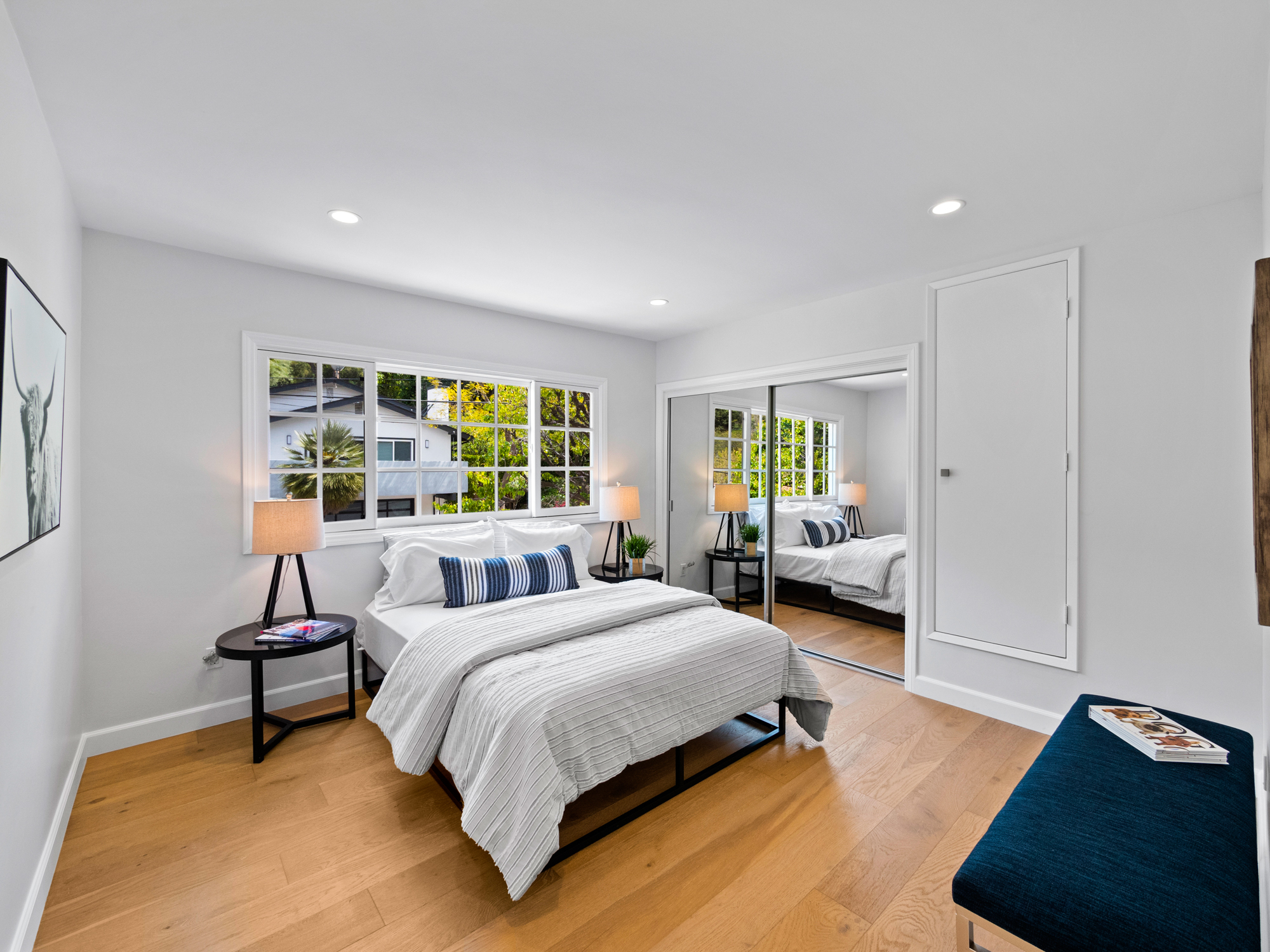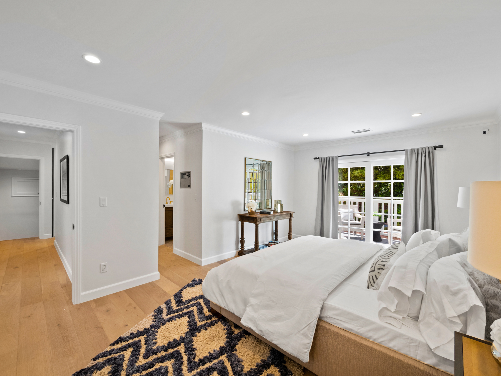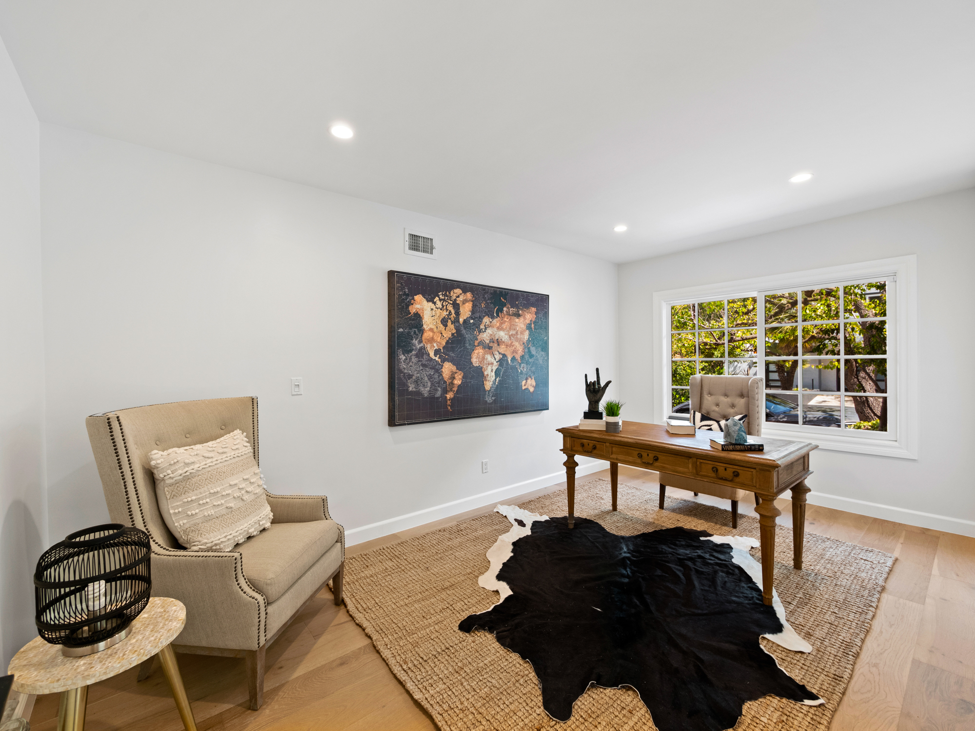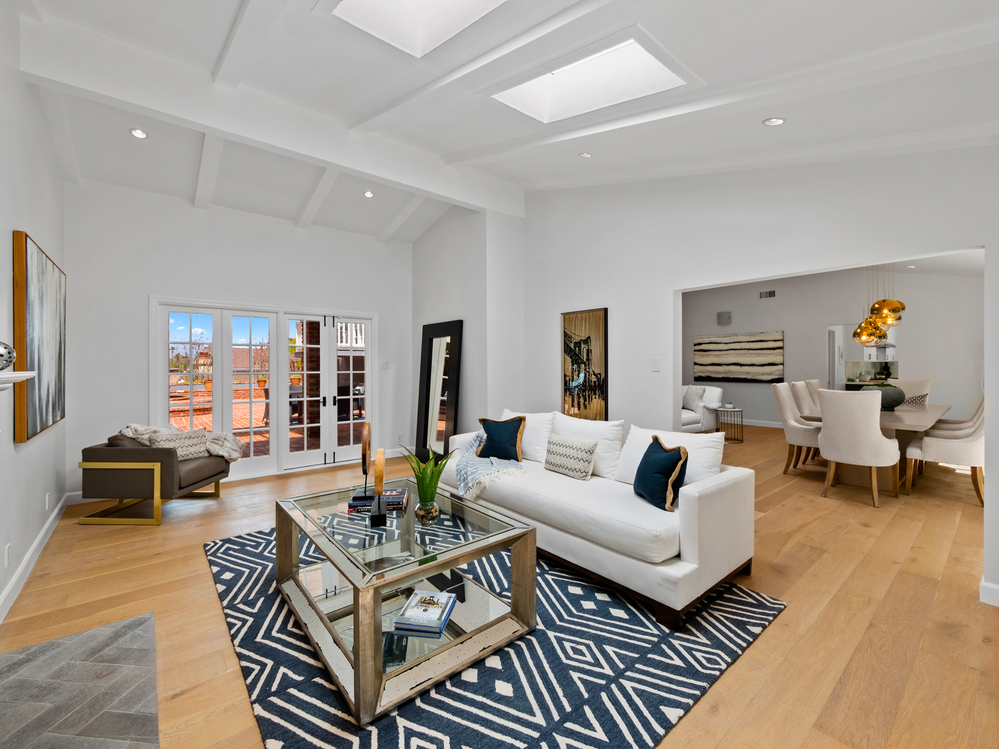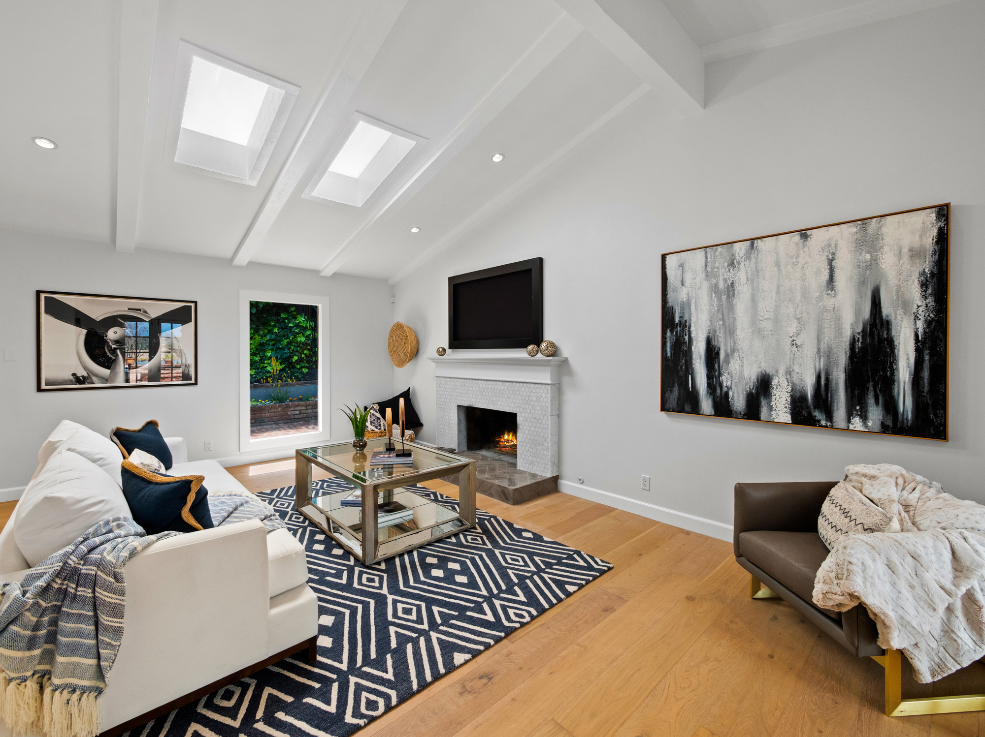 Lying on a quiet cul-de-sac in the hills of Sherman Oaks, this recently remodeled home is your refuge from the noise and traffic of LA. Upon entering, you are greeted by an expansive great room with vaulted ceilings, hardwood floors, and a beautiful tiled fireplace. The room is wired for surround sound for entertaining and can double as a home theater. The dining area is illuminated by large windows and a modern chandelier, with enough room to host large dinner parties and family meals. The chef’s kitchen features vaulted ceilings, quartz countertops, Carrara marble backsplash, top-of-the line appliances, and a breakfast nook with doors that open to a secluded patio. A large family room with high ceilings and skylights features a wood-burning fireplace and direct access to the backyard. An additional room on the first floor could be used as an office, guest room, or playroom. Upstairs, the master suite features a spacious balcony offering wonderful views of the mountains and lush backyard. Two additional upstairs bedrooms share a remodeled bath with dual sinks. The second floor also includes convenient upstairs laundry. The backyard features stunning mountain views, a bubbling fountain, multiple seating areas, and grass for kids and pets alike. Wine lovers will appreciate the climate controlled wine cellar in the garage. Conveniently located for easy Westside access, and with all the amenities you could want, this home is sure to go quick!