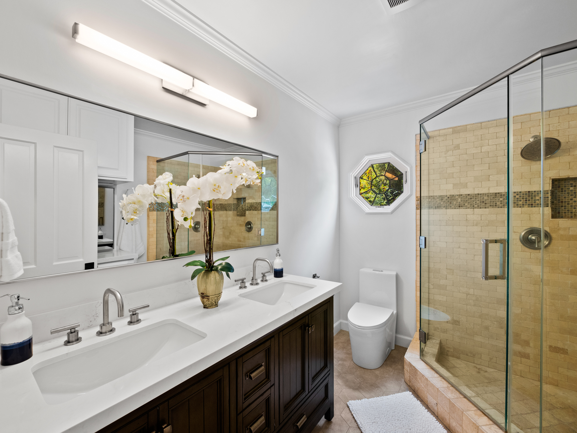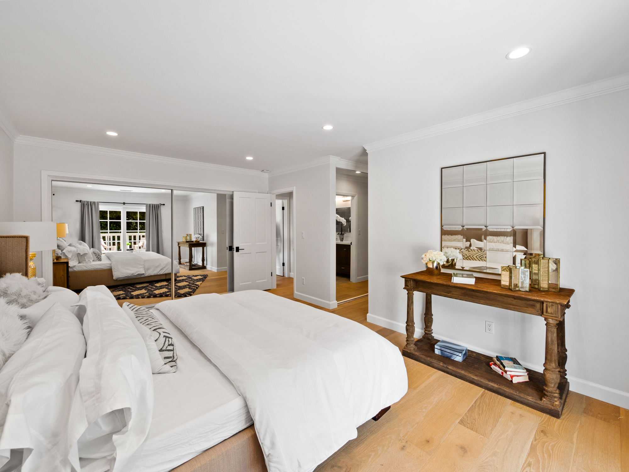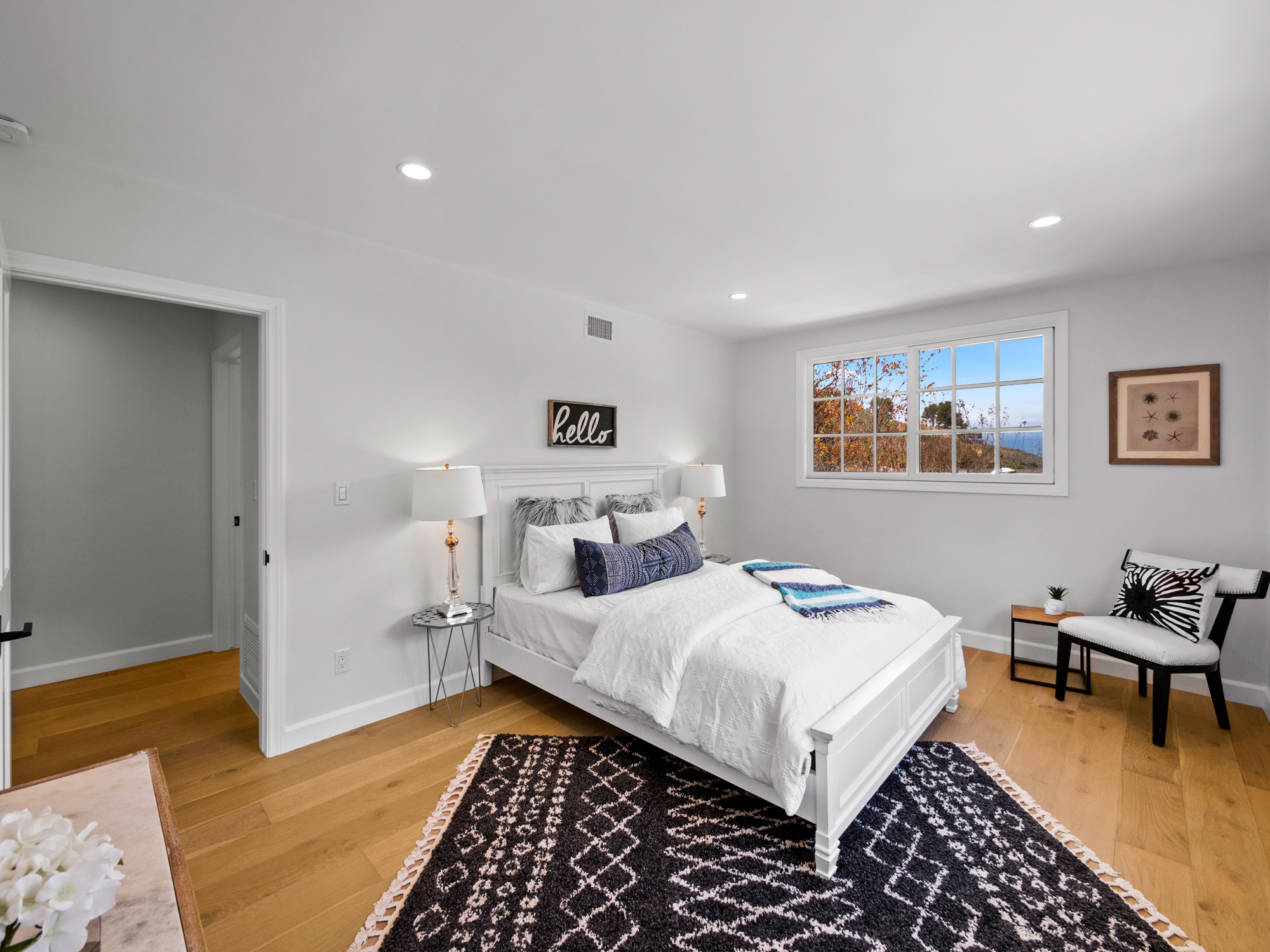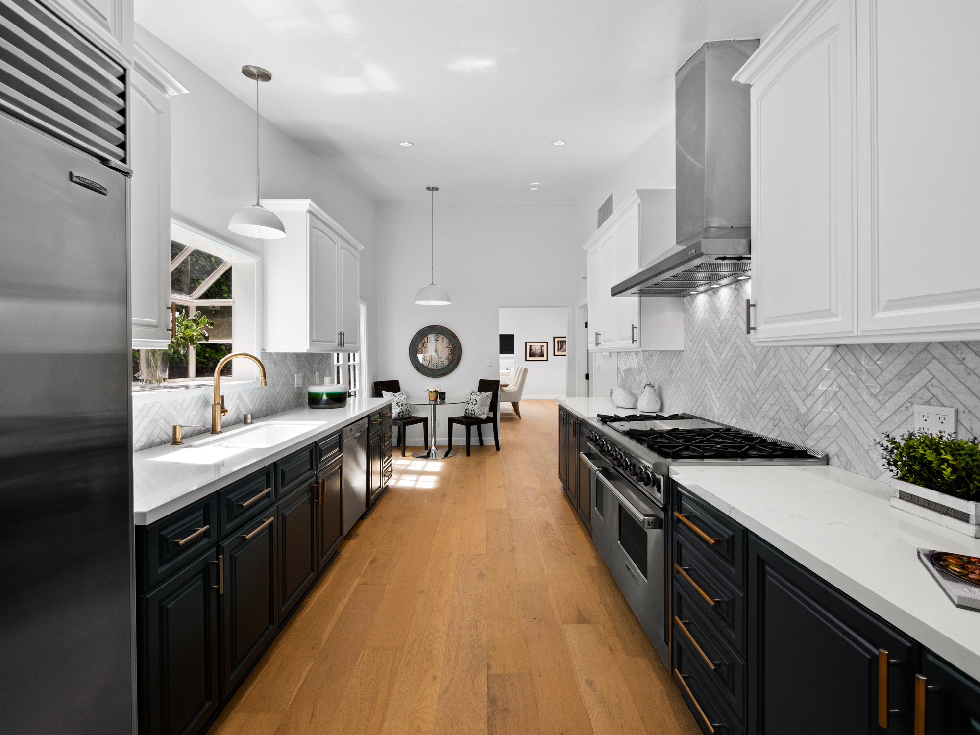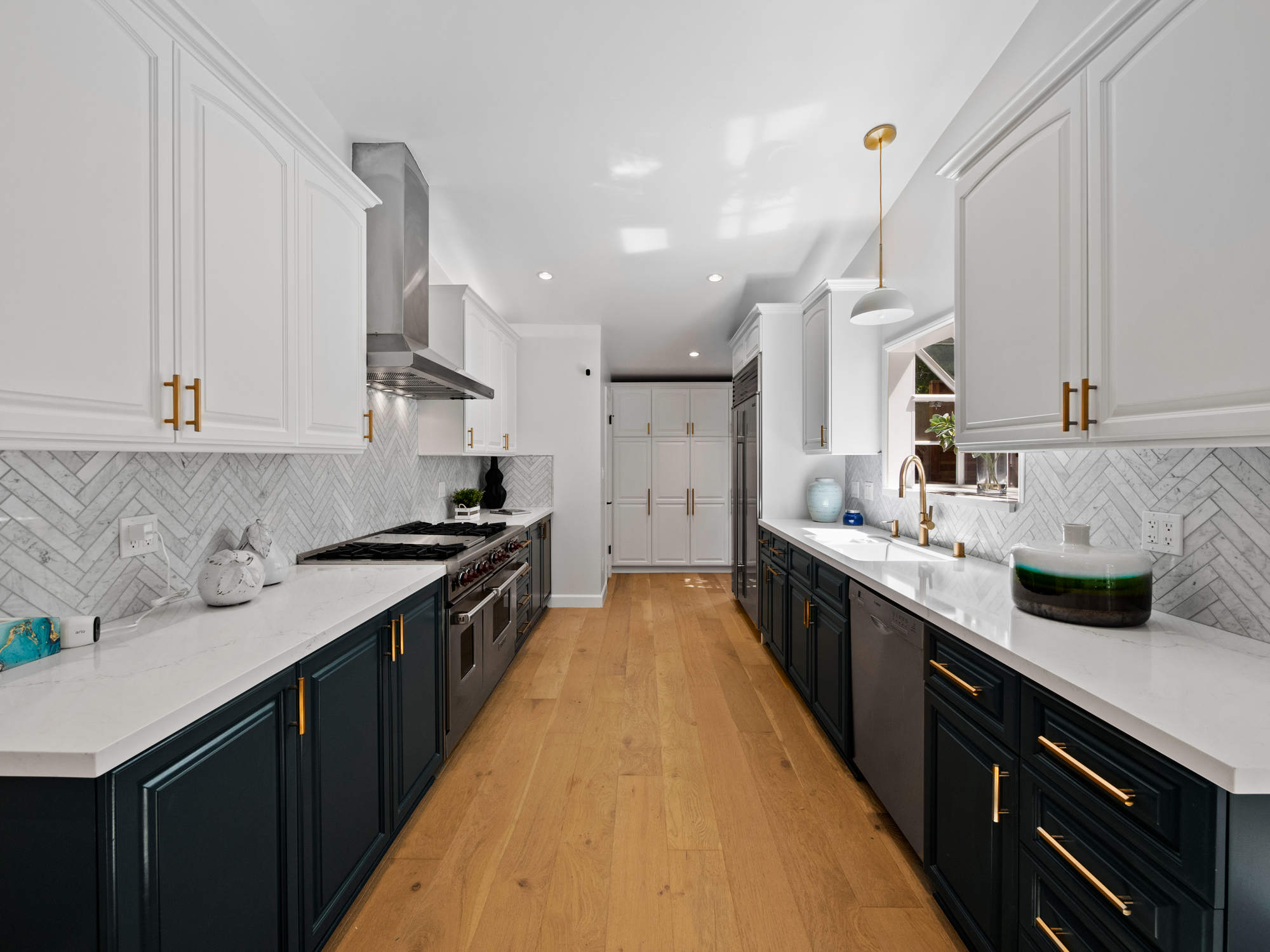 Lying on a quiet cul-de-sac in the hills of Sherman Oaks, this recently remodeled home is your refuge from the noise and traffic of LA. Upon entering, you are greeted by an expansive great room with vaulted ceilings, hardwood floors, and a beautiful tiled fireplace. The room is wired for surround sound for entertaining and can double as a home theater. The dining area is illuminated by large windows and a modern chandelier, with enough room to host large dinner parties and family meals. The chef’s kitchen features vaulted ceilings, quartz countertops, Carrara marble backsplash, top-of-the line appliances, and a breakfast nook with doors that open to a secluded patio. A large family room with high ceilings and skylights features a wood-burning fireplace and direct access to the backyard. An additional room on the first floor could be used as an office, guest room, or playroom. Upstairs, the master suite features a spacious balcony offering wonderful views of the mountains and lush backyard. Two additional upstairs bedrooms share a remodeled bath with dual sinks. The second floor also includes convenient upstairs laundry. The backyard features stunning mountain views, a bubbling fountain, multiple seating areas, and grass for kids and pets alike. Wine lovers will appreciate the climate controlled wine cellar in the garage. Conveniently located for easy Westside access, and with all the amenities you could want, this home is sure to go quick!