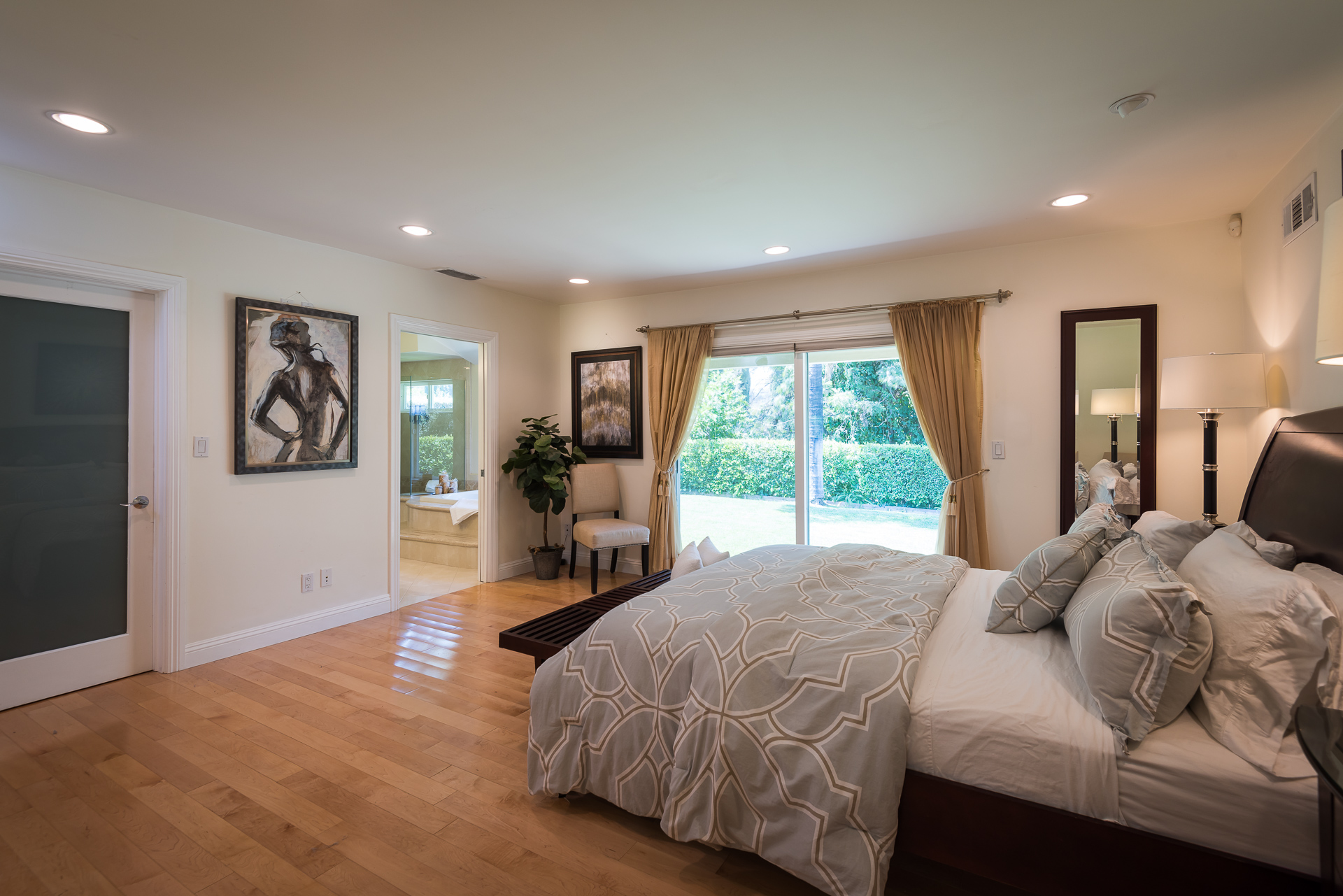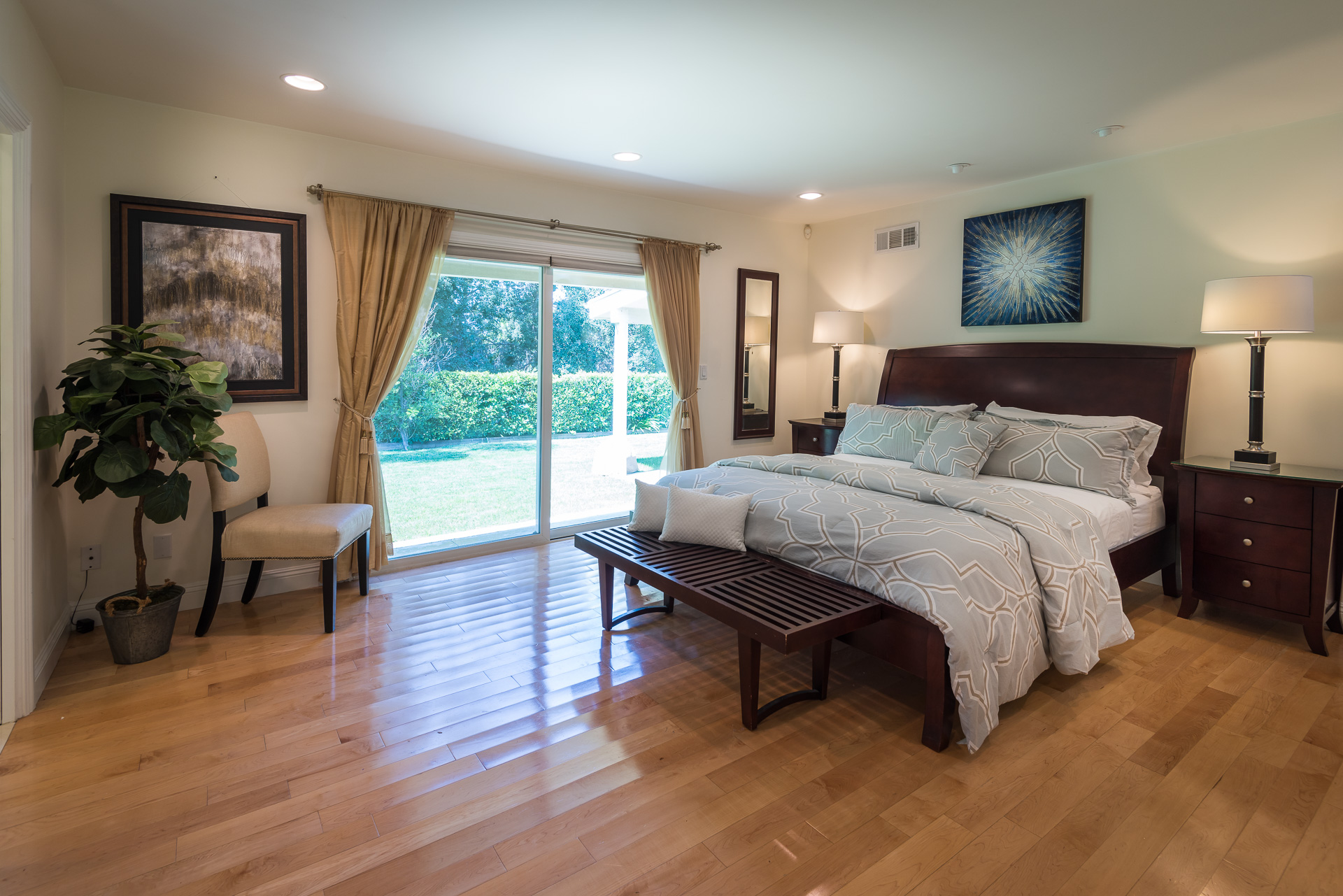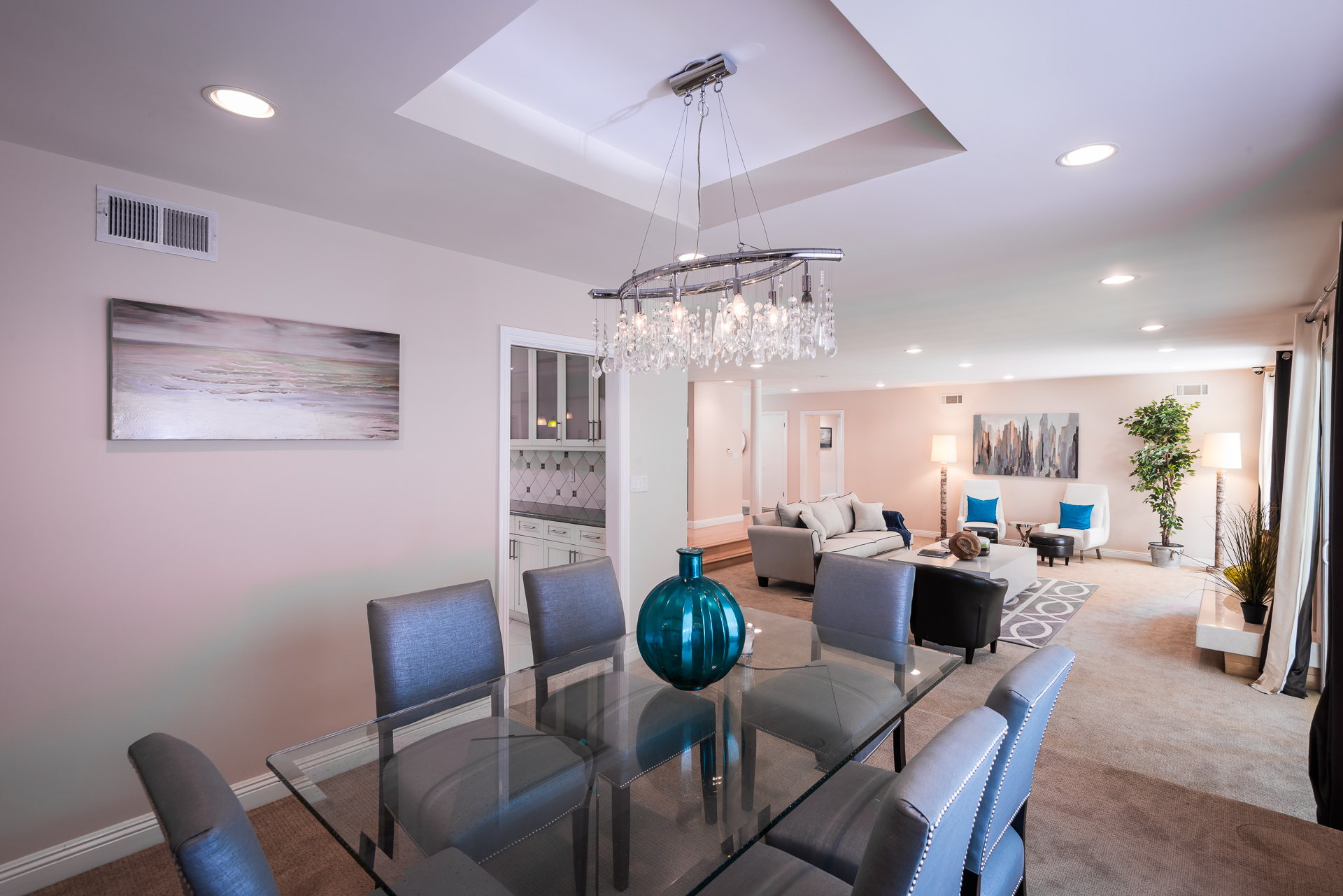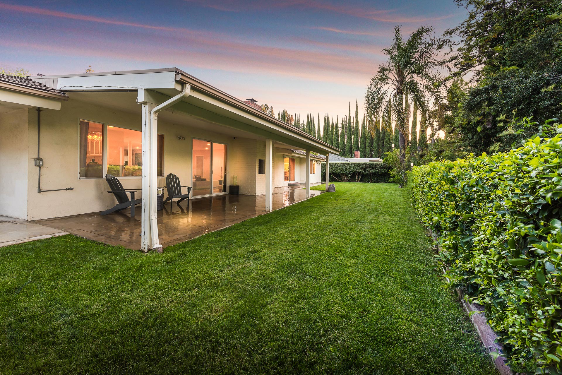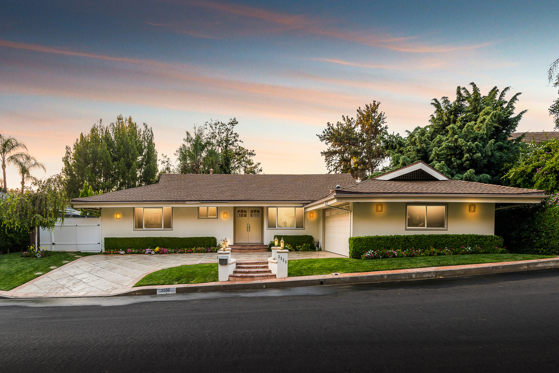 This single-level, open-floor-plan, South of the Blvd. home, is located on a quiet and peaceful street in the prime Royal Woods area of Sherman Oaks conveniently close to Mulholland Drive,101 and the 405 freeways. This house is fully updated and move-in-ready. Your home features a Double Door entry that takes you right into a spacious step down living room, perfect for hosting parties. A Cozy family room flows into the large updated kitchen with designer tile and amenities. You will be drawn outside through the double sliding-glass-doors that looks out into the green landscape and shows off a tree-lined mountain view. Relax and enjoy the lush greenery and landscaping in your yard while your shaded by the covered patio. Your 3 bedrooms are generously sized. The Master bedroom has "his & hers" walk-in-closets. All Bathrooms are large and updated. Numerous Windows throughout the home bring in an abundance of natural light. A Formal dining room area features classic fixtures. Great curb appeal and located within the highly sought after Hesby Oaks Elementary School district.