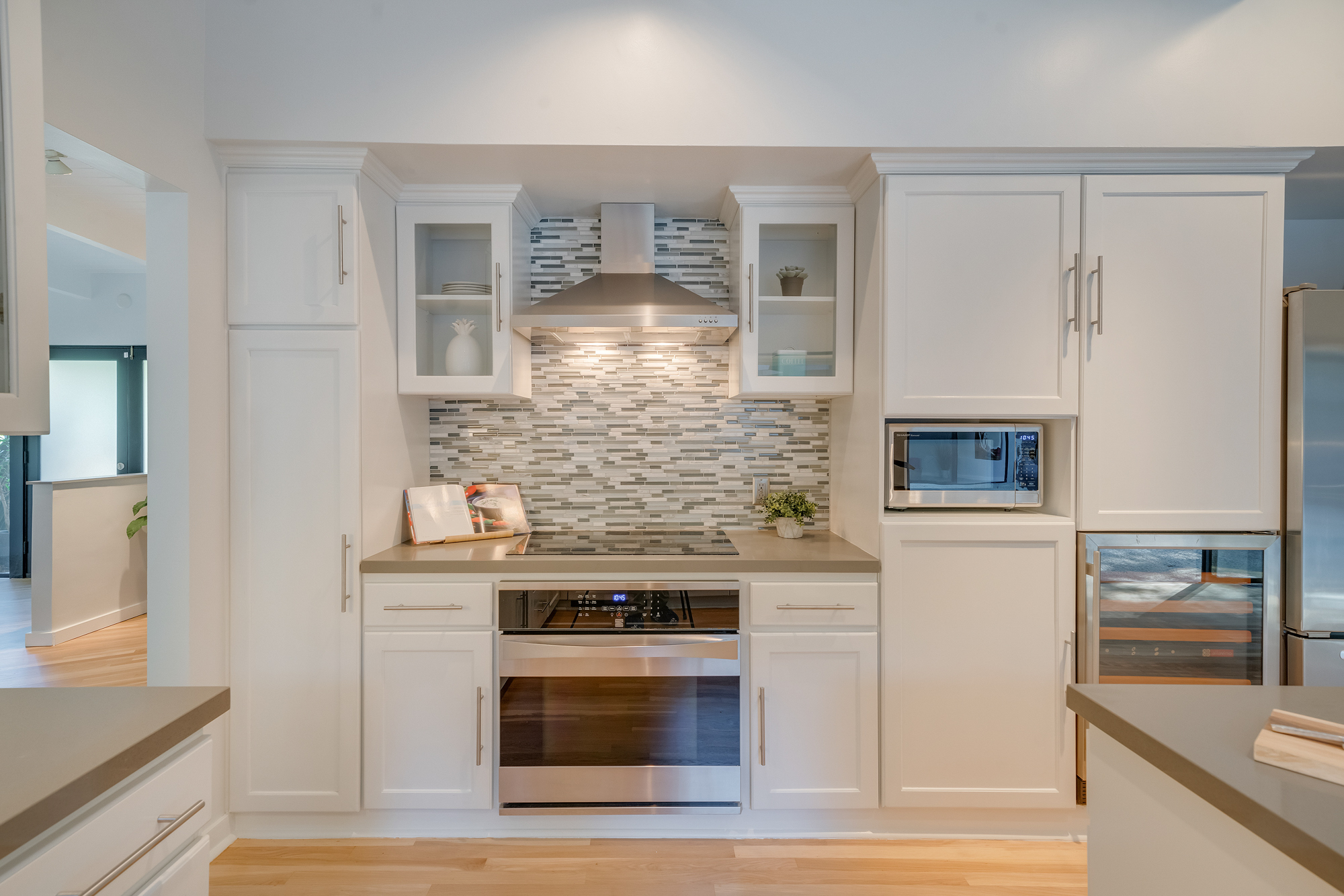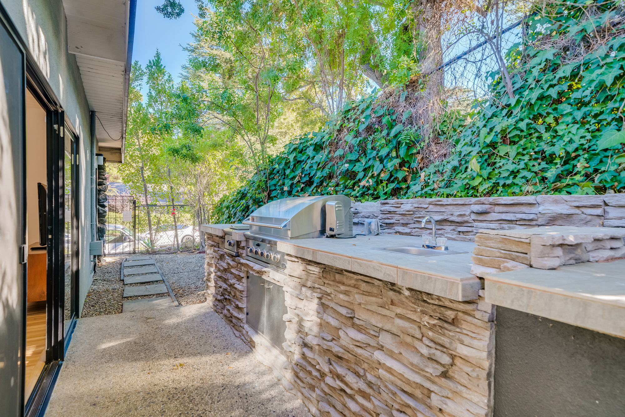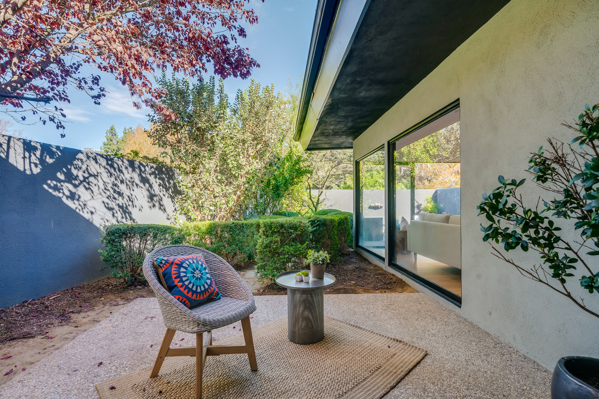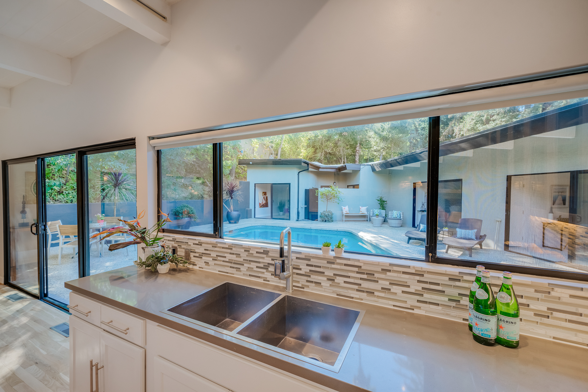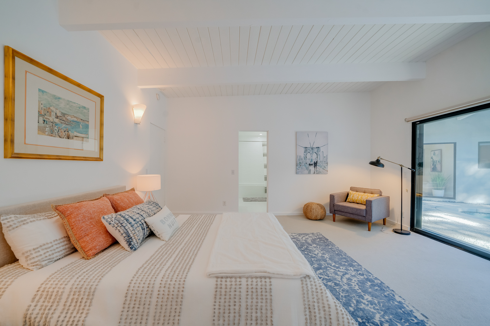 sparkling pool and fruit trees. This home has a hip & contemporary vibe with updated, custom kitchen & baths, 9’ exposed beam ceilings, 2 fireplaces, plentiful windows & sliding glass doors, solid hardwood flooring, & bonus room off the Master bed that can be used as a workout space, studio, & much more. Of note, numerous improvements have recently been performed making this home move-in ready, including installation of a new central security system, 200 amp electric, upgrades to the HVAC to enhance system performance, new lighting, closet systems, paint, hardwood floors newly refinished, & more. Dine, entertain family & friends, work from home, or simply relax inside or outdoors in a serene setting, with access to the large built-in bbq & poolside area from almost every room. This is a rare opportunity to own a beautiful and sizable 1-story home conveniently located to shops, restaurants, the Studios, & more, in a wonderful, family-friendly neighborhood on a desirable street, with easy access to the Westside, city, & Valley. Come see this home, it could be your dream home to enjoy & make happy memories in for years to come!