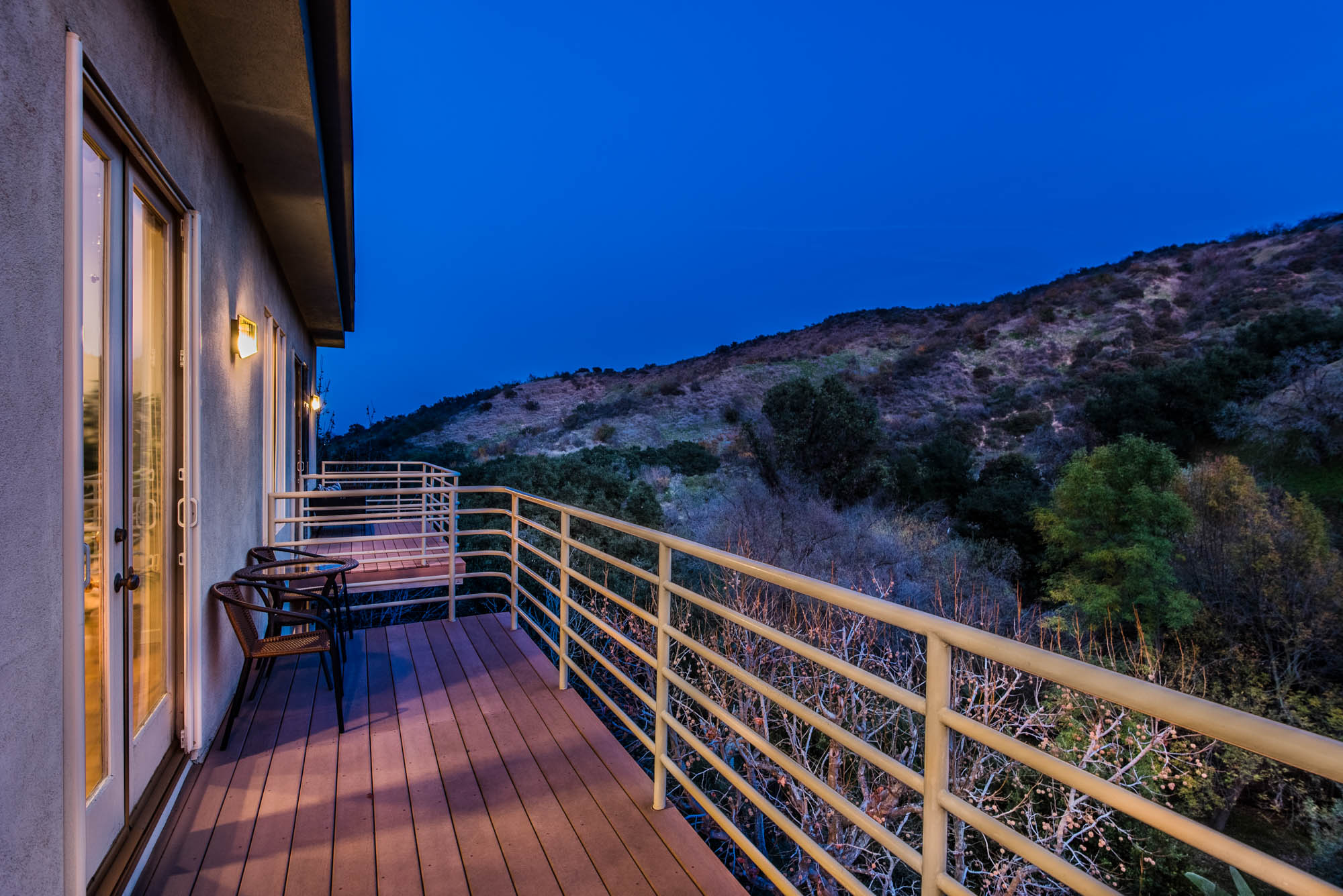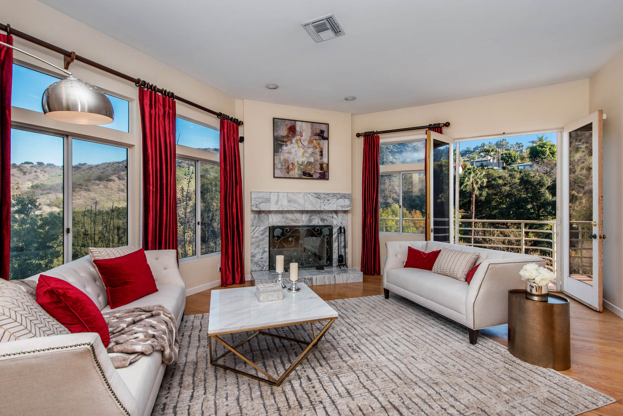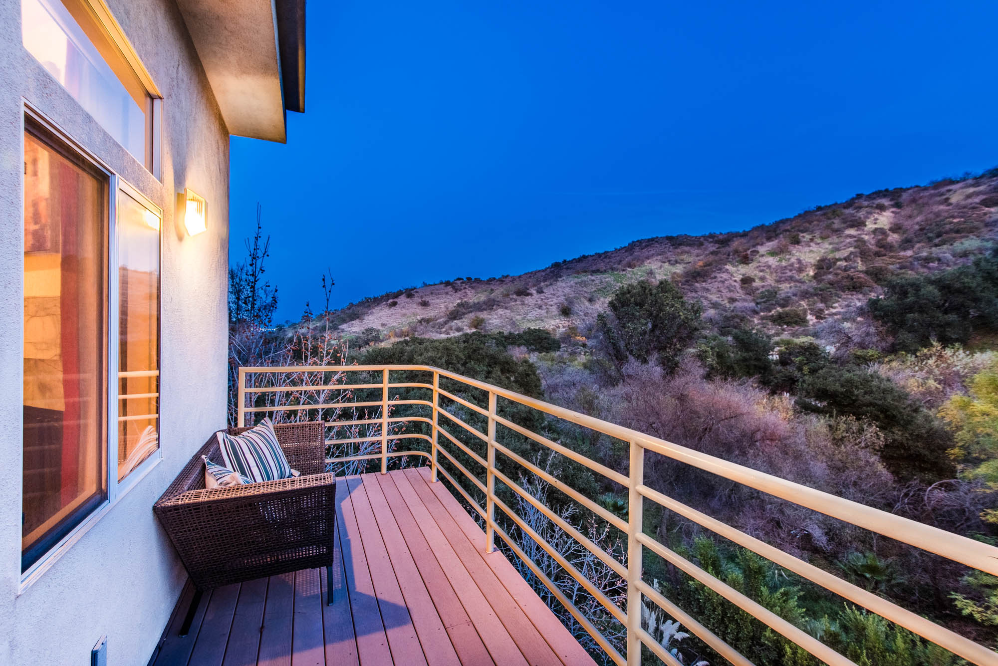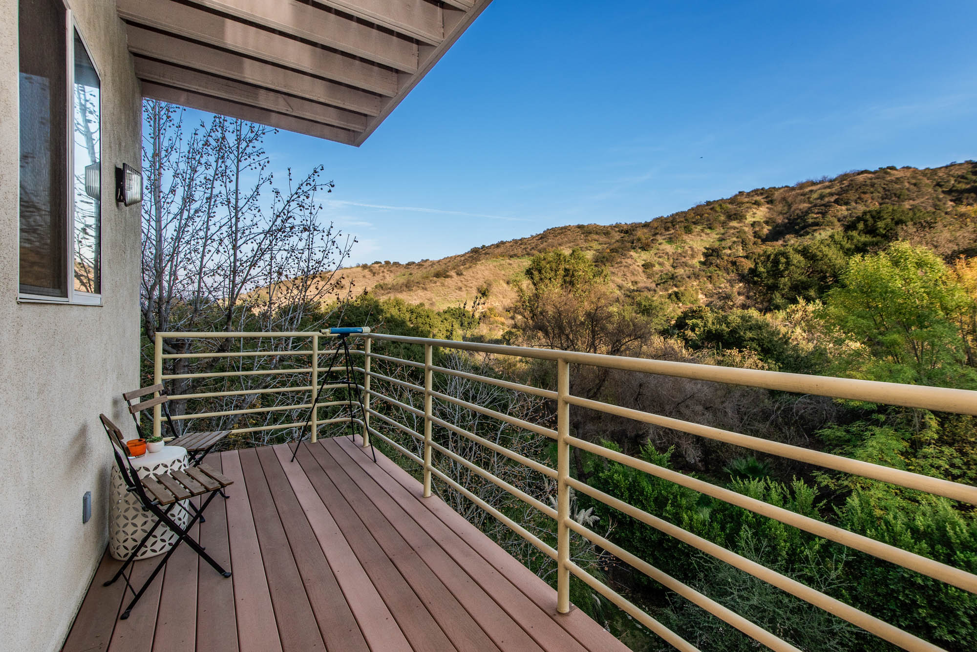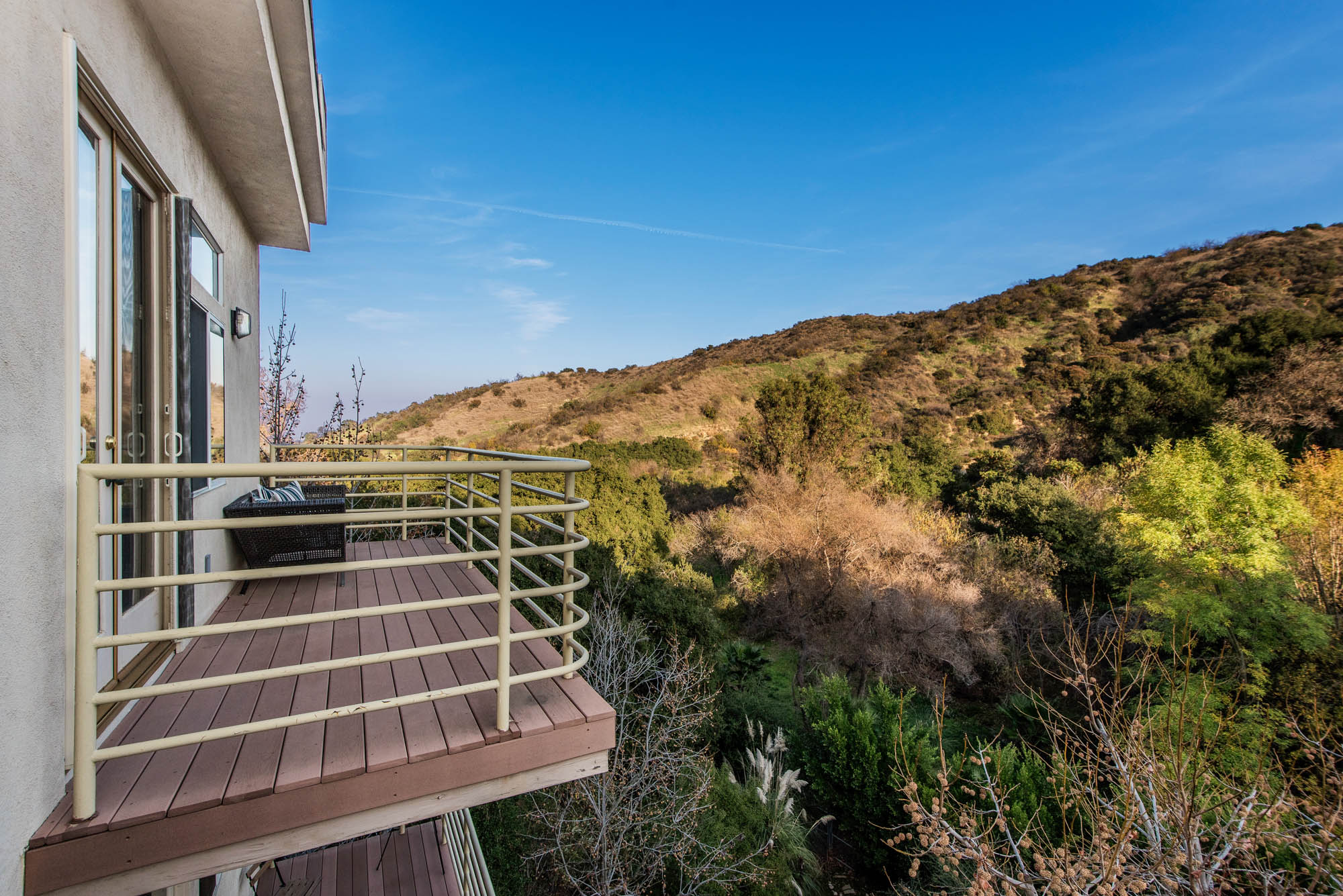 Located in the hills of Sherman Oaks is this private 4 bedroom, 4 bathroom home with mountain views from almost every room. Through the double doors, you’re greeted by an open concept living space. A wet bar off of the entrance features a wine fridge and barstool seating. Continuing into the home is the formal living room featuring a fireplace, high ceilings and tall windows which bring in an abundance of natural light. French doors open the living room to a private balcony with breathtaking nature views. The high ceilings continue into the dining room which is conveniently located off of the kitchen. The kitchen has a large center island with a built-in range and plenty of storage. The double sink looks out over the hills and a breakfast nook provides the perfect place for a quick meal. The grand master suite boasts more beautiful views and has the home’s second fireplace situated in its private sitting area. A large walk-in closet and bathroom with a walk-in shower and separate tub complete the suite. Also located on this floor are two additional bedrooms and the home's third bathroom. The lower level of the home has a spacious den ideal for movie and game nights. A well-sized private bedroom is perfect for hosting overnight guests. Off of the den is another balcony leading to the backyard. The tranquil zen garden with lush landscaping offers lots of grounds to explore. Additional features include solar panels, security system, individual laundry room, two-car garage, and access to public hiking trails!