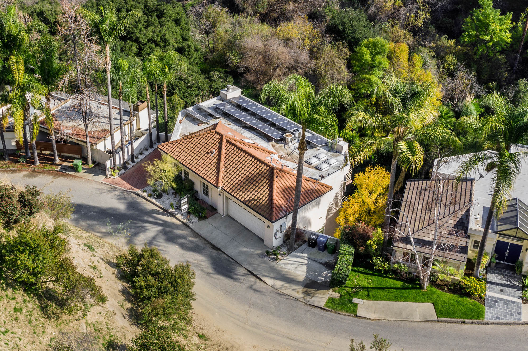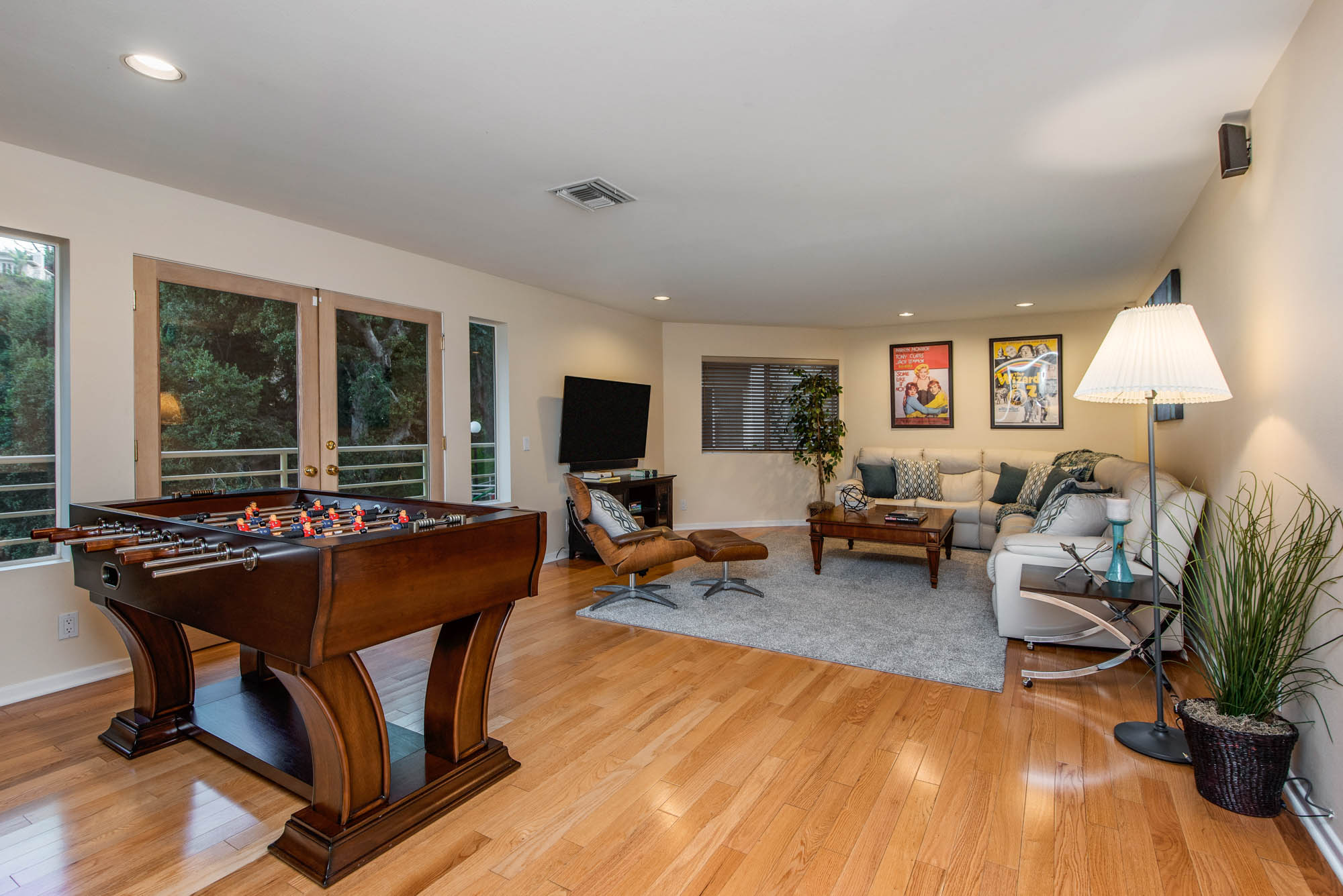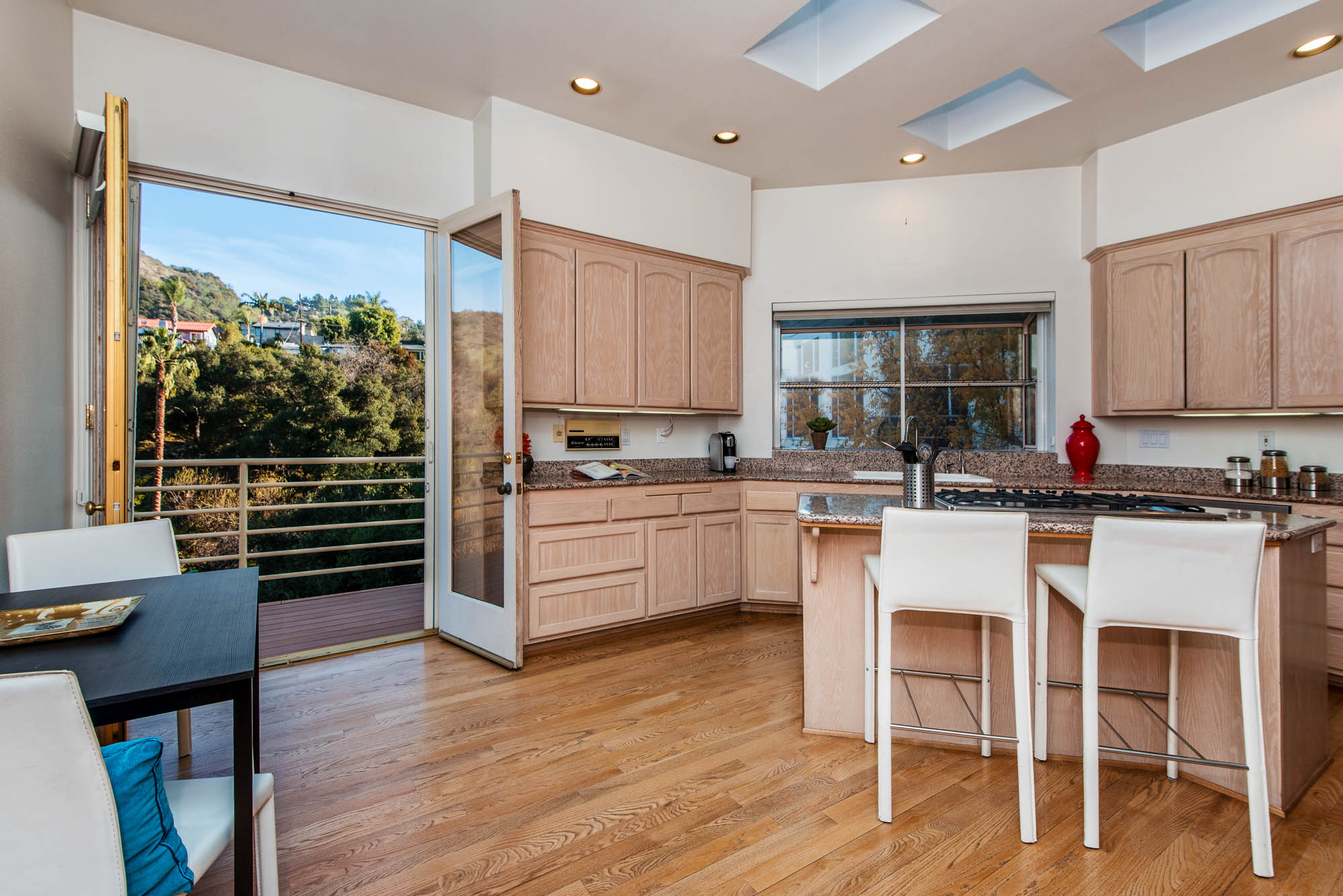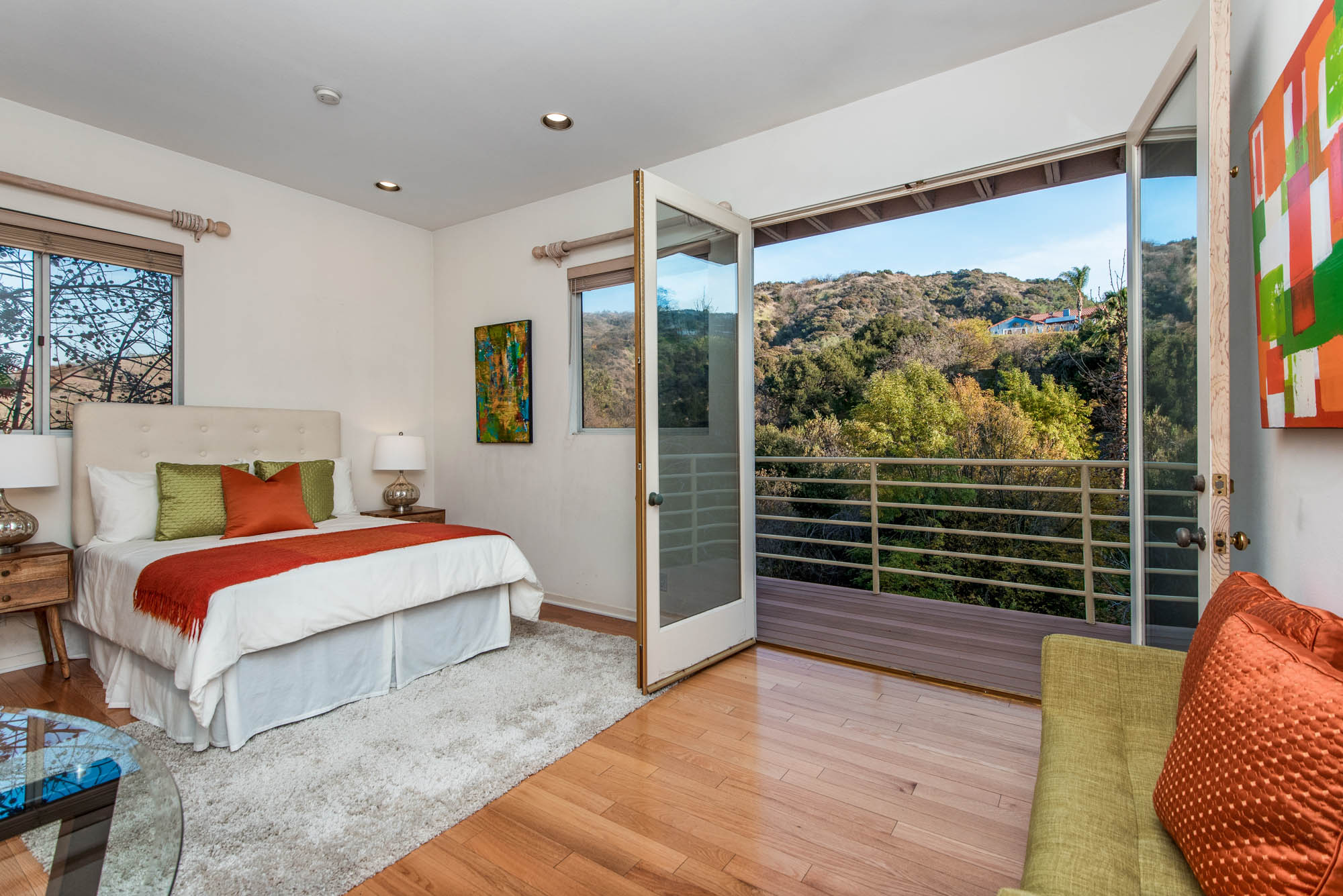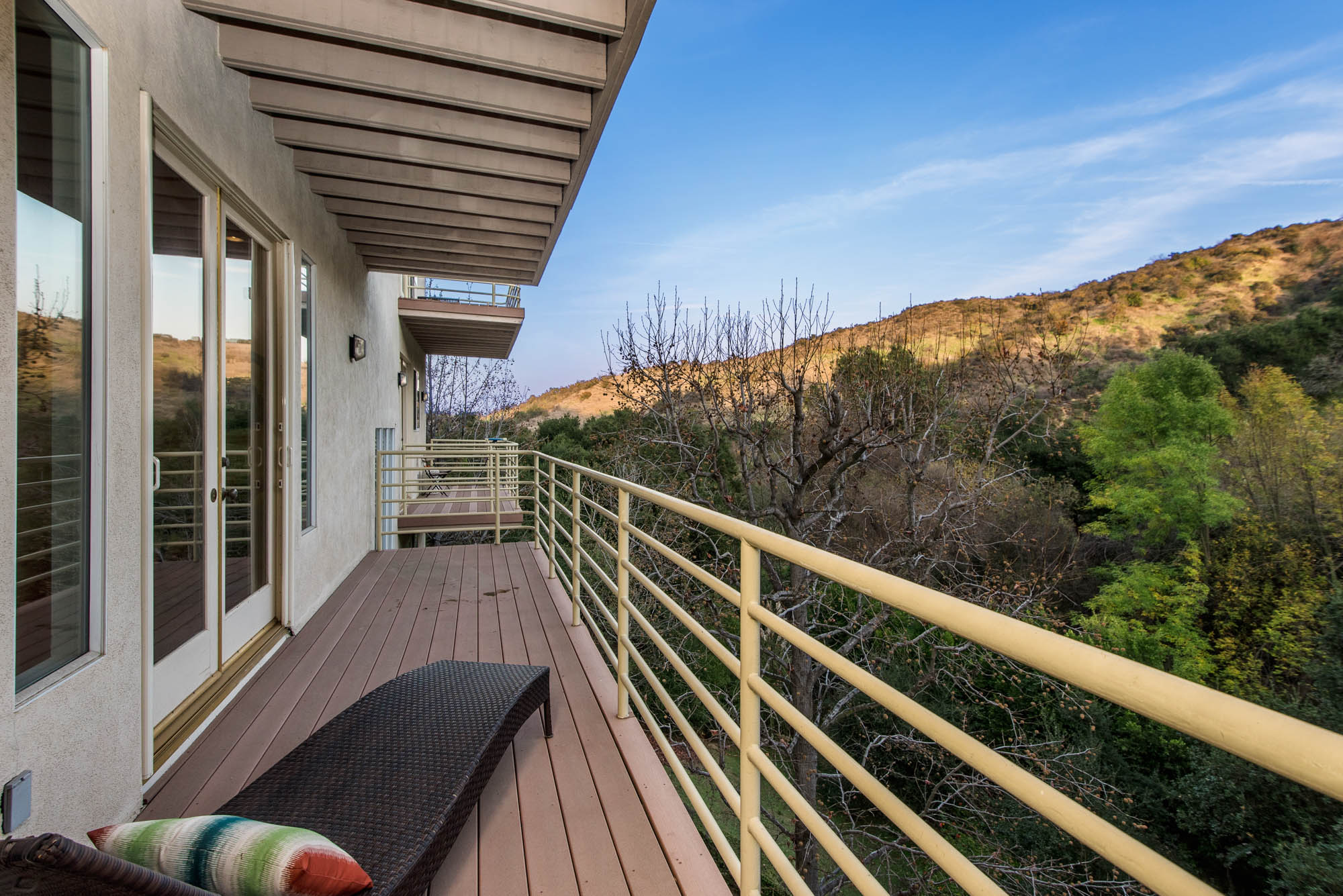 Located in the hills of Sherman Oaks is this private 4 bedroom, 4 bathroom home with mountain views from almost every room. Through the double doors, you’re greeted by an open concept living space. A wet bar off of the entrance features a wine fridge and barstool seating. Continuing into the home is the formal living room featuring a fireplace, high ceilings and tall windows which bring in an abundance of natural light. French doors open the living room to a private balcony with breathtaking nature views. The high ceilings continue into the dining room which is conveniently located off of the kitchen. The kitchen has a large center island with a built-in range and plenty of storage. The double sink looks out over the hills and a breakfast nook provides the perfect place for a quick meal. The grand master suite boasts more beautiful views and has the home’s second fireplace situated in its private sitting area. A large walk-in closet and bathroom with a walk-in shower and separate tub complete the suite. Also located on this floor are two additional bedrooms and the home's third bathroom. The lower level of the home has a spacious den ideal for movie and game nights. A well-sized private bedroom is perfect for hosting overnight guests. Off of the den is another balcony leading to the backyard. The tranquil zen garden with lush landscaping offers lots of grounds to explore. Additional features include solar panels, security system, individual laundry room, two-car garage, and access to public hiking trails!