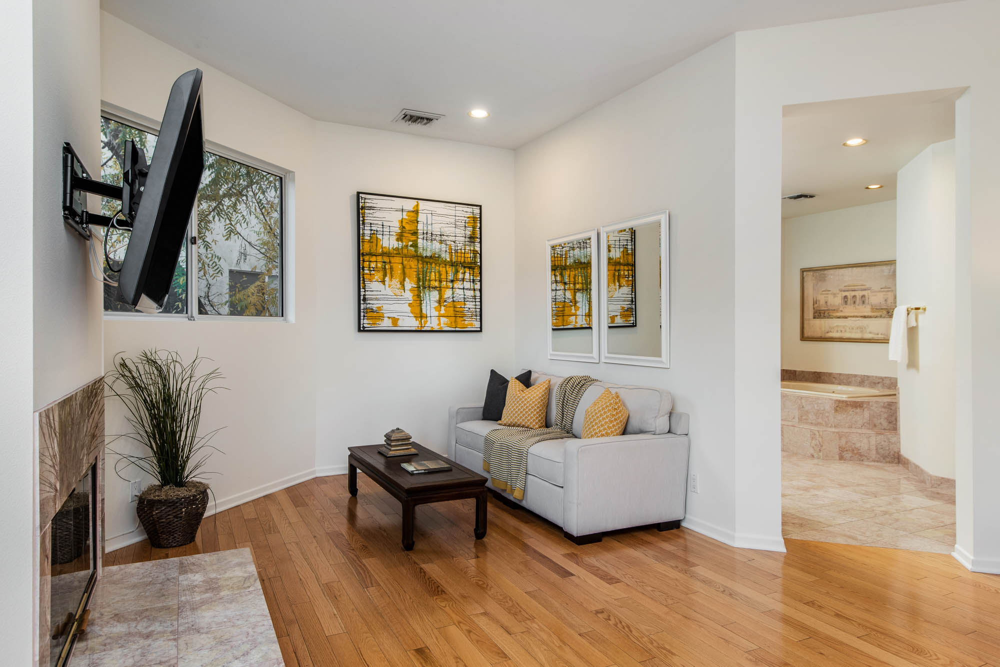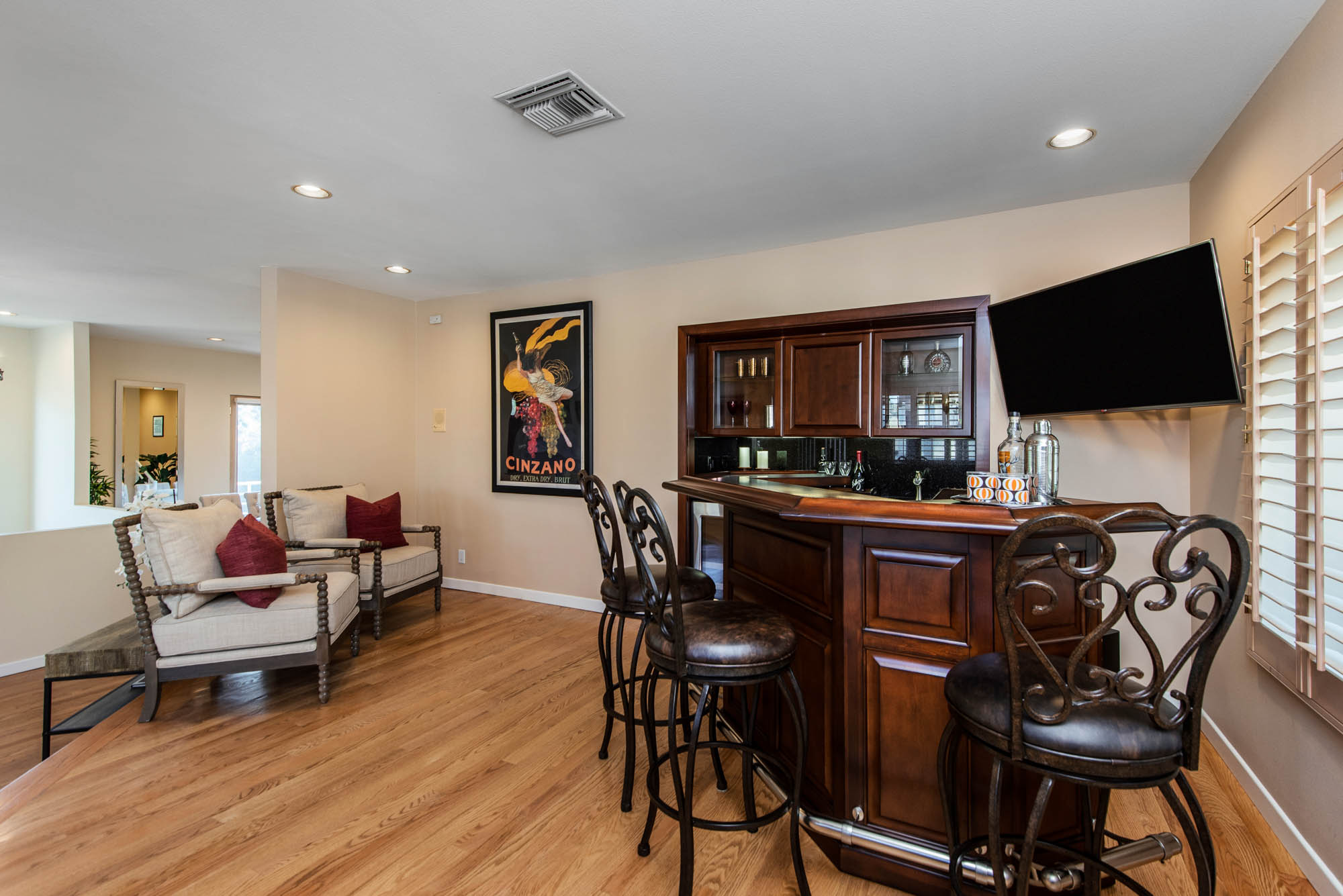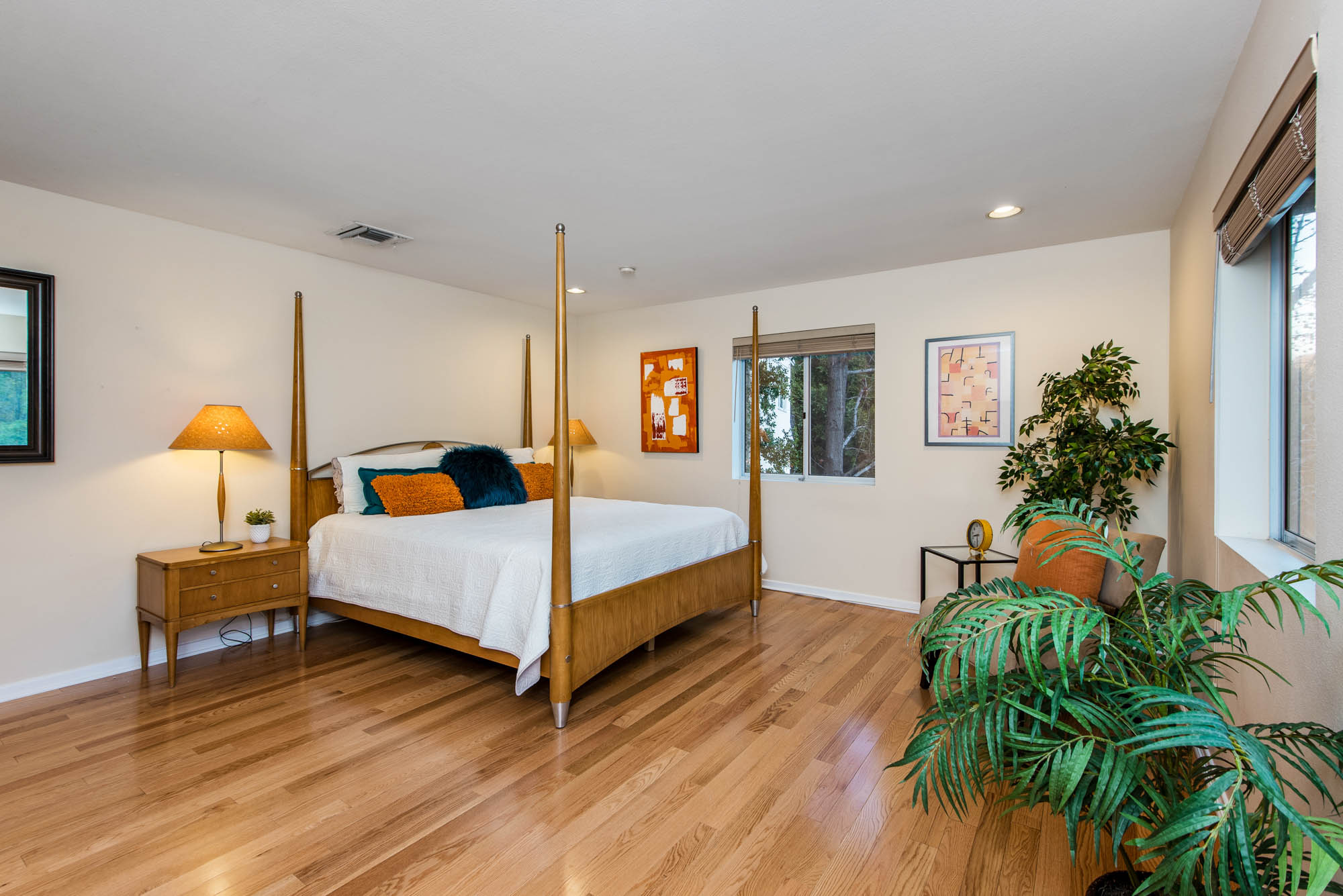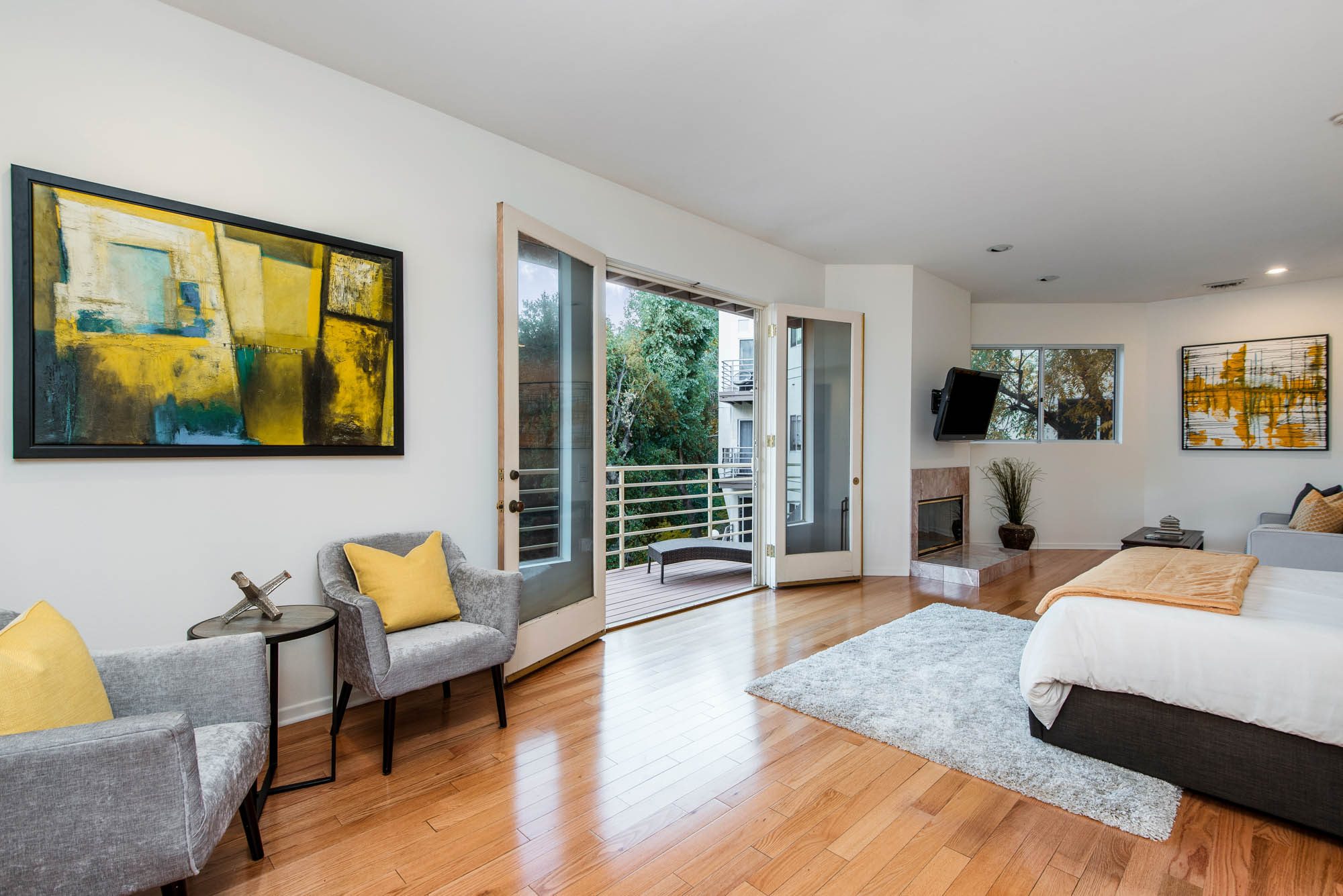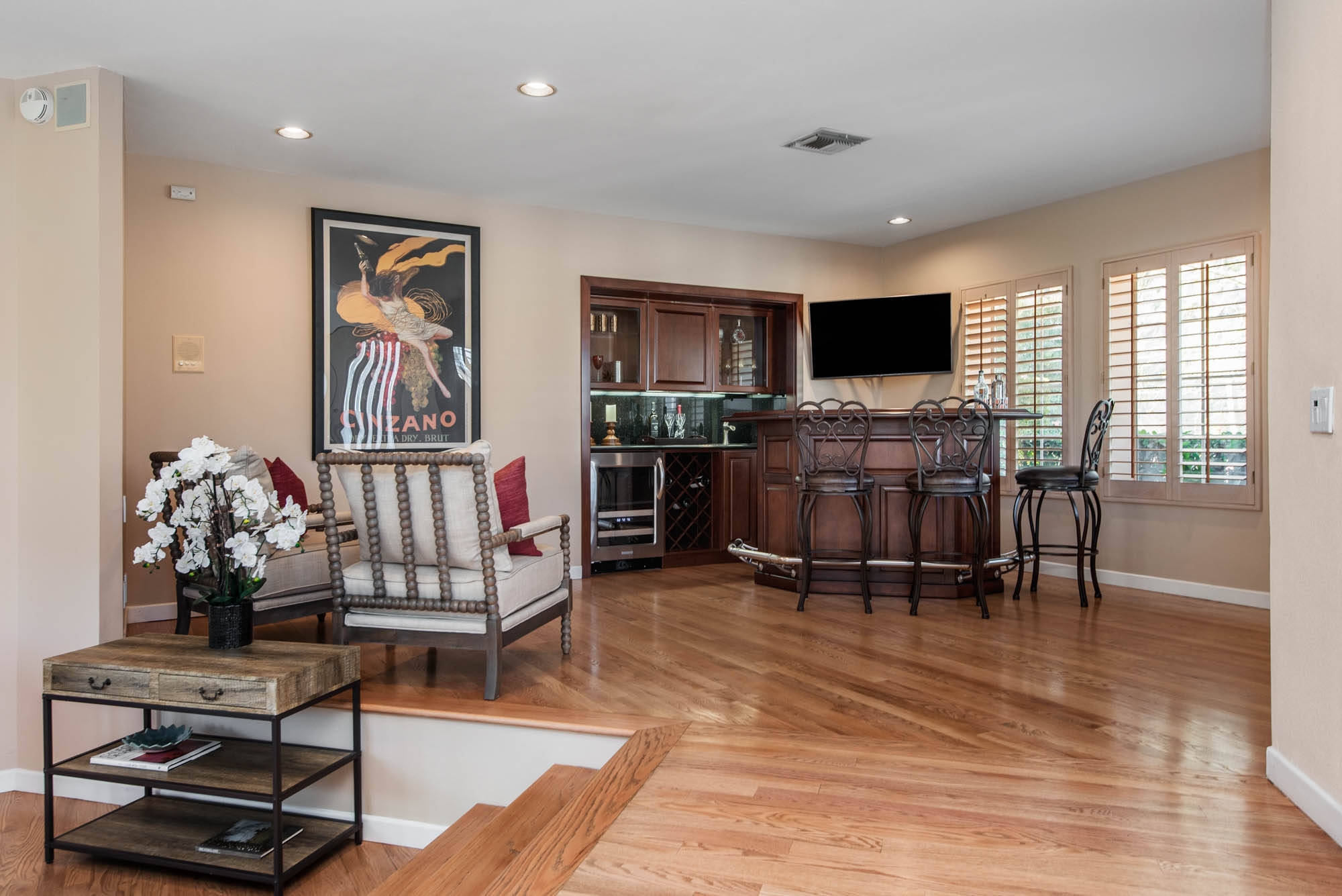 Located in the hills of Sherman Oaks is this private 4 bedroom, 4 bathroom home with mountain views from almost every room. Through the double doors, you’re greeted by an open concept living space. A wet bar off of the entrance features a wine fridge and barstool seating. Continuing into the home is the formal living room featuring a fireplace, high ceilings and tall windows which bring in an abundance of natural light. French doors open the living room to a private balcony with breathtaking nature views. The high ceilings continue into the dining room which is conveniently located off of the kitchen. The kitchen has a large center island with a built-in range and plenty of storage. The double sink looks out over the hills and a breakfast nook provides the perfect place for a quick meal. The grand master suite boasts more beautiful views and has the home’s second fireplace situated in its private sitting area. A large walk-in closet and bathroom with a walk-in shower and separate tub complete the suite. Also located on this floor are two additional bedrooms and the home's third bathroom. The lower level of the home has a spacious den ideal for movie and game nights. A well-sized private bedroom is perfect for hosting overnight guests. Off of the den is another balcony leading to the backyard. The tranquil zen garden with lush landscaping offers lots of grounds to explore. Additional features include solar panels, security system, individual laundry room, two-car garage, and access to public hiking trails!