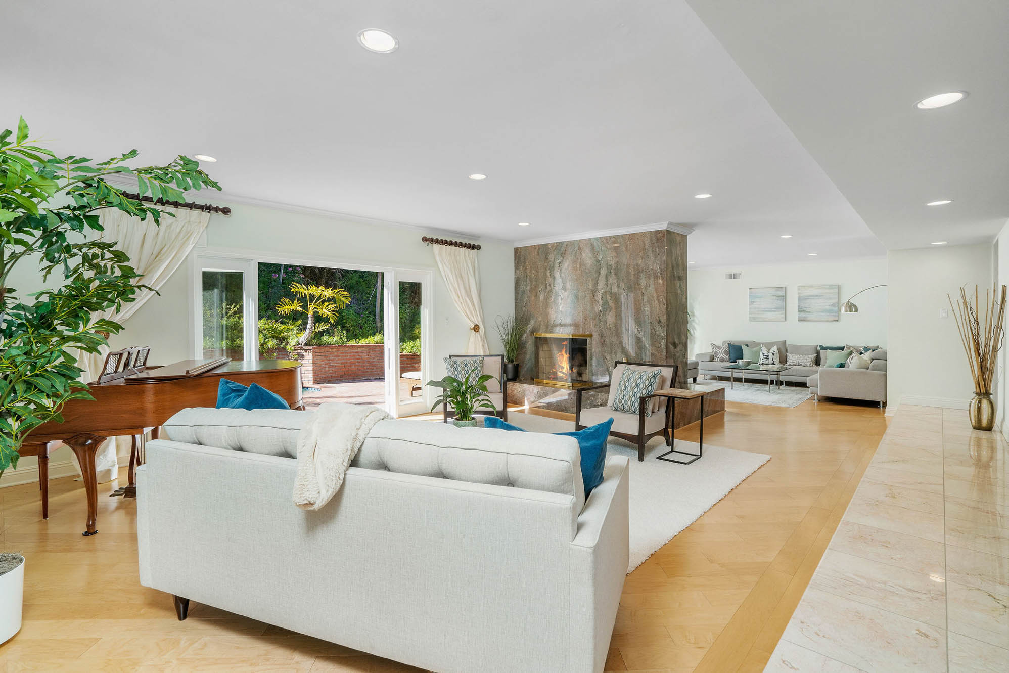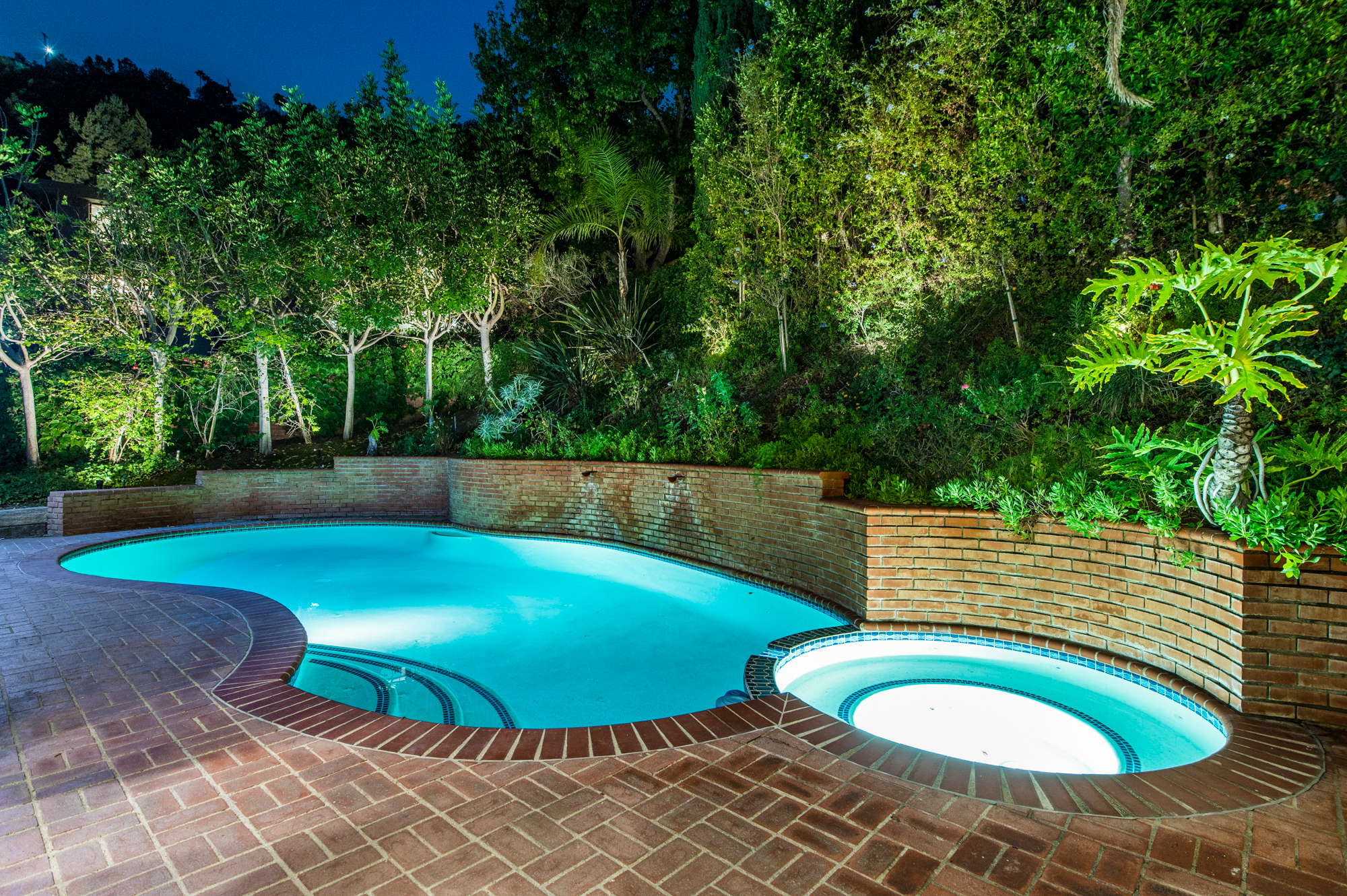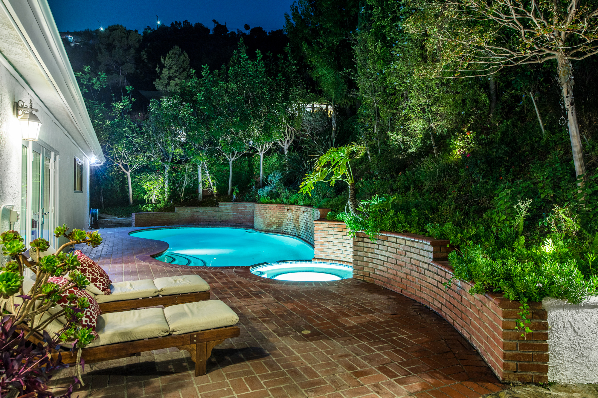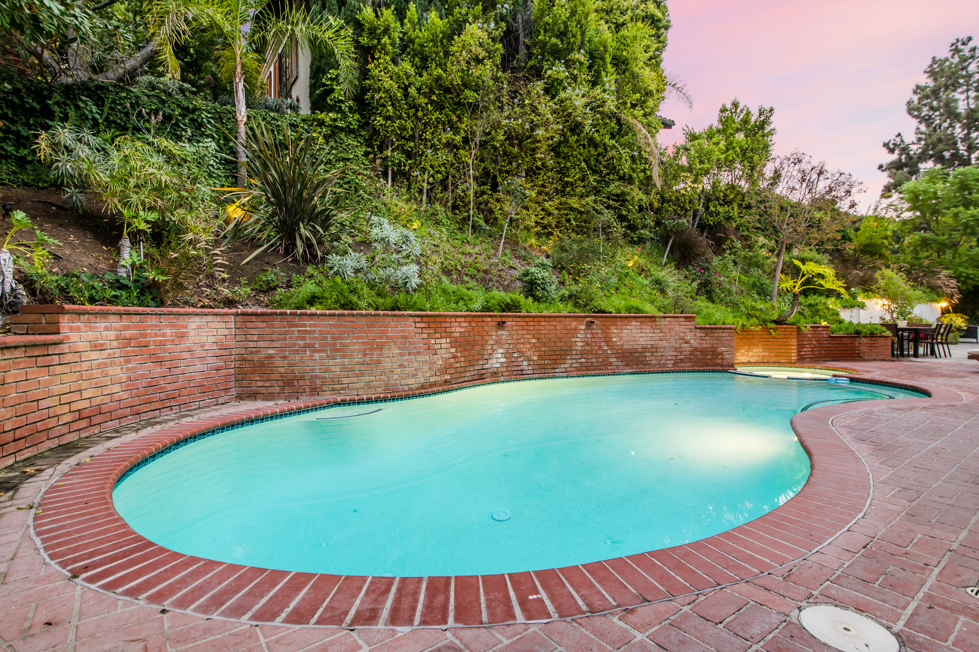 Tucked away in the hills of Studio City is this beautifully updated 4 bed, 3 bath single-level home on a sweeping corner lot of more than 10,000 sft. Lush landscaping and elegant stone work welcome you as you approach the custom wrought iron front door. Inside, the open floor plan is perfect for entertaining. The living and family rooms both are separated by an eye catching fireplace, and both open to the spectacular backyard. The kitchen has rich wood cabinetry, granite countertops, Viking appliances, and large center island with bar seating. Just adjacent is the spacious formal dining room with custom chandelier. The private master retreat is located in its own wing of the home and offers high ceilings, dual walk in closets, and spa-like bath with dual sink vanity, jetted tub, bidet, and walk in shower w/ rainfall shower head. The 3 additional bedrooms are well appointed and share 2 tastefully updated baths. The serene backyard has a sparkling pool & spa, huge patio perfect for outdoor dining and entertaining, and a large grassy area with mature trees. Additional features include 2 car garage, recessed lighting throughout, and camera security system. Minutes from Hollywood, Ventura Boulevard, and the Westside, the location could not be better. You must come see this amazing home for yourself!
