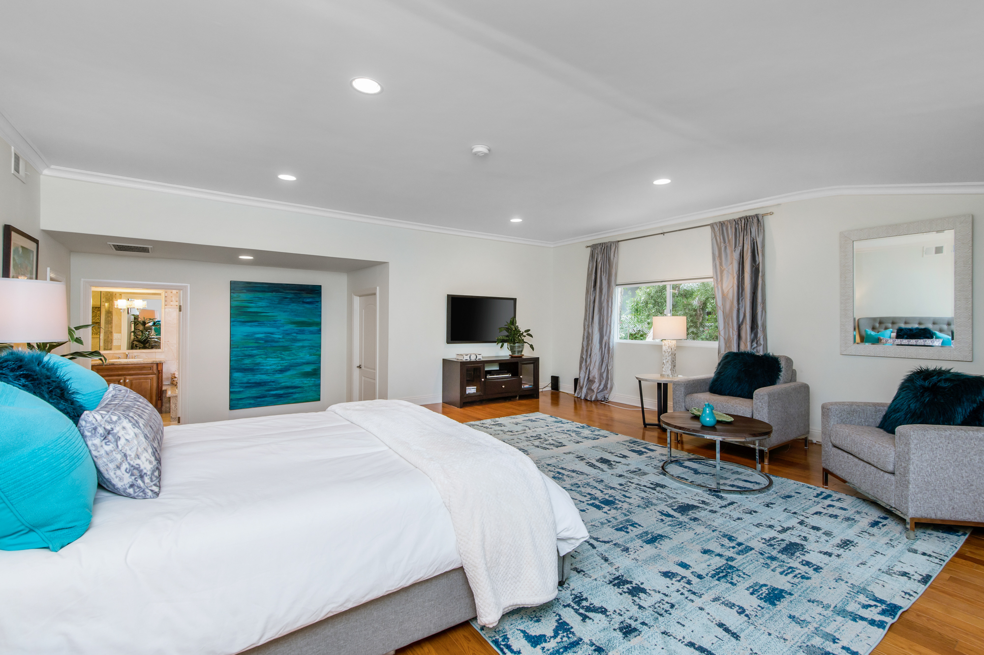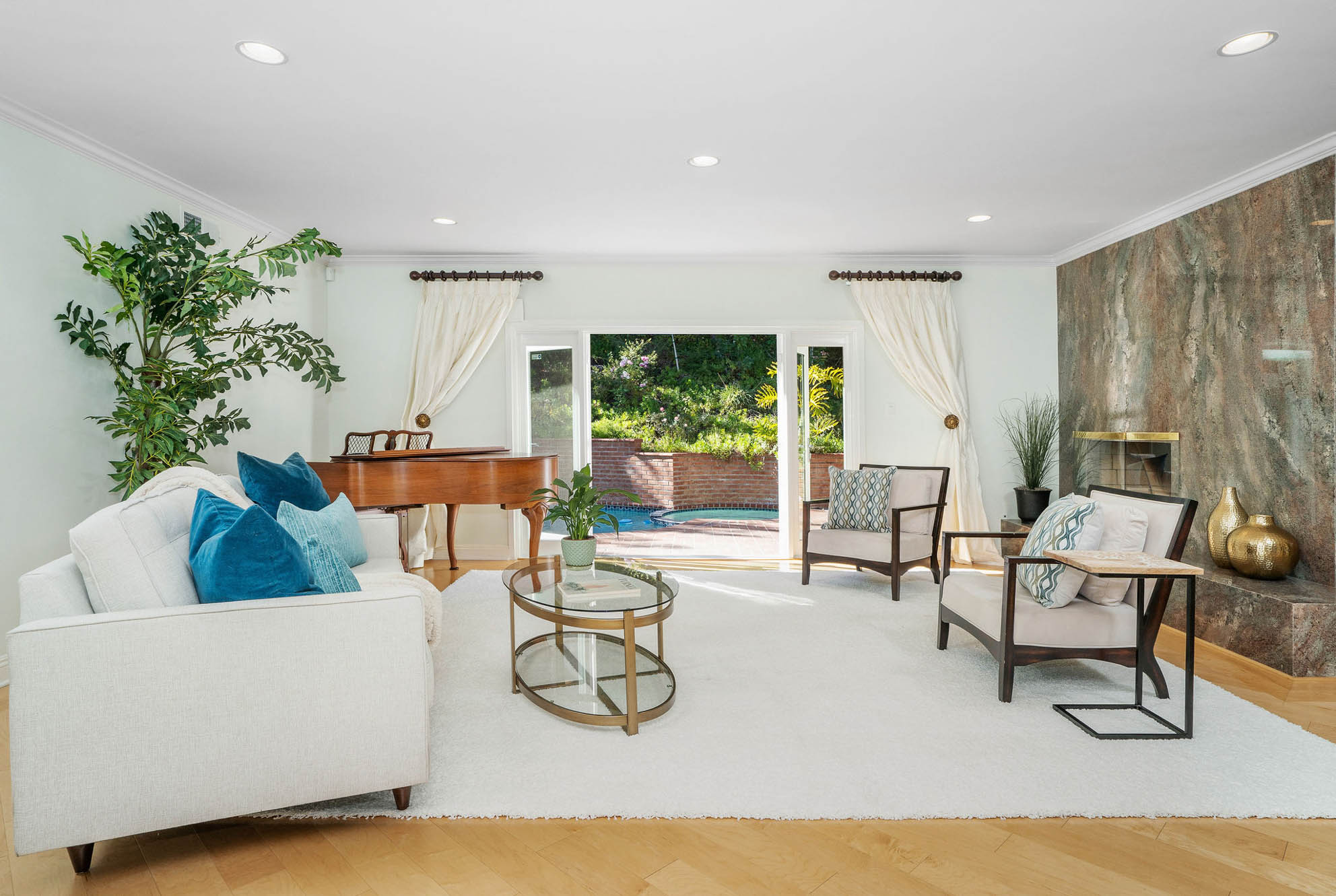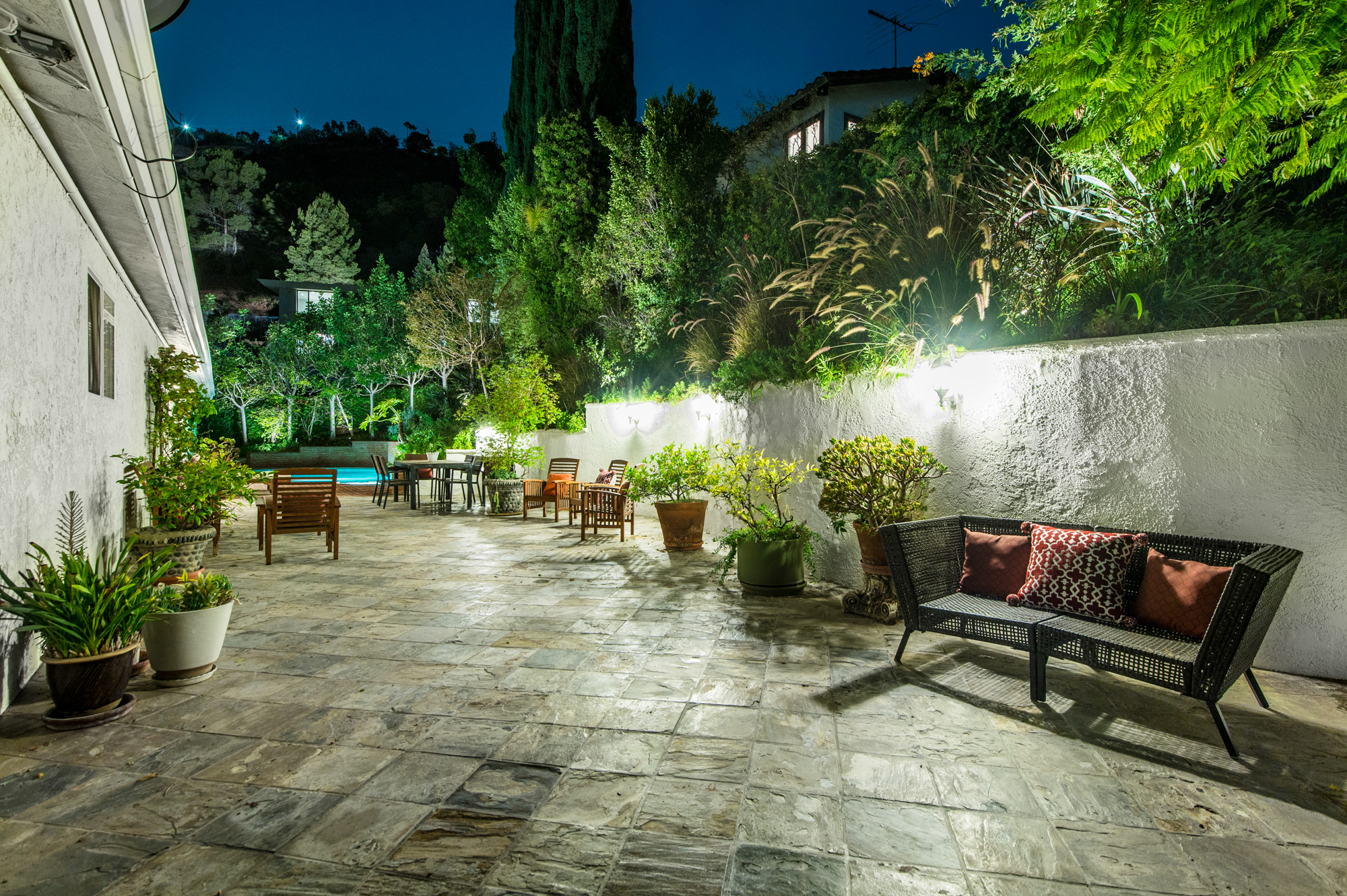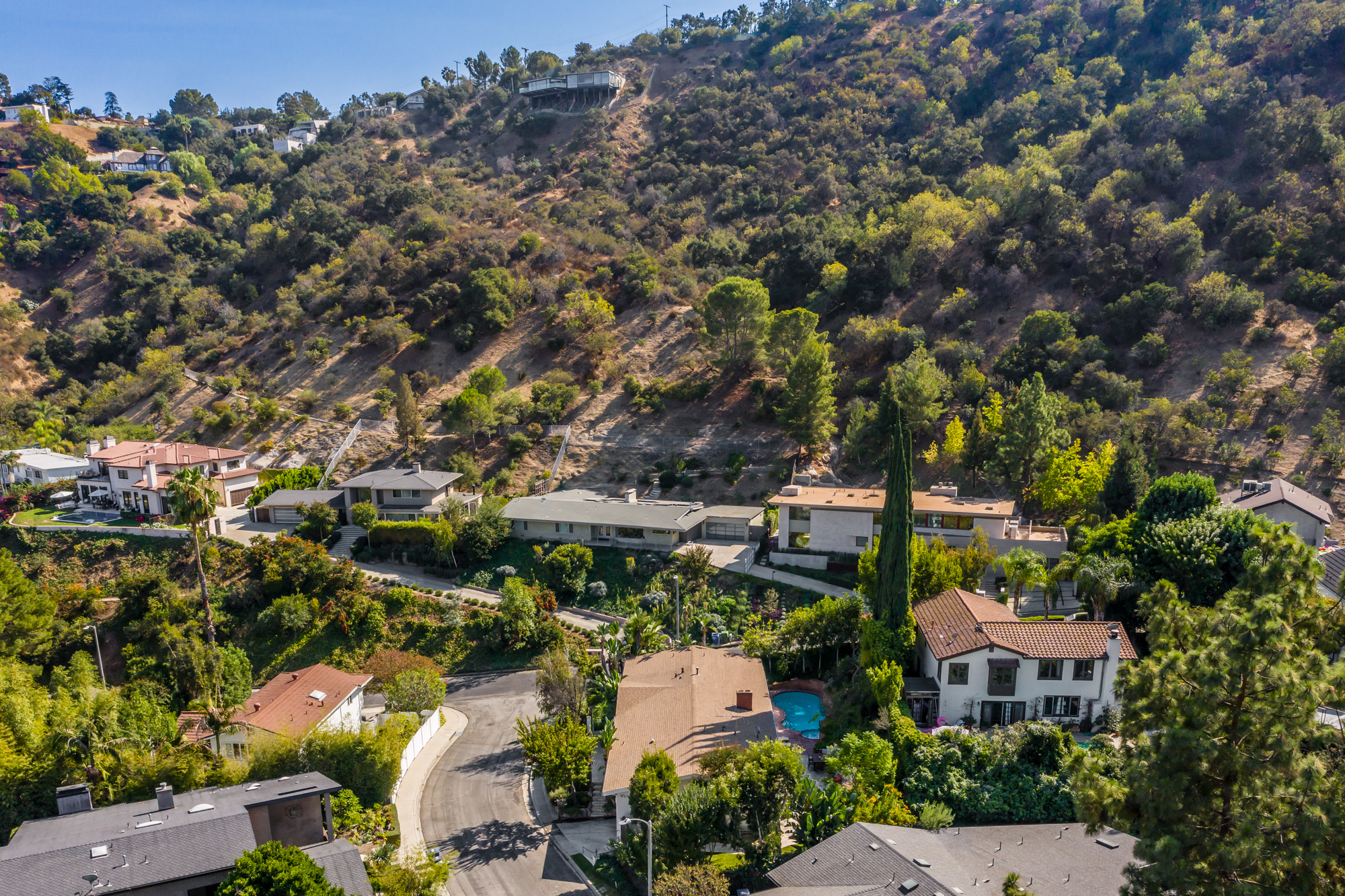 Tucked away in the hills of Studio City is this beautifully updated 4 bed, 3 bath single-level home on a sweeping corner lot of more than 10,000 sft. Lush landscaping and elegant stone work welcome you as you approach the custom wrought iron front door. Inside, the open floor plan is perfect for entertaining. The living and family rooms both are separated by an eye catching fireplace, and both open to the spectacular backyard. The kitchen has rich wood cabinetry, granite countertops, Viking appliances, and large center island with bar seating. Just adjacent is the spacious formal dining room with custom chandelier. The private master retreat is located in its own wing of the home and offers high ceilings, dual walk in closets, and spa-like bath with dual sink vanity, jetted tub, bidet, and walk in shower w/ rainfall shower head. The 3 additional bedrooms are well appointed and share 2 tastefully updated baths. The serene backyard has a sparkling pool & spa, huge patio perfect for outdoor dining and entertaining, and a large grassy area with mature trees. Additional features include 2 car garage, recessed lighting throughout, and camera security system. Minutes from Hollywood, Ventura Boulevard, and the Westside, the location could not be better. You must come see this amazing home for yourself!