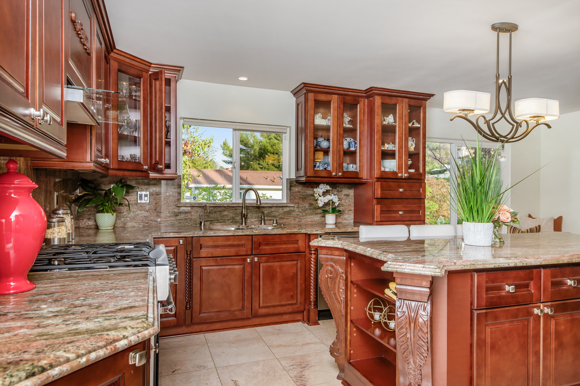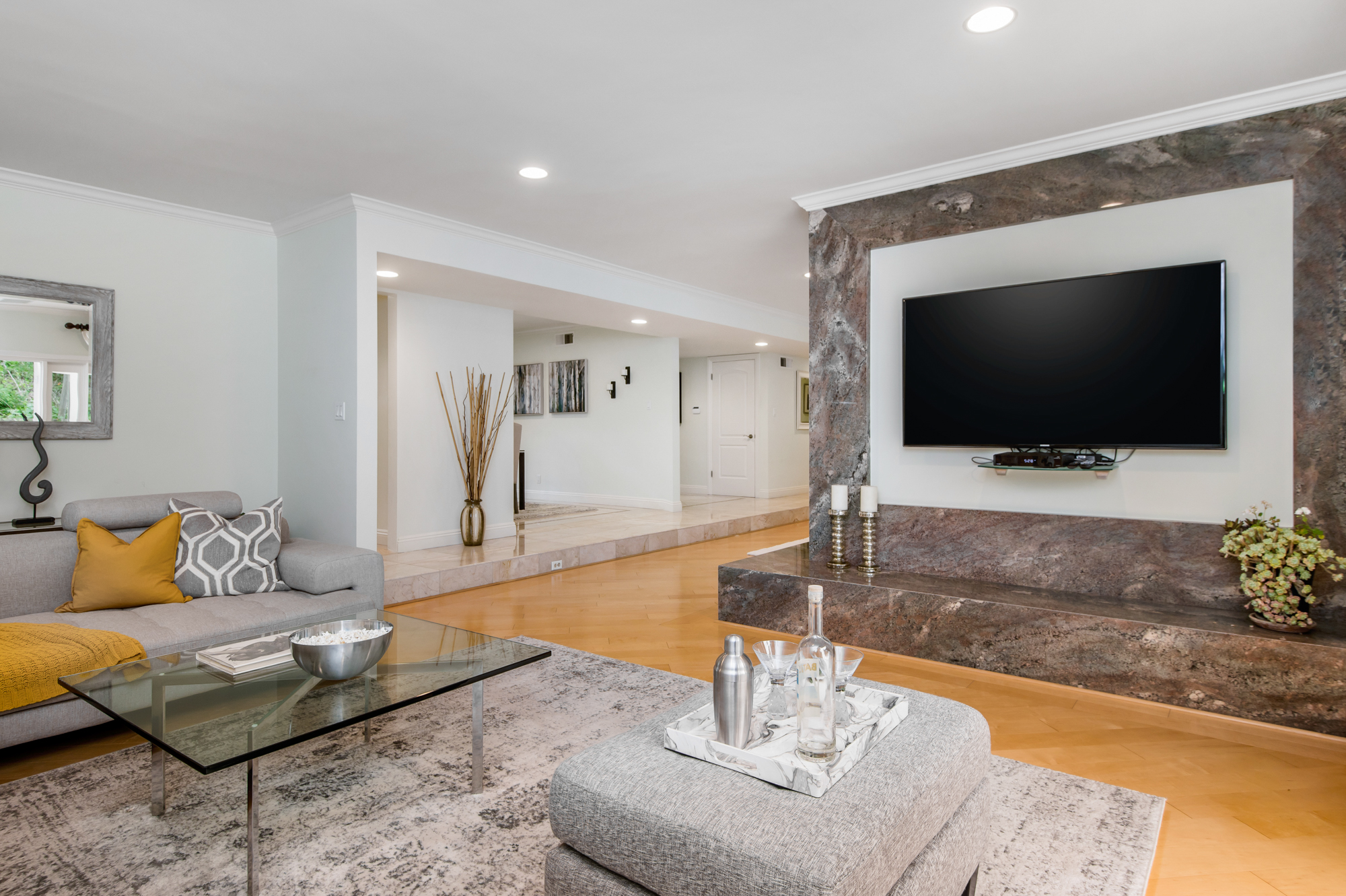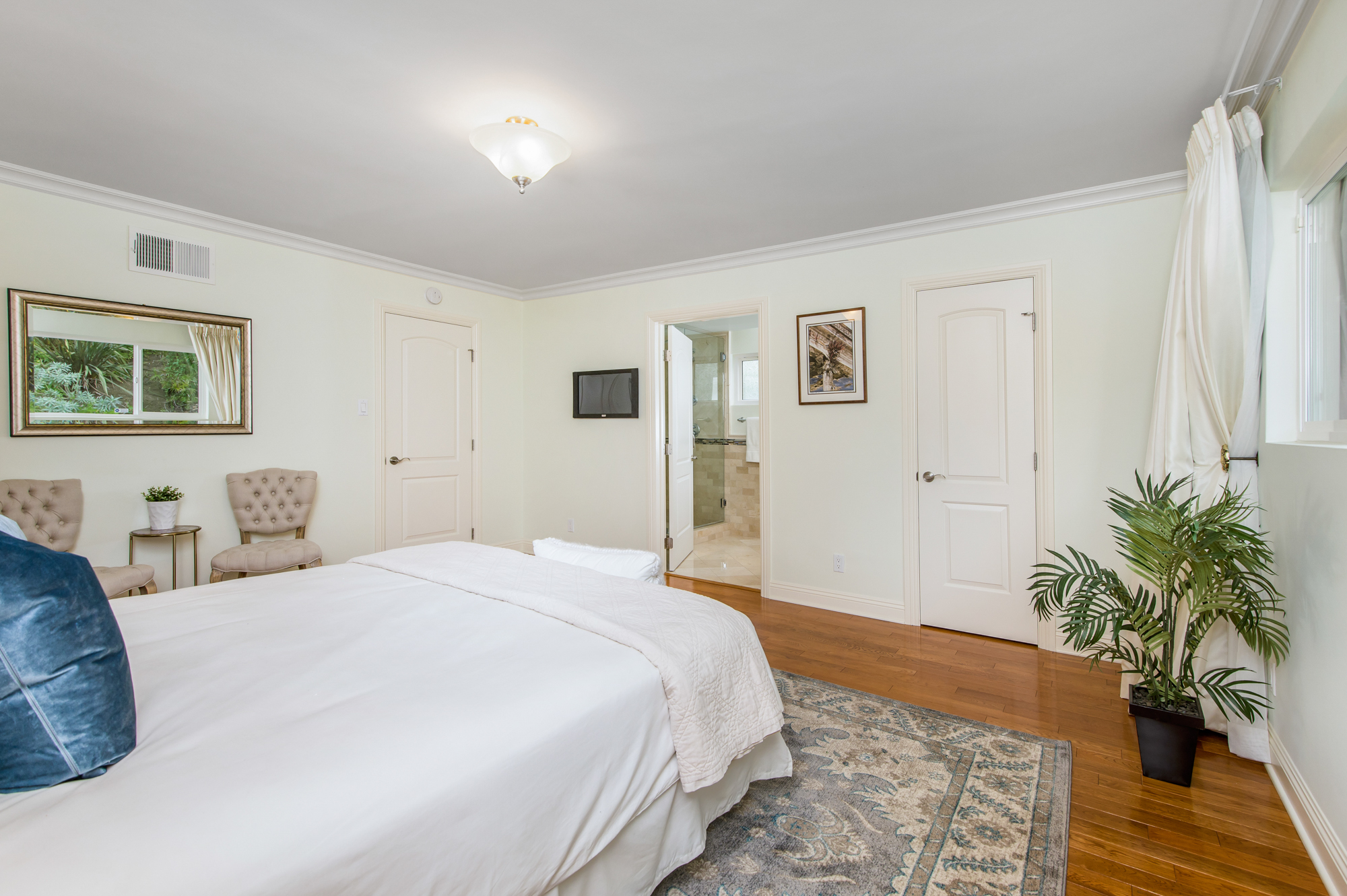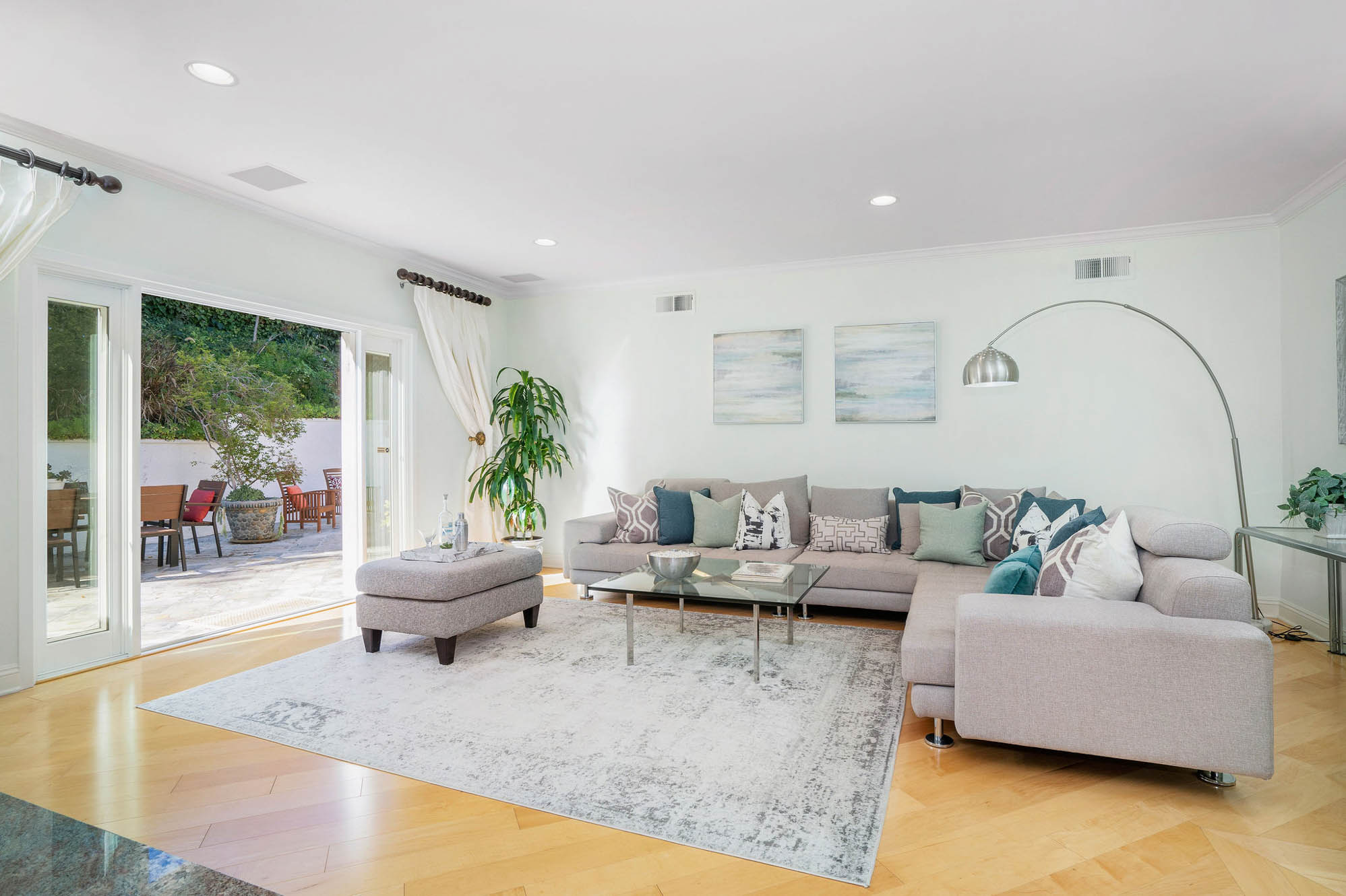 Tucked away in the hills of Studio City is this beautifully updated 4 bed, 3 bath single-level home on a sweeping corner lot of more than 10,000 sft. Lush landscaping and elegant stone work welcome you as you approach the custom wrought iron front door. Inside, the open floor plan is perfect for entertaining. The living and family rooms both are separated by an eye catching fireplace, and both open to the spectacular backyard. The kitchen has rich wood cabinetry, granite countertops, Viking appliances, and large center island with bar seating. Just adjacent is the spacious formal dining room with custom chandelier. The private master retreat is located in its own wing of the home and offers high ceilings, dual walk in closets, and spa-like bath with dual sink vanity, jetted tub, bidet, and walk in shower w/ rainfall shower head. The 3 additional bedrooms are well appointed and share 2 tastefully updated baths. The serene backyard has a sparkling pool & spa, huge patio perfect for outdoor dining and entertaining, and a large grassy area with mature trees. Additional features include 2 car garage, recessed lighting throughout, and camera security system. Minutes from Hollywood, Ventura Boulevard, and the Westside, the location could not be better. You must come see this amazing home for yourself!