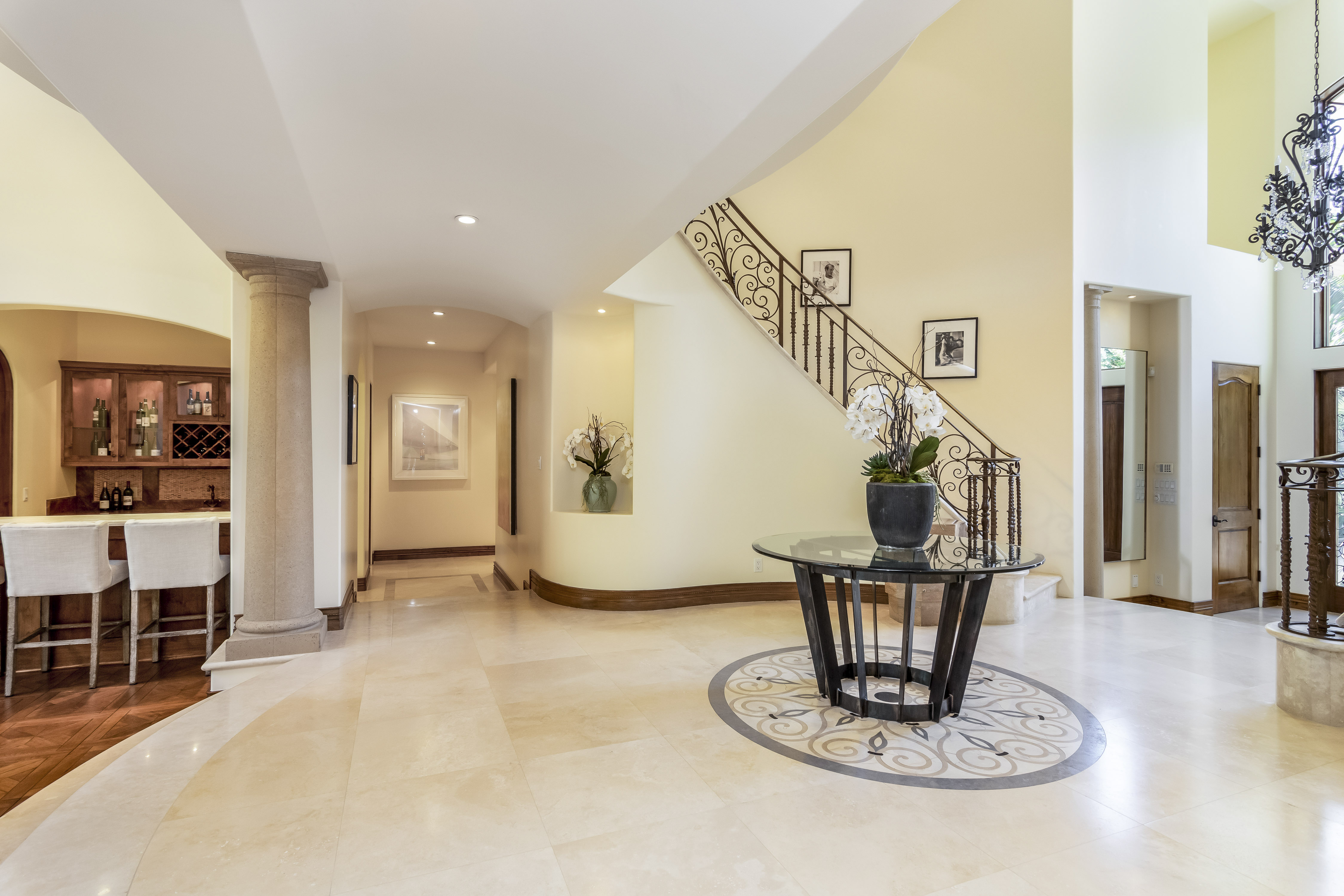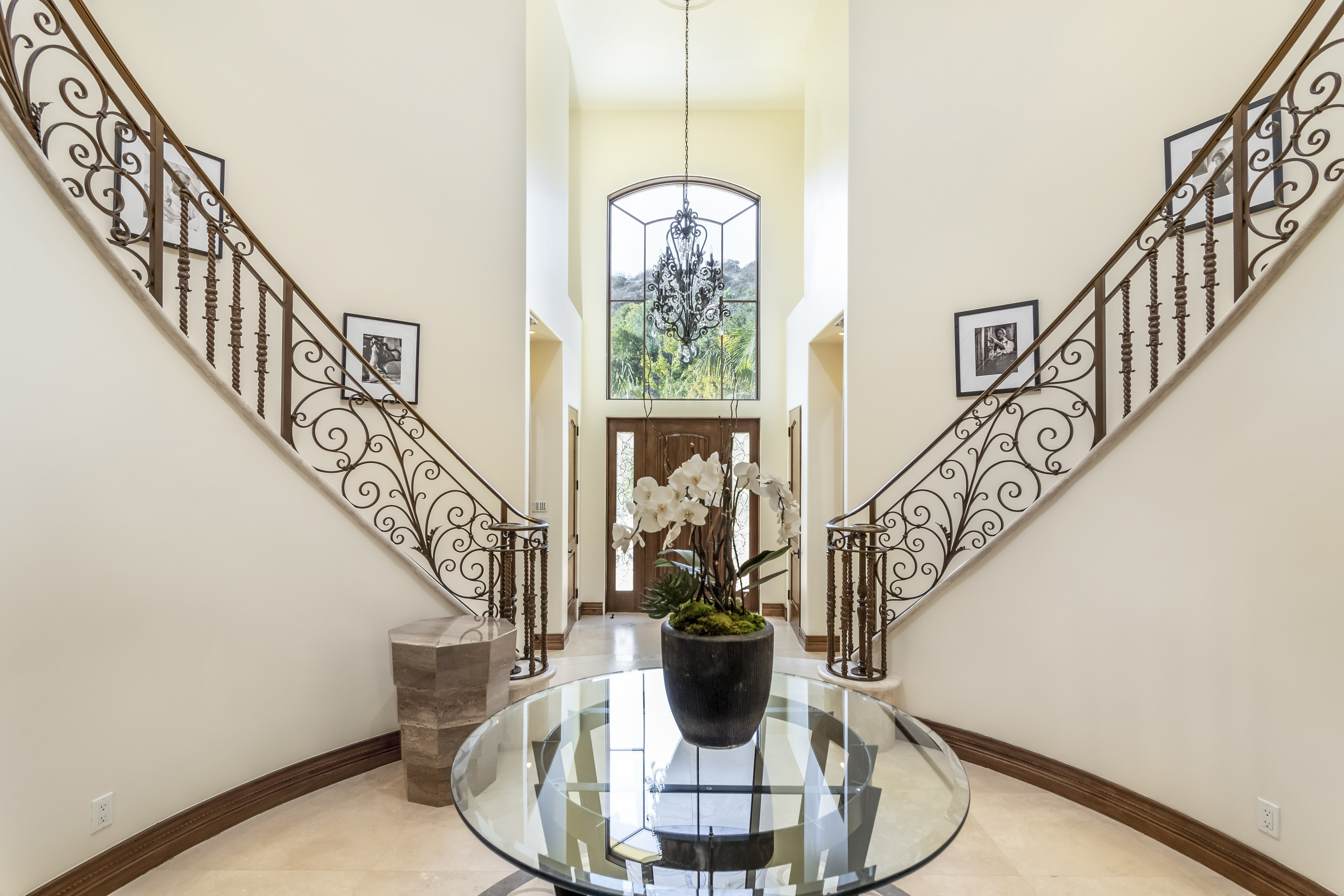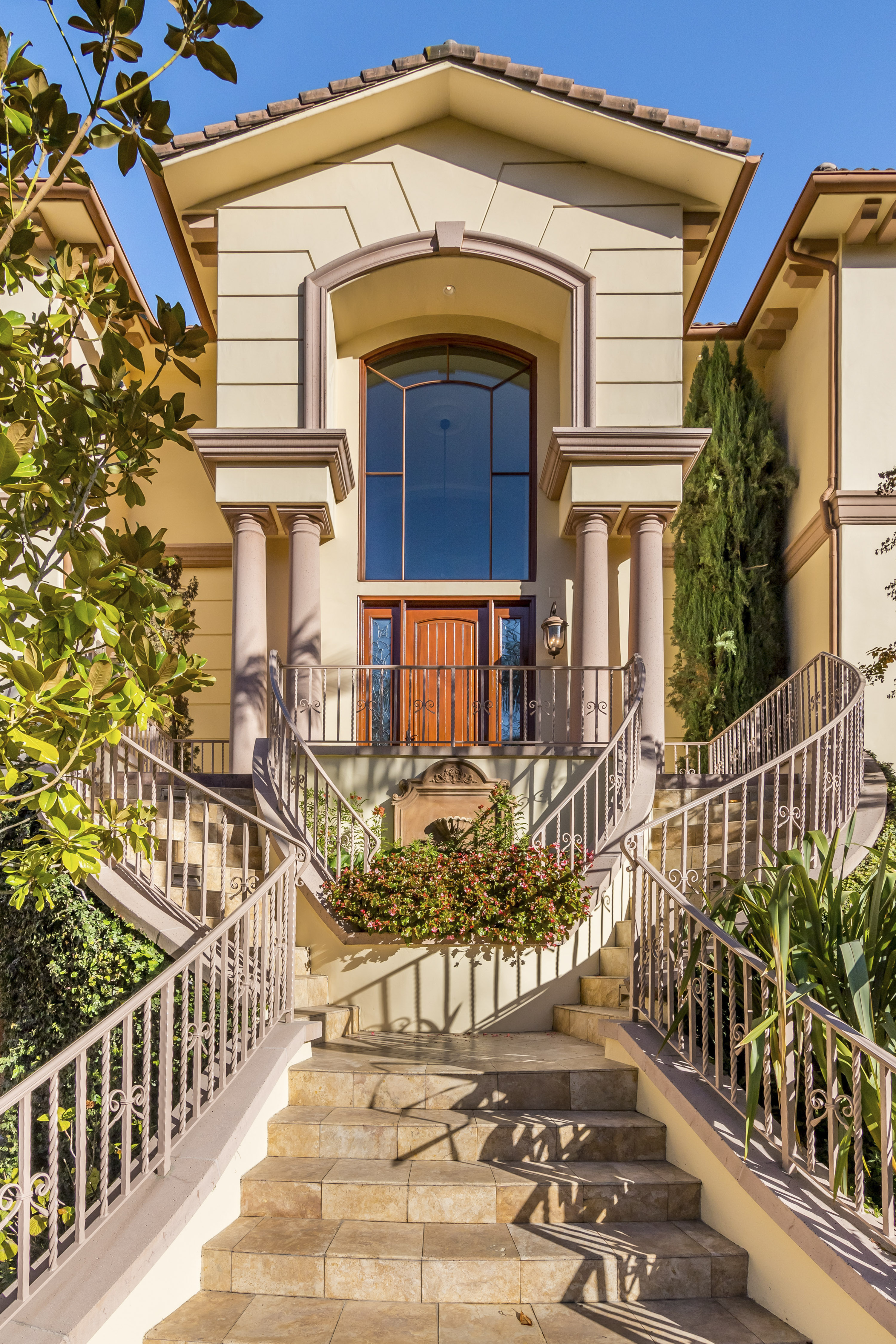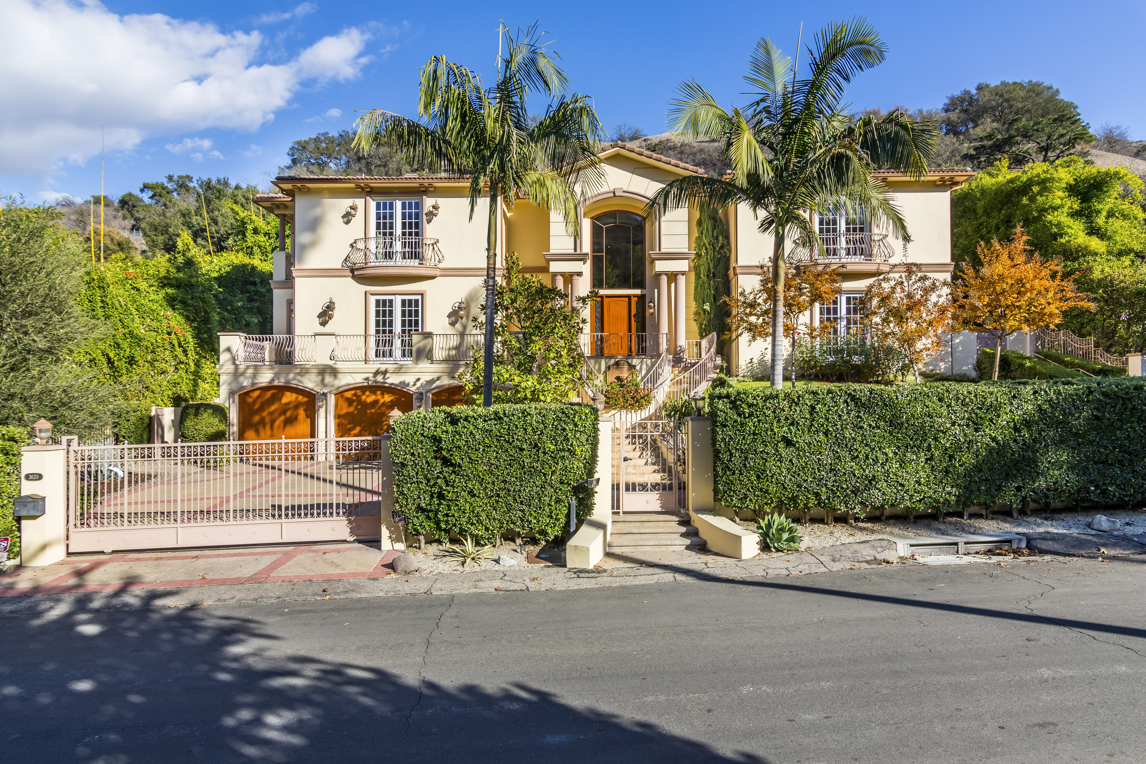 Sitting on almost an acre down a quiet street in the prestigious Longridge Estates, is this breathtaking Mediterranean Estate. This stunning home offers 6 bedrooms, 9 bathrooms, and almost 7,500 sft. As you go beyond privacy gates and enter the home, you are greeted by the spectacular entry with high pitched ceilings and a double grand staircase. On the main floor, the living room features two story windows, an opulent fireplace, wine room and wet bar. The spacious formal dining room flows into the incredible chef’s kitchen with stainless steel top of the line appliances, large center island, and an abundance of cabinets. The kitchen opens directly to the large and well appointed family room. Hardwood floors, crown moldings, custom built-ins, doors and windows overlooking and opening out to lush gardens. The first floor also holds two of the six bedrooms, each with their own bath. Upstairs the South wing of the home holds a private master retreat with large bedroom, sitting room, 2 extensive walk in closets, multiple balconies, and a luxurious bathroom. A see through fireplace is shared by the bedroom and bathroom. Connecting the two wings is a lovely family room area with french doors that open to a large balcony. The remaining four bedrooms each have their own private balconies and en suite bathrooms. On the lower level of the home, there a huge bonus room, wired to be used as a home theatre but also great as a gym, dance studio, or game room. The spacious backyard has a large salt water pool/spa and beautiful gardens with mature trees for total privacy. The backyard features separate sitting areas, bubbling fountain, and built in BBQ area w/ Viking grill, fridge, and wet bar, perfect for outdoor entertaining. Additional features include a 3-car garage, sound wiring throughout, security system, water softener, and so much more!