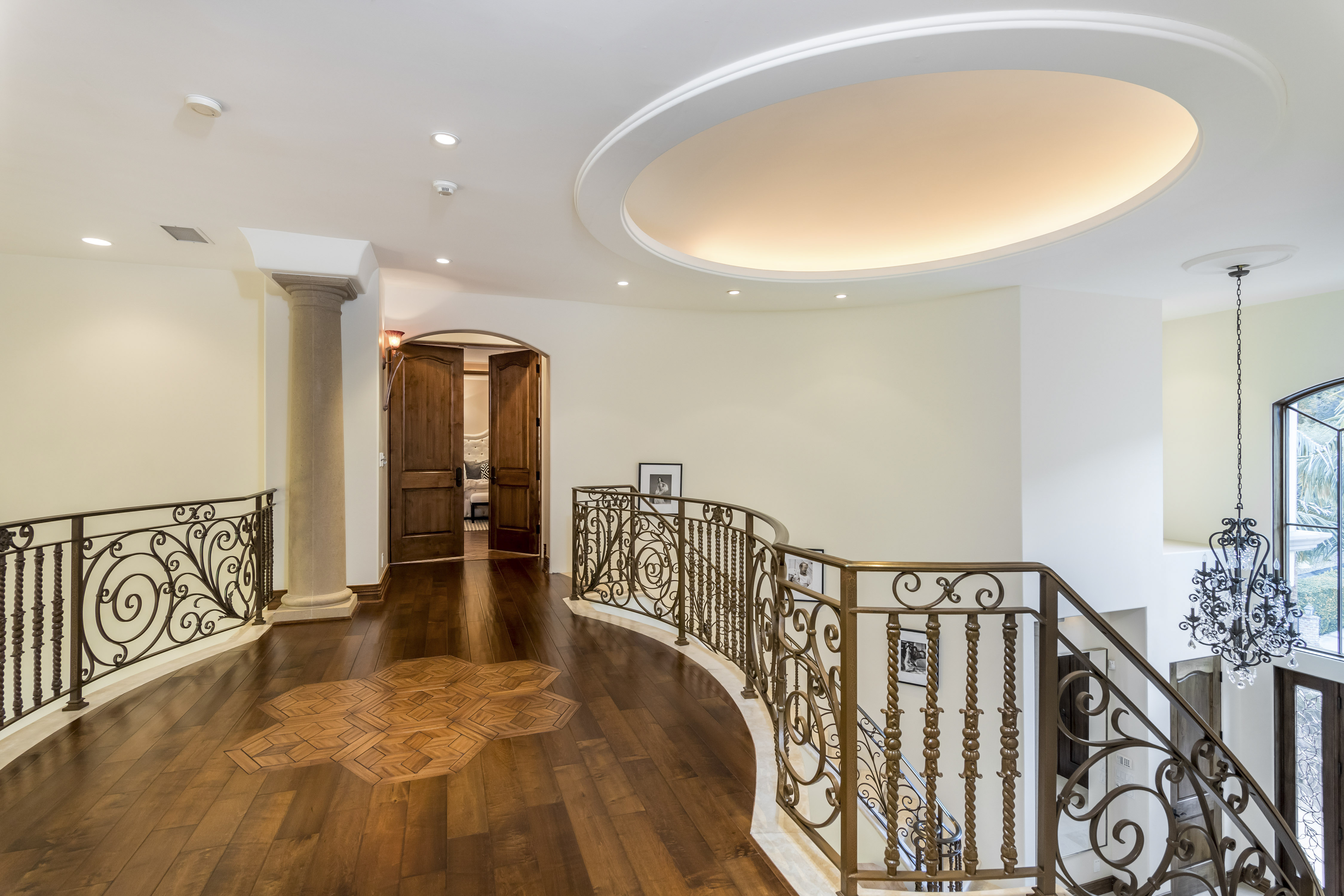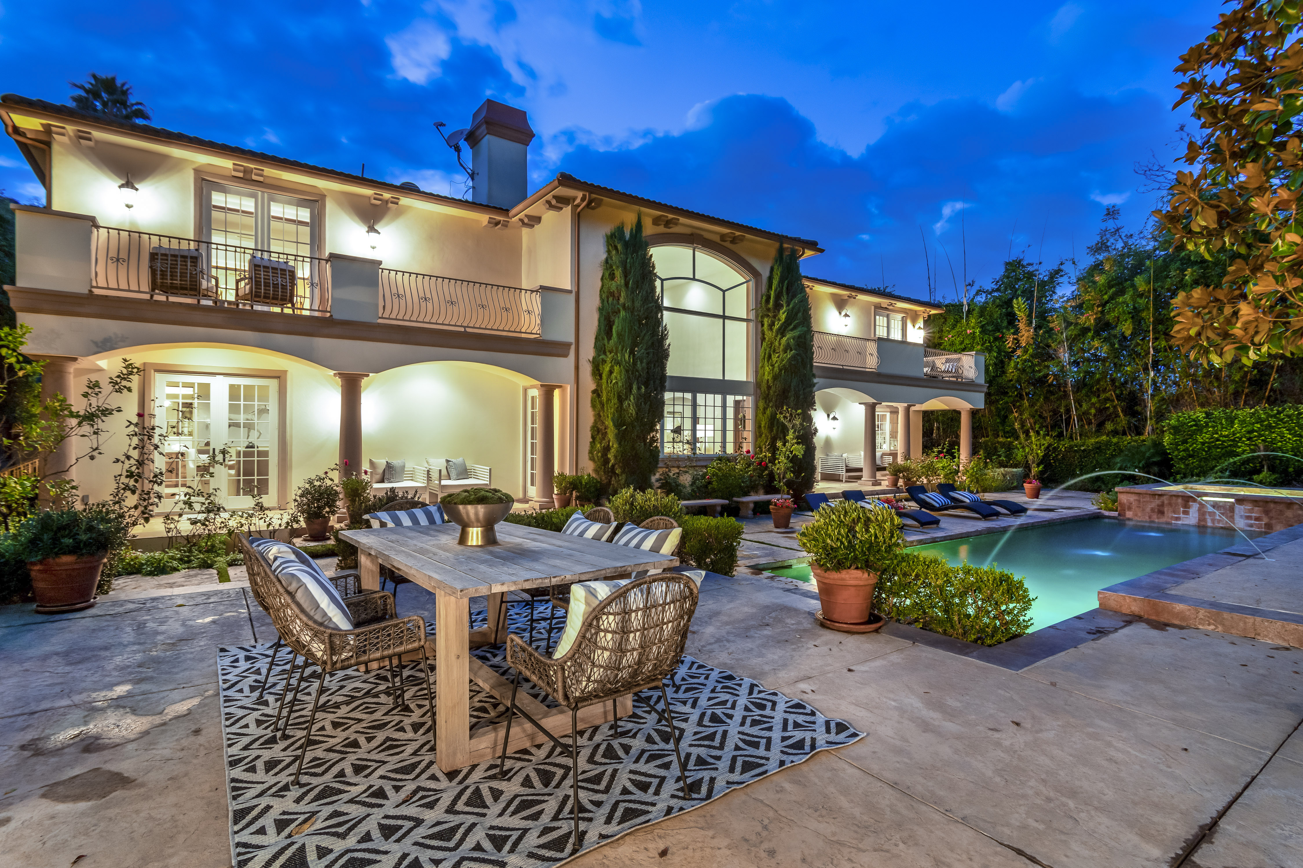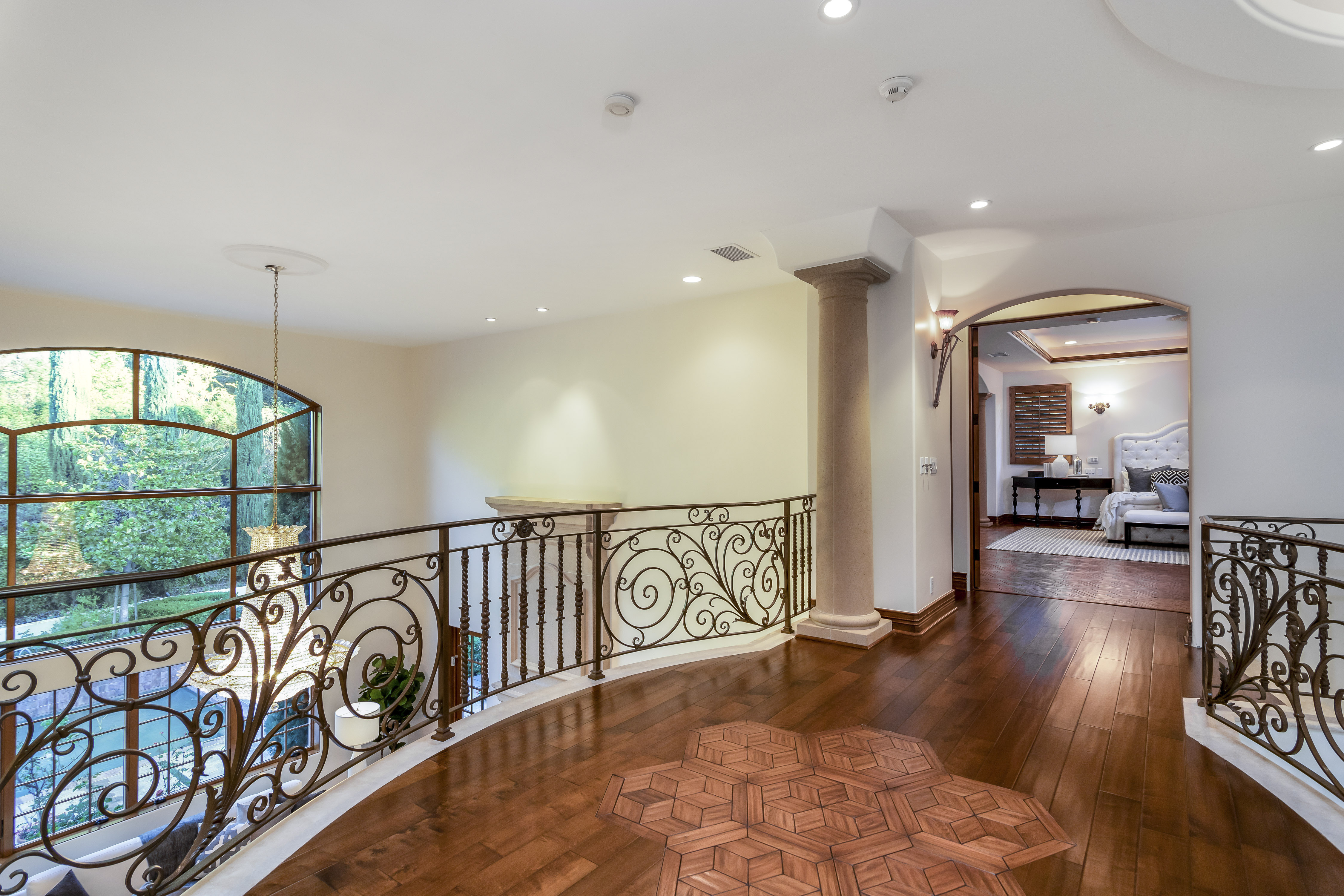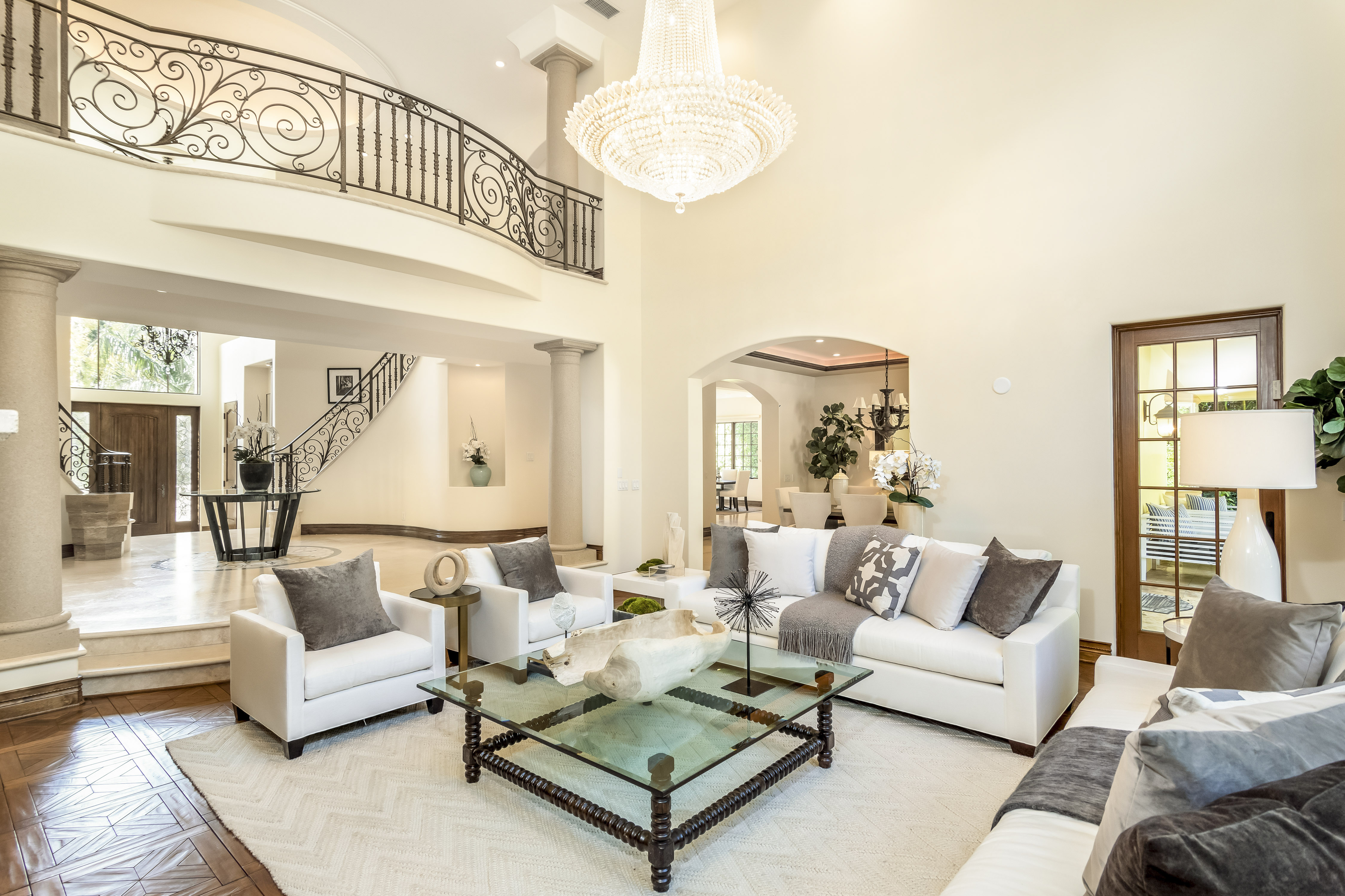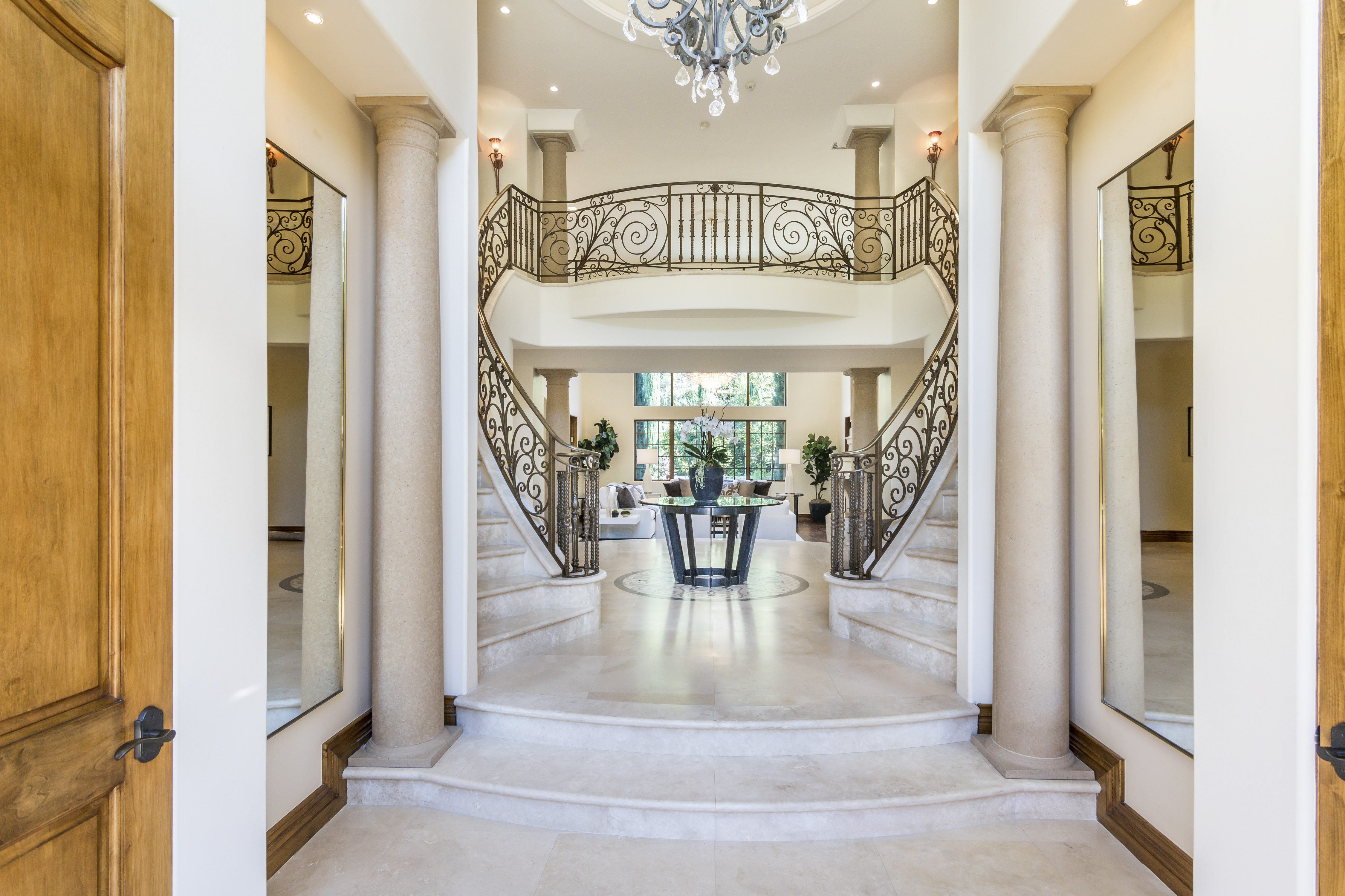 Sitting on almost an acre down a quiet street in the prestigious Longridge Estates, is this breathtaking Mediterranean Estate. This stunning home offers 6 bedrooms, 9 bathrooms, and almost 7,500 sft. As you go beyond privacy gates and enter the home, you are greeted by the spectacular entry with high pitched ceilings and a double grand staircase. On the main floor, the living room features two story windows, an opulent fireplace, wine room and wet bar. The spacious formal dining room flows into the incredible chef’s kitchen with stainless steel top of the line appliances, large center island, and an abundance of cabinets. The kitchen opens directly to the large and well appointed family room. Hardwood floors, crown moldings, custom built-ins, doors and windows overlooking and opening out to lush gardens. The first floor also holds two of the six bedrooms, each with their own bath. Upstairs the South wing of the home holds a private master retreat with large bedroom, sitting room, 2 extensive walk in closets, multiple balconies, and a luxurious bathroom. A see through fireplace is shared by the bedroom and bathroom. Connecting the two wings is a lovely family room area with french doors that open to a large balcony. The remaining four bedrooms each have their own private balconies and en suite bathrooms. On the lower level of the home, there a huge bonus room, wired to be used as a home theatre but also great as a gym, dance studio, or game room. The spacious backyard has a large salt water pool/spa and beautiful gardens with mature trees for total privacy. The backyard features separate sitting areas, bubbling fountain, and built in BBQ area w/ Viking grill, fridge, and wet bar, perfect for outdoor entertaining. Additional features include a 3-car garage, sound wiring throughout, security system, water softener, and so much more!