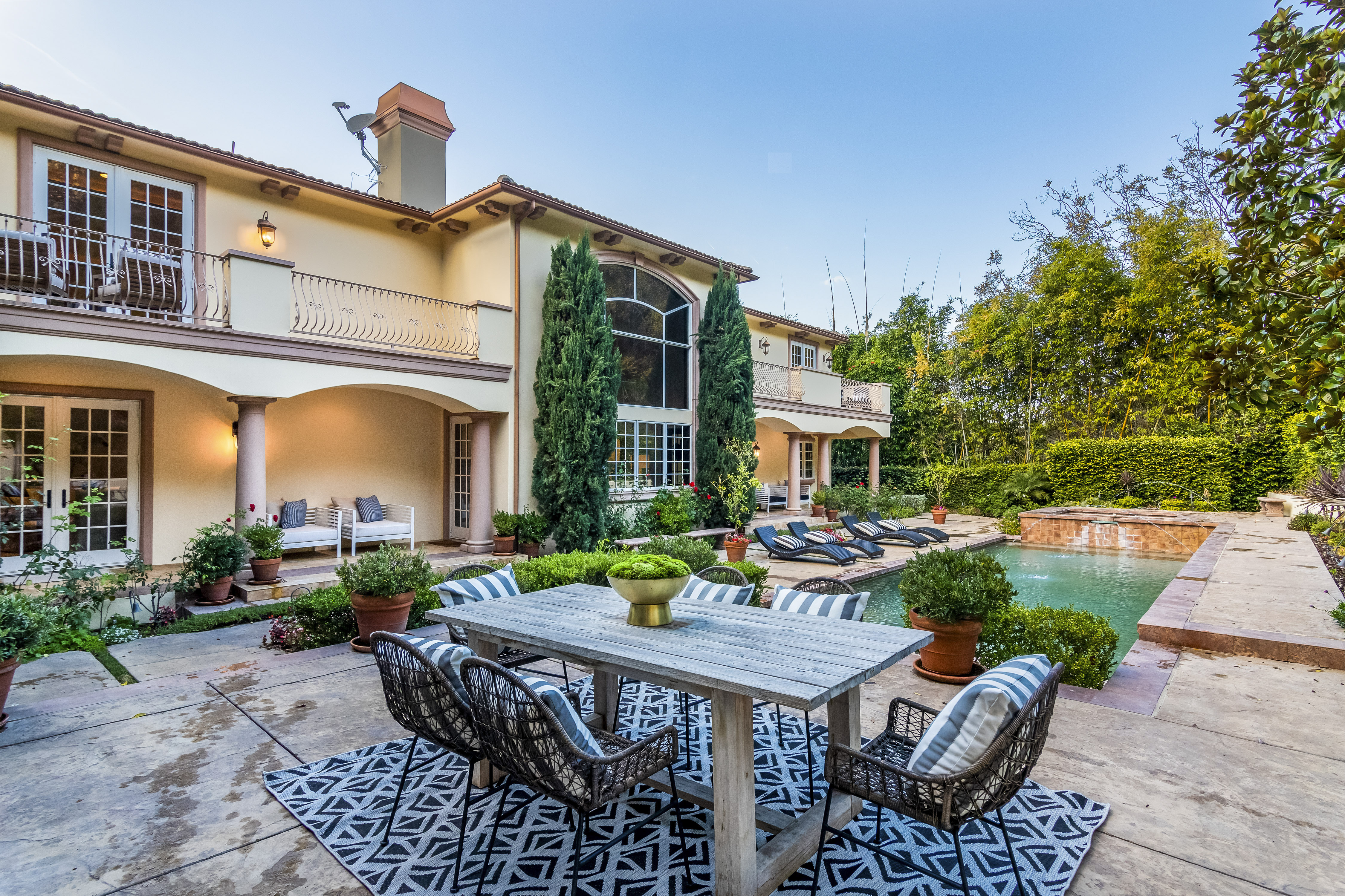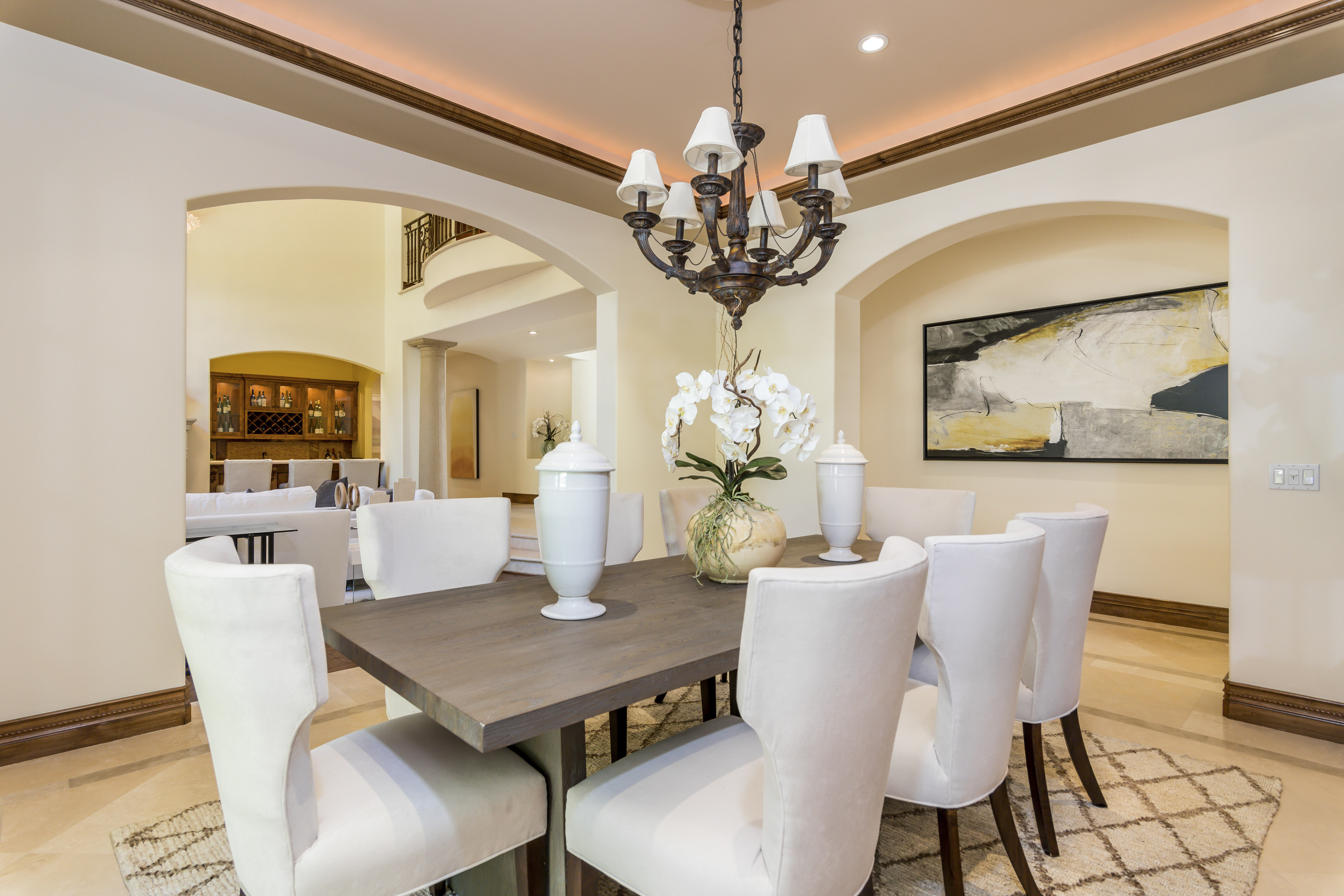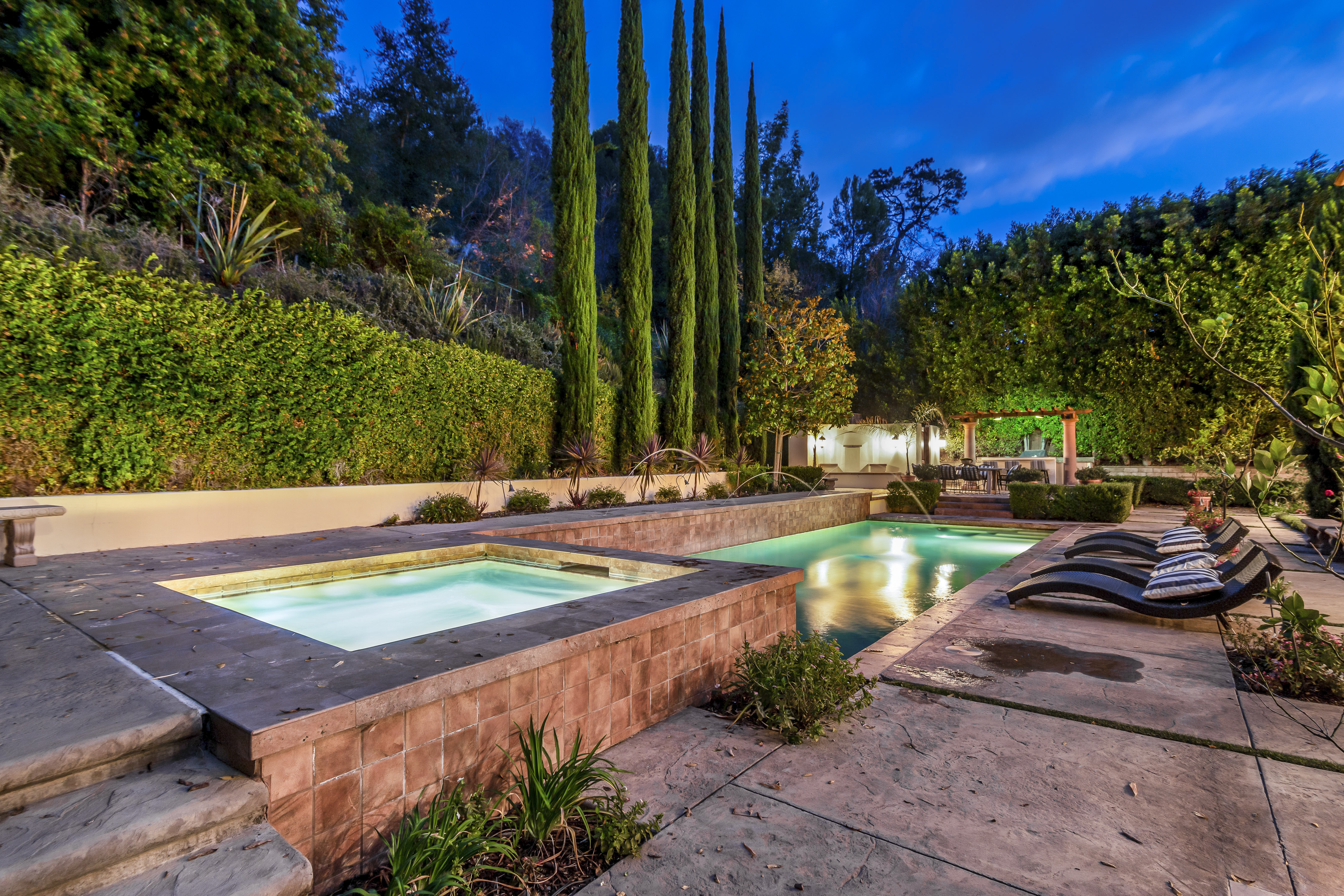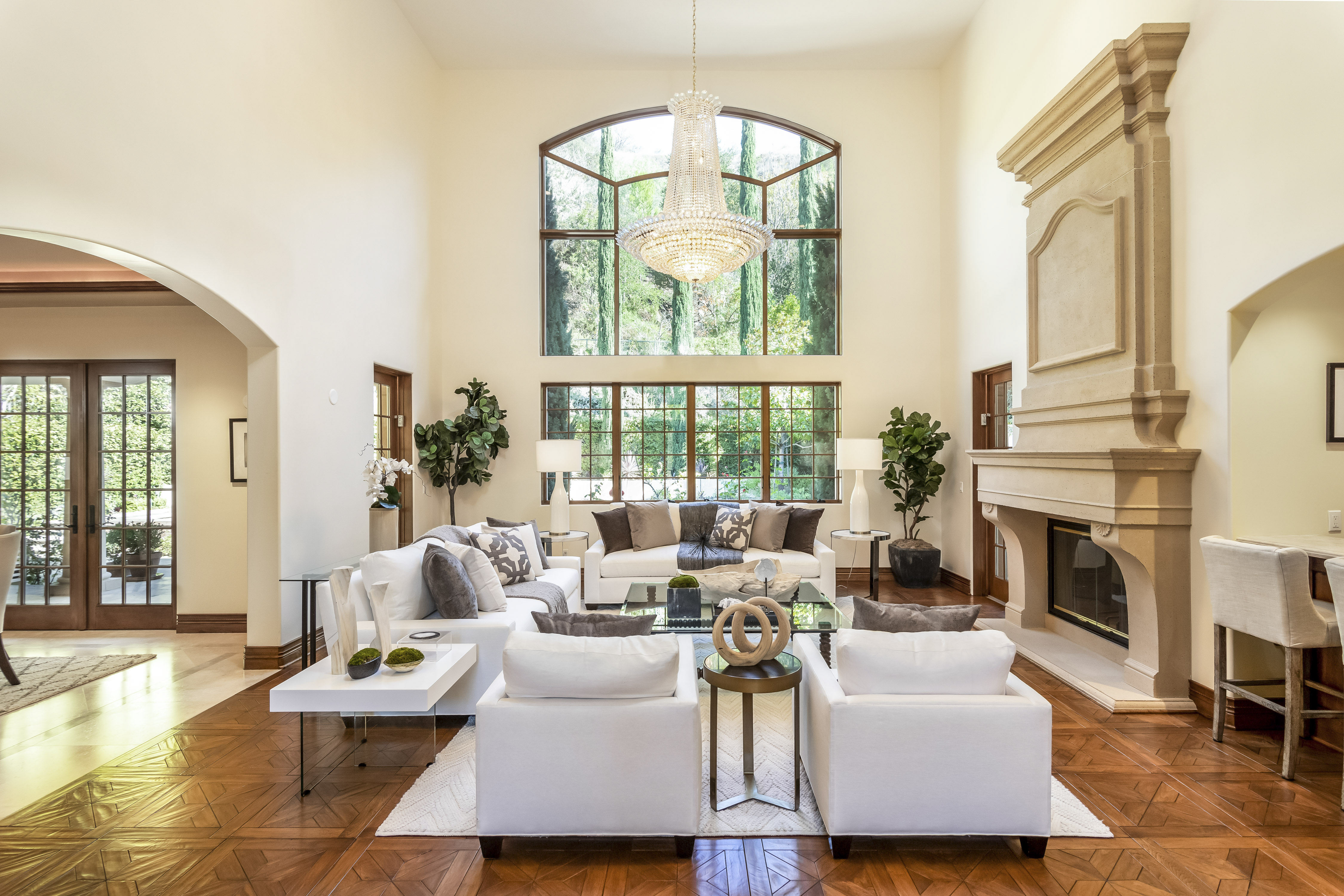 Sitting on almost an acre down a quiet street in the prestigious Longridge Estates, is this breathtaking Mediterranean Estate. This stunning home offers 6 bedrooms, 9 bathrooms, and almost 7,500 sft. As you go beyond privacy gates and enter the home, you are greeted by the spectacular entry with high pitched ceilings and a double grand staircase. On the main floor, the living room features two story windows, an opulent fireplace, wine room and wet bar. The spacious formal dining room flows into the incredible chef’s kitchen with stainless steel top of the line appliances, large center island, and an abundance of cabinets. The kitchen opens directly to the large and well appointed family room. Hardwood floors, crown moldings, custom built-ins, doors and windows overlooking and opening out to lush gardens. The first floor also holds two of the six bedrooms, each with their own bath. Upstairs the South wing of the home holds a private master retreat with large bedroom, sitting room, 2 extensive walk in closets, multiple balconies, and a luxurious bathroom. A see through fireplace is shared by the bedroom and bathroom. Connecting the two wings is a lovely family room area with french doors that open to a large balcony. The remaining four bedrooms each have their own private balconies and en suite bathrooms. On the lower level of the home, there a huge bonus room, wired to be used as a home theatre but also great as a gym, dance studio, or game room. The spacious backyard has a large salt water pool/spa and beautiful gardens with mature trees for total privacy. The backyard features separate sitting areas, bubbling fountain, and built in BBQ area w/ Viking grill, fridge, and wet bar, perfect for outdoor entertaining. Additional features include a 3-car garage, sound wiring throughout, security system, water softener, and so much more!