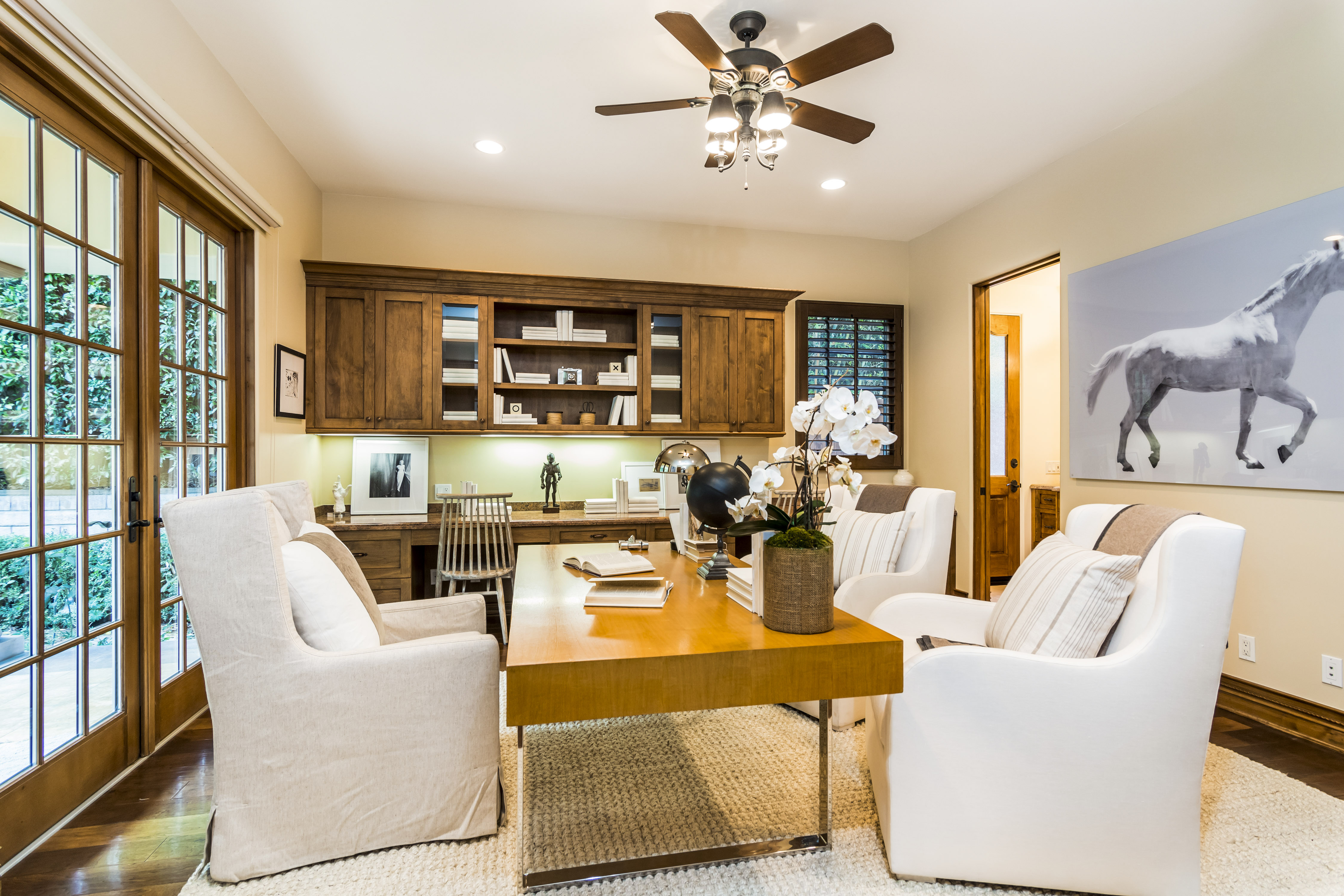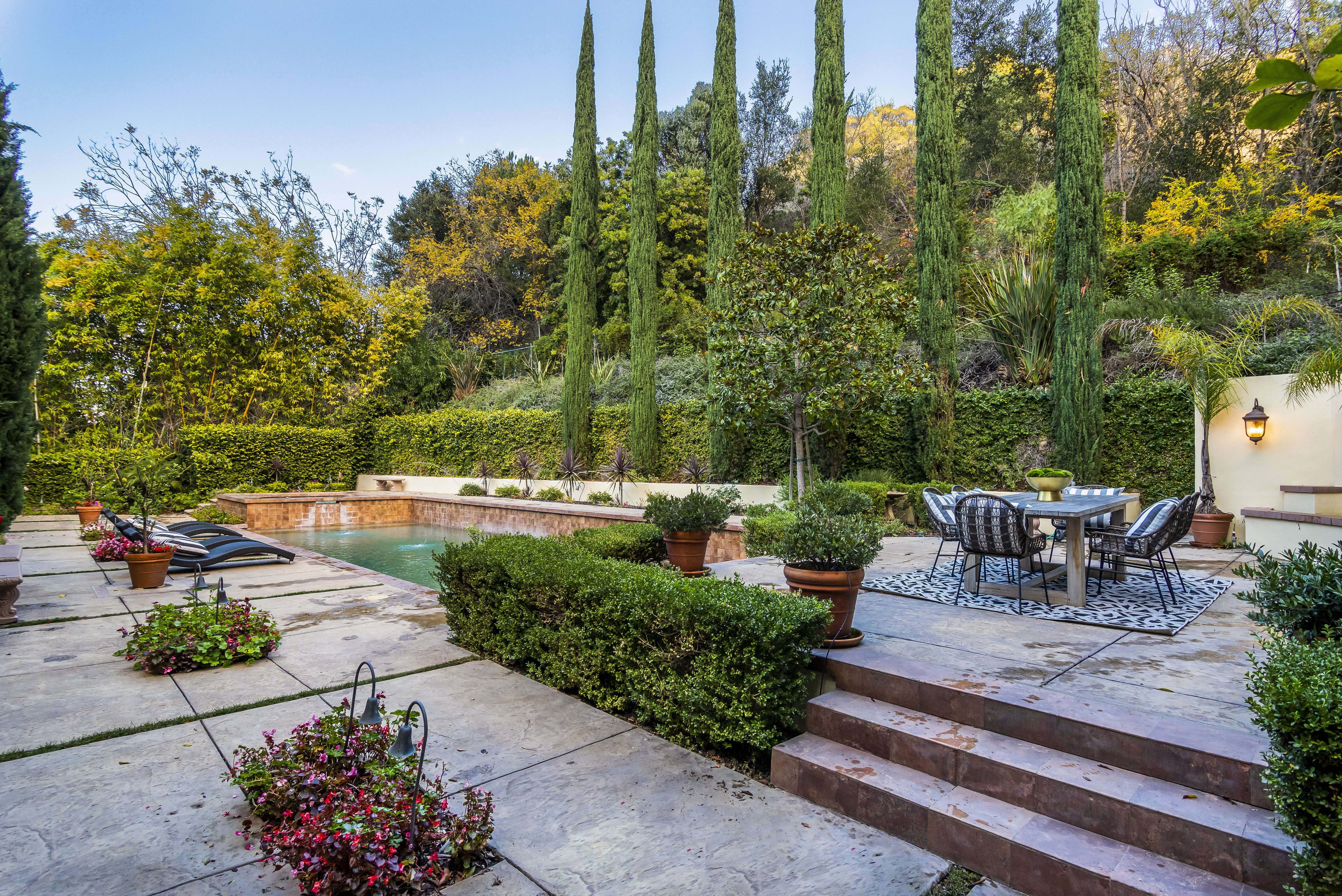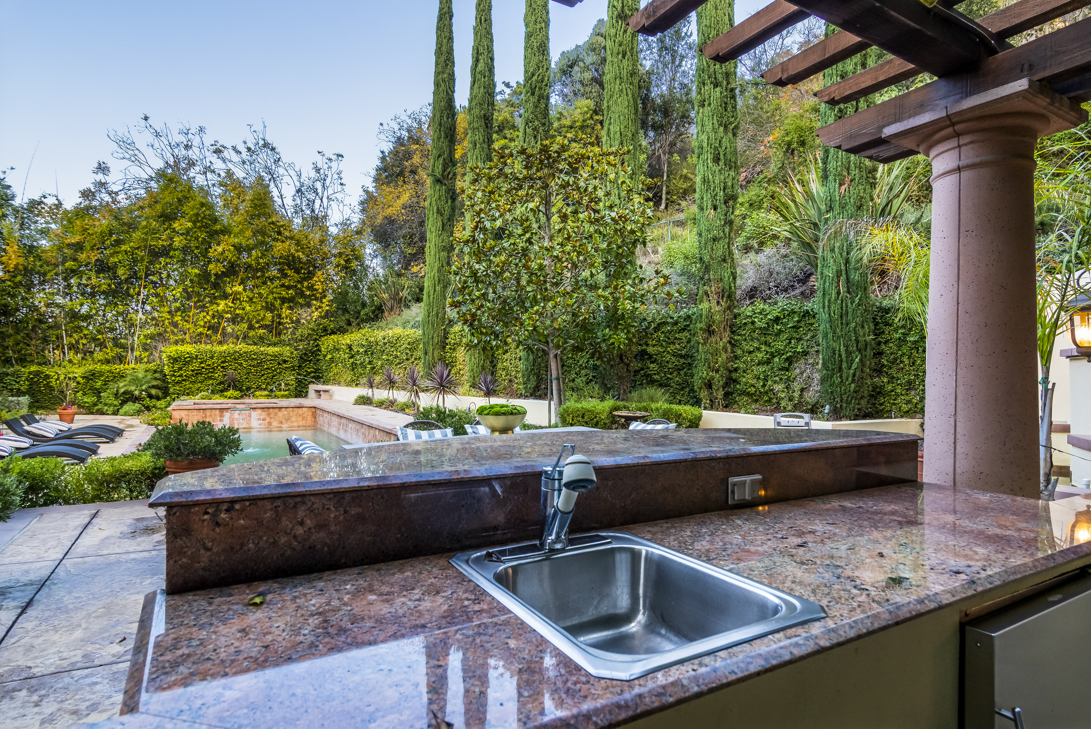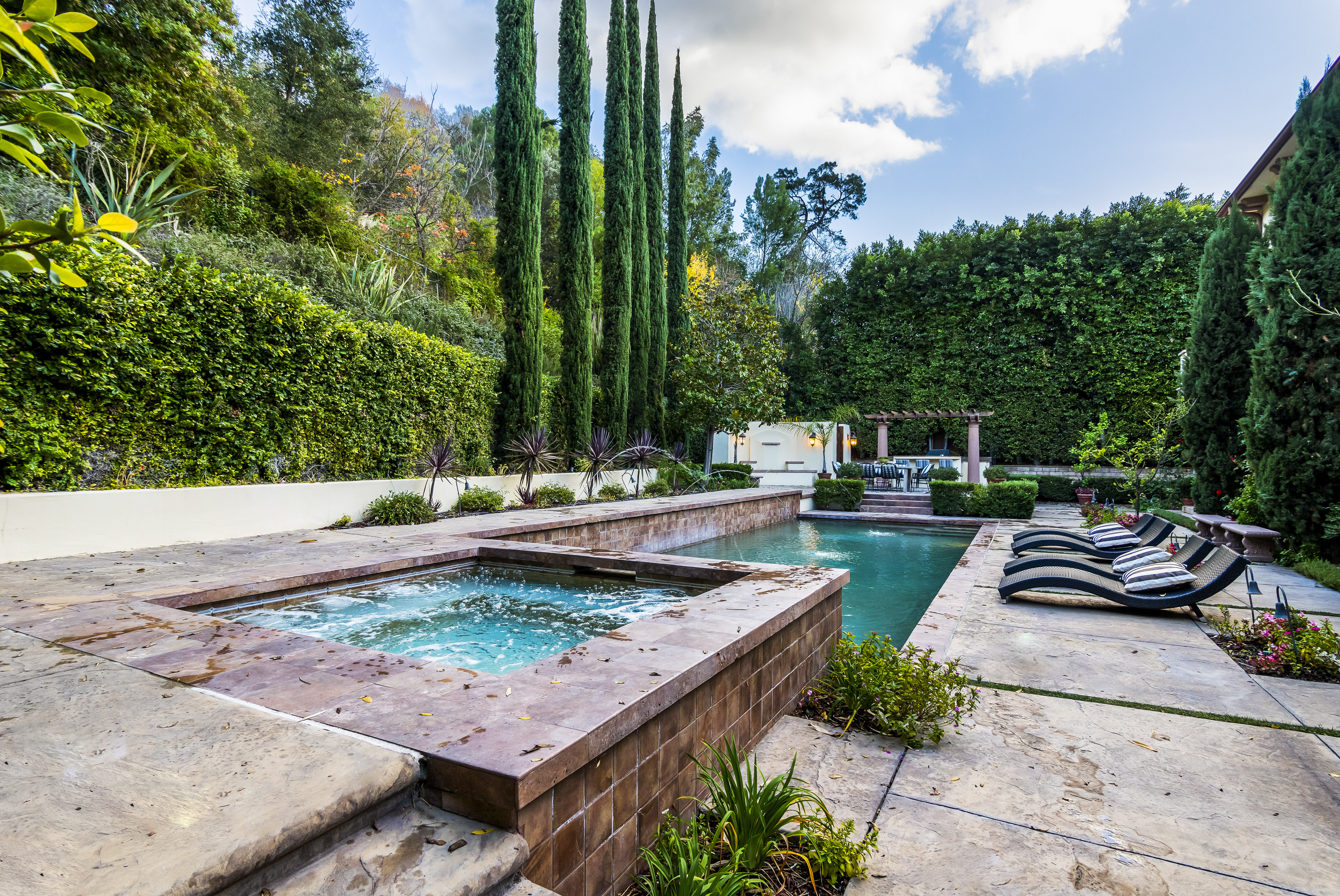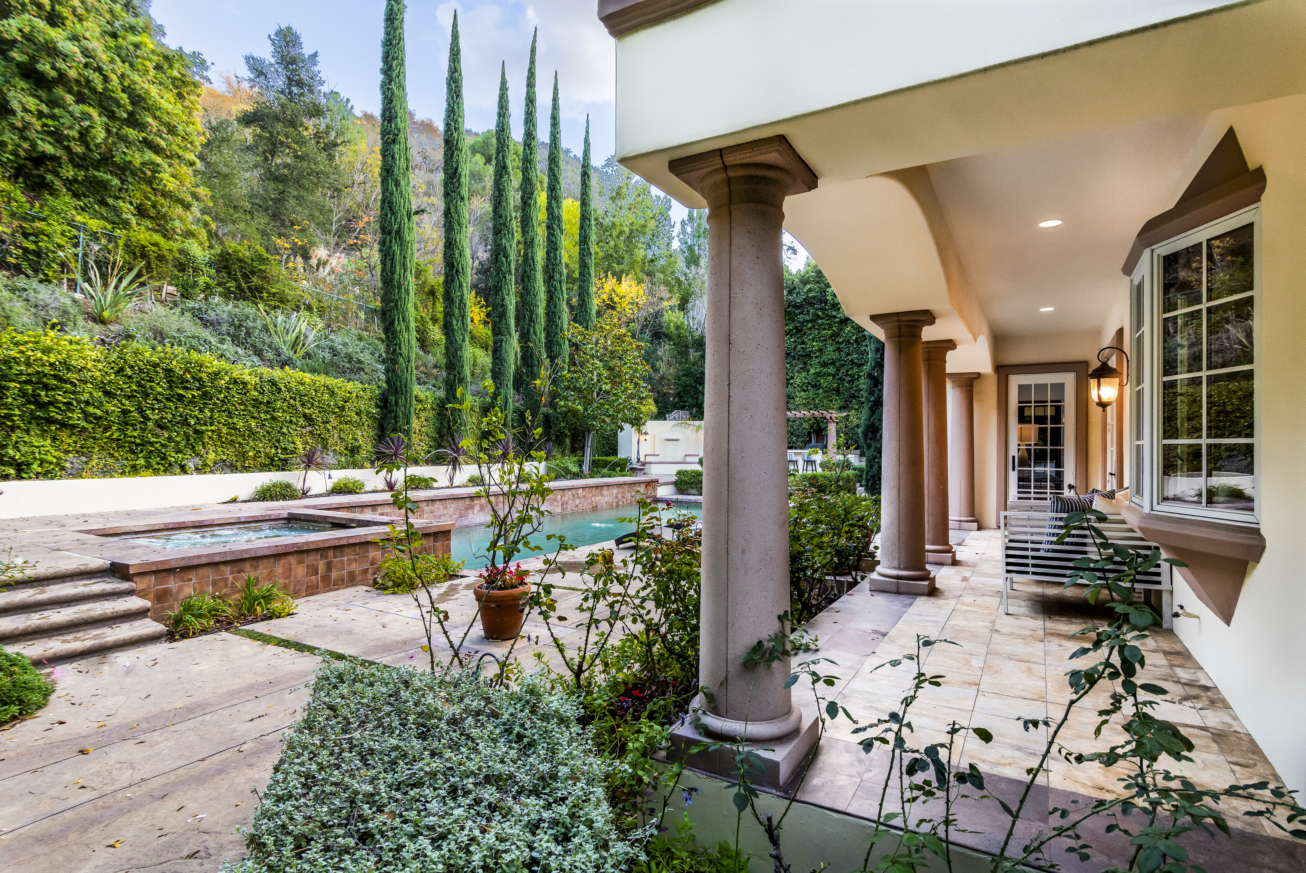 Sitting on almost an acre down a quiet street in the prestigious Longridge Estates, is this breathtaking Mediterranean Estate. This stunning home offers 6 bedrooms, 9 bathrooms, and almost 7,500 sft. As you go beyond privacy gates and enter the home, you are greeted by the spectacular entry with high pitched ceilings and a double grand staircase. On the main floor, the living room features two story windows, an opulent fireplace, wine room and wet bar. The spacious formal dining room flows into the incredible chef’s kitchen with stainless steel top of the line appliances, large center island, and an abundance of cabinets. The kitchen opens directly to the large and well appointed family room. Hardwood floors, crown moldings, custom built-ins, doors and windows overlooking and opening out to lush gardens. The first floor also holds two of the six bedrooms, each with their own bath. Upstairs the South wing of the home holds a private master retreat with large bedroom, sitting room, 2 extensive walk in closets, multiple balconies, and a luxurious bathroom. A see through fireplace is shared by the bedroom and bathroom. Connecting the two wings is a lovely family room area with french doors that open to a large balcony. The remaining four bedrooms each have their own private balconies and en suite bathrooms. On the lower level of the home, there a huge bonus room, wired to be used as a home theatre but also great as a gym, dance studio, or game room. The spacious backyard has a large salt water pool/spa and beautiful gardens with mature trees for total privacy. The backyard features separate sitting areas, bubbling fountain, and built in BBQ area w/ Viking grill, fridge, and wet bar, perfect for outdoor entertaining. Additional features include a 3-car garage, sound wiring throughout, security system, water softener, and so much more!