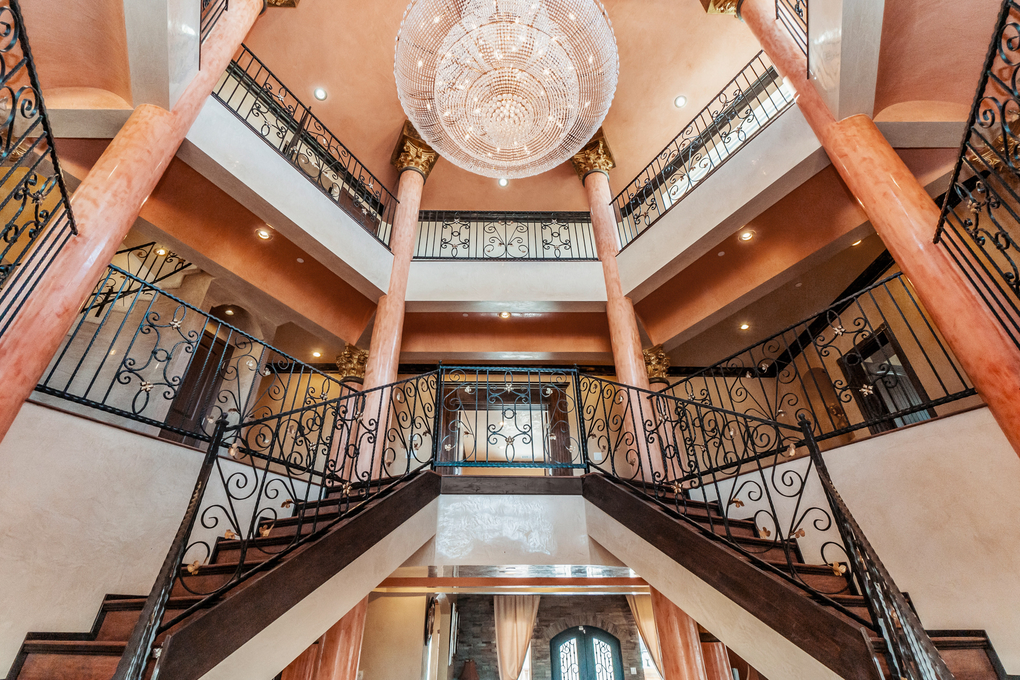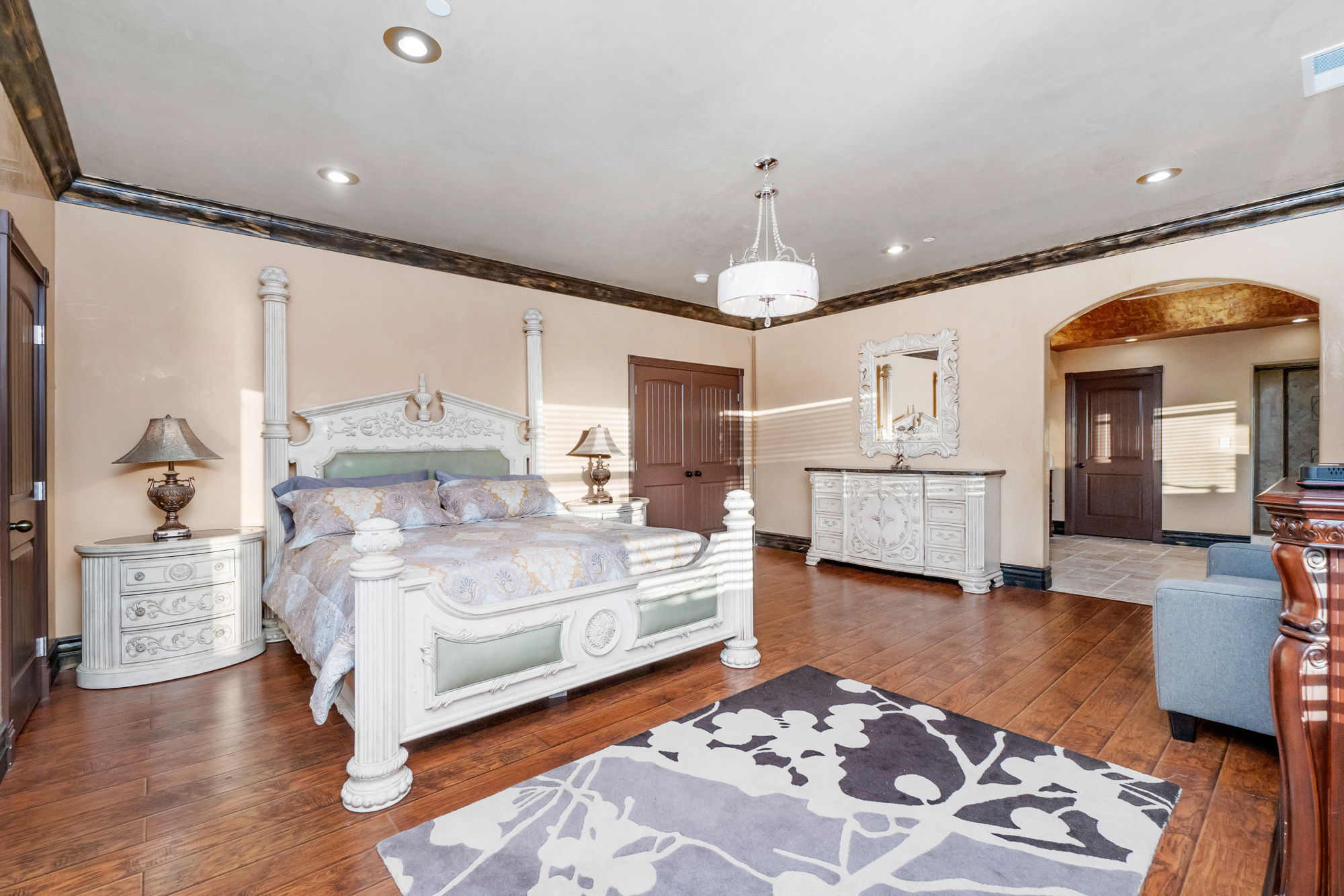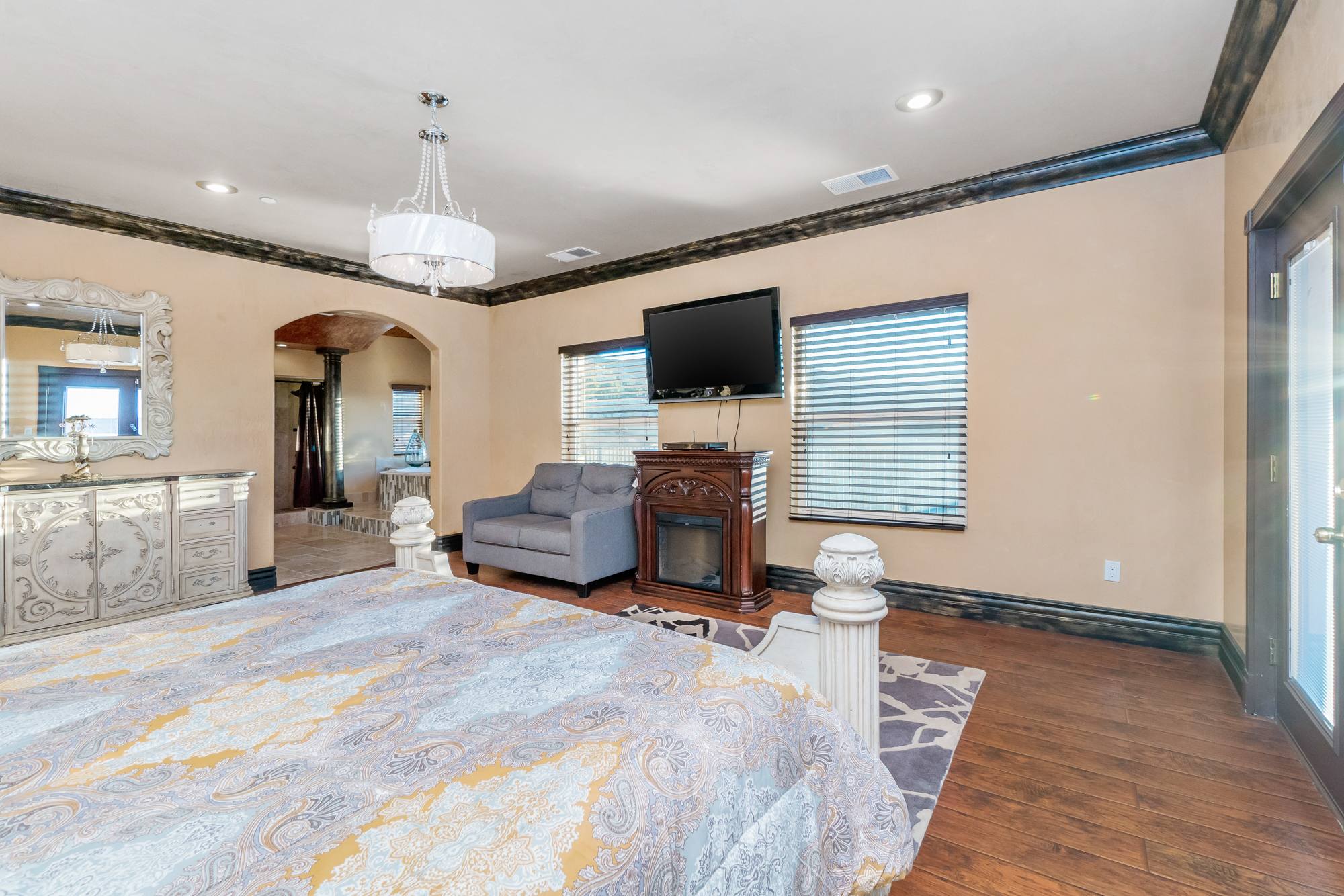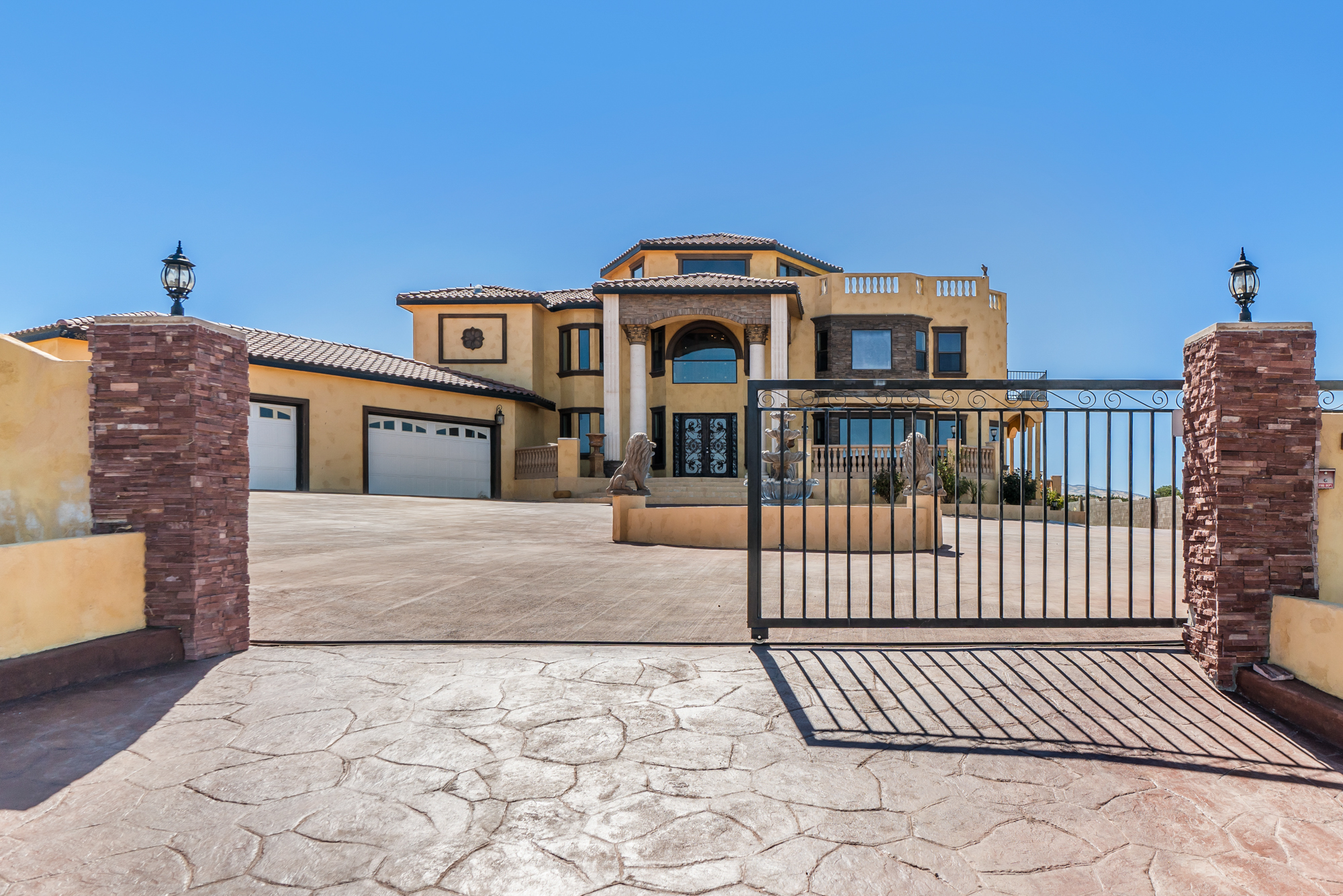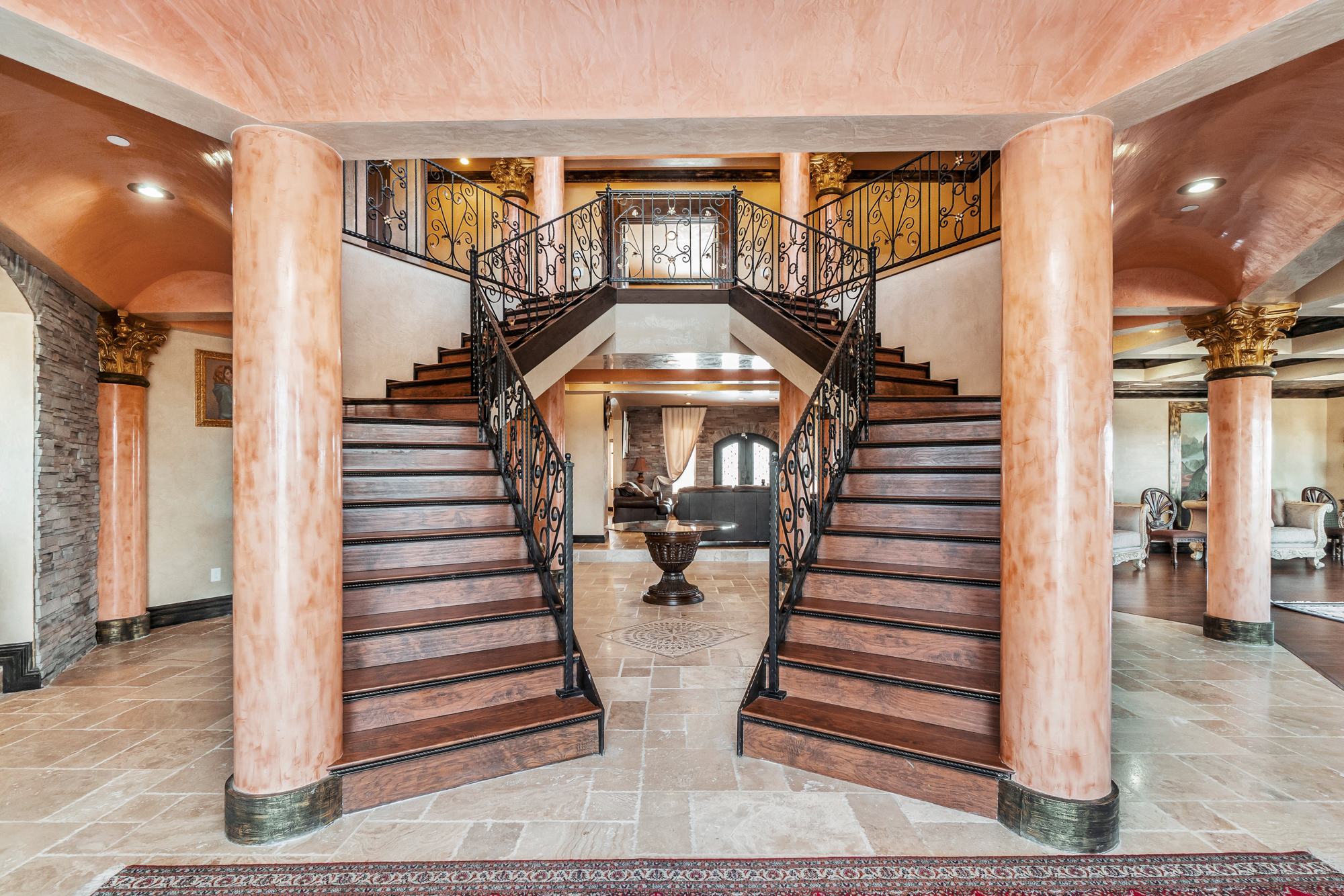 Welcome to your very own custom mediterranean palace situated on over a 2 acre lot. Access this estate via private drive leading to exclusive gates welcoming you through the massive circular driveway w/ a stunning centerpiece fountain. This showstopping home boasts just under 6,700 sqft of luxurious refinement. Upon entry you are greeted w/ an elegant foyer featuring an oversized chandelier, soaring ceilings, large columns, artistry, imported travertine, venetian plaster, & rich custom craftsmanship that extends all throughout. The main level offers an incredible open floor plan designed for effortless entertaining- formal living room, massive dining room, large family room, breakfast room, bonus room, & ensuite bedroom. Gourmet chef?s kitchen features a center island w/ room for seating, 2 walk in pantries, top of the line appliances, & 2 oversized sinks. Dual stairs lead up to the 2nd floor featuring 4 outstanding ensuite bedrooms, family room, laundry room, & lounge space w/ large windows w/ obstructed views of the gleaming Lake. Master suite offers private balcony, walk in closet, jacuzzi tub, privacy toilet, & dual sinks. 3rd floor wraparound looks to the downstairs floors & leads to rooftop patio, perfect for hosting or lounging & gazing at the stars. Vast backyard has plenty of space for all your needs w/ a kids playground & an additional 1 acre w/ private road for adding building. This outstanding estate checks all the boxes for private, luxurious living.
