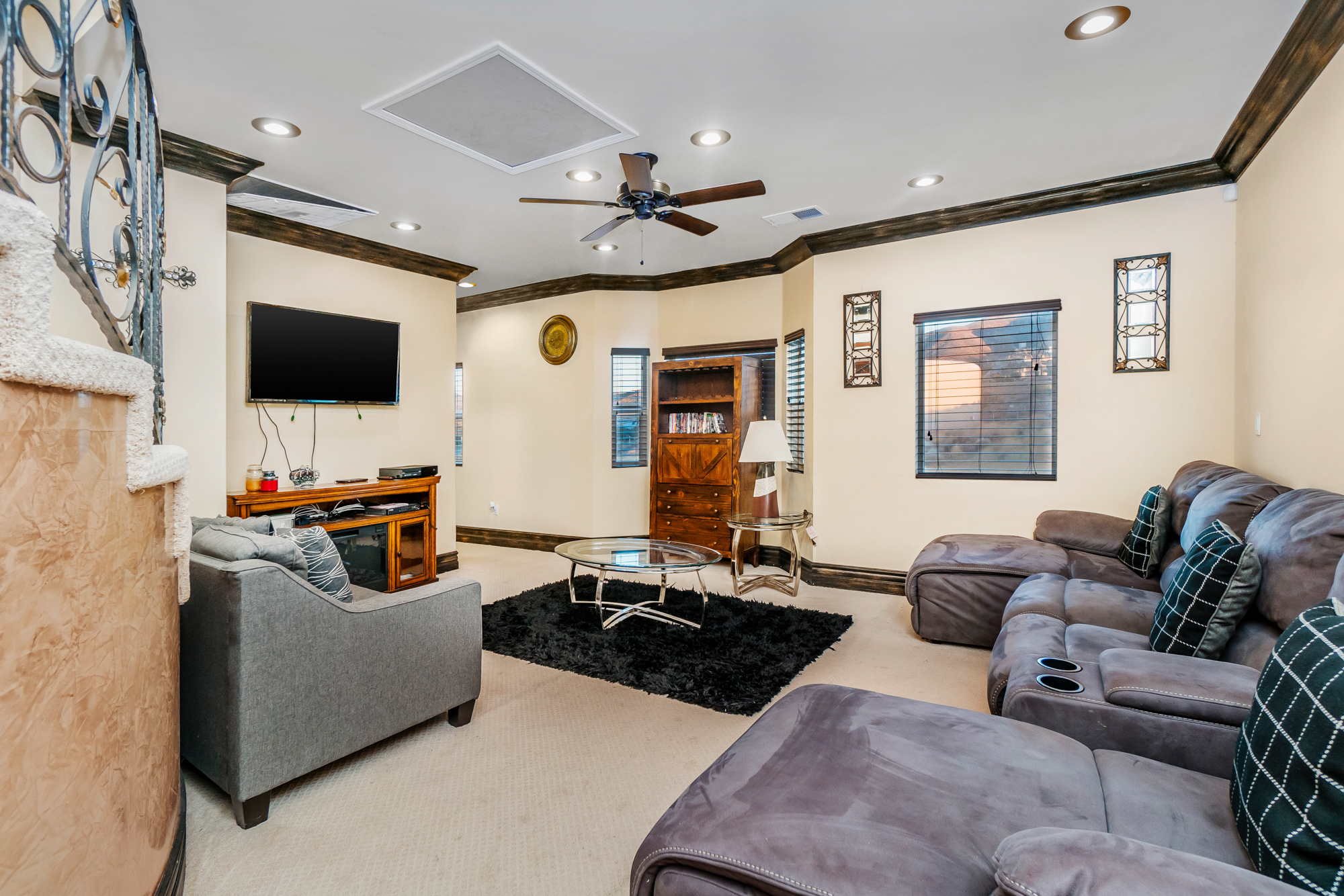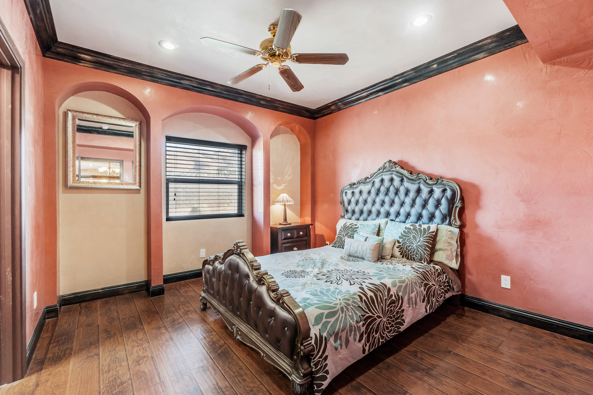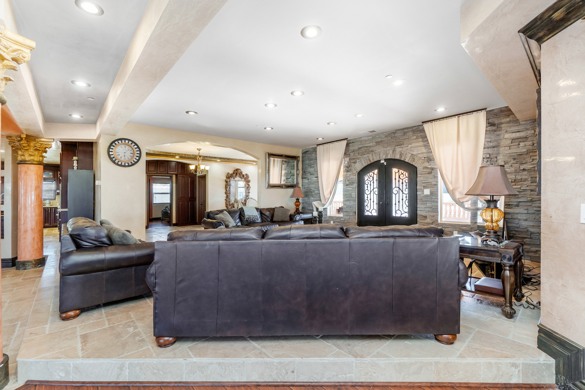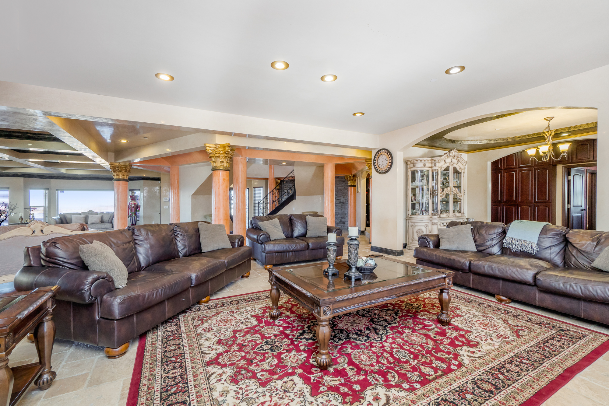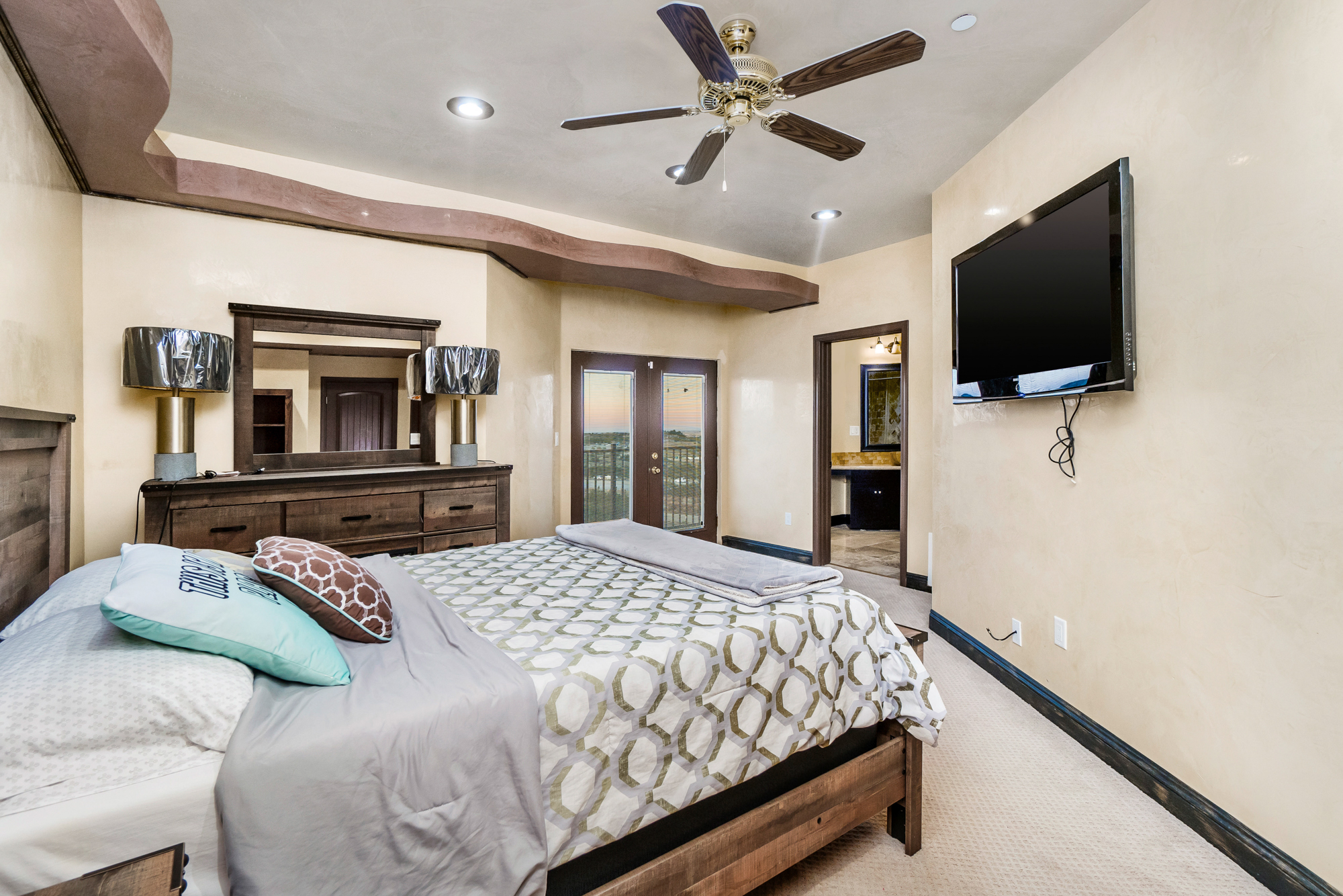 Welcome to your very own custom mediterranean palace situated on over a 2 acre lot. Access this estate via private drive leading to exclusive gates welcoming you through the massive circular driveway w/ a stunning centerpiece fountain. This showstopping home boasts just under 6,700 sqft of luxurious refinement. Upon entry you are greeted w/ an elegant foyer featuring an oversized chandelier, soaring ceilings, large columns, artistry, imported travertine, venetian plaster, & rich custom craftsmanship that extends all throughout. The main level offers an incredible open floor plan designed for effortless entertaining- formal living room, massive dining room, large family room, breakfast room, bonus room, & ensuite bedroom. Gourmet chef?s kitchen features a center island w/ room for seating, 2 walk in pantries, top of the line appliances, & 2 oversized sinks. Dual stairs lead up to the 2nd floor featuring 4 outstanding ensuite bedrooms, family room, laundry room, & lounge space w/ large windows w/ obstructed views of the gleaming Lake. Master suite offers private balcony, walk in closet, jacuzzi tub, privacy toilet, & dual sinks. 3rd floor wraparound looks to the downstairs floors & leads to rooftop patio, perfect for hosting or lounging & gazing at the stars. Vast backyard has plenty of space for all your needs w/ a kids playground & an additional 1 acre w/ private road for adding building. This outstanding estate checks all the boxes for private, luxurious living.