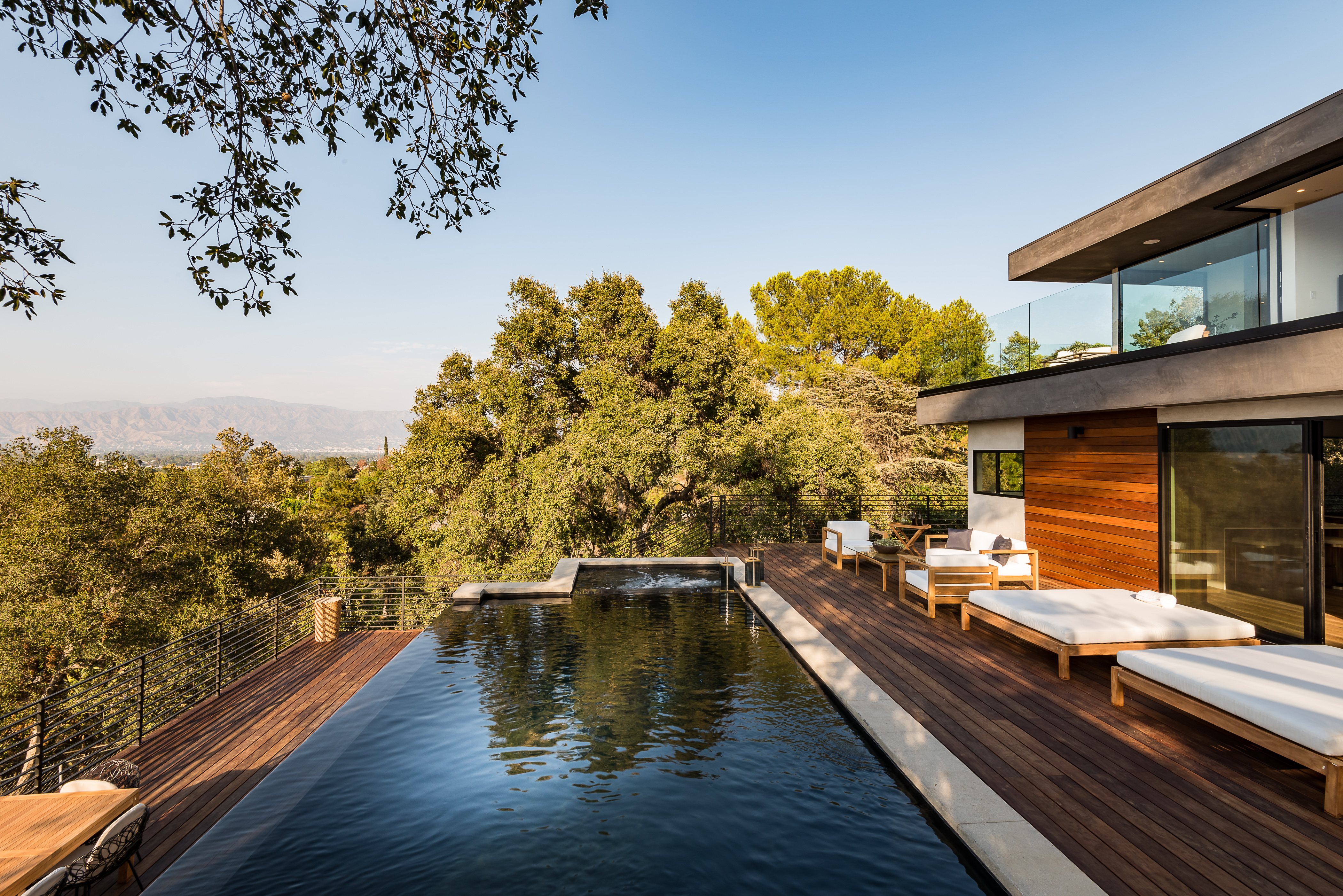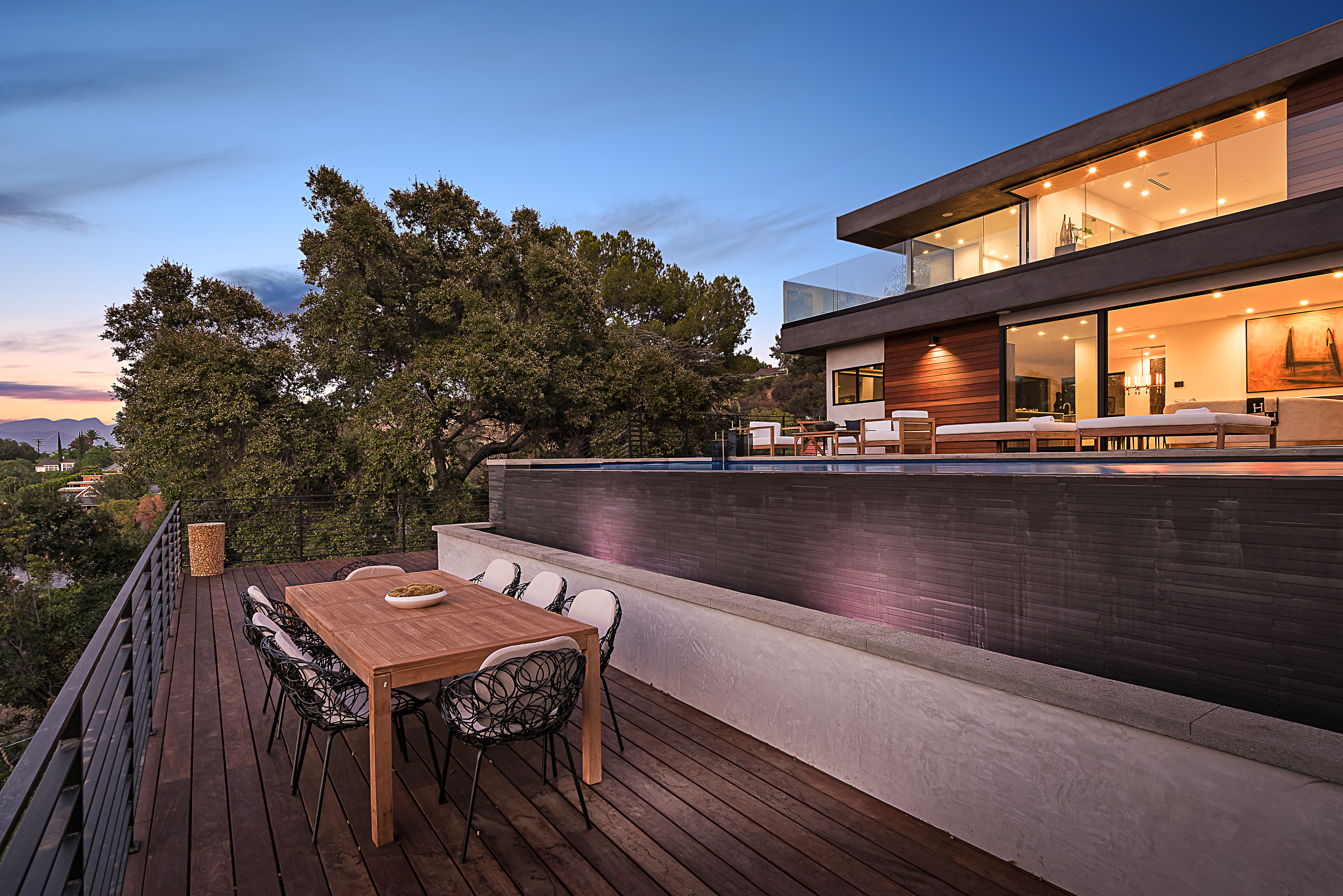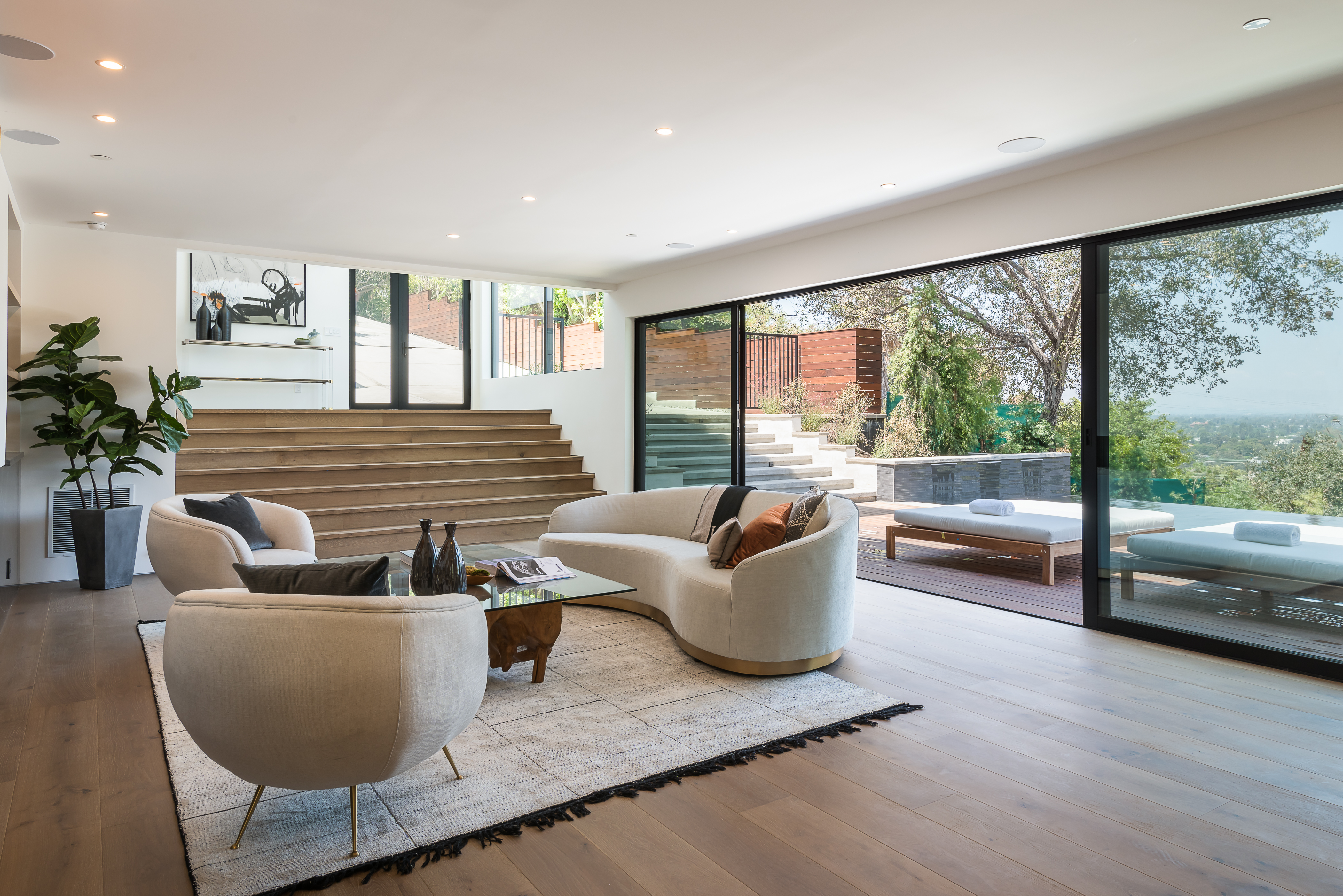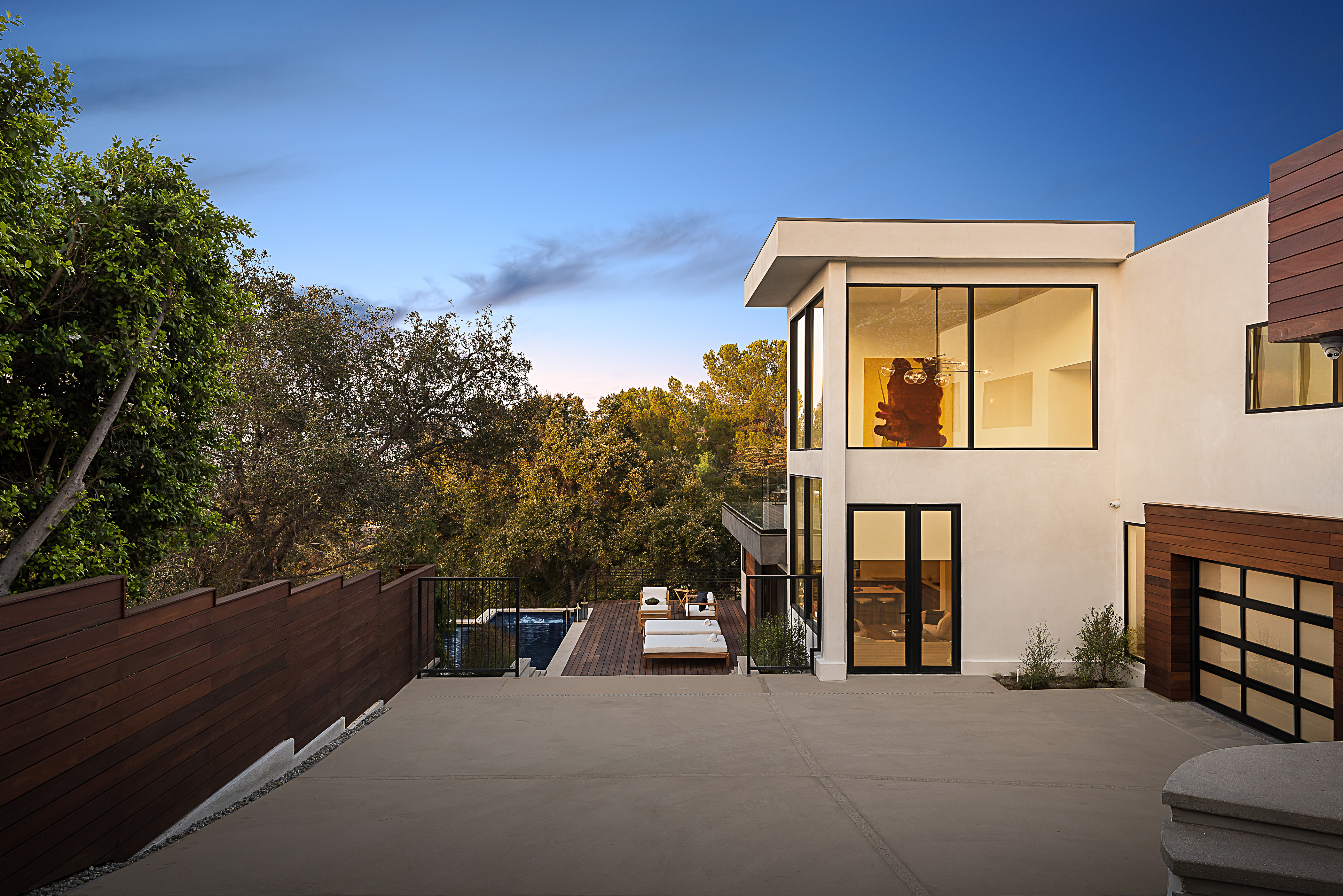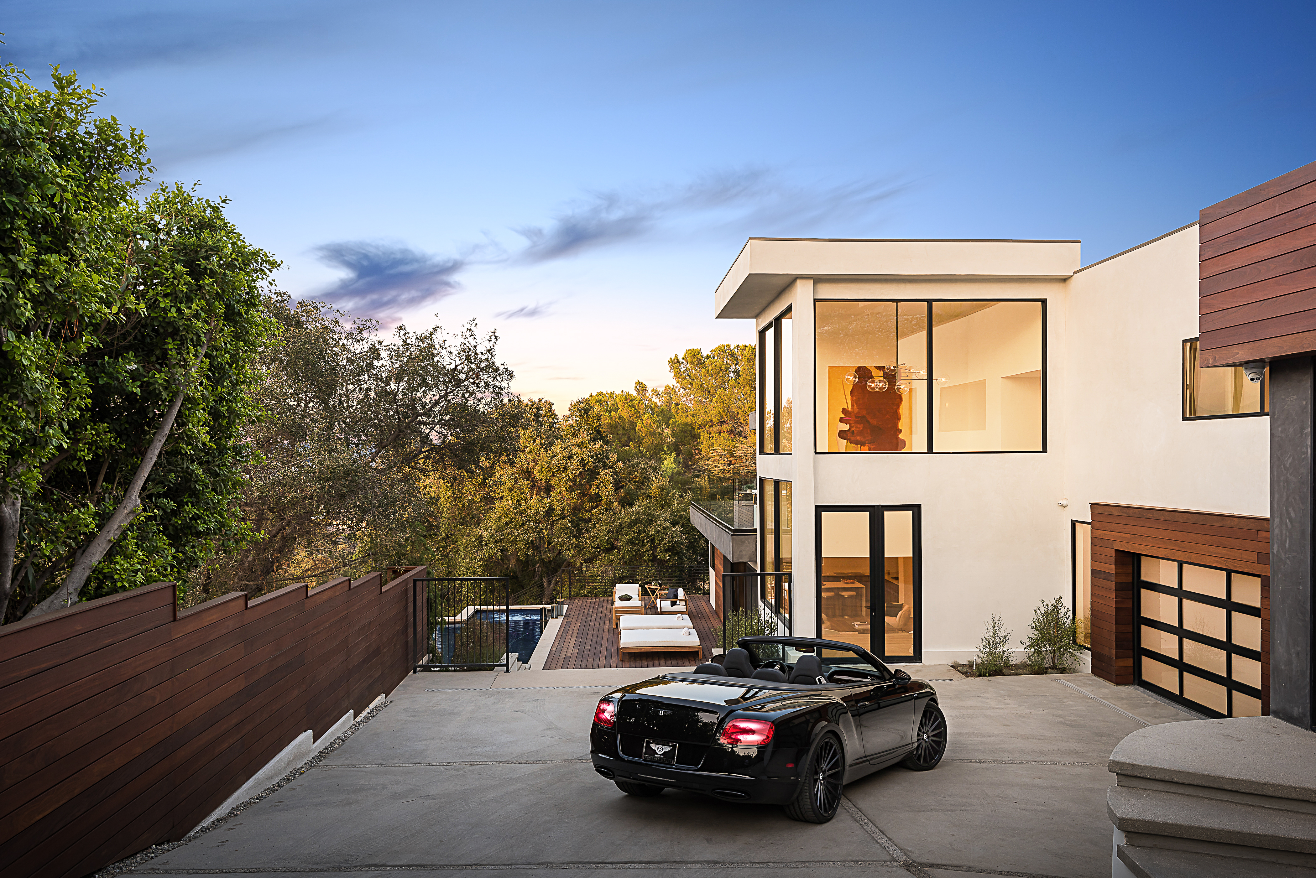 Nestled in the Hills of Studio City, this luxurious contemporary newly developed estate offers a masterful achievement of concept and design. Long driveway leads to a secluded, half acre property with unobstructed city and mountain views. The 5050 square foot modern residence showcases a warm, sophisticated interior, capable of accommodating multiple layout options. Soaring high ceilings and walls of glass seamlessly integrate indoor and outdoor living spaces while bringing phenomenal views to the forefront of the living experience. ccccxpansive lower level includes a linear double sided fireplace, surround sound system, gourmet kitchen with large center stone island. Ensuite bedroom tucked into its own corner downstairs includes private balcony w/ hillside views. A sculptural staircase leads to a second and third level, which holds three light-filled, ensuite bedrooms. A grand 1200 Sq Ft Master suite is equipped with sliding glass doors to a large terrace showcasing stretched valley views, spacious walk in-closets, and exquisite bathroom with a free standing bath tub w/ picturesque views. Serving as a natural extension of the home’s interiors, a zero-edge infinity pool and spa spill over the hillside, while expansive, sunlit decks take full advantage of the sweeping views. A masterpiece in its own right, a separate guest house holds a full kitchen, bedroom, bathroom, and sitting area.