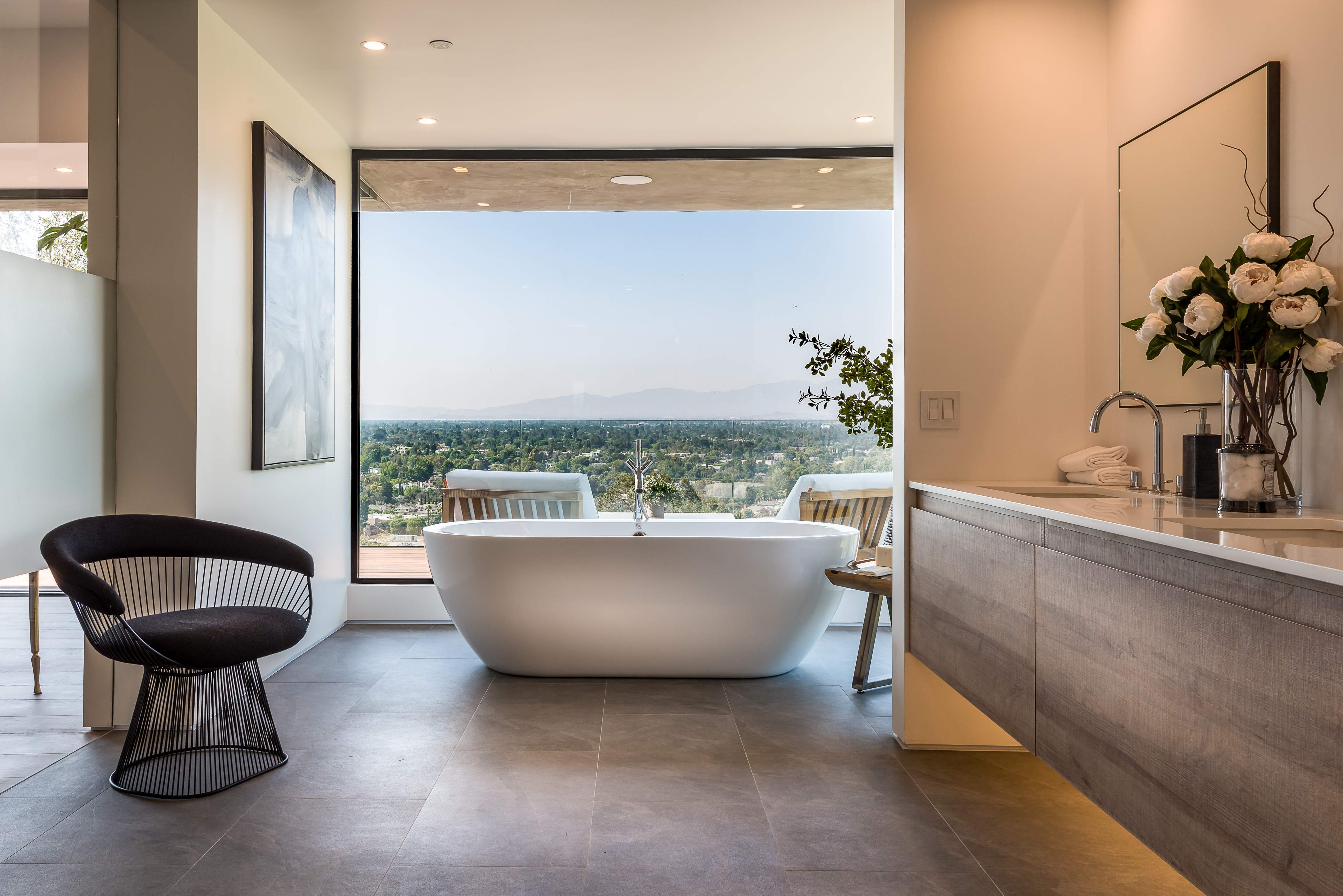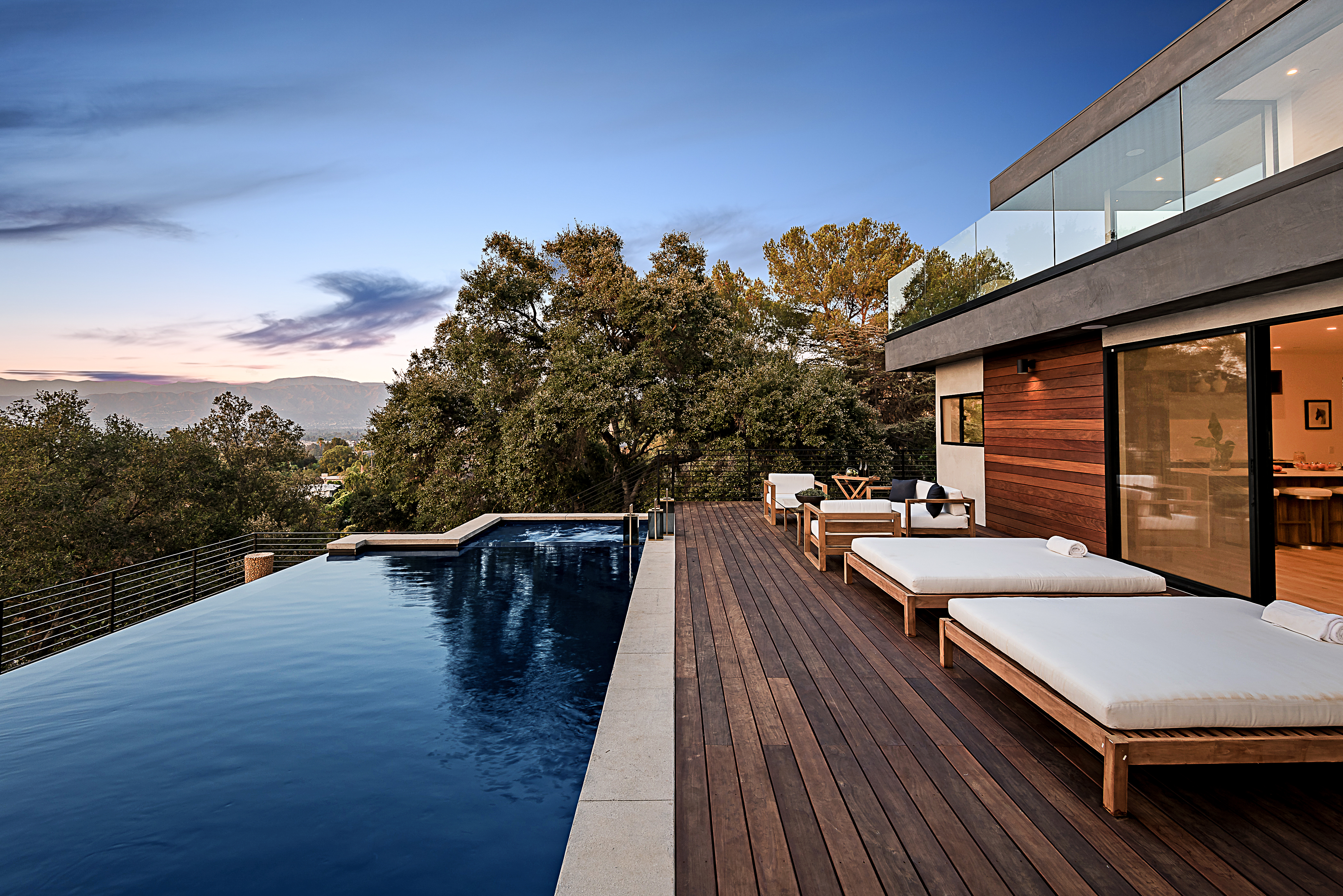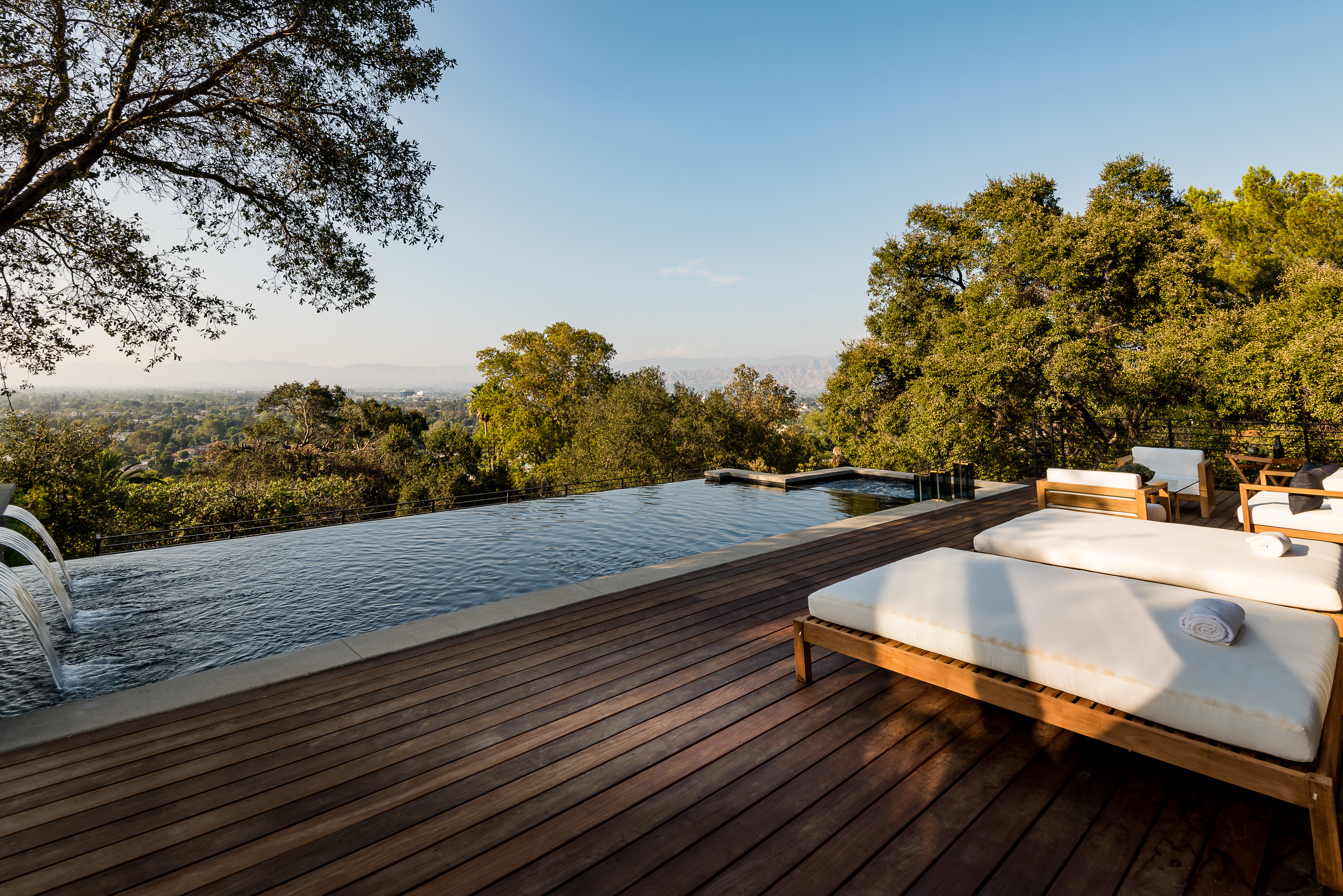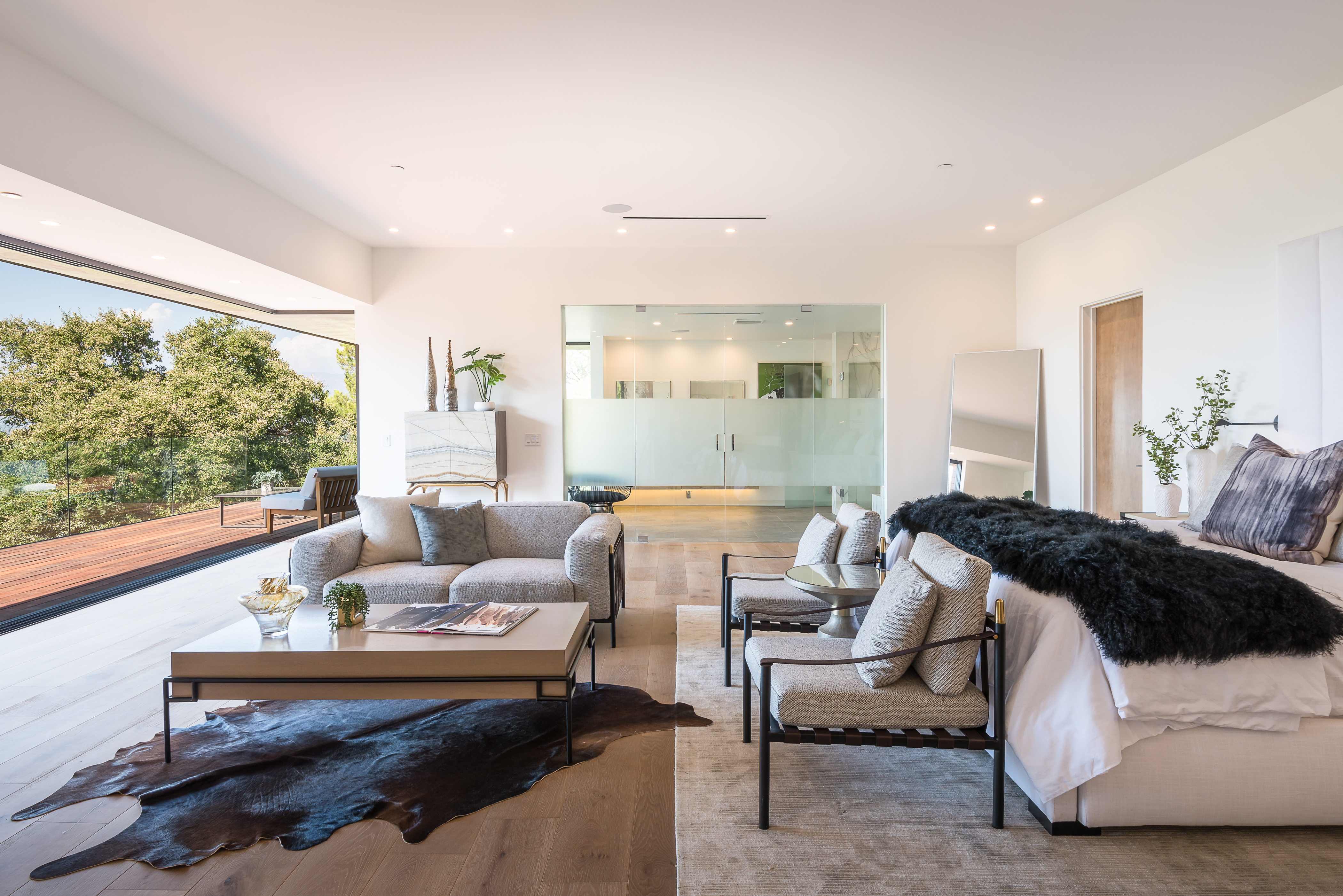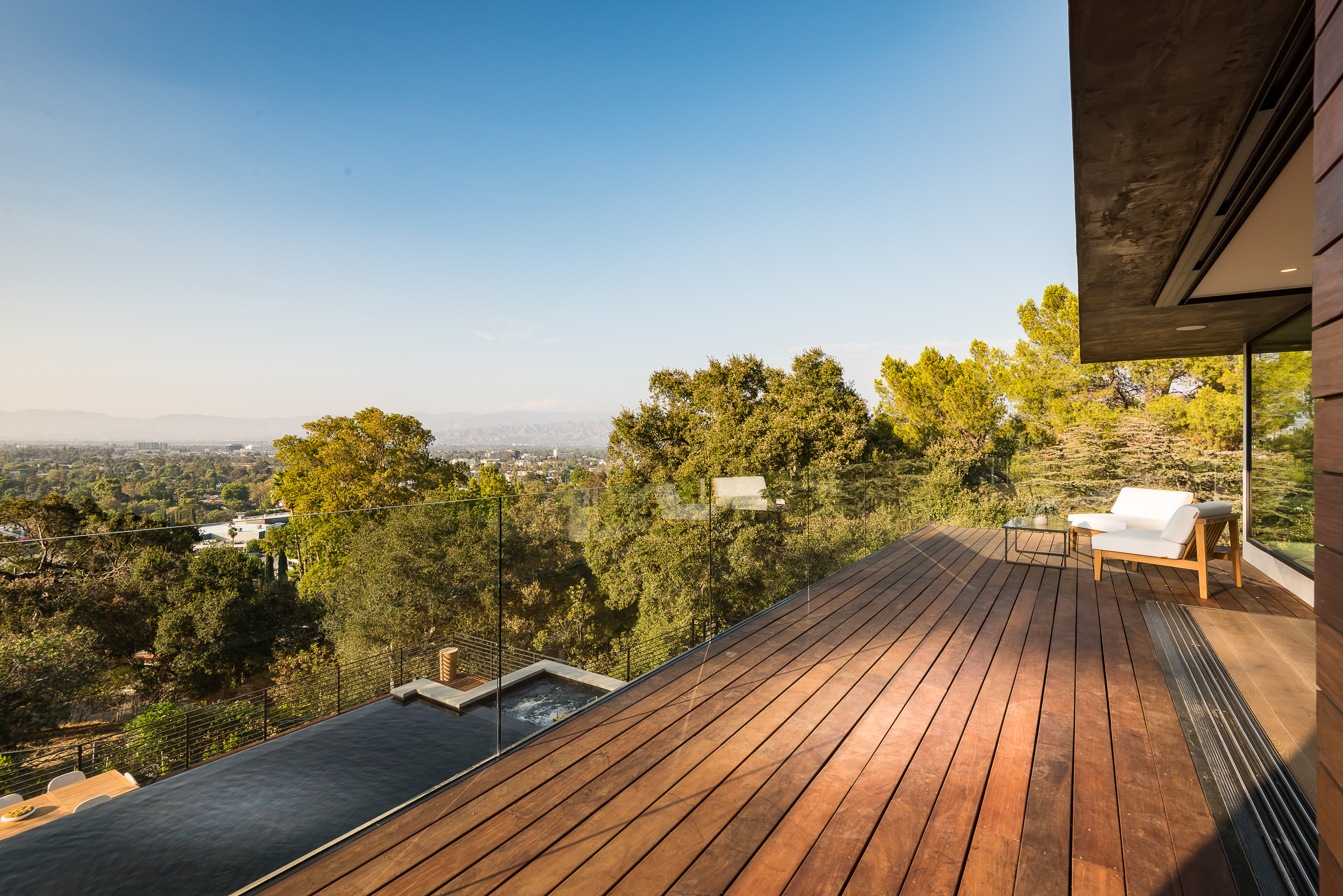Nestled in the Hills of Studio City, this luxurious contemporary newly developed estate offers a masterful achievement of concept and design. Long driveway leads to a secluded, half acre property with unobstructed city and mountain views. The 5050 square foot modern residence showcases a warm, sophisticated interior, capable of accommodating multiple layout options. Soaring high ceilings and walls of glass seamlessly integrate indoor and outdoor living spaces while bringing phenomenal views to the forefront of the living experience. ccccxpansive lower level includes a linear double sided fireplace, surround sound system, gourmet kitchen with large center stone island. Ensuite bedroom tucked into its own corner downstairs includes private balcony w/ hillside views. A sculptural staircase leads to a second and third level, which holds three light-filled, ensuite bedrooms. A grand 1200 Sq Ft Master suite is equipped with sliding glass doors to a large terrace showcasing stretched valley views, spacious walk in-closets, and exquisite bathroom with a free standing bath tub w/ picturesque views. Serving as a natural extension of the home’s interiors, a zero-edge infinity pool and spa spill over the hillside, while expansive, sunlit decks take full advantage of the sweeping views. A masterpiece in its own right, a separate guest house holds a full kitchen, bedroom, bathroom, and sitting area.