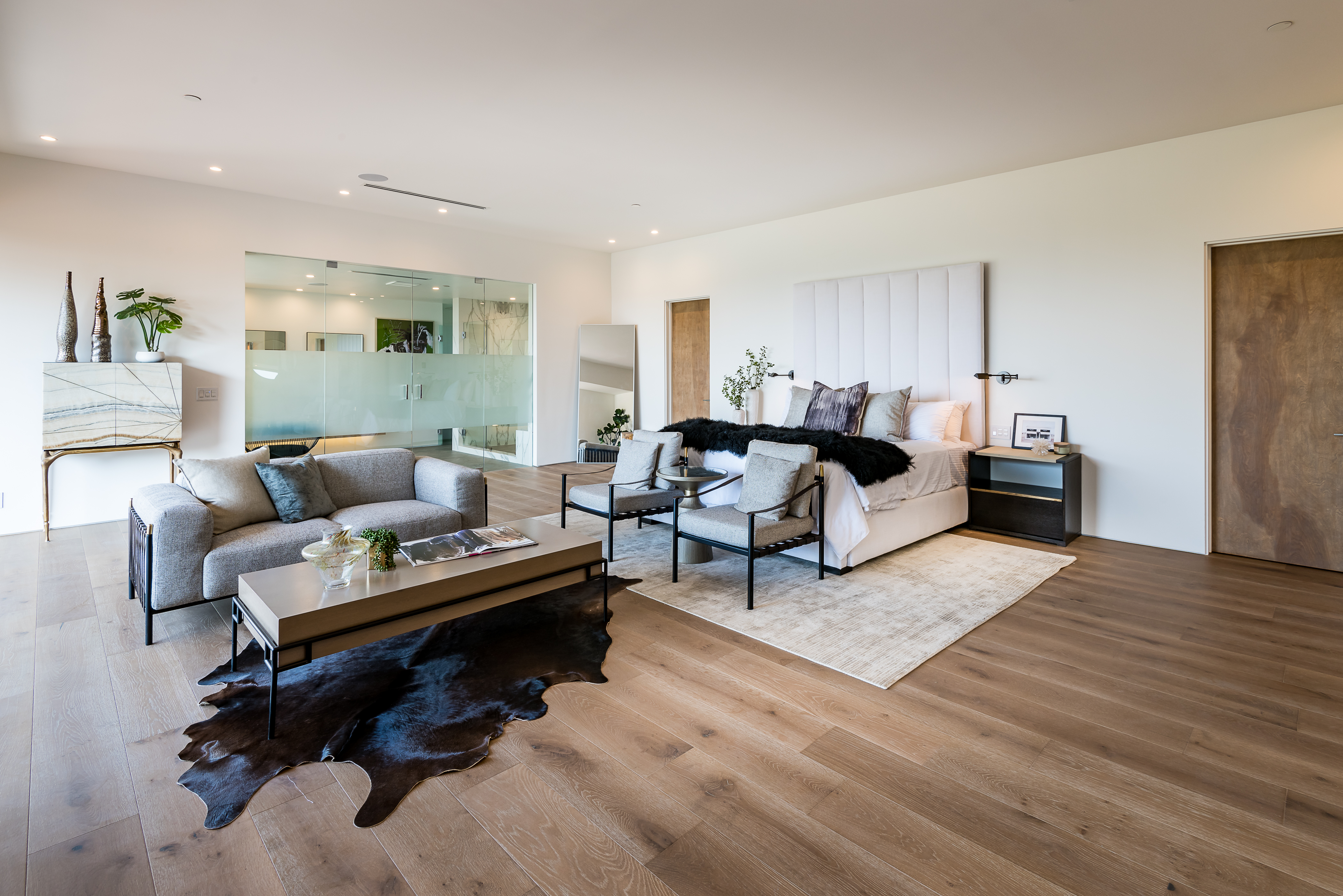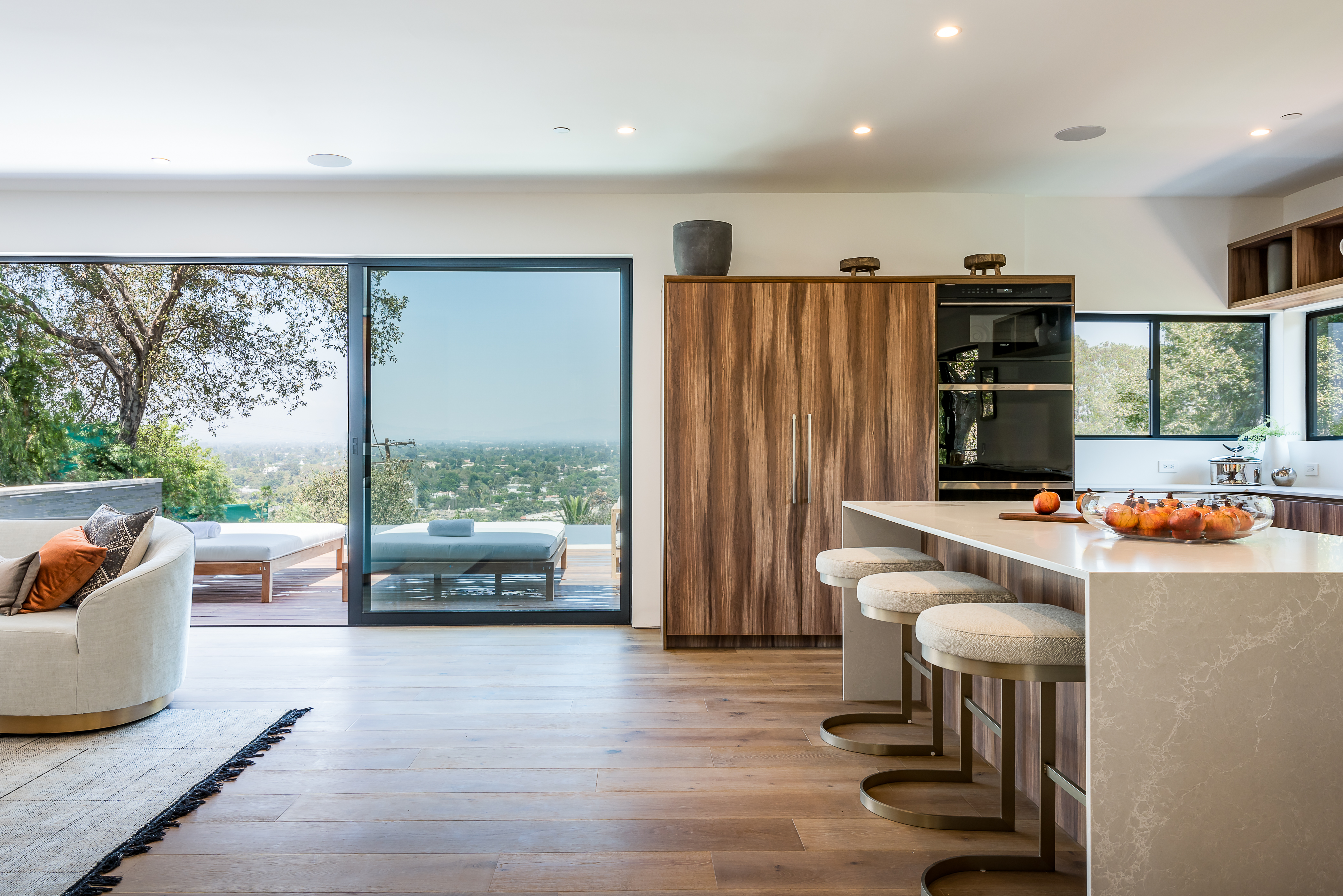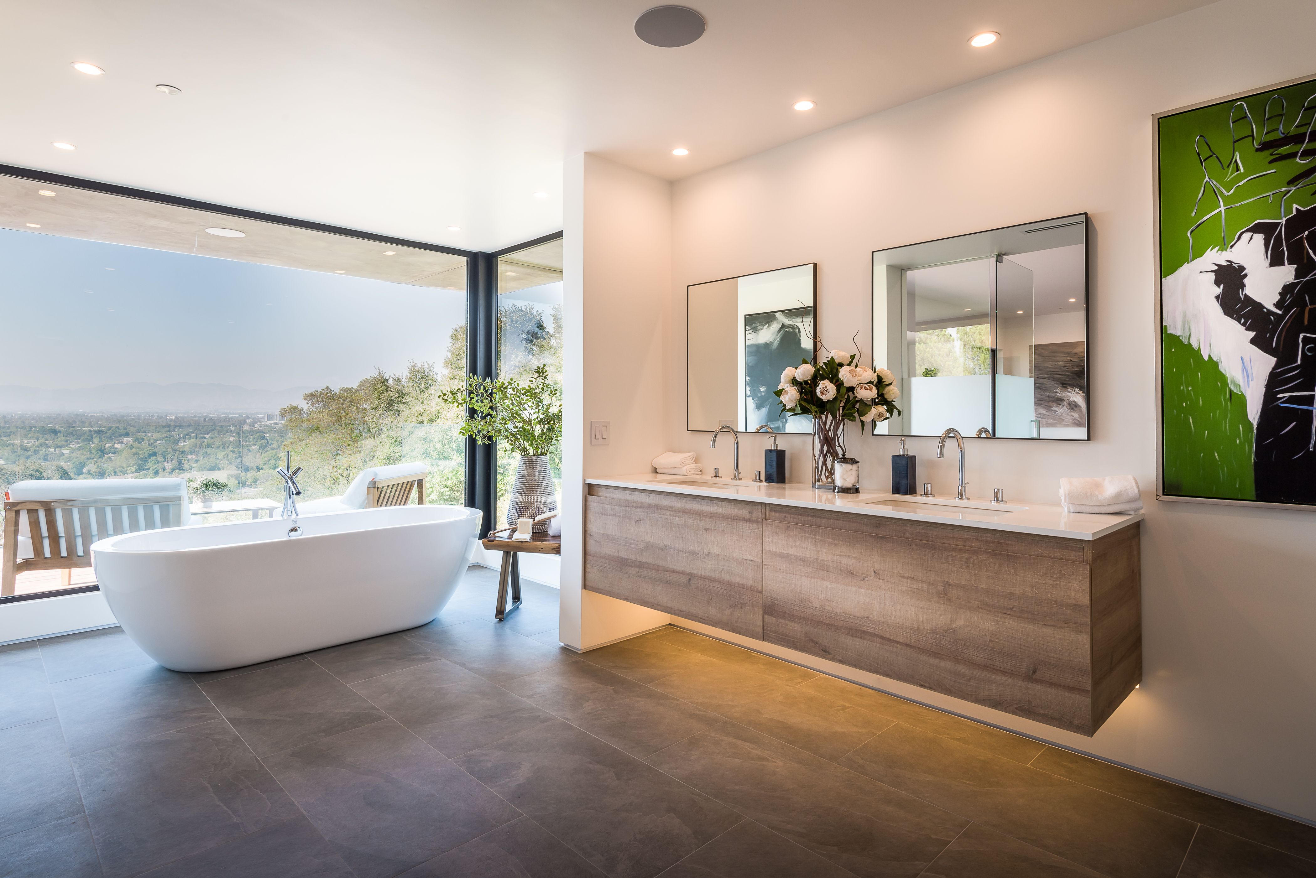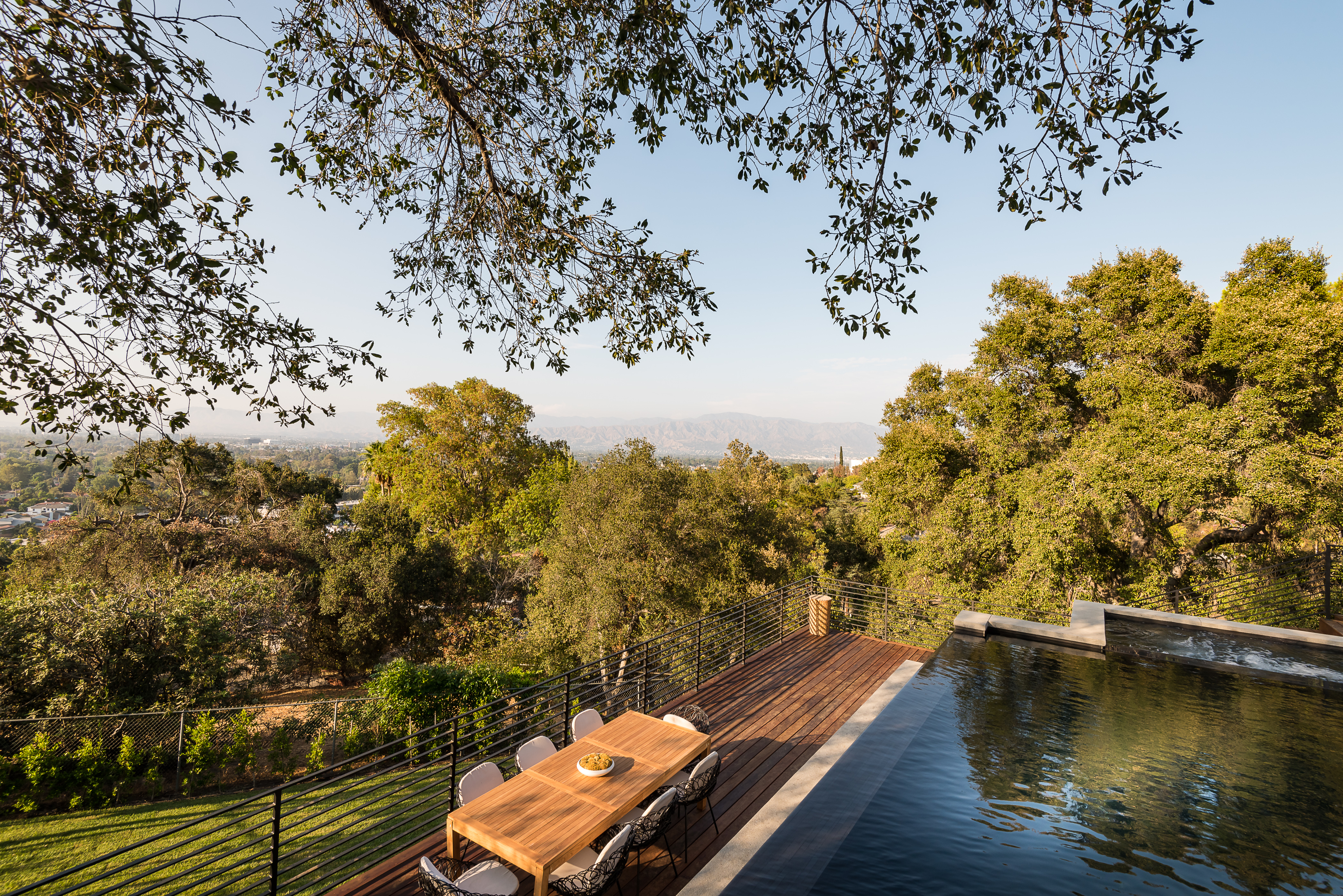 Nestled in the Hills of Studio City, this luxurious contemporary newly developed estate offers a masterful achievement of concept and design. Long driveway leads to a secluded, half acre property with unobstructed city and mountain views. The 5050 square foot modern residence showcases a warm, sophisticated interior, capable of accommodating multiple layout options. Soaring high ceilings and walls of glass seamlessly integrate indoor and outdoor living spaces while bringing phenomenal views to the forefront of the living experience. ccccxpansive lower level includes a linear double sided fireplace, surround sound system, gourmet kitchen with large center stone island. Ensuite bedroom tucked into its own corner downstairs includes private balcony w/ hillside views. A sculptural staircase leads to a second and third level, which holds three light-filled, ensuite bedrooms. A grand 1200 Sq Ft Master suite is equipped with sliding glass doors to a large terrace showcasing stretched valley views, spacious walk in-closets, and exquisite bathroom with a free standing bath tub w/ picturesque views. Serving as a natural extension of the home’s interiors, a zero-edge infinity pool and spa spill over the hillside, while expansive, sunlit decks take full advantage of the sweeping views. A masterpiece in its own right, a separate guest house holds a full kitchen, bedroom, bathroom, and sitting area.