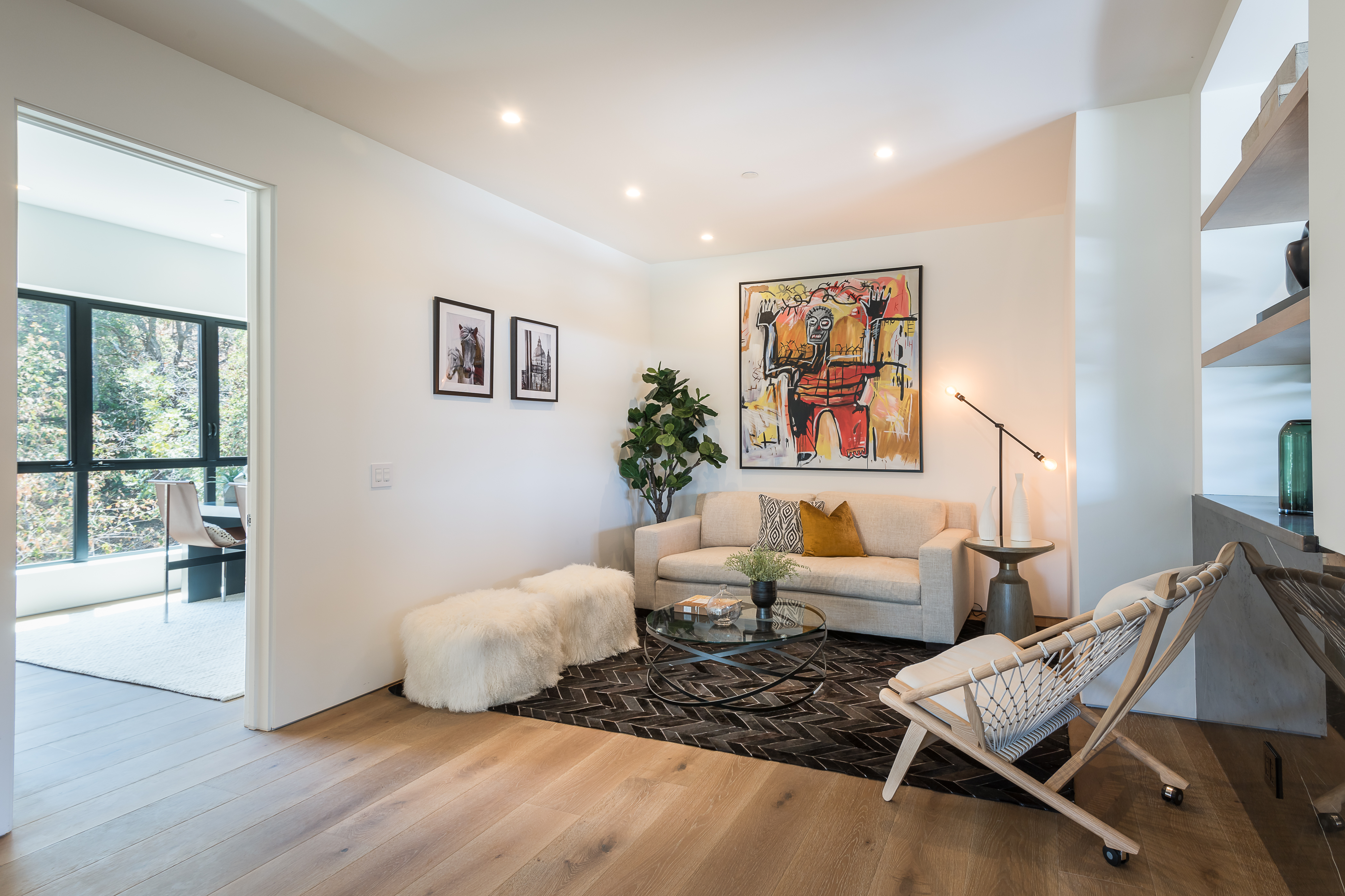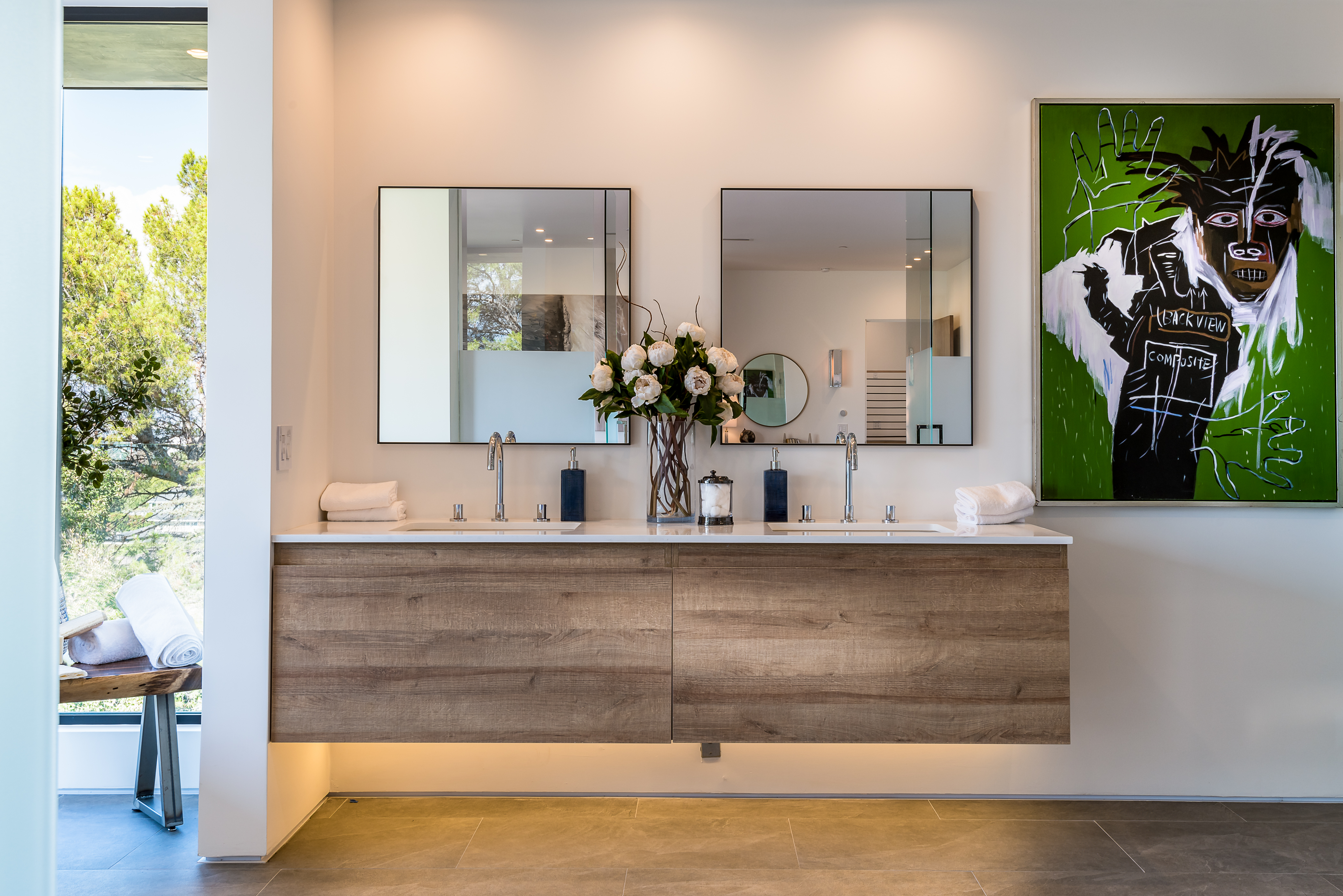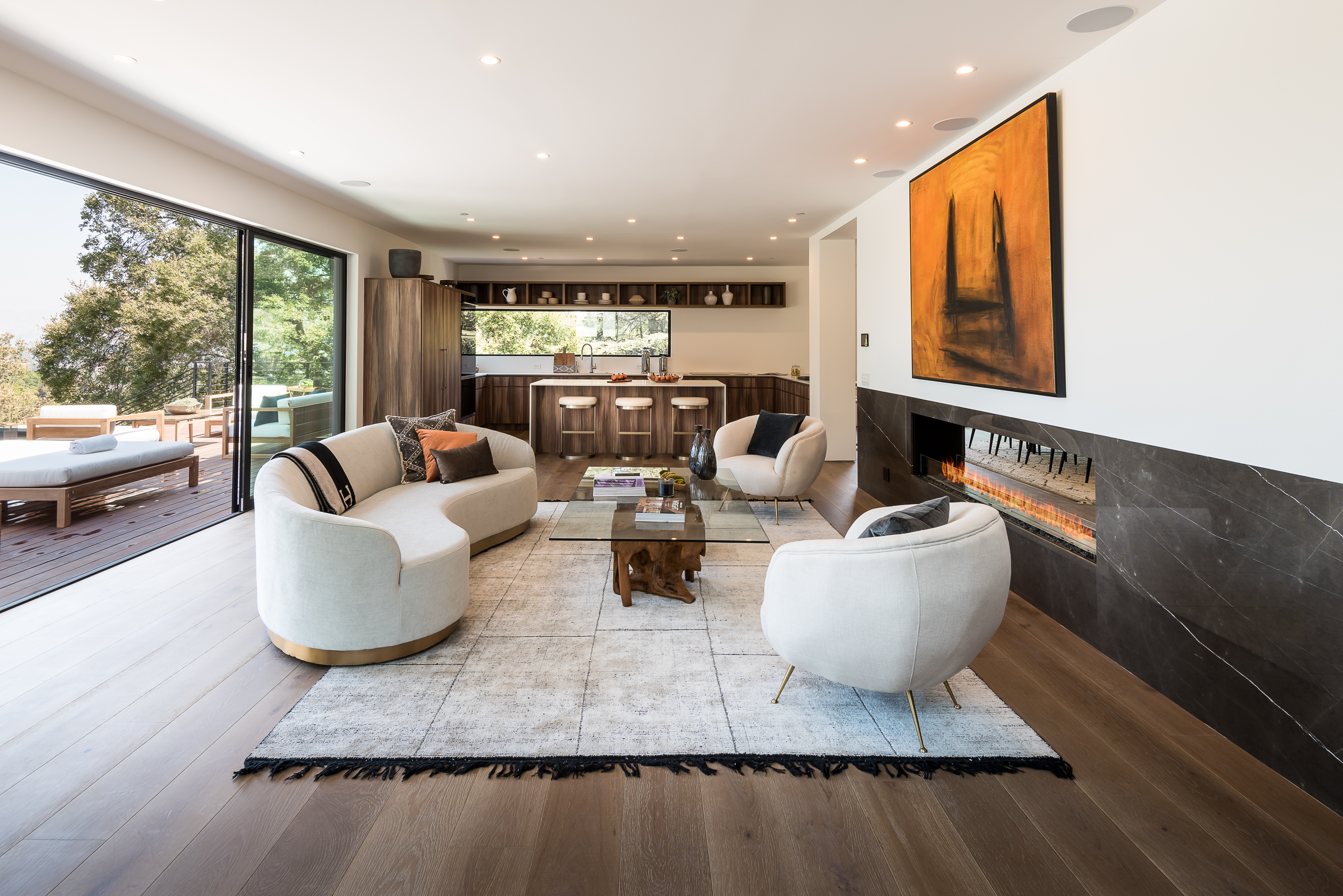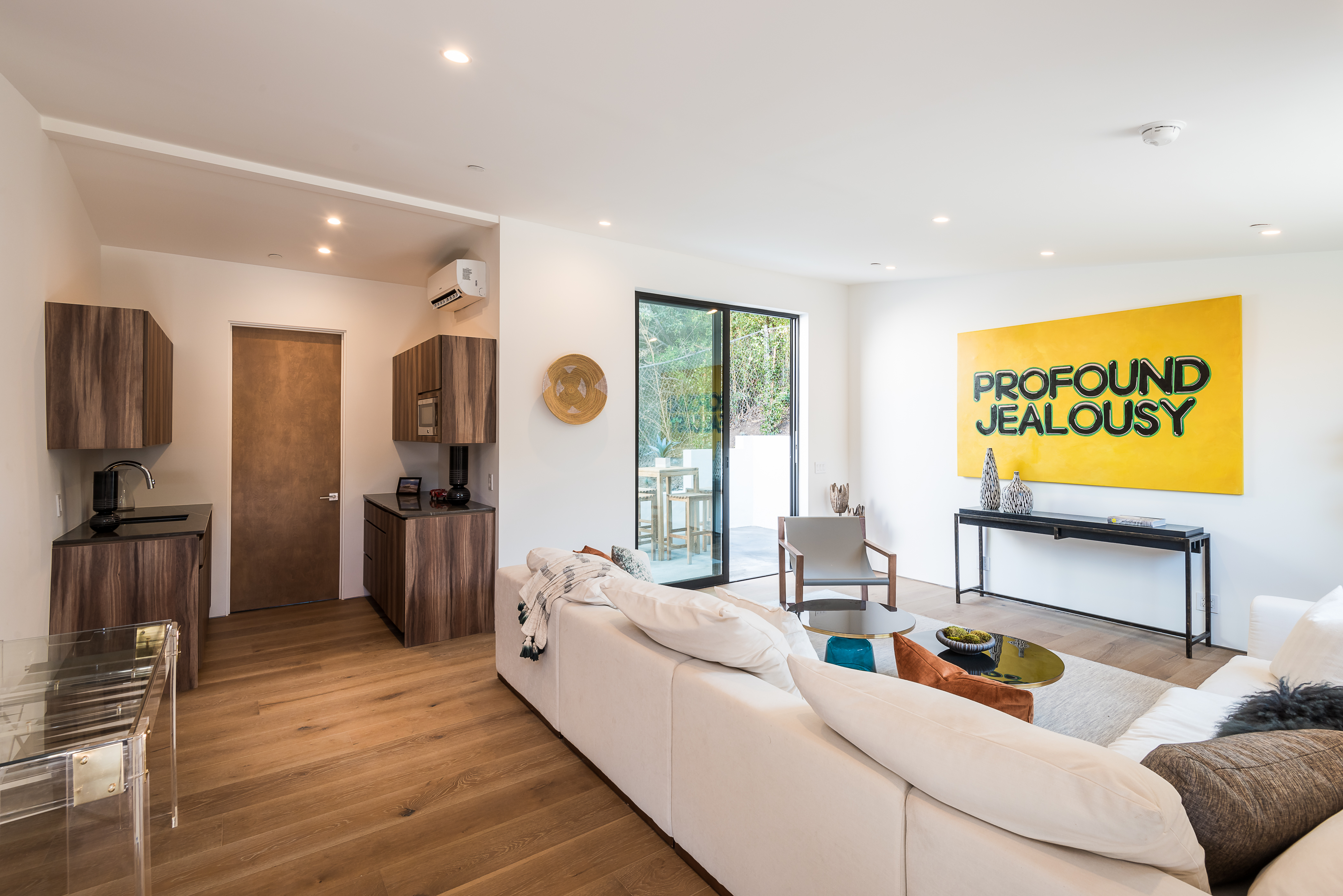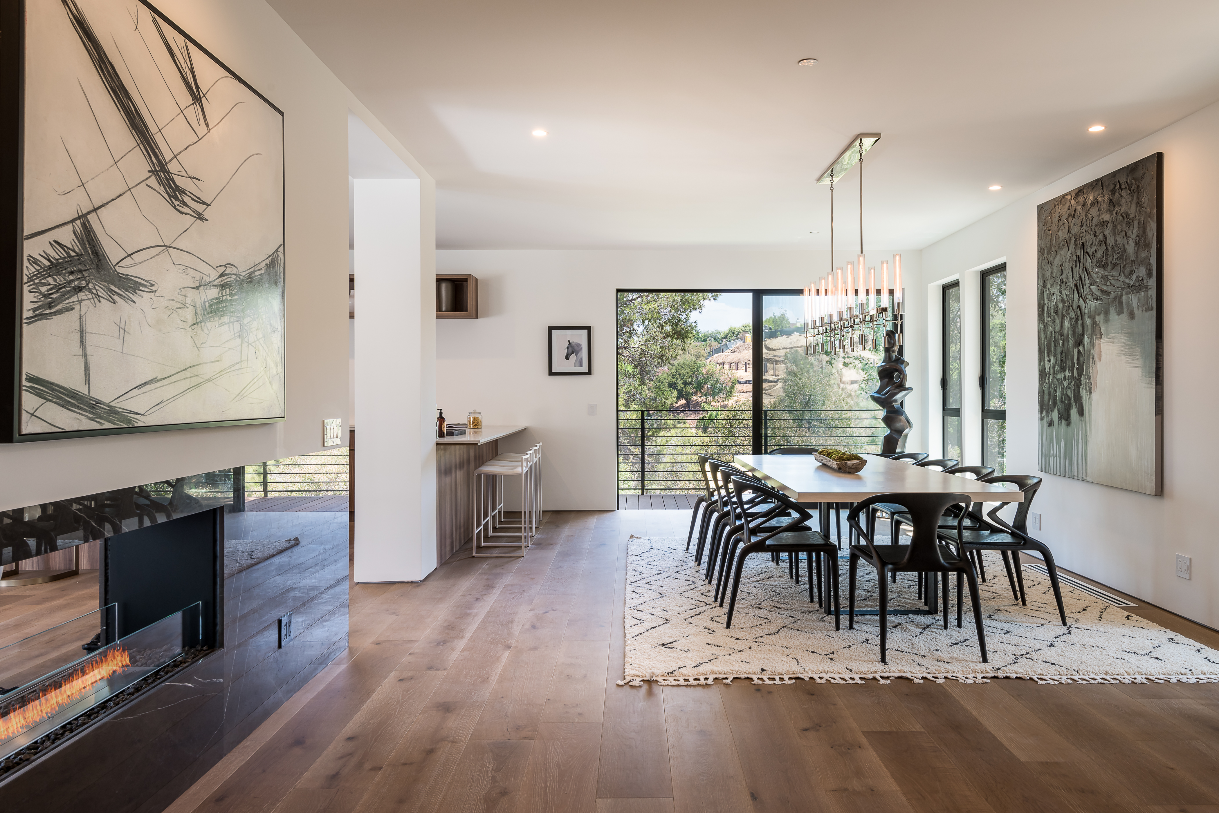 Nestled in the Hills of Studio City, this luxurious contemporary newly developed estate offers a masterful achievement of concept and design. Long driveway leads to a secluded, half acre property with unobstructed city and mountain views. The 5050 square foot modern residence showcases a warm, sophisticated interior, capable of accommodating multiple layout options. Soaring high ceilings and walls of glass seamlessly integrate indoor and outdoor living spaces while bringing phenomenal views to the forefront of the living experience. ccccxpansive lower level includes a linear double sided fireplace, surround sound system, gourmet kitchen with large center stone island. Ensuite bedroom tucked into its own corner downstairs includes private balcony w/ hillside views. A sculptural staircase leads to a second and third level, which holds three light-filled, ensuite bedrooms. A grand 1200 Sq Ft Master suite is equipped with sliding glass doors to a large terrace showcasing stretched valley views, spacious walk in-closets, and exquisite bathroom with a free standing bath tub w/ picturesque views. Serving as a natural extension of the home’s interiors, a zero-edge infinity pool and spa spill over the hillside, while expansive, sunlit decks take full advantage of the sweeping views. A masterpiece in its own right, a separate guest house holds a full kitchen, bedroom, bathroom, and sitting area.